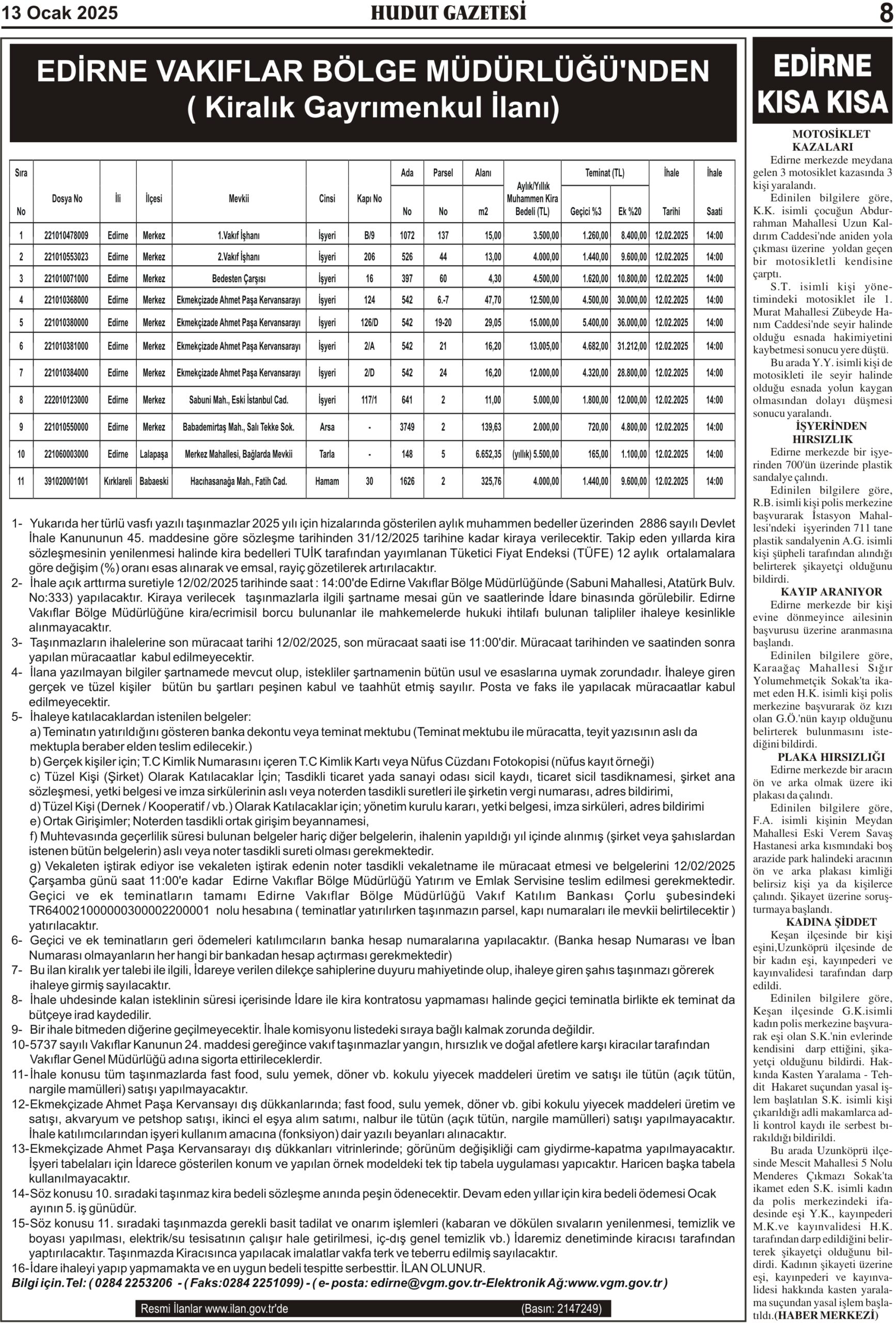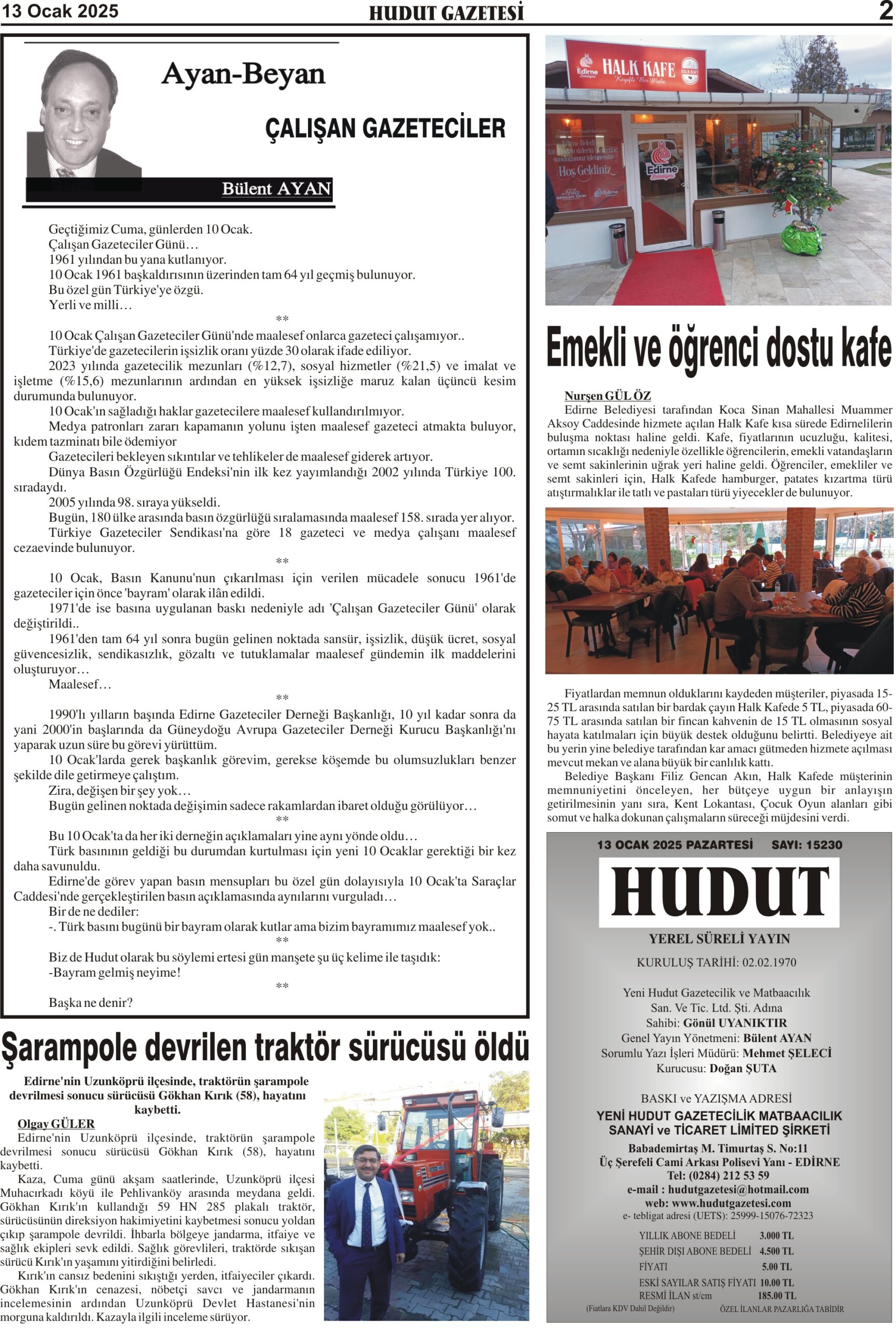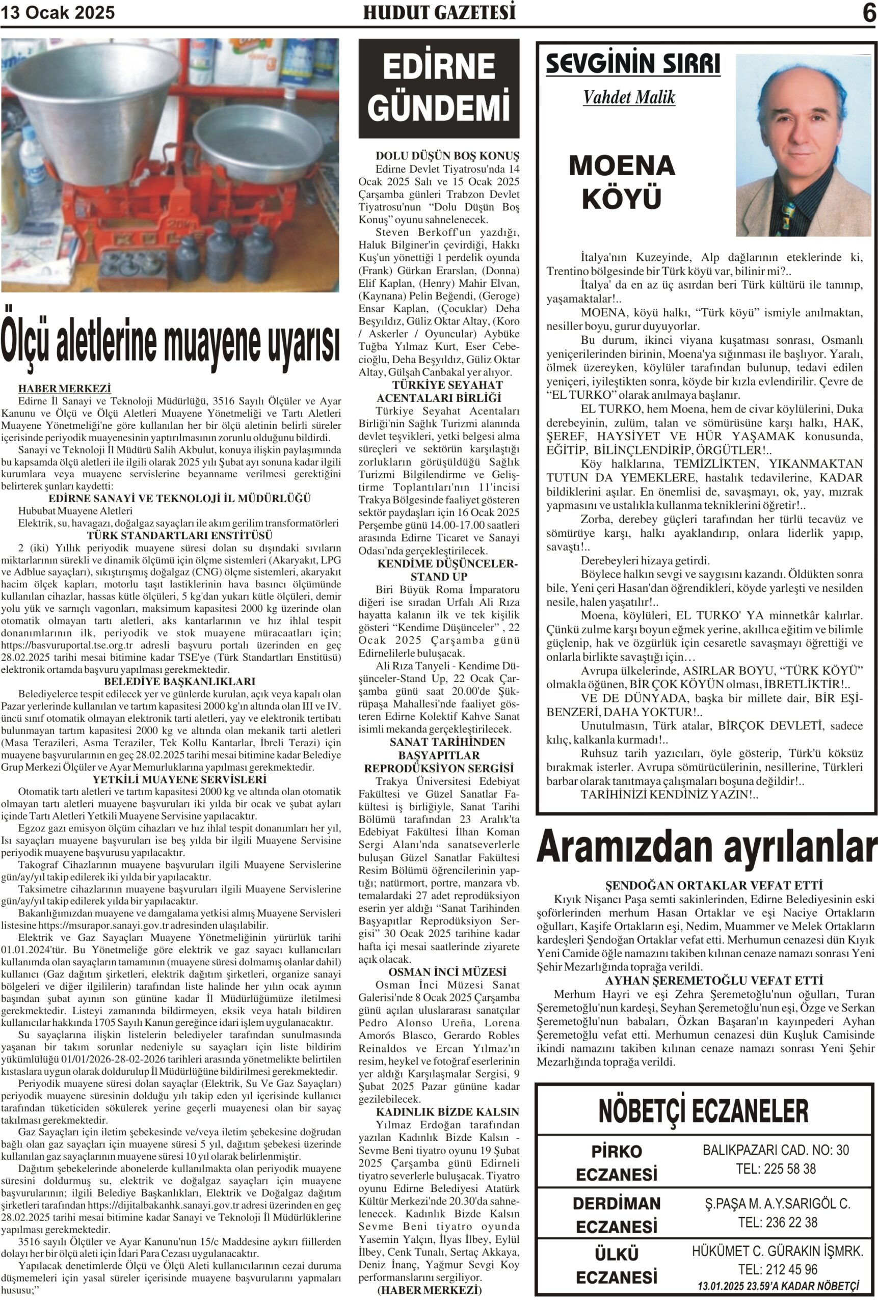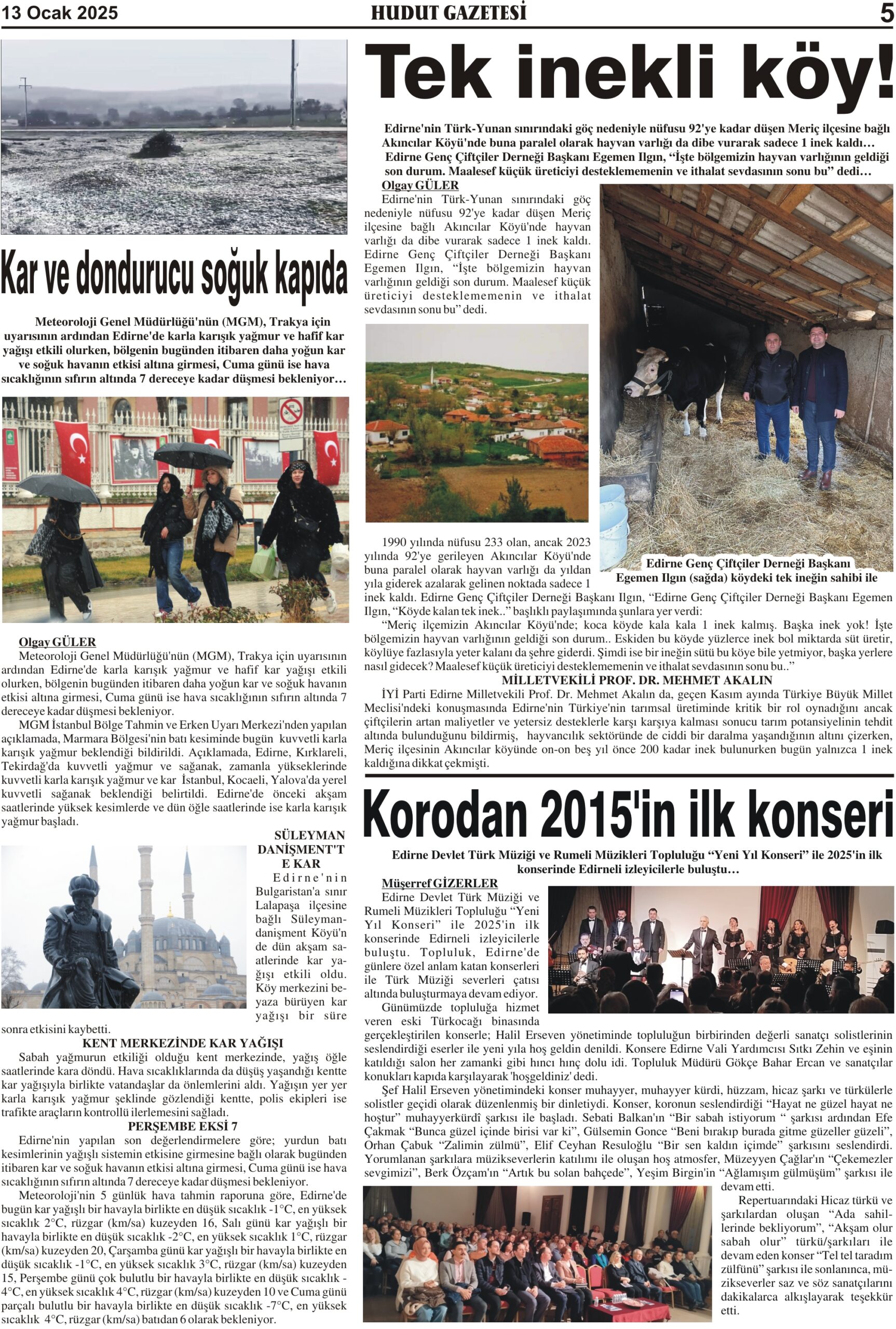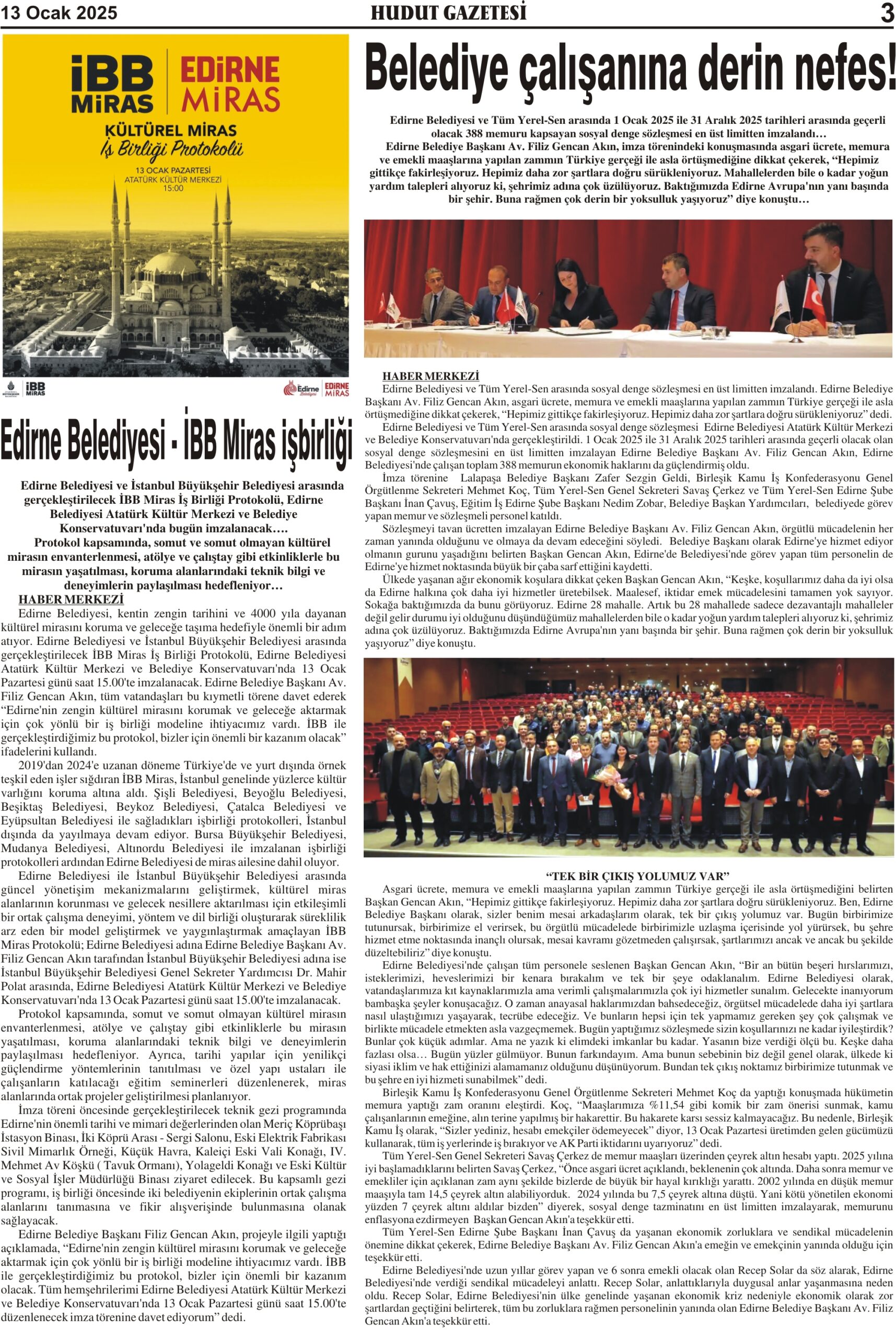 13 Ocak 2025 Pazartesi Hudut Gazetesi