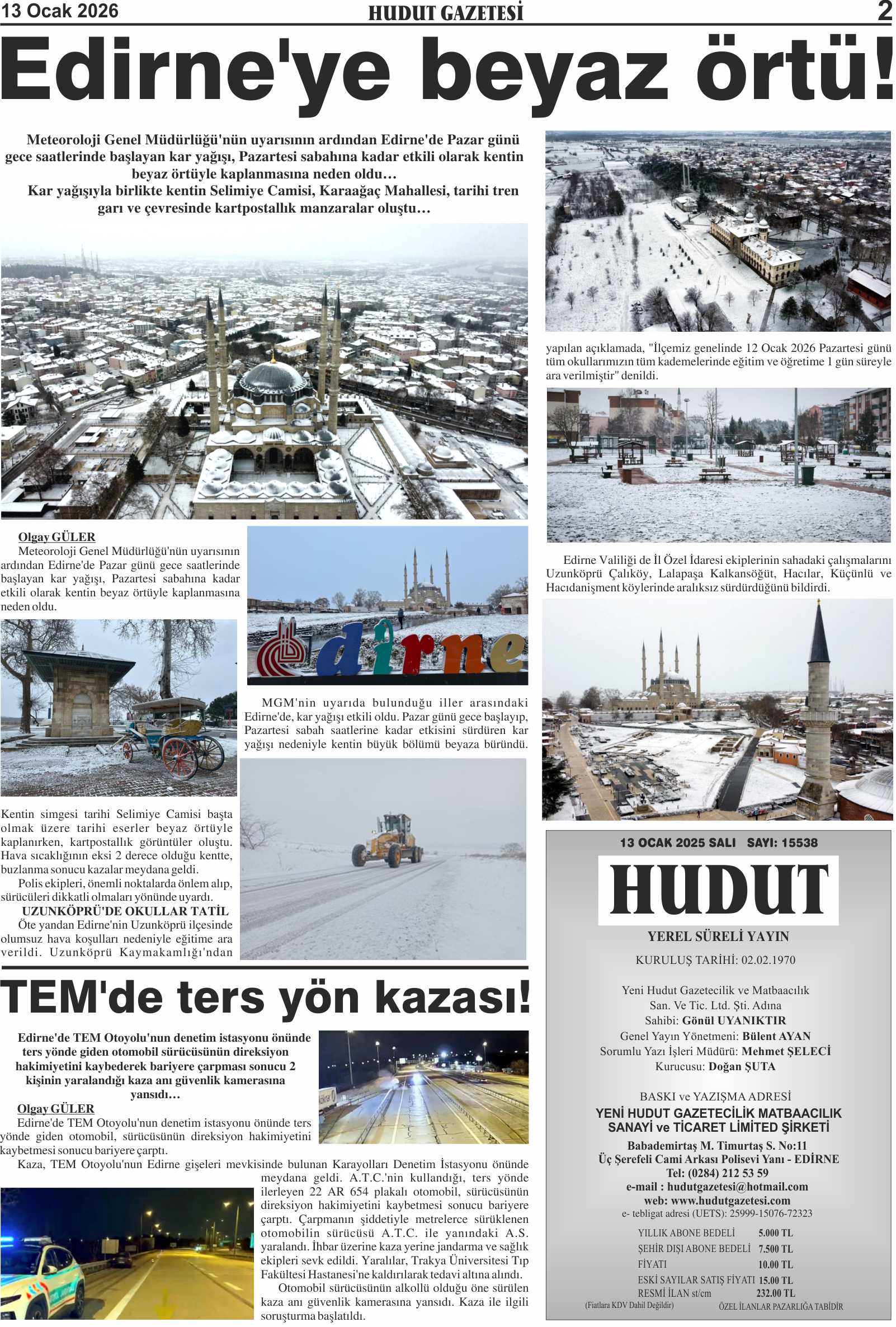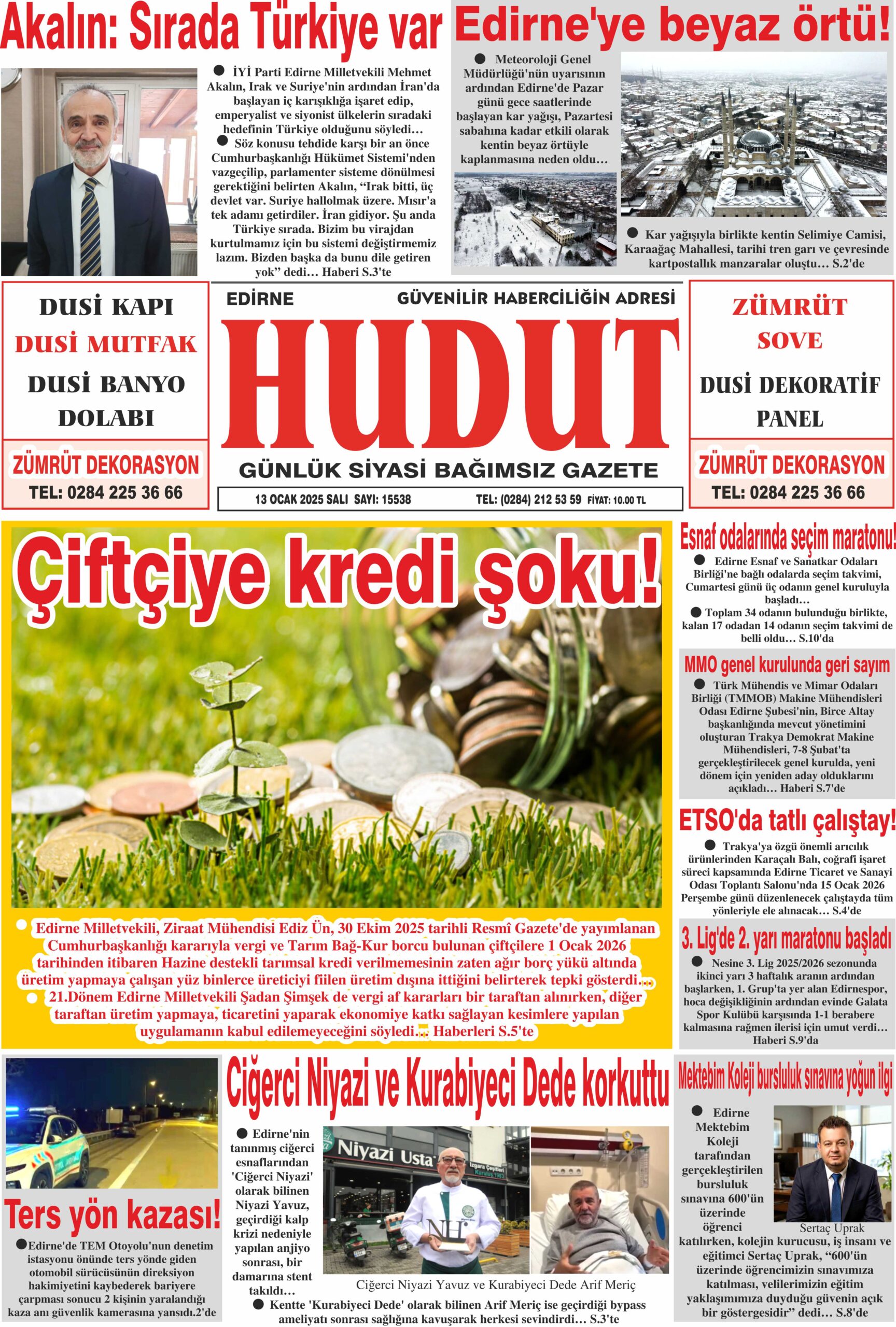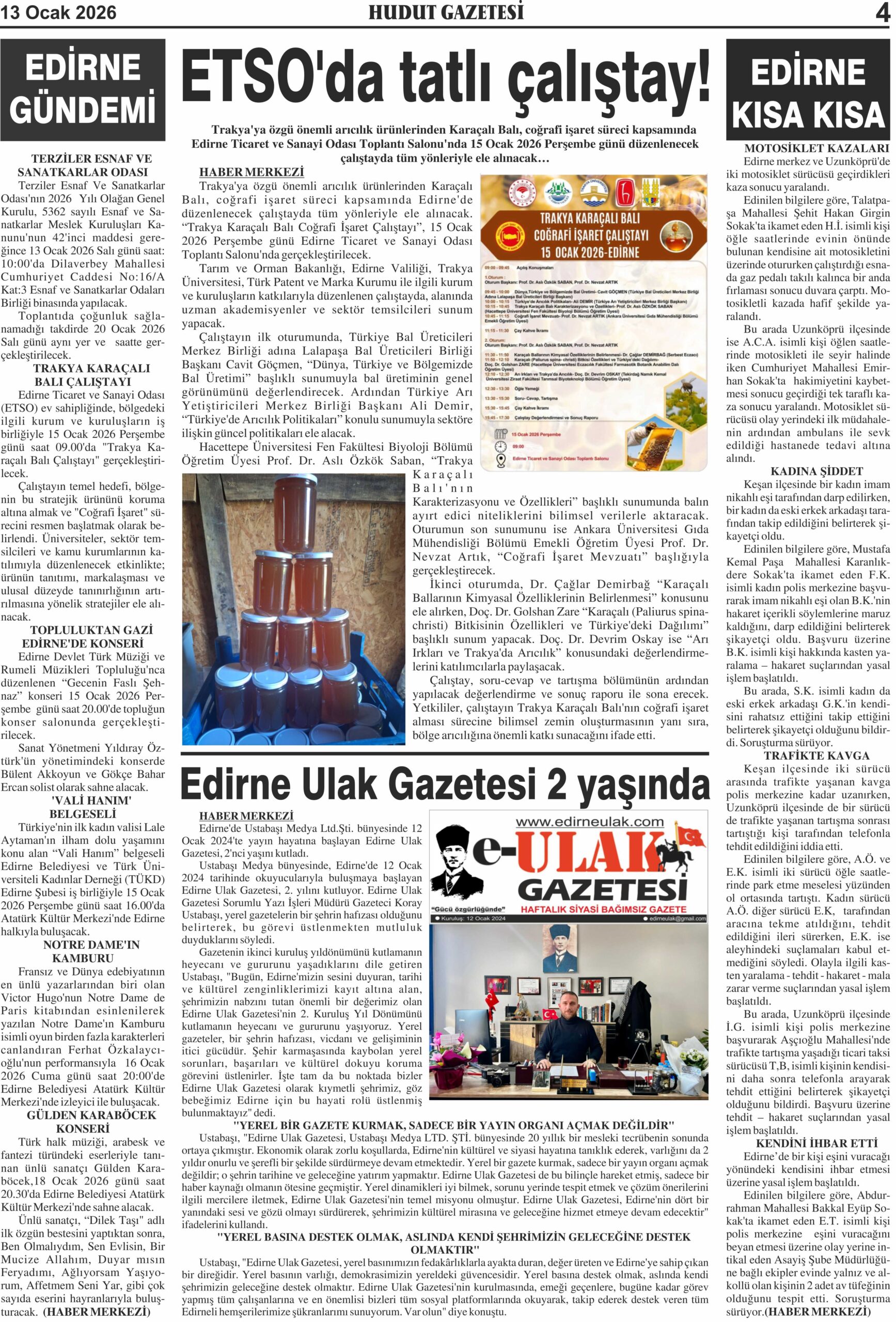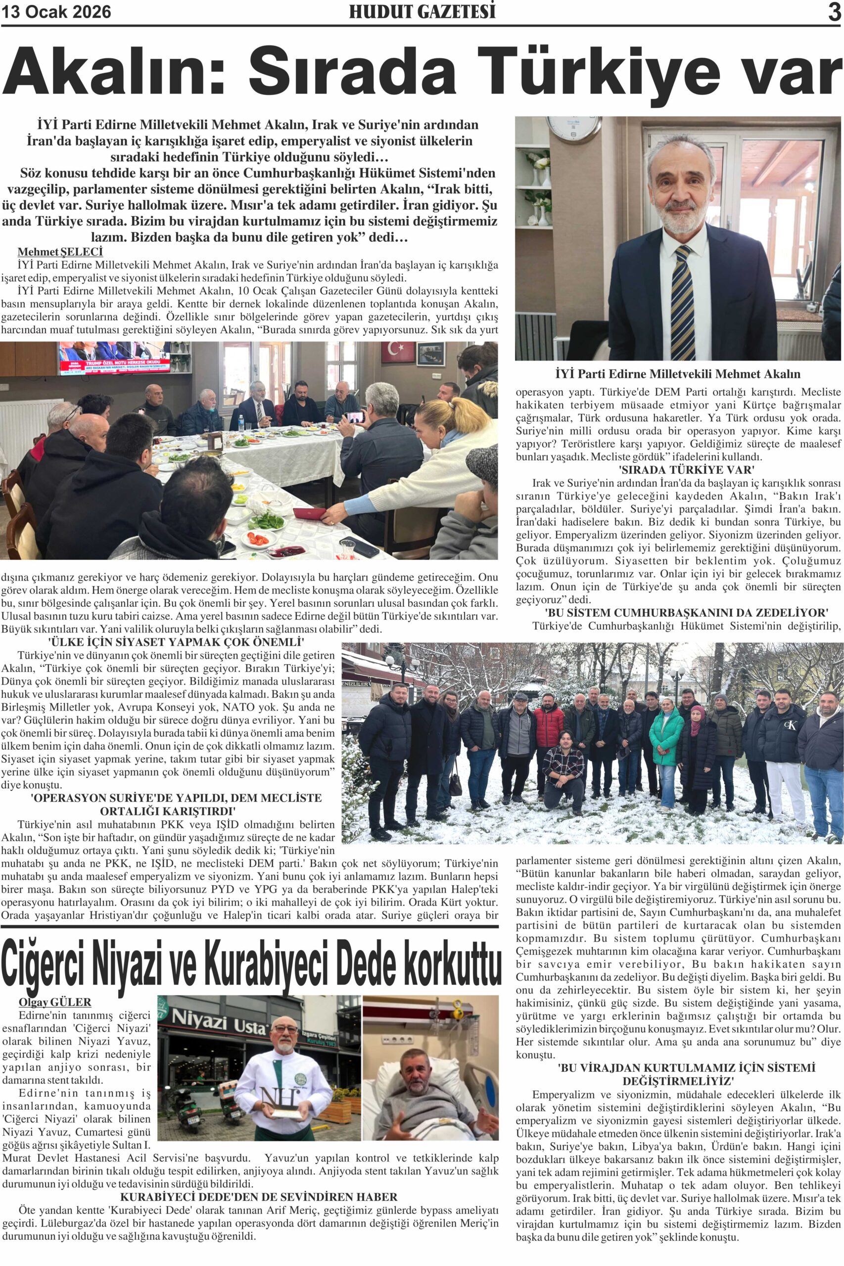 13 Ocak 2026 Salı Hudut Gazetesi