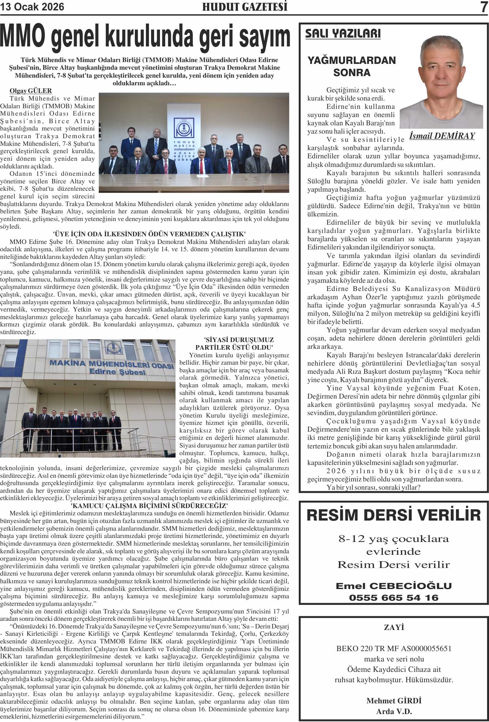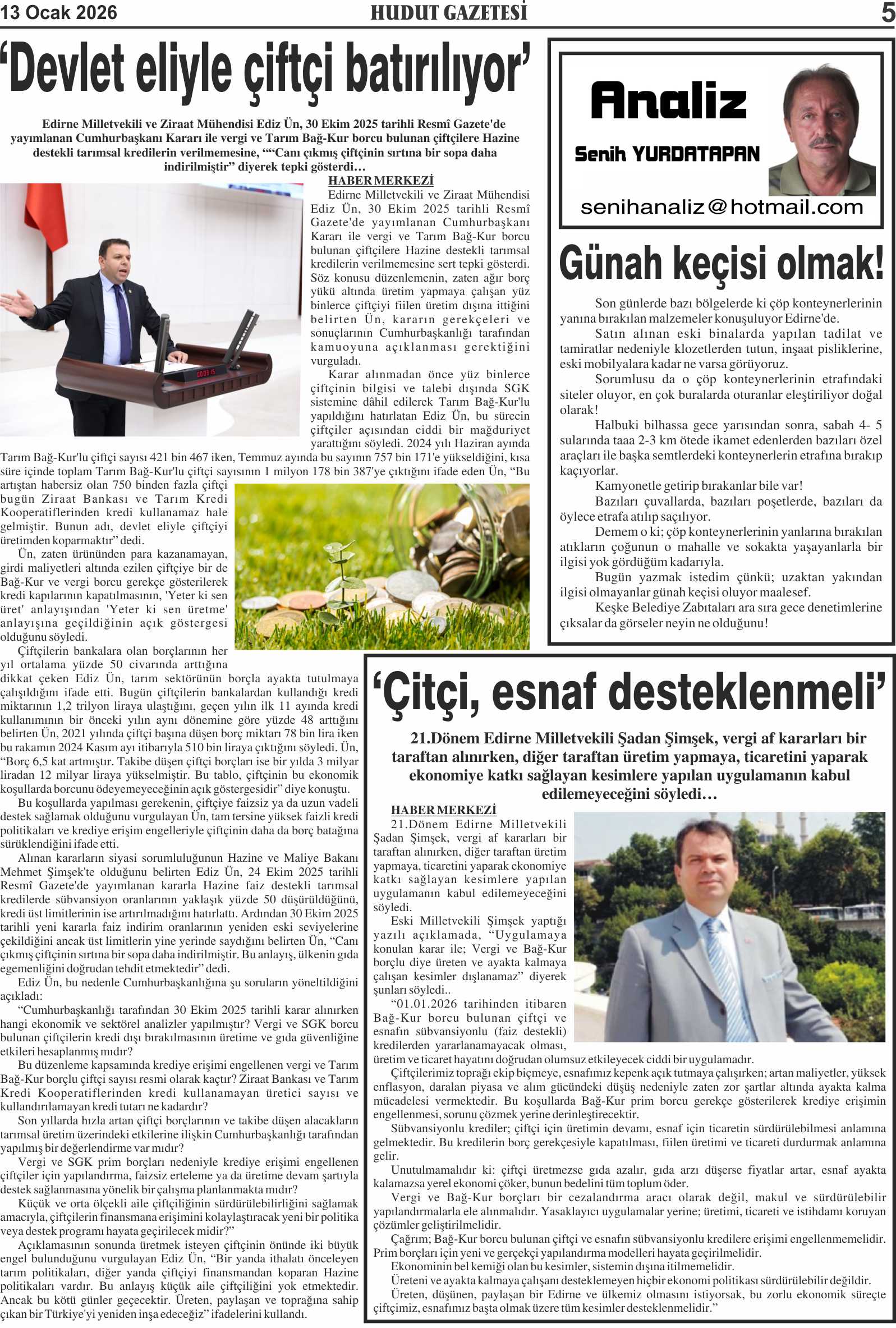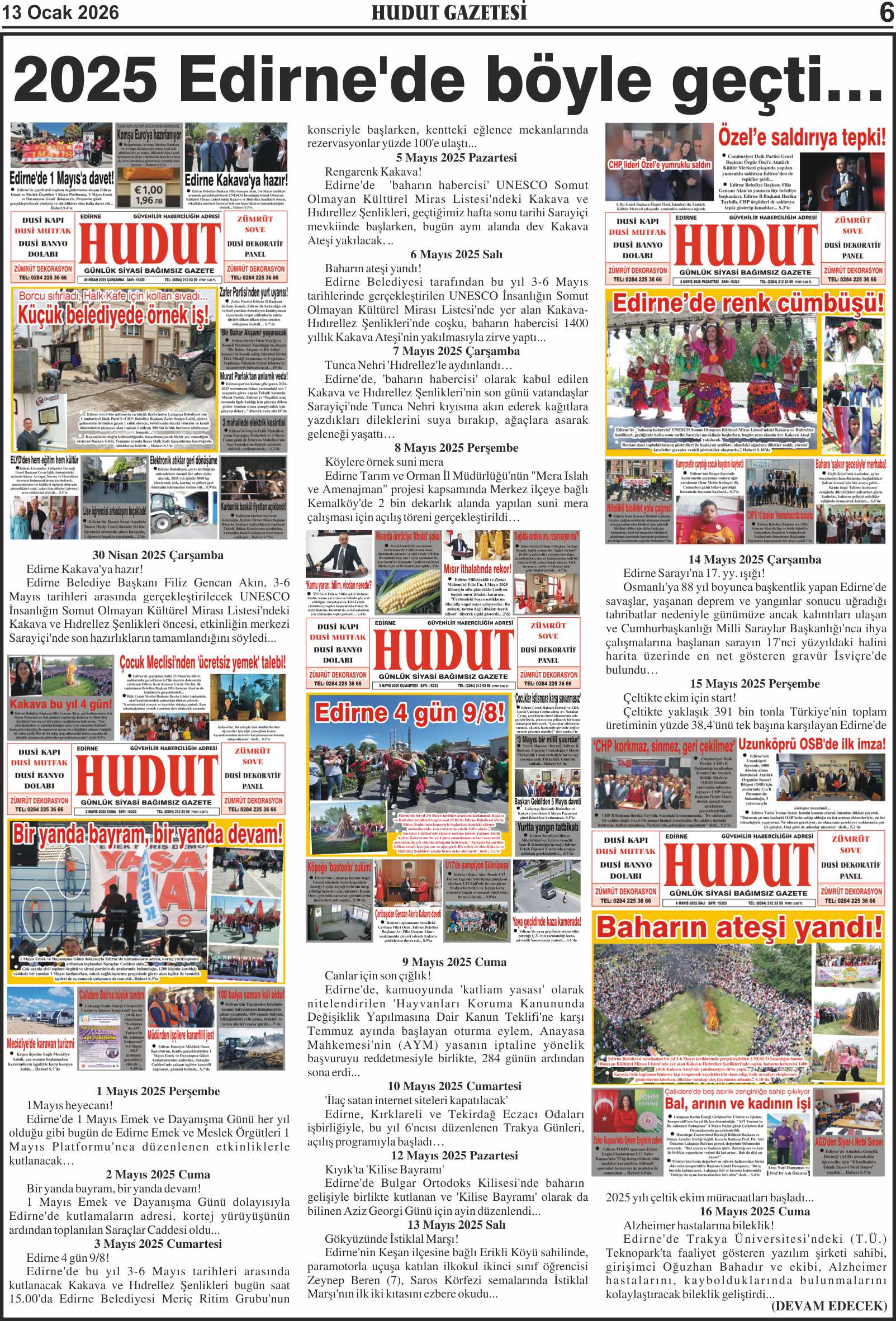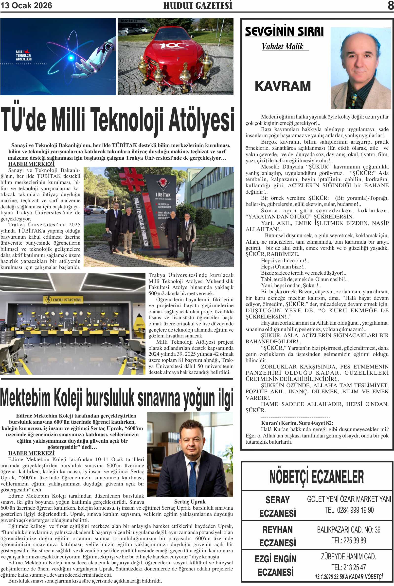 13 Ocak 2026 Salı Hudut Gazetesi