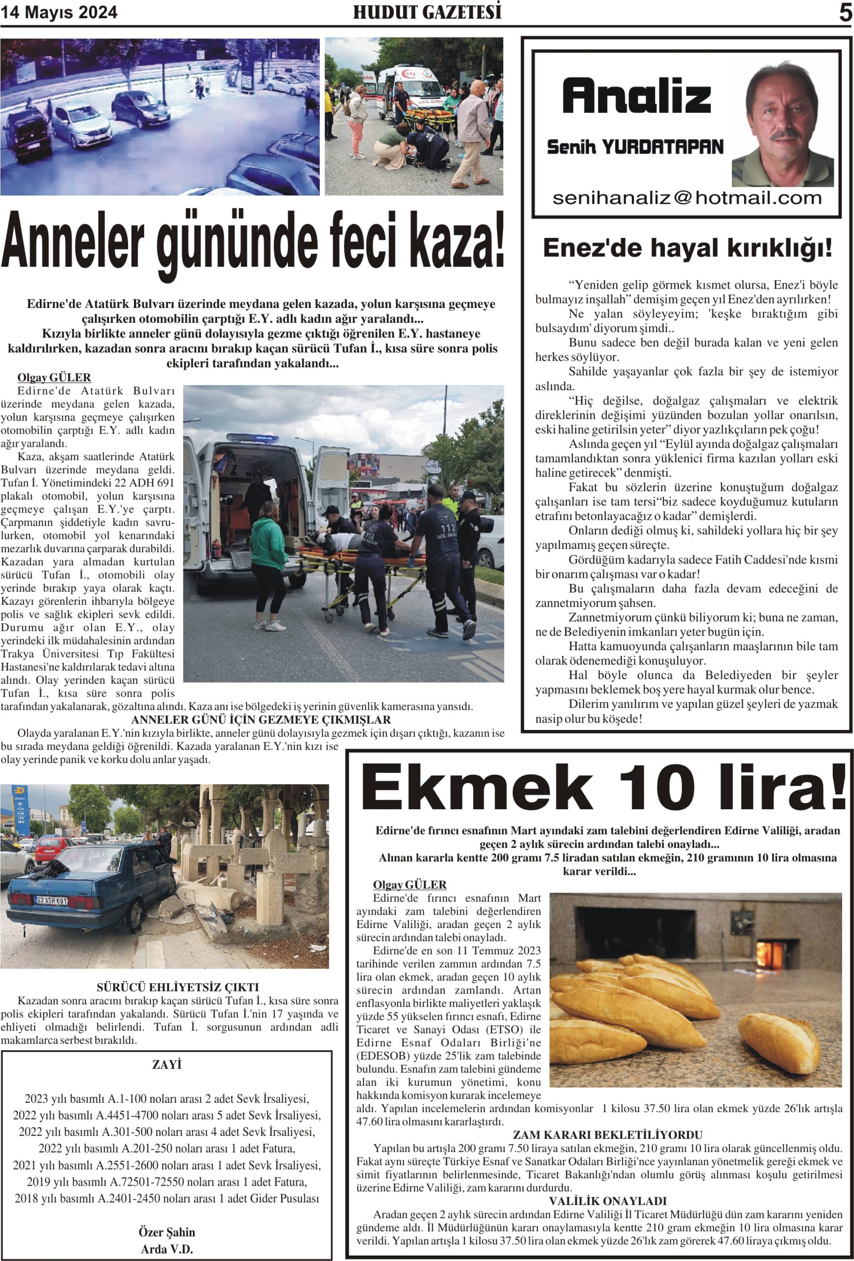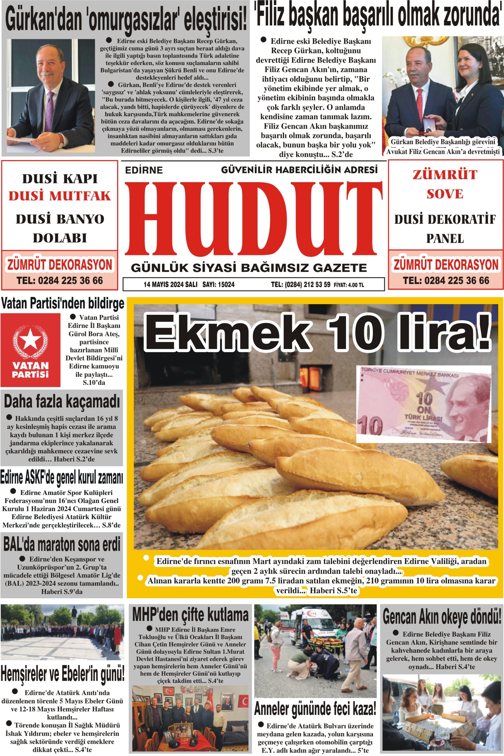 14 Mayıs 2024 Salı Hudut Gazetesi