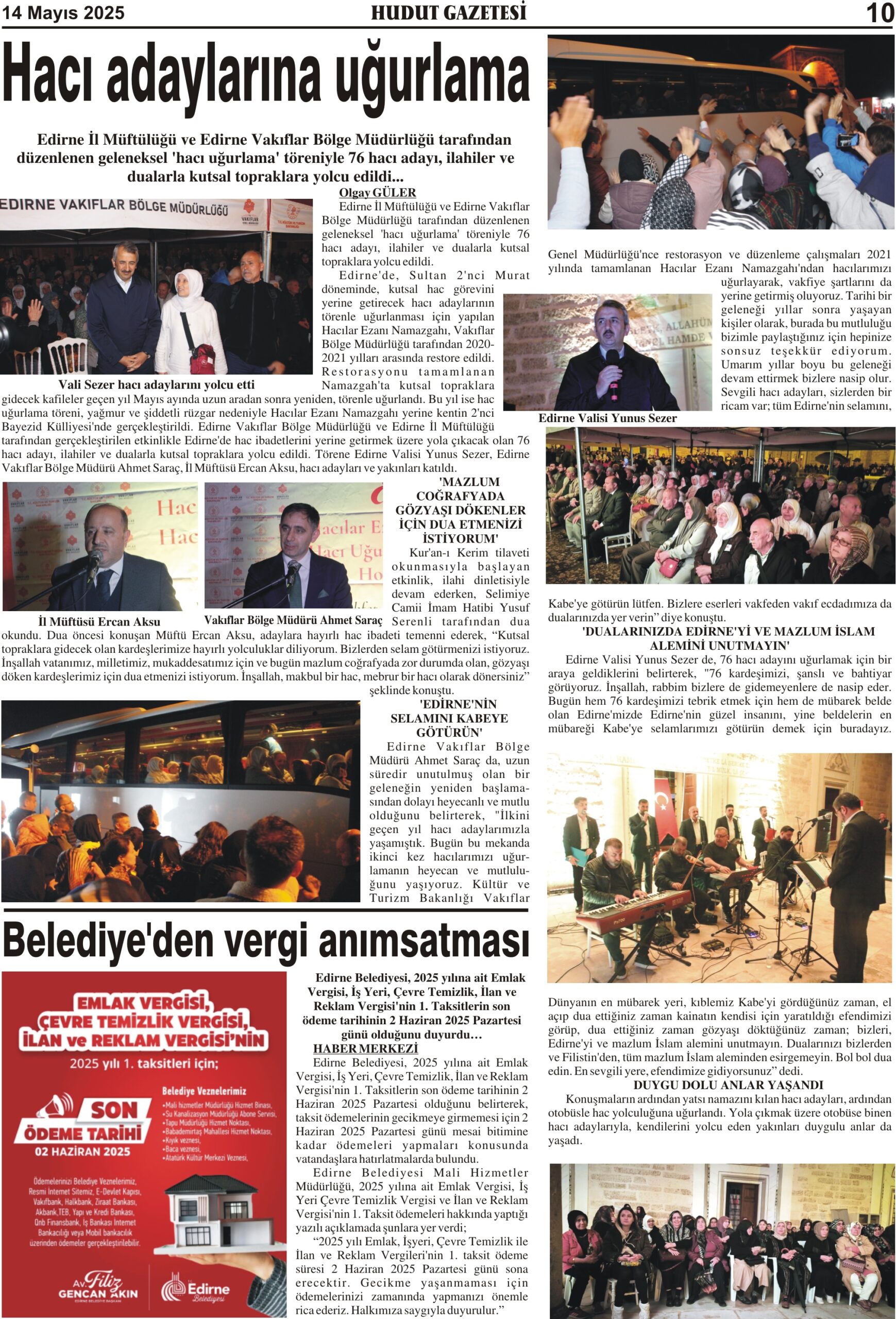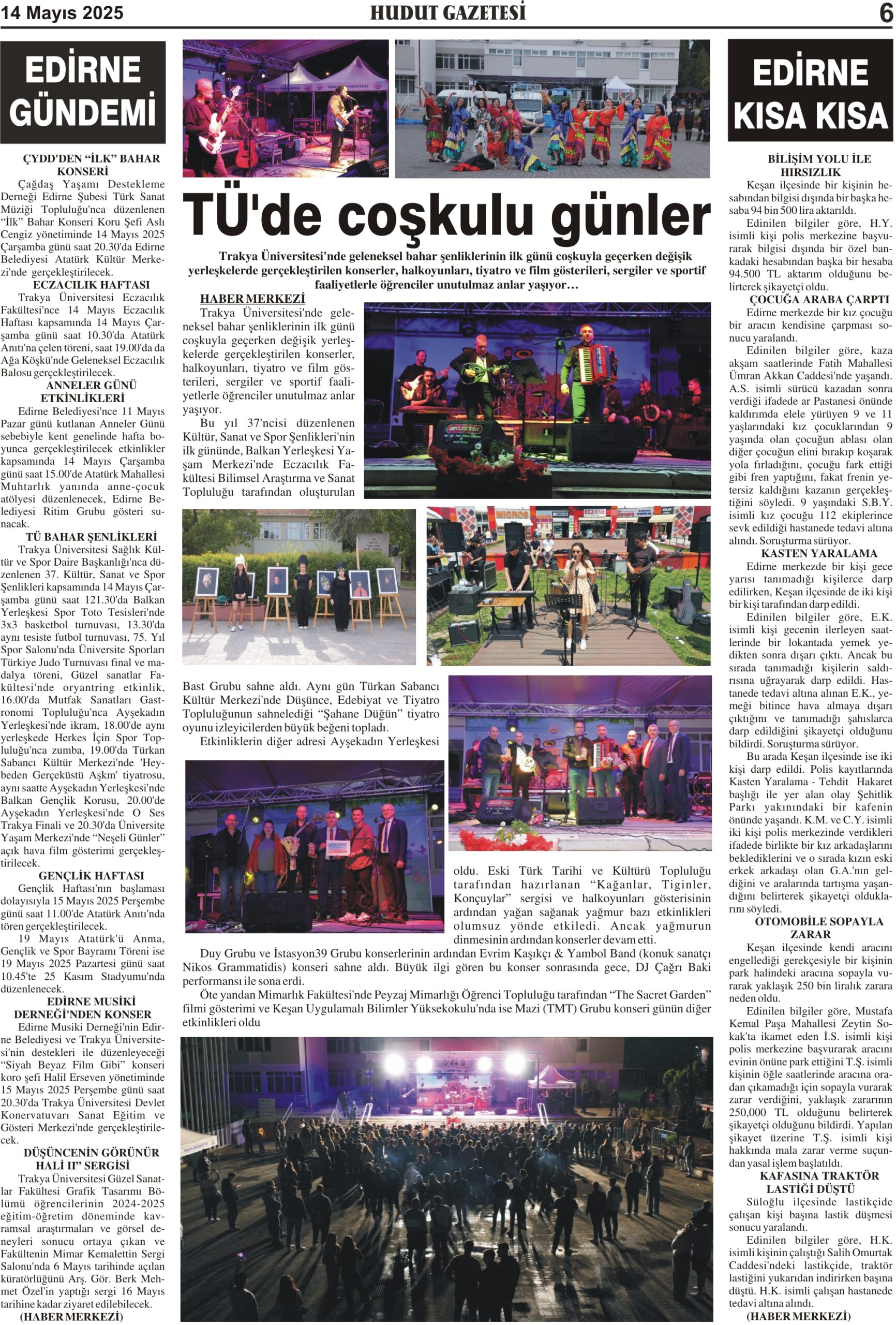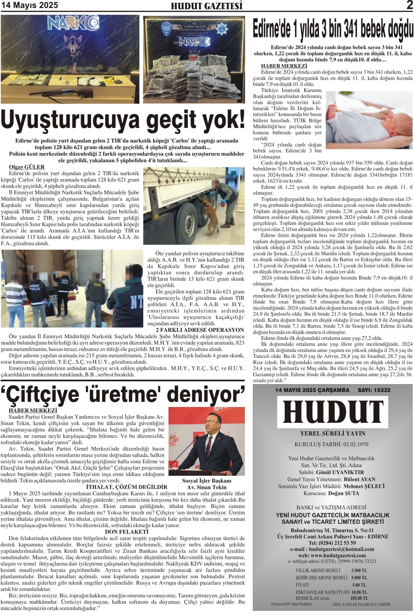14 Mayıs 2025 Çarşamba Hudut Gazetesi