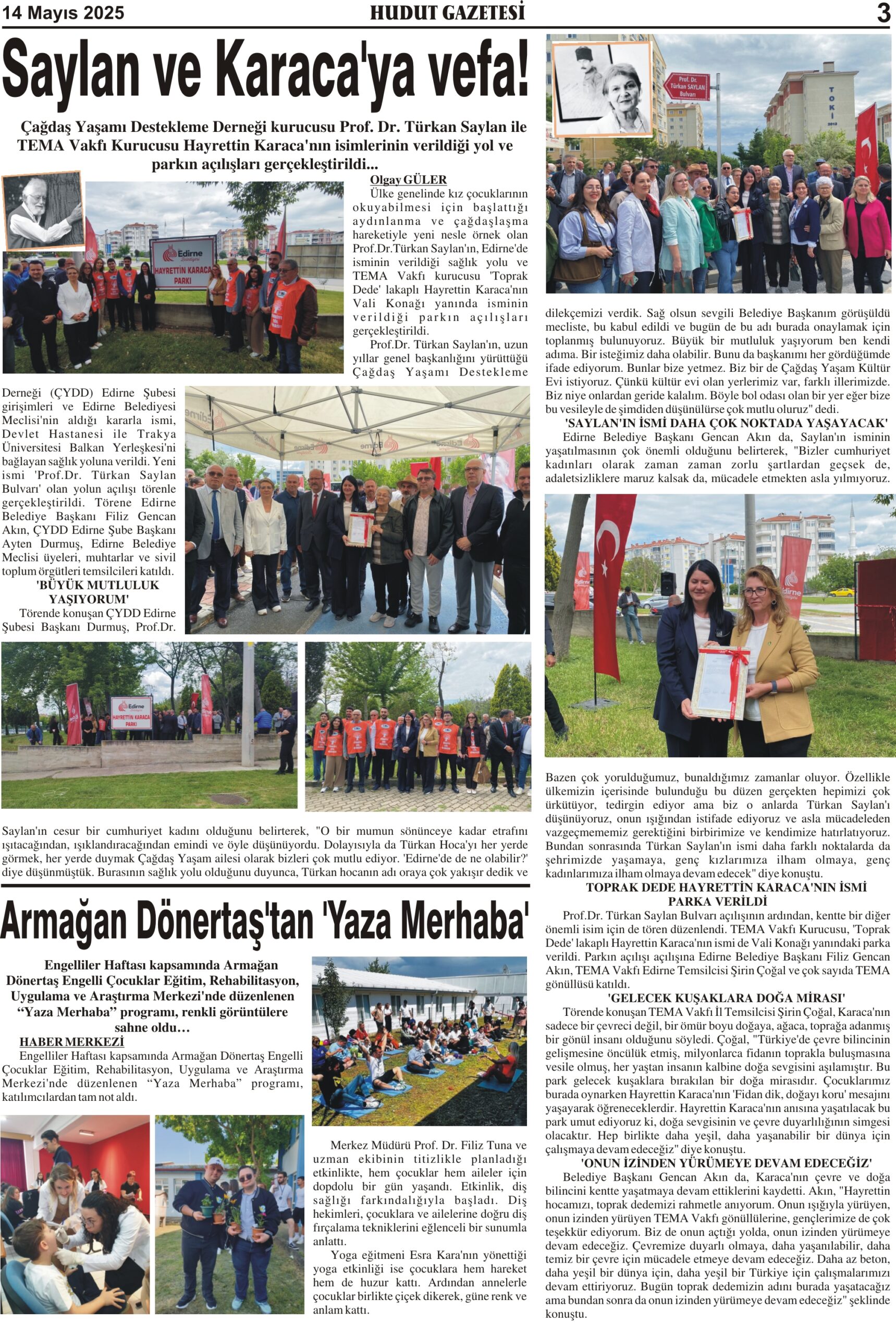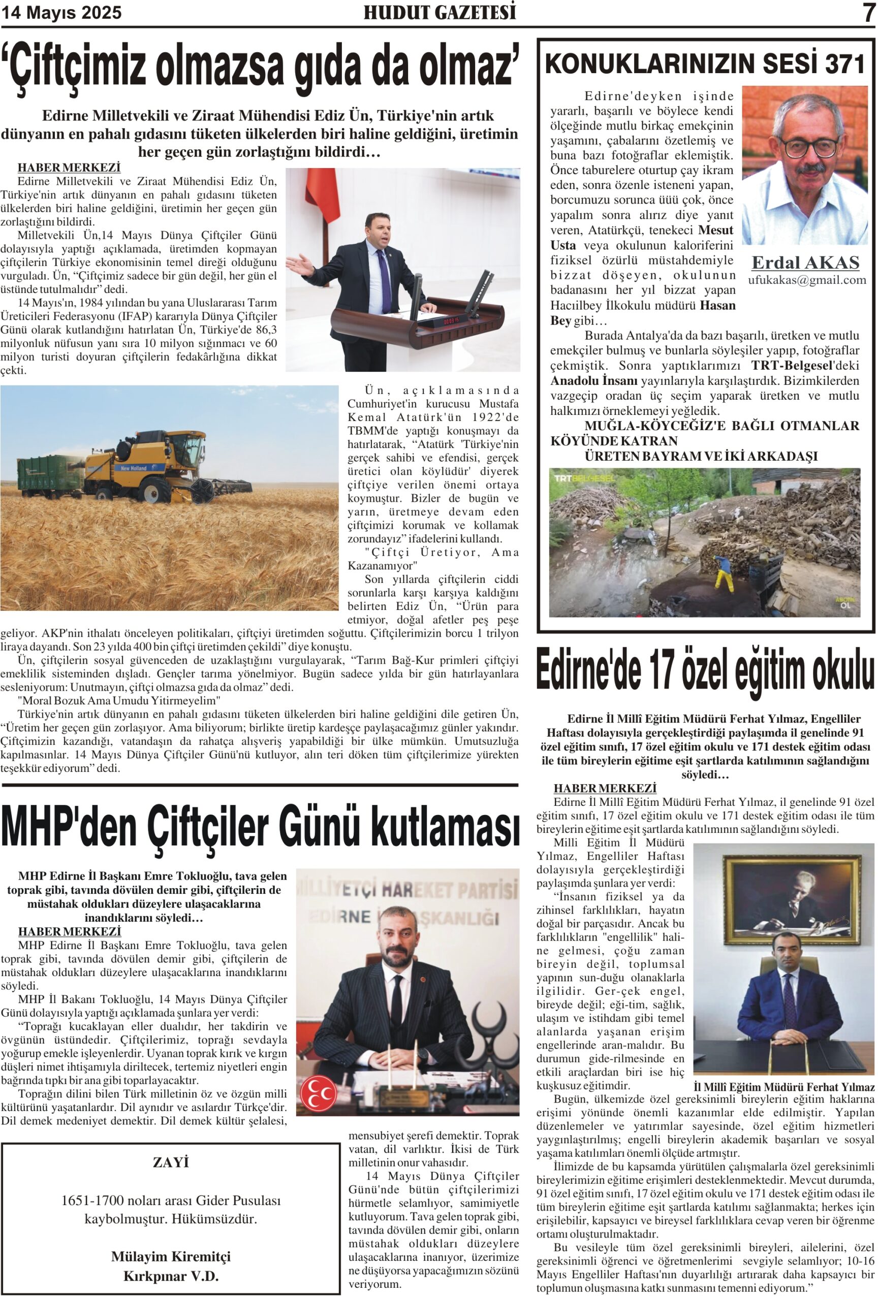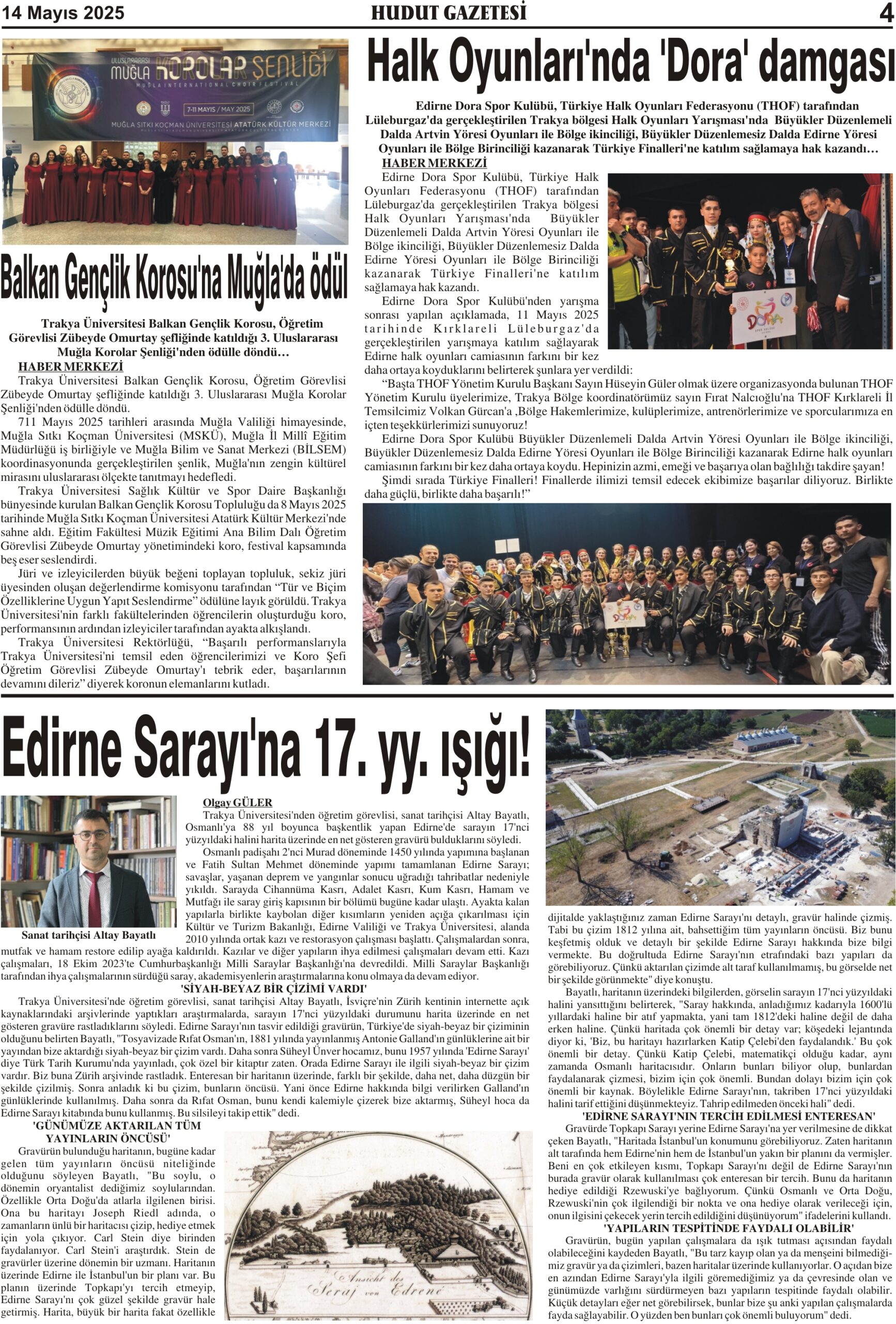 14 Mayıs 2025 Çarşamba Hudut Gazetesi