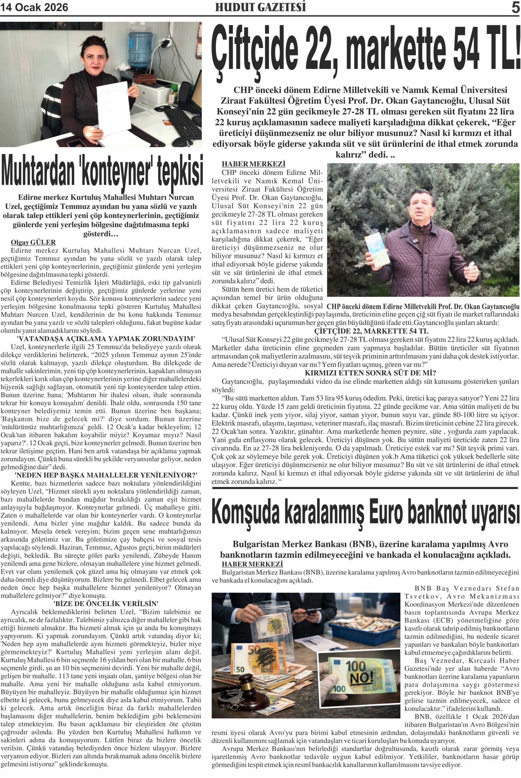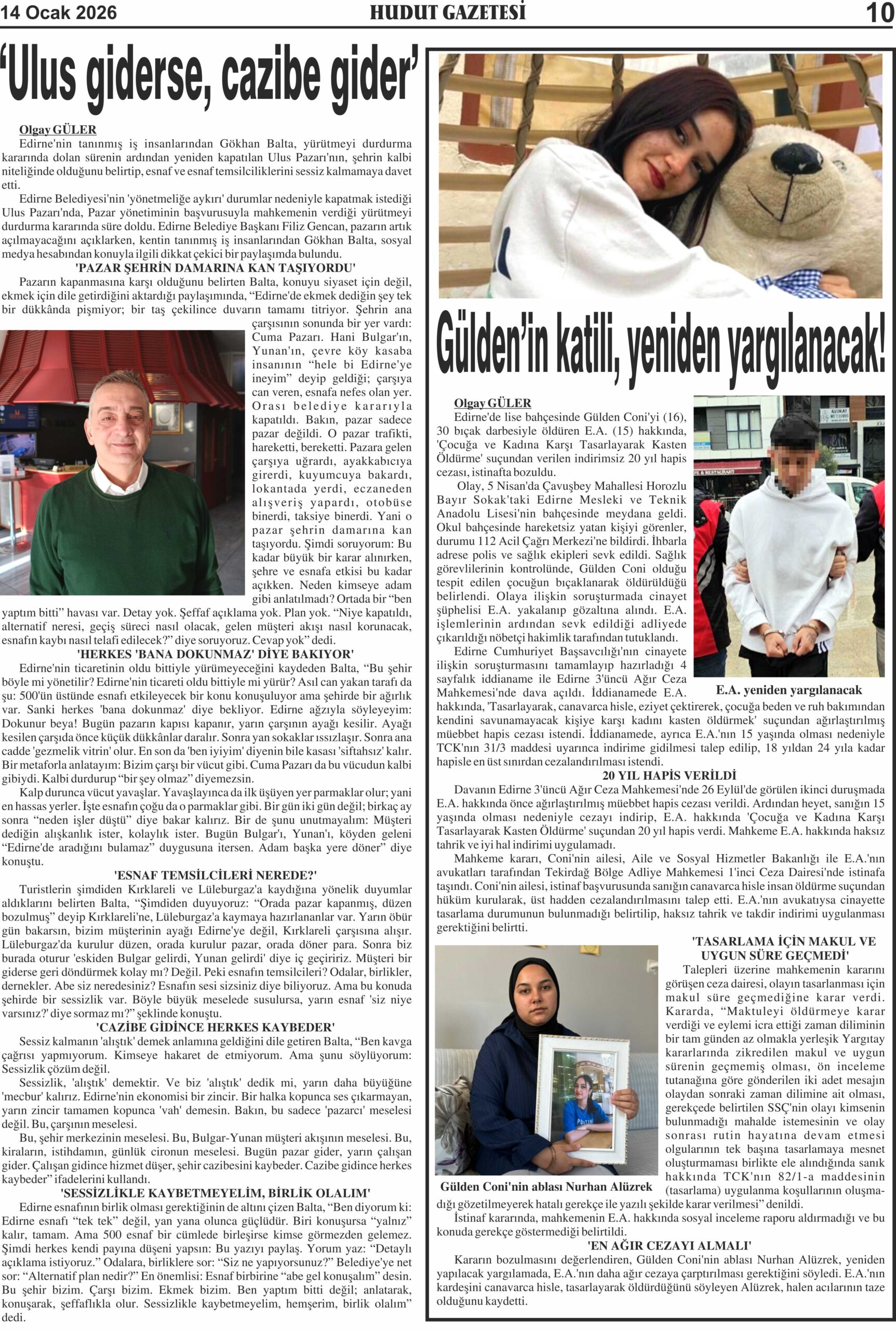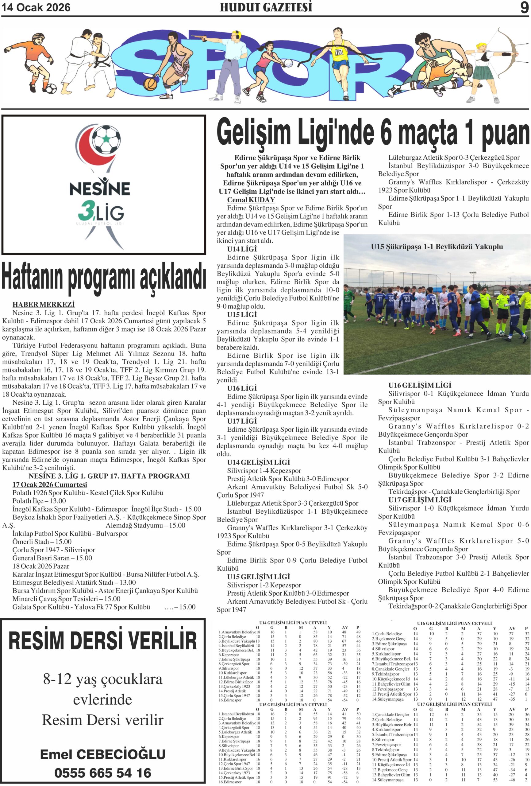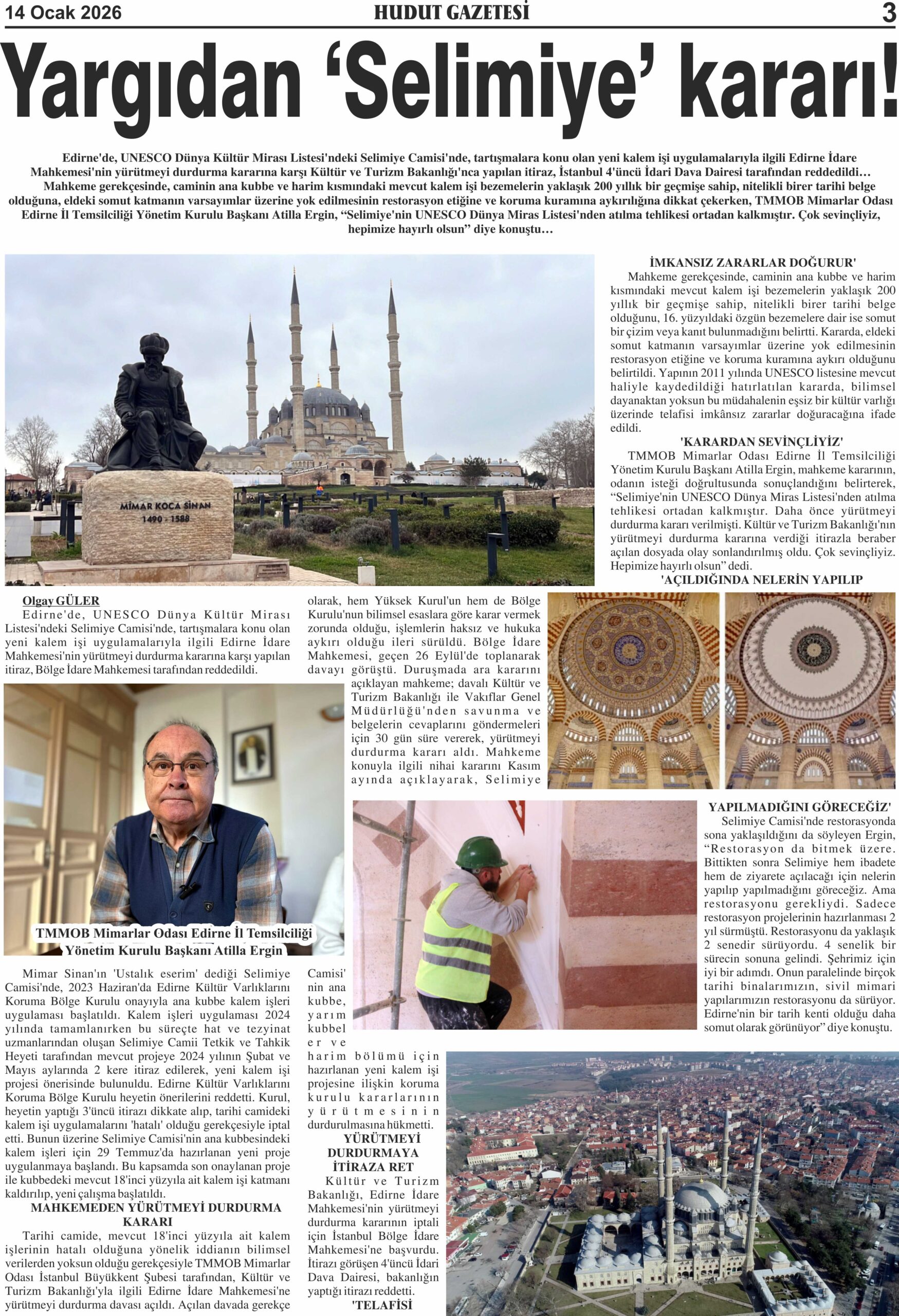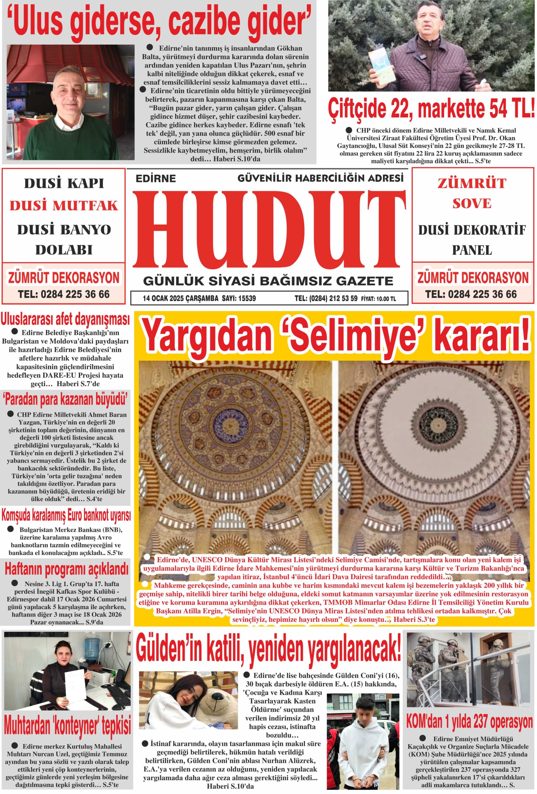 14 Ocak 2026 Çarşamba Hudut Gazetesi