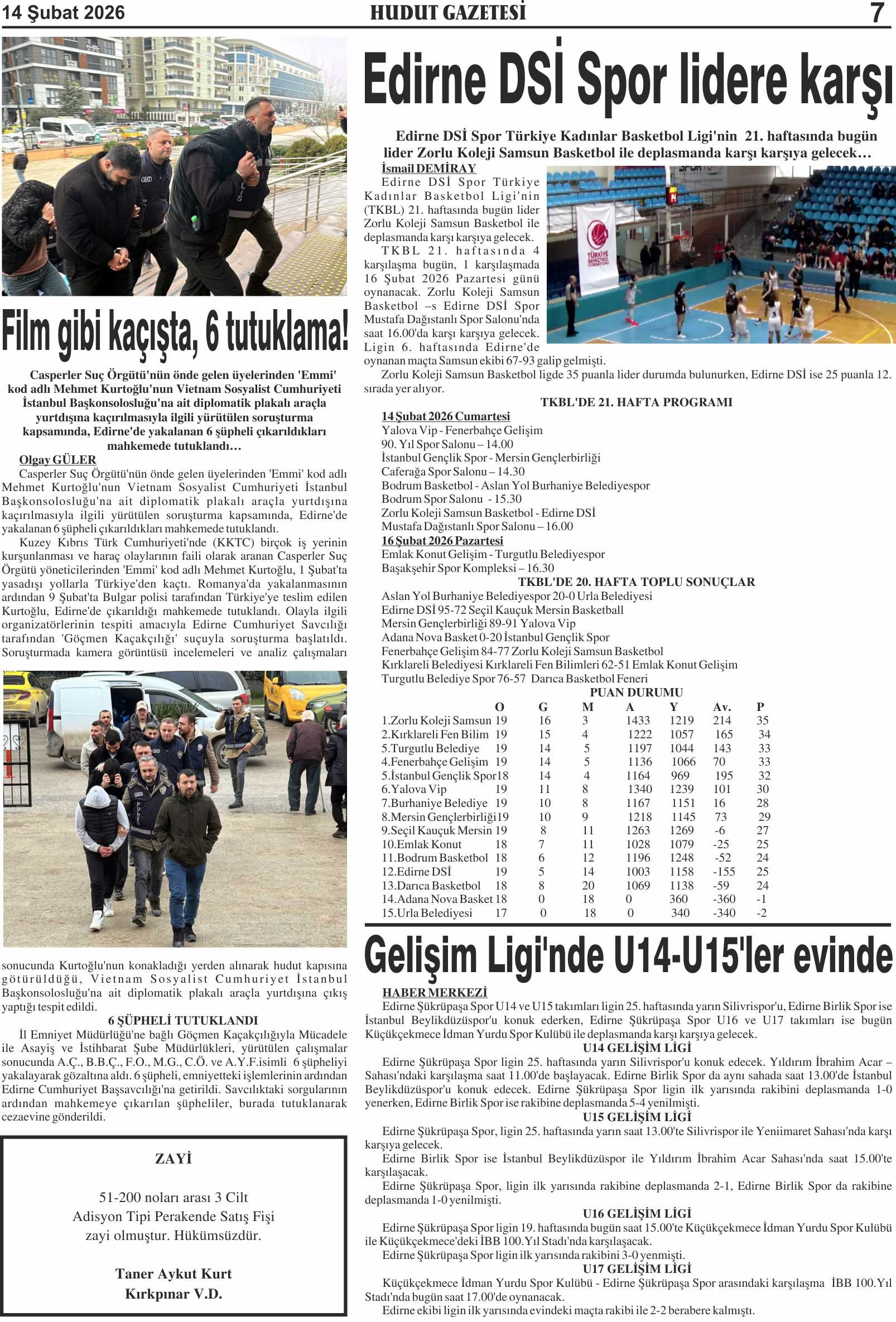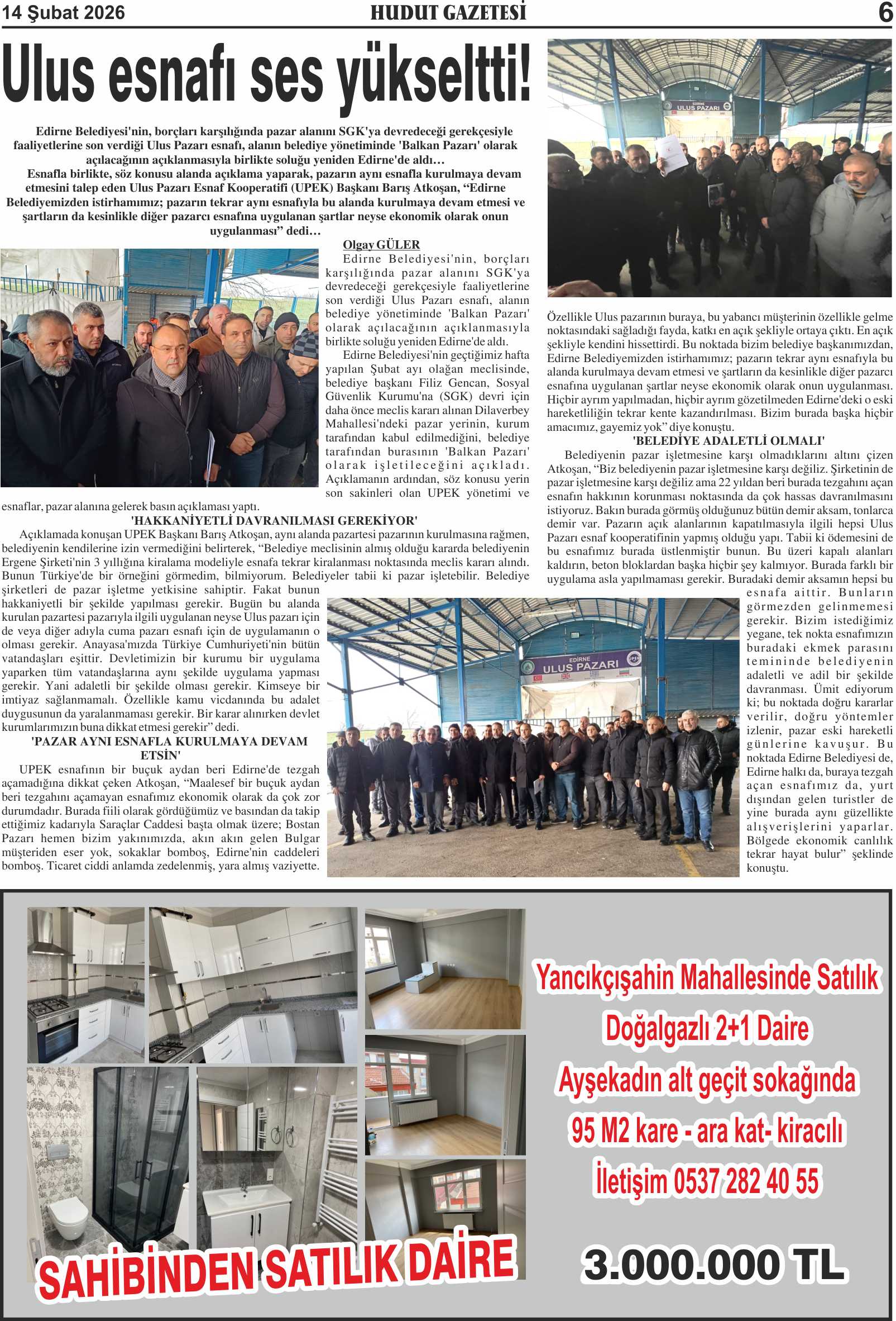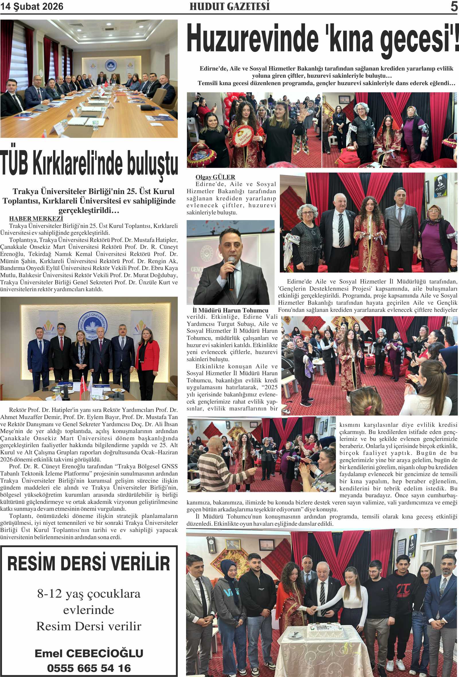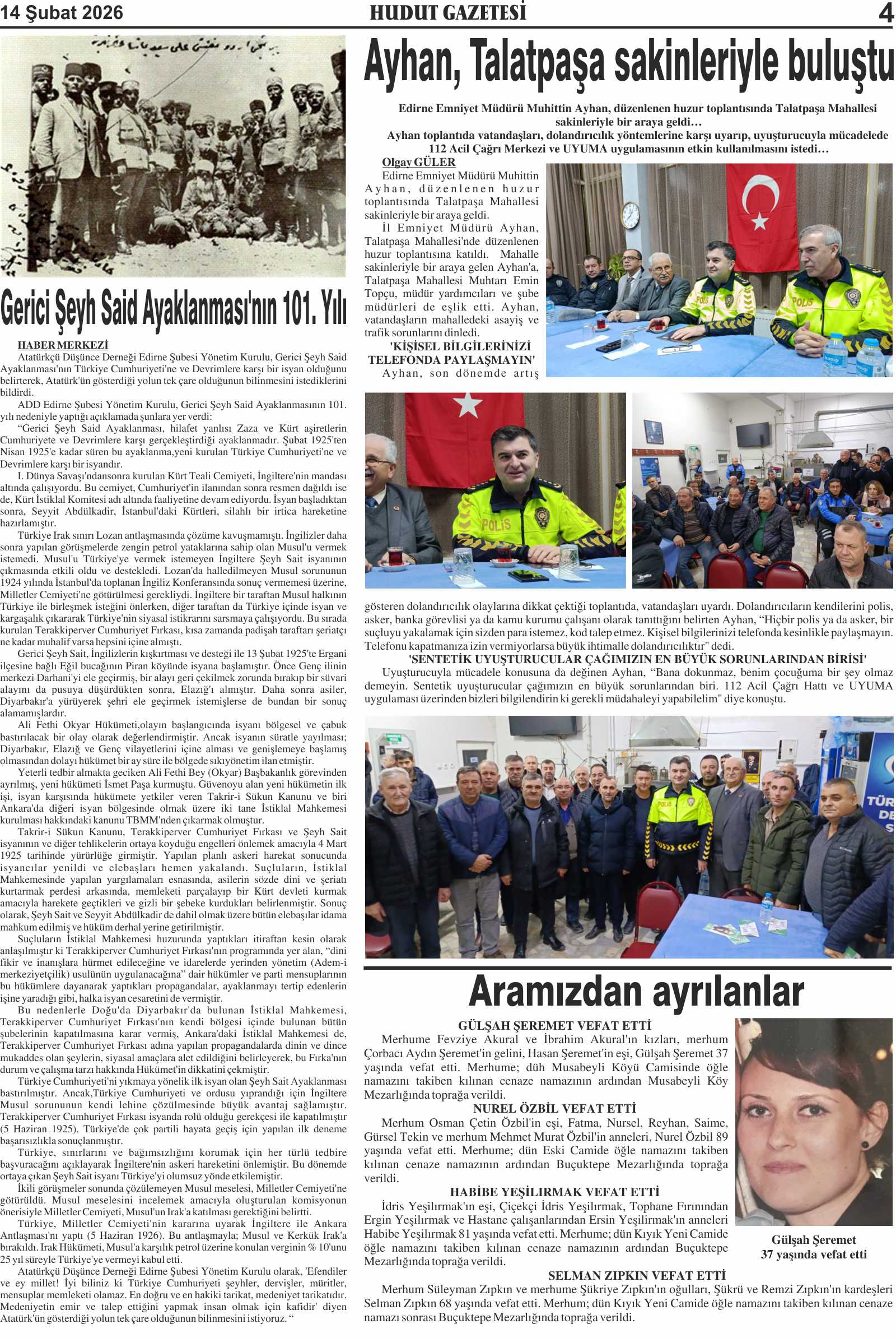 14 Şubat 2026 Cumartesi Hudut Gazetesi