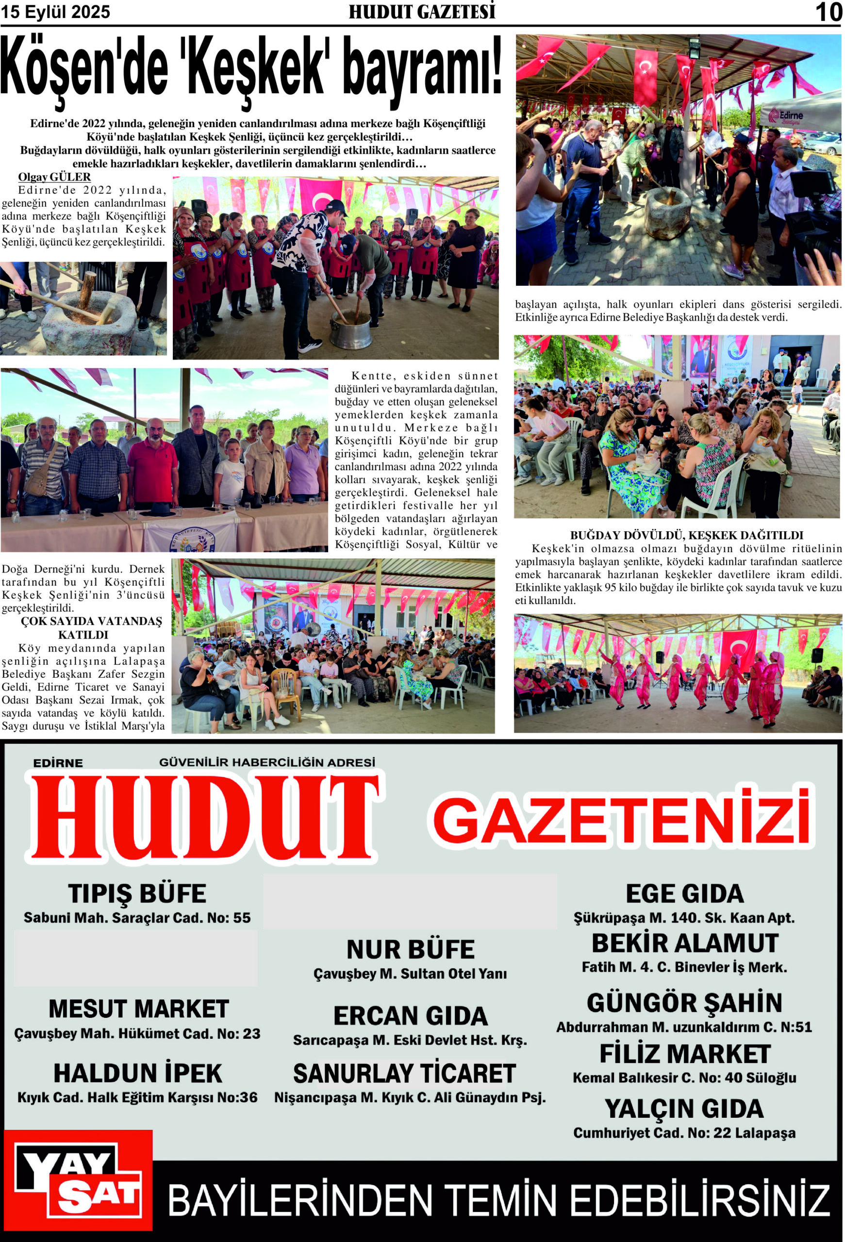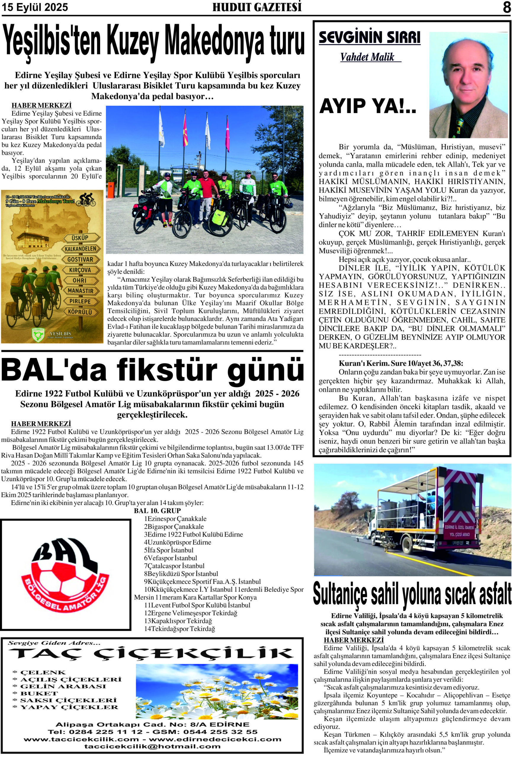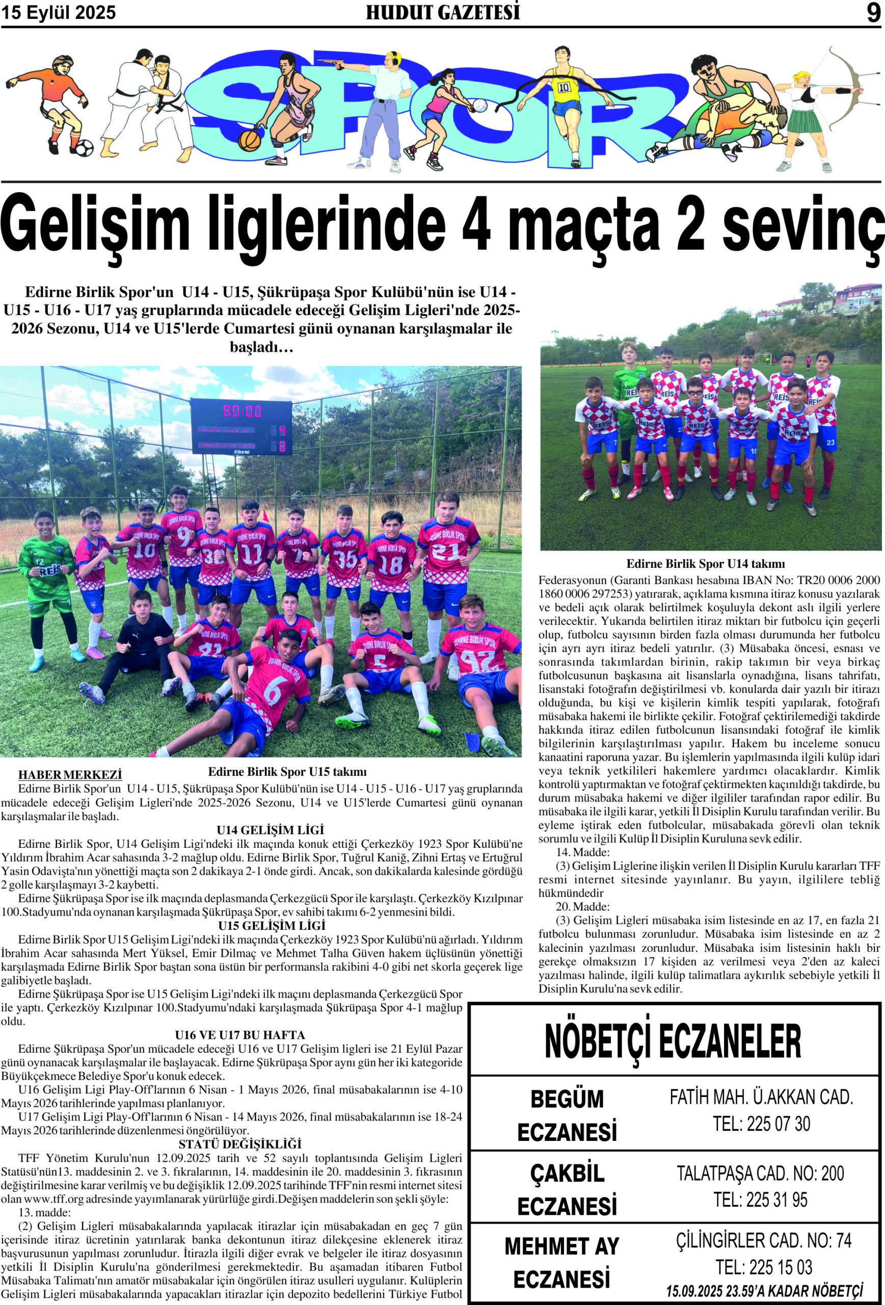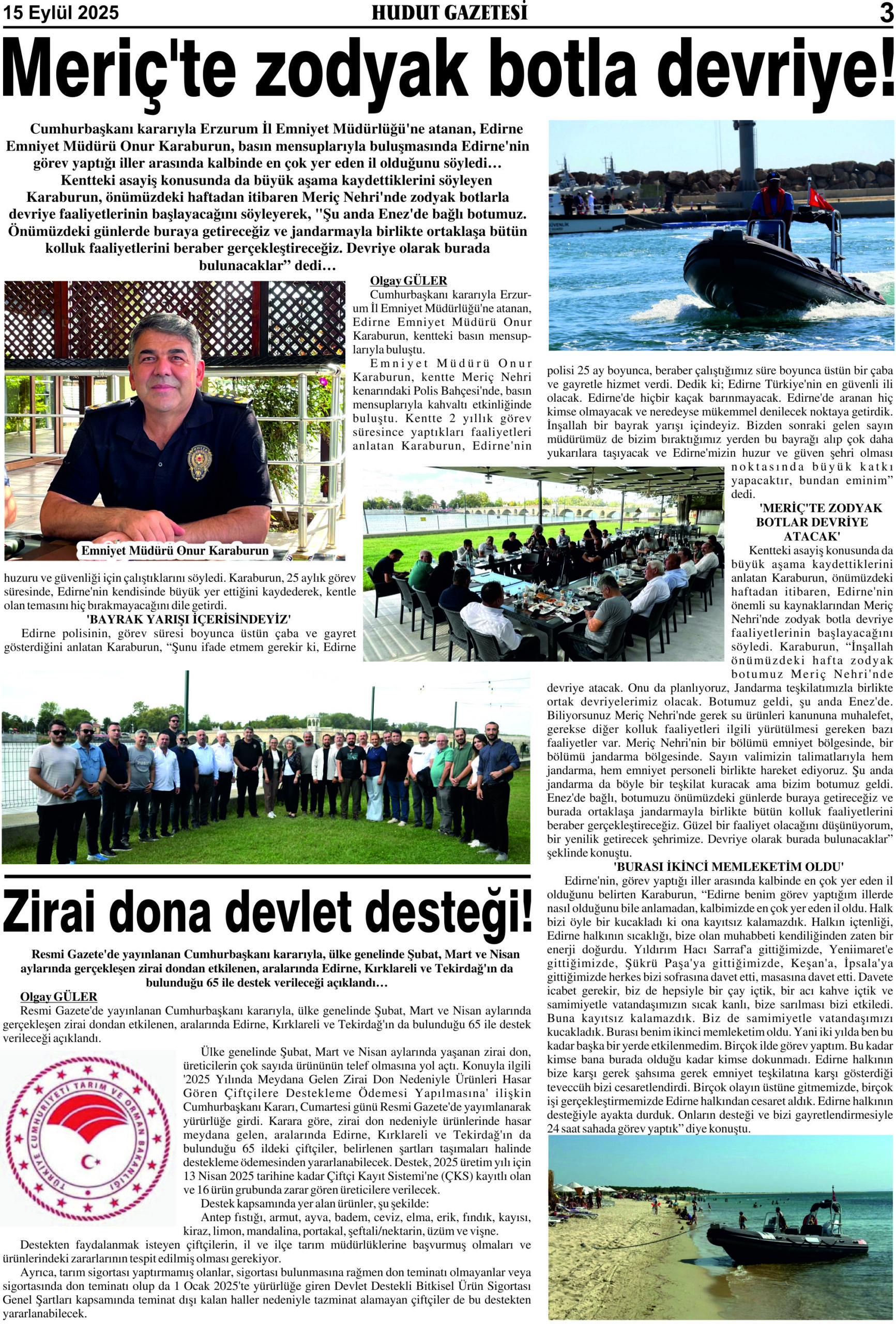 15 Eylül 2025 Pazartesi Hudut Gazetesi