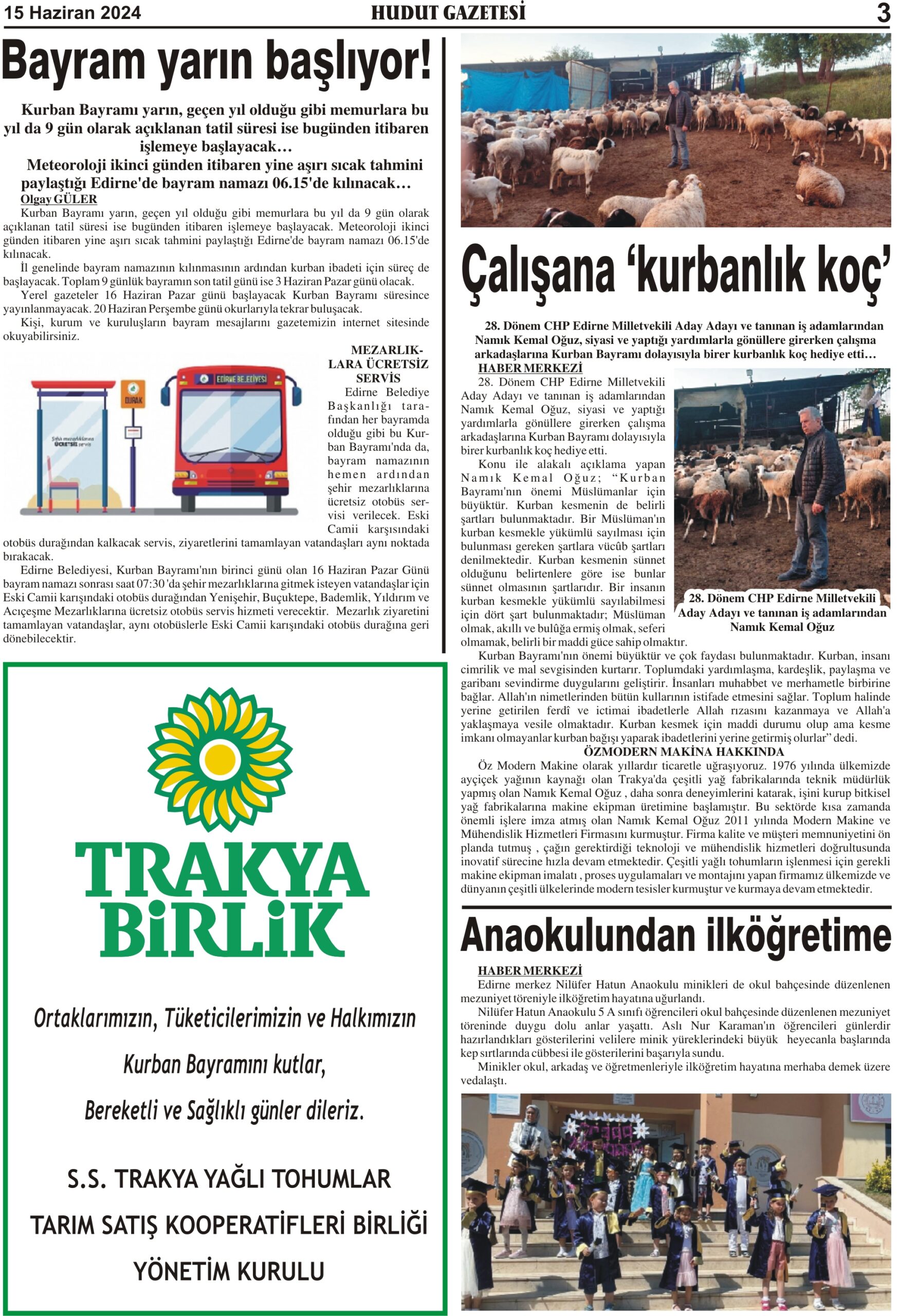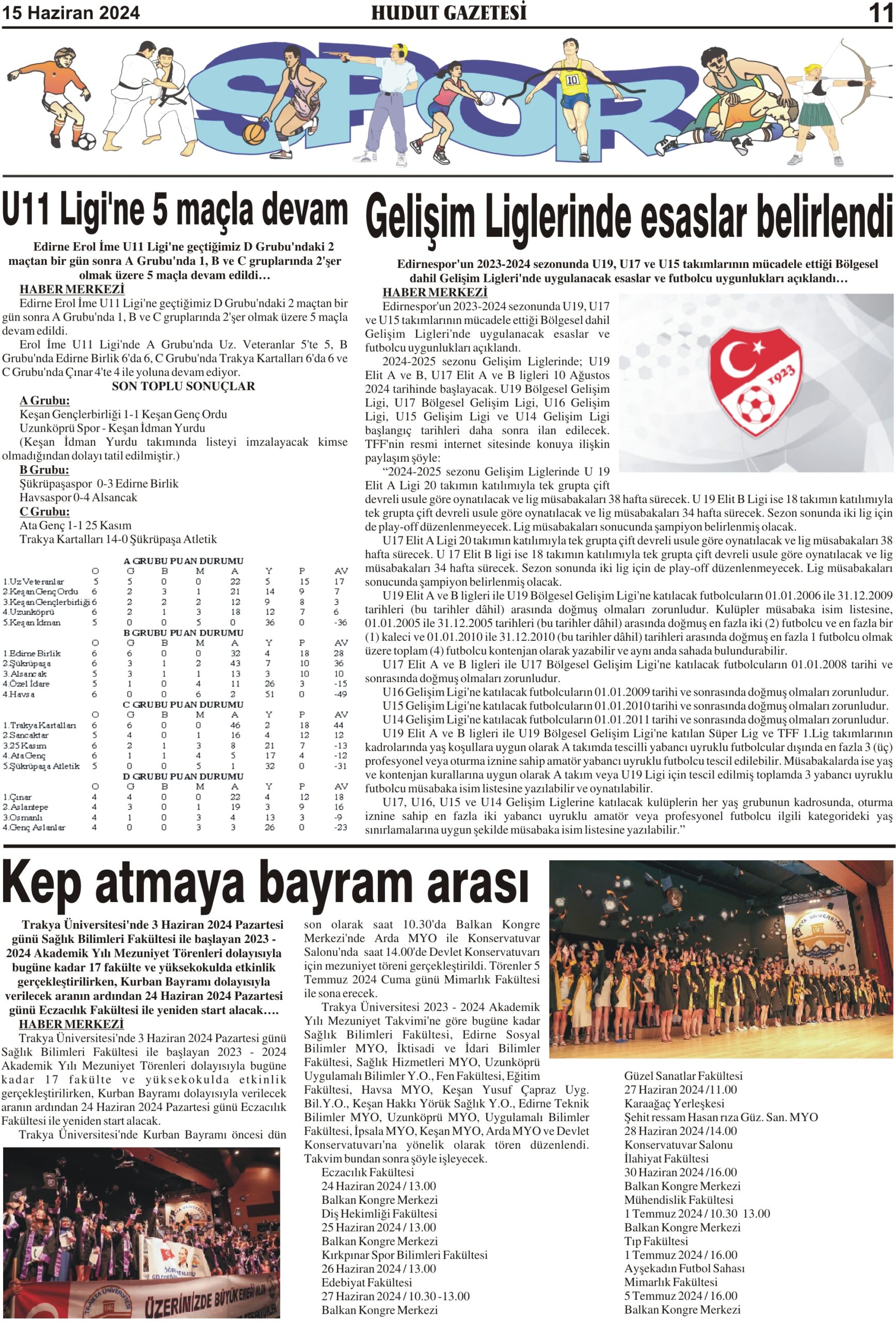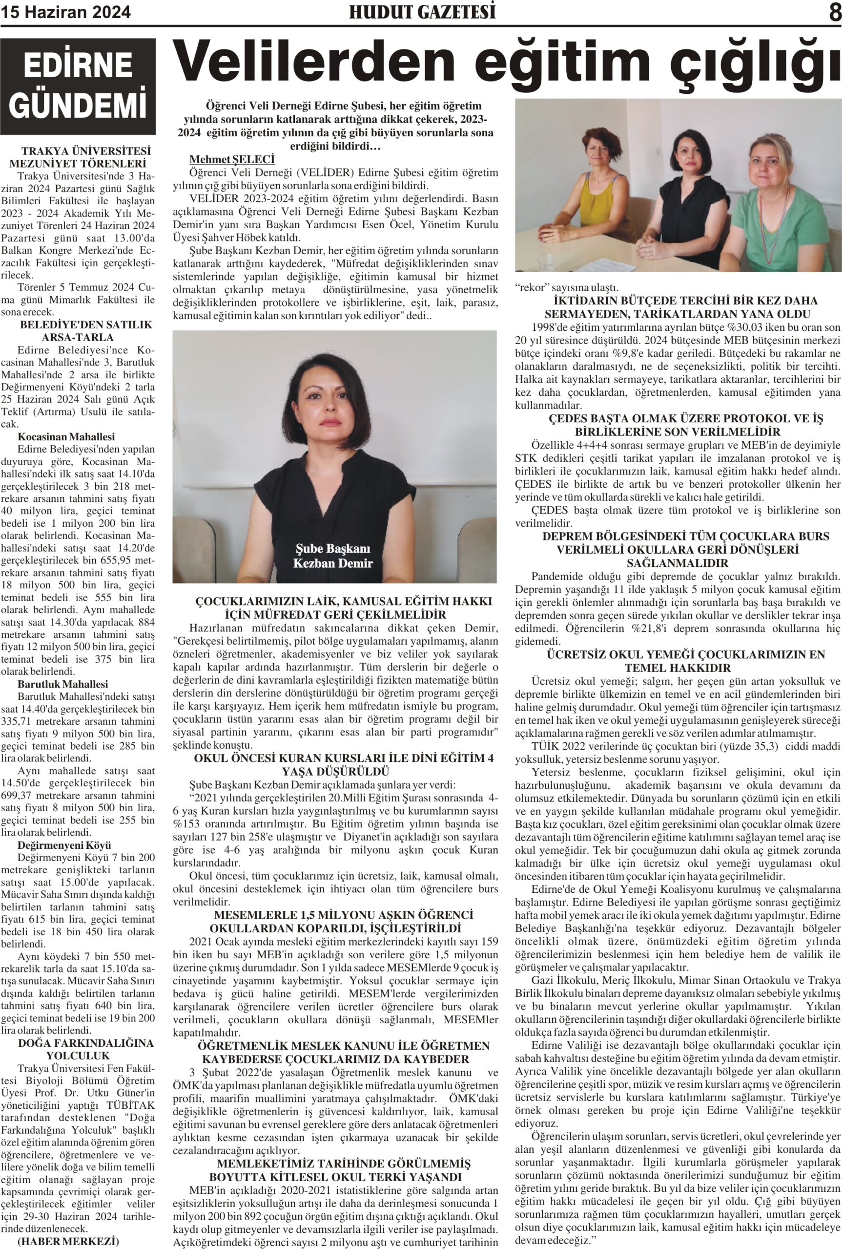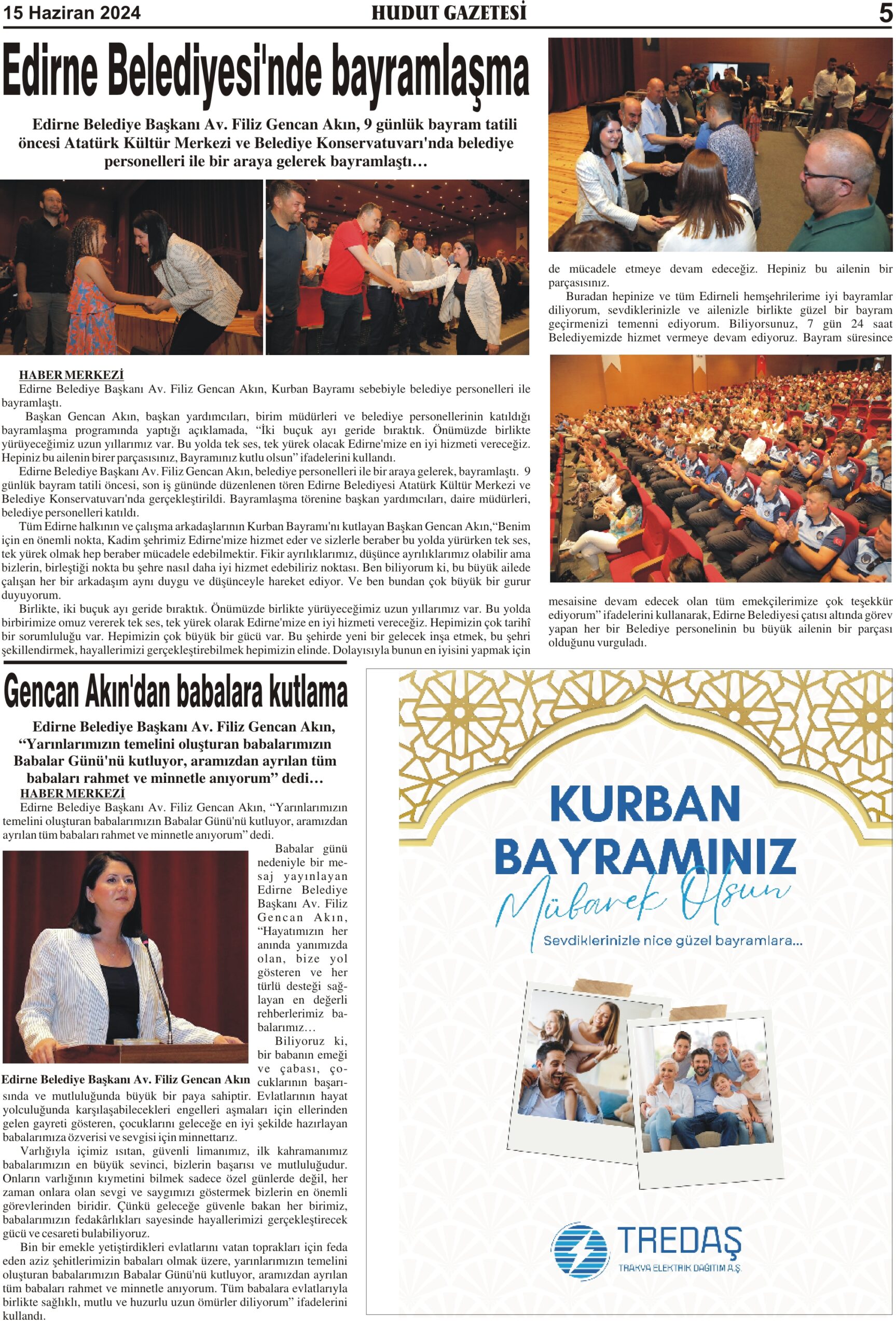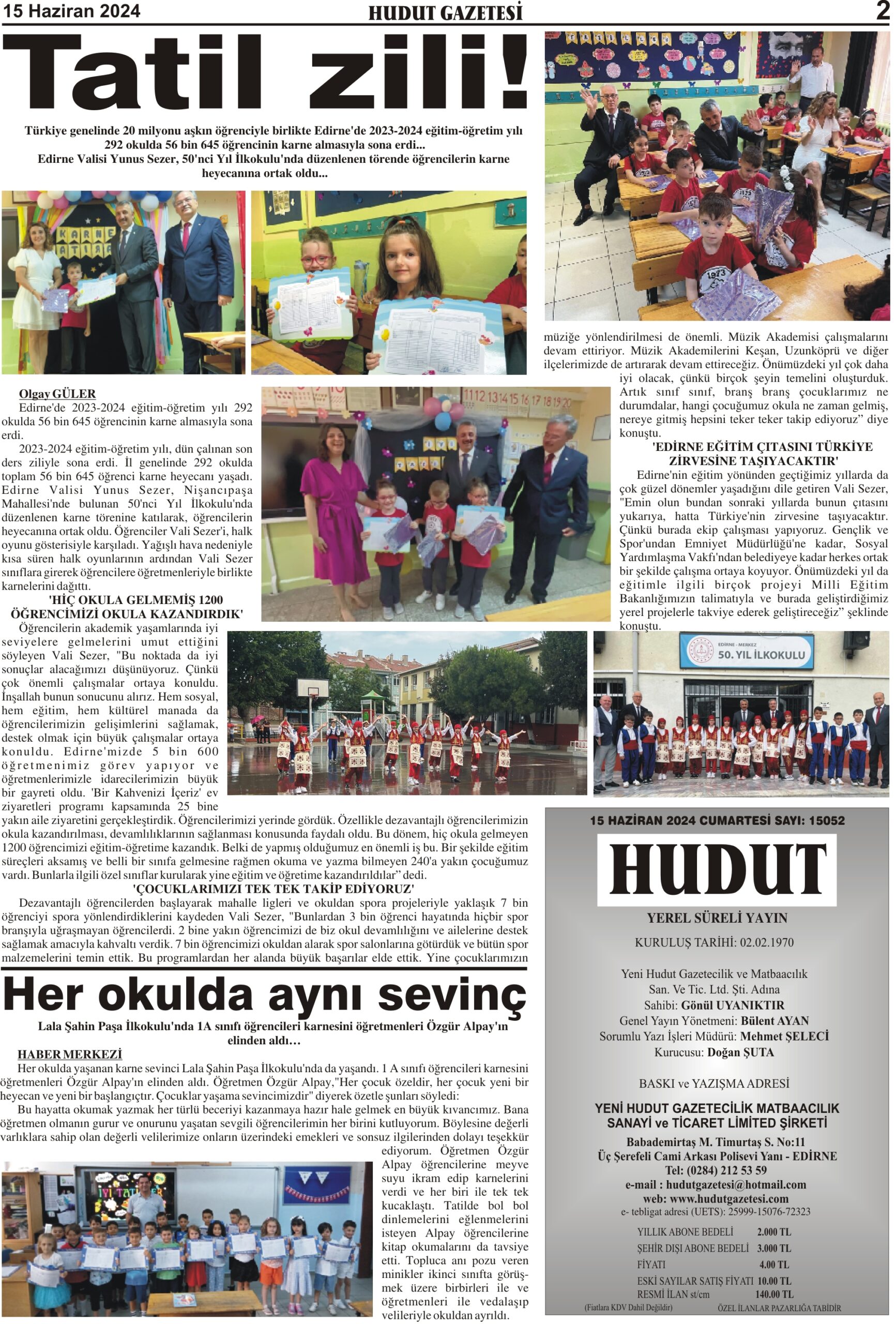 15 Haziran 2024 Cumartesi Hudut Gazetesi