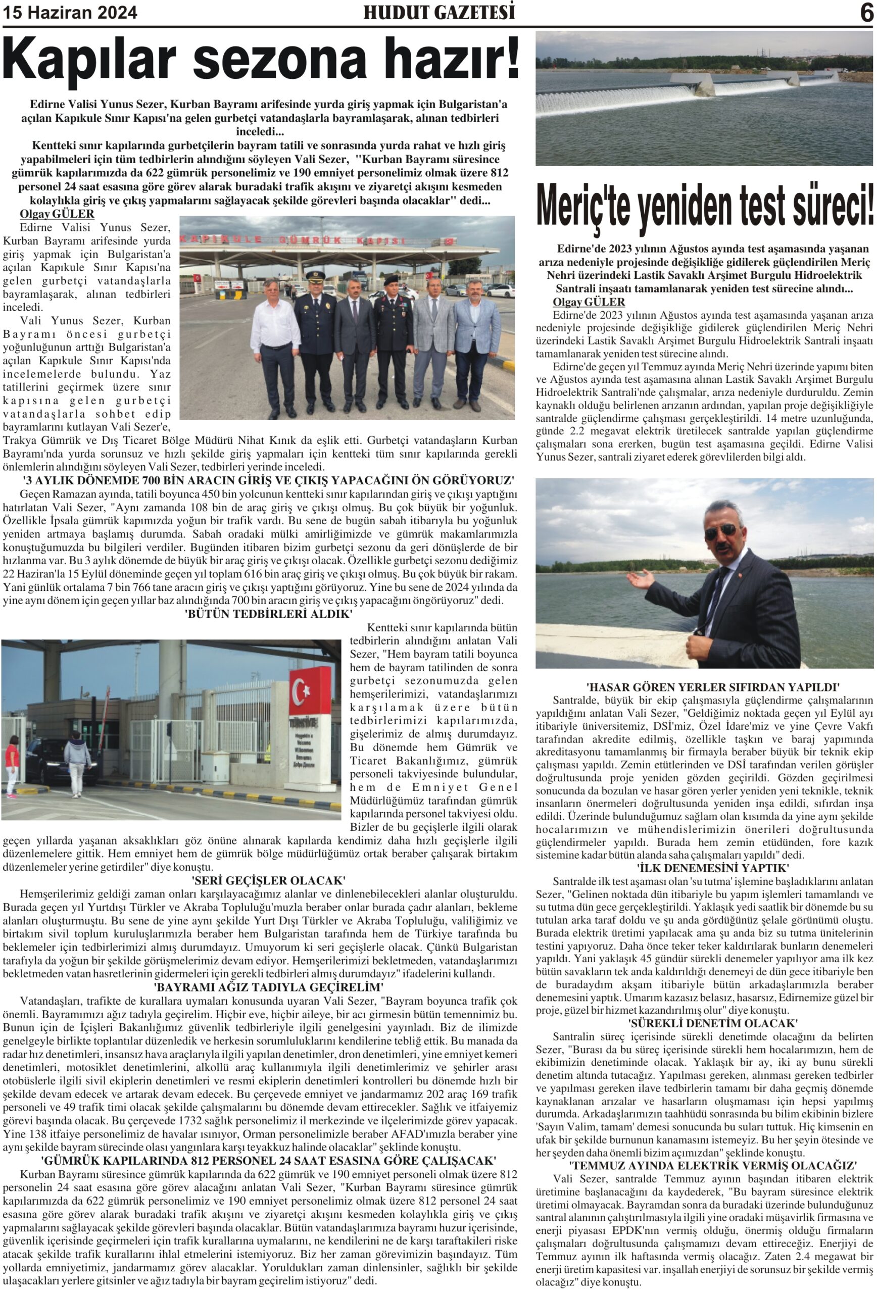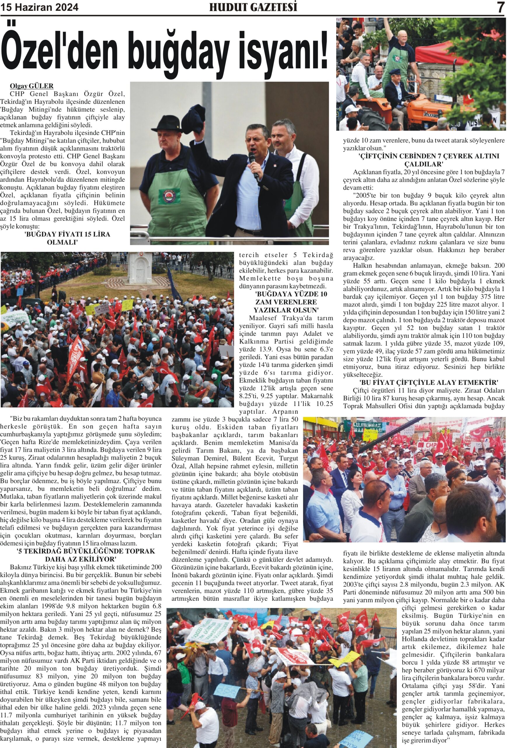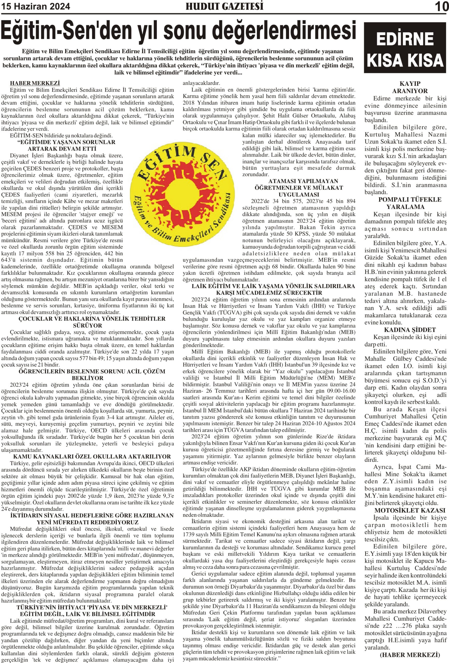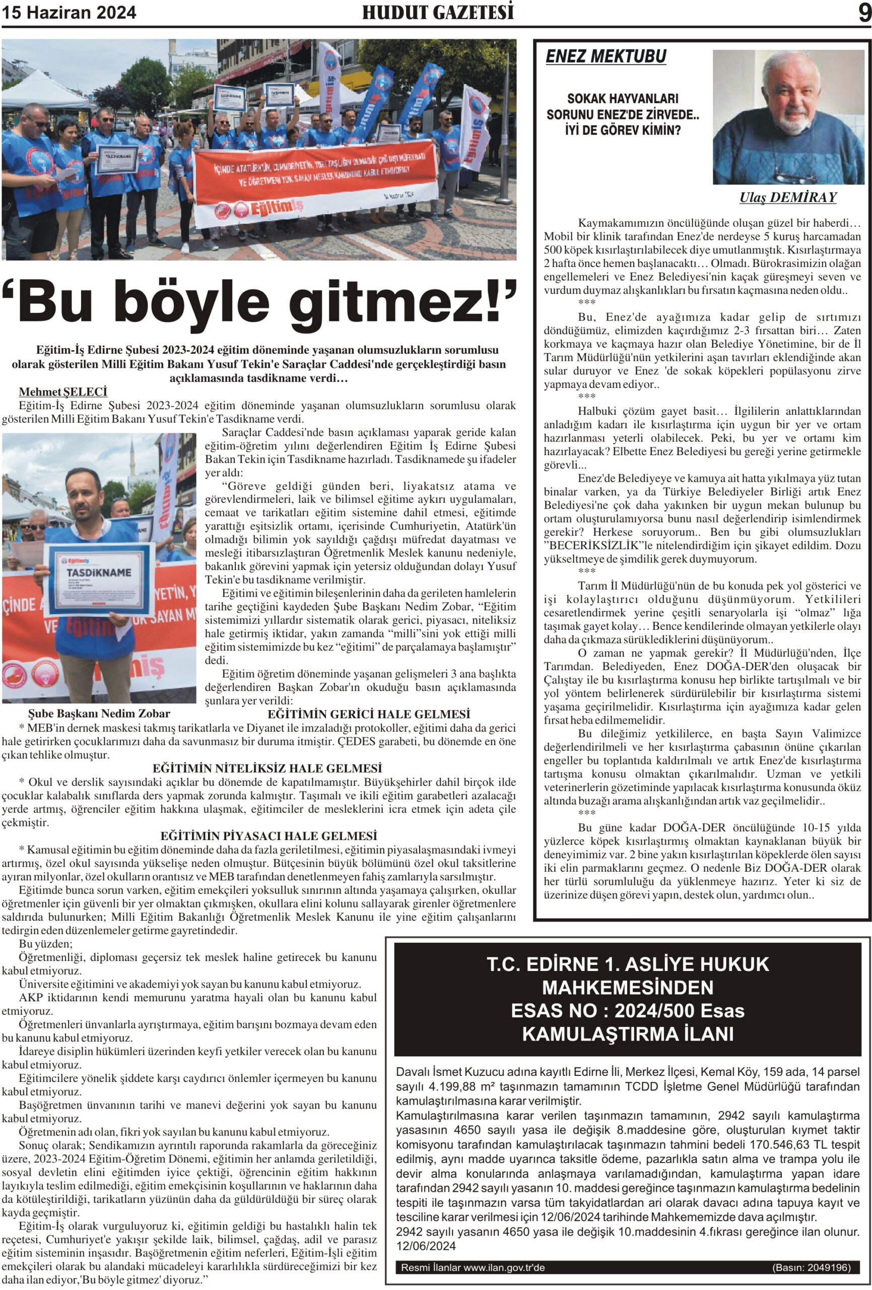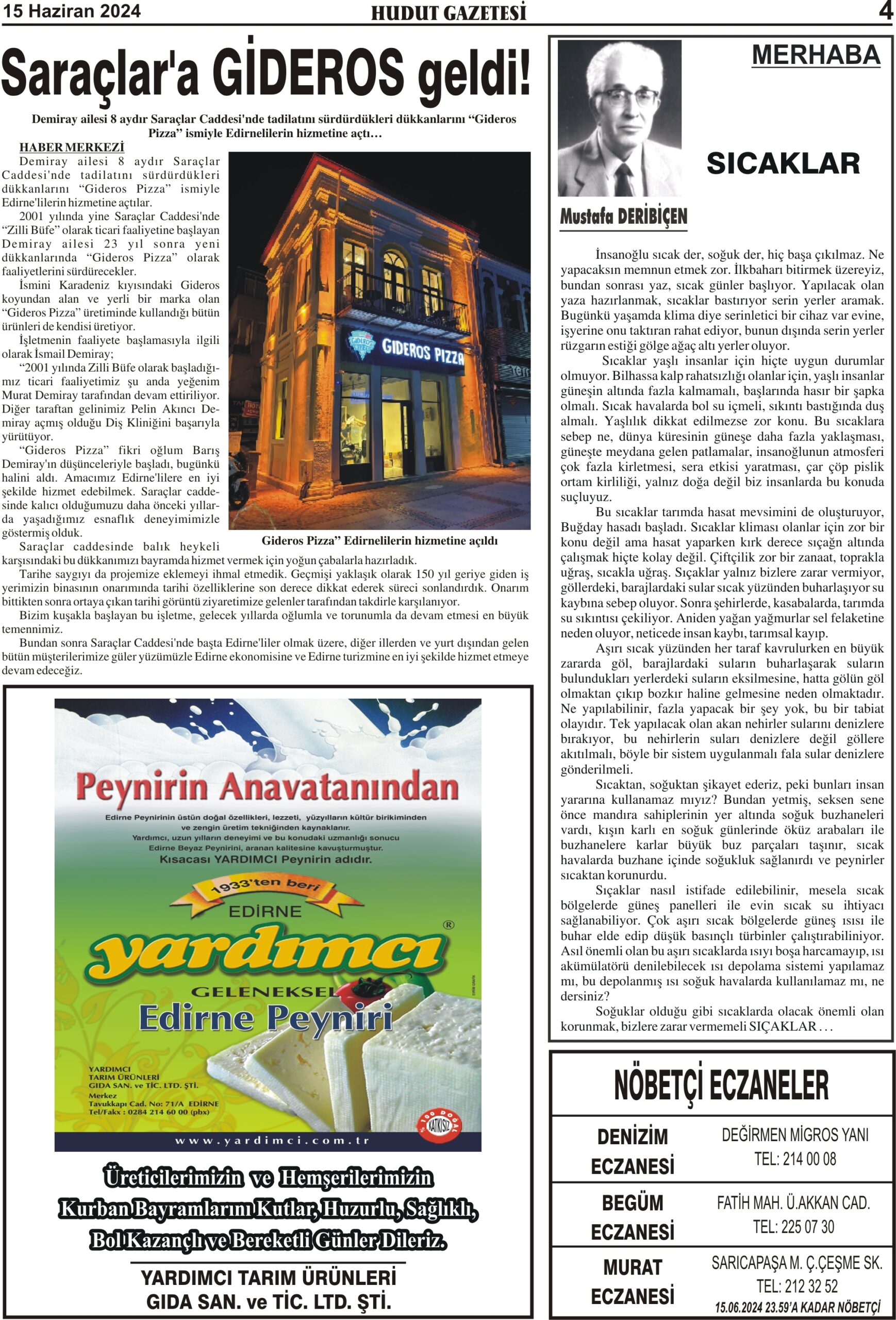 15 Haziran 2024 Cumartesi Hudut Gazetesi