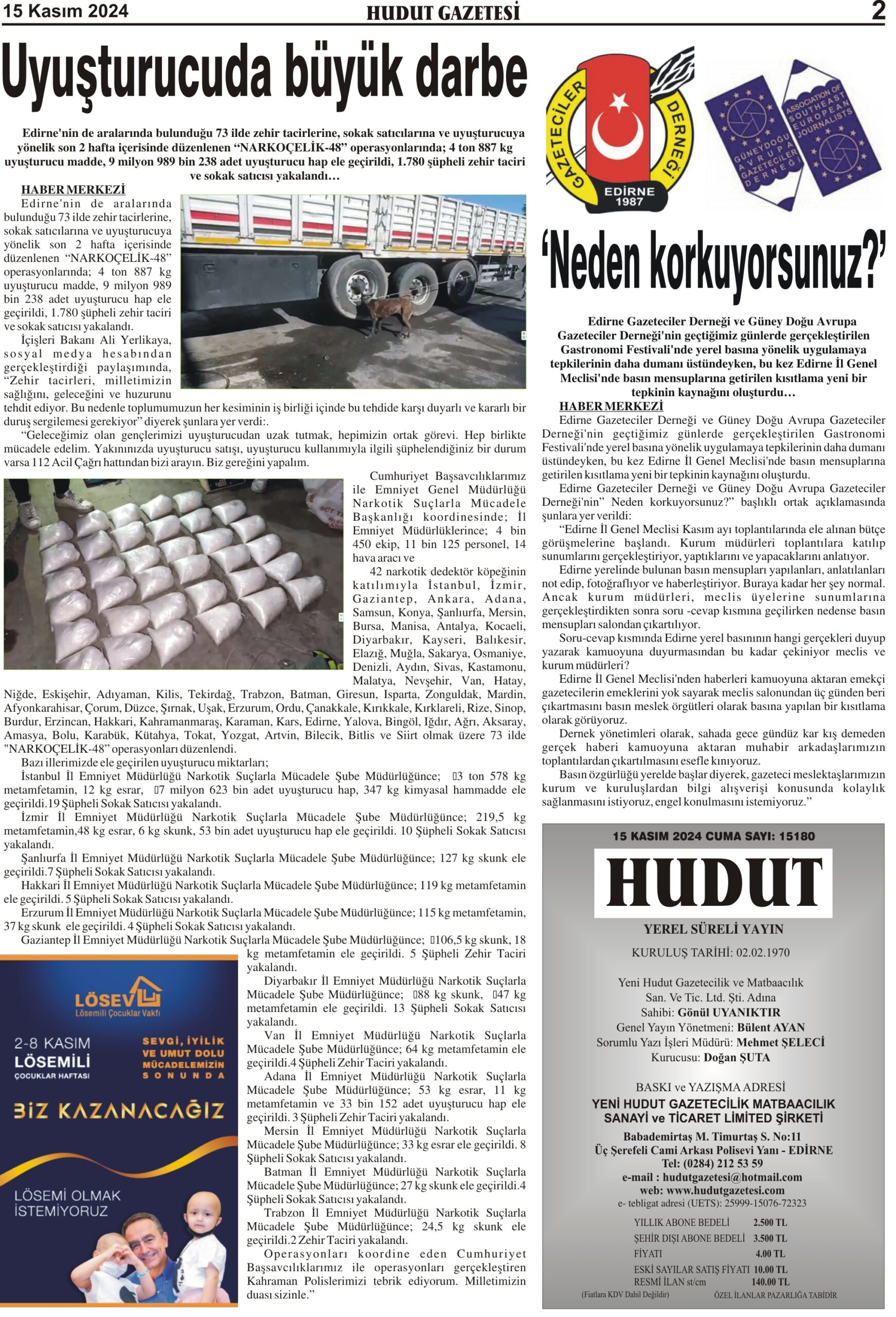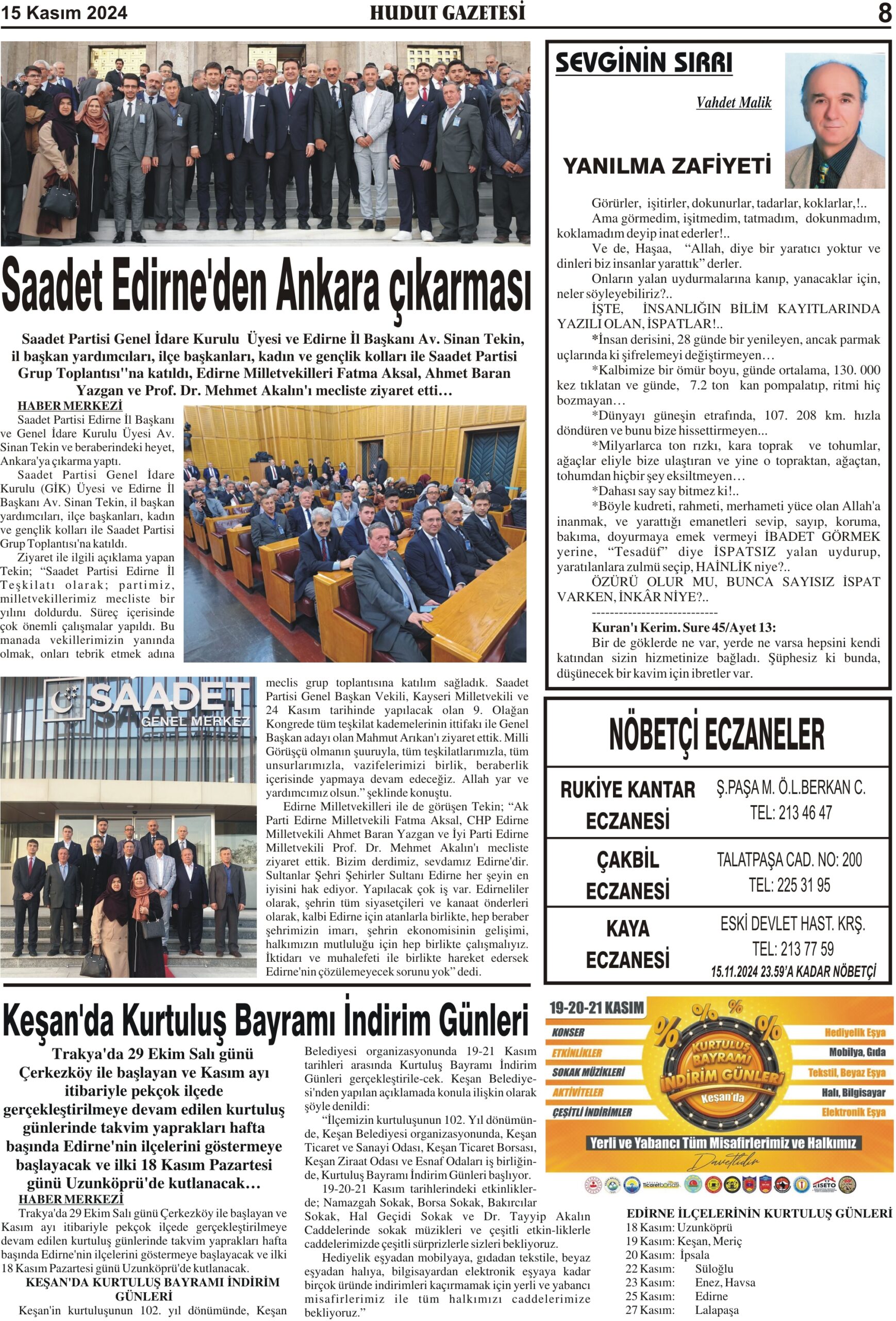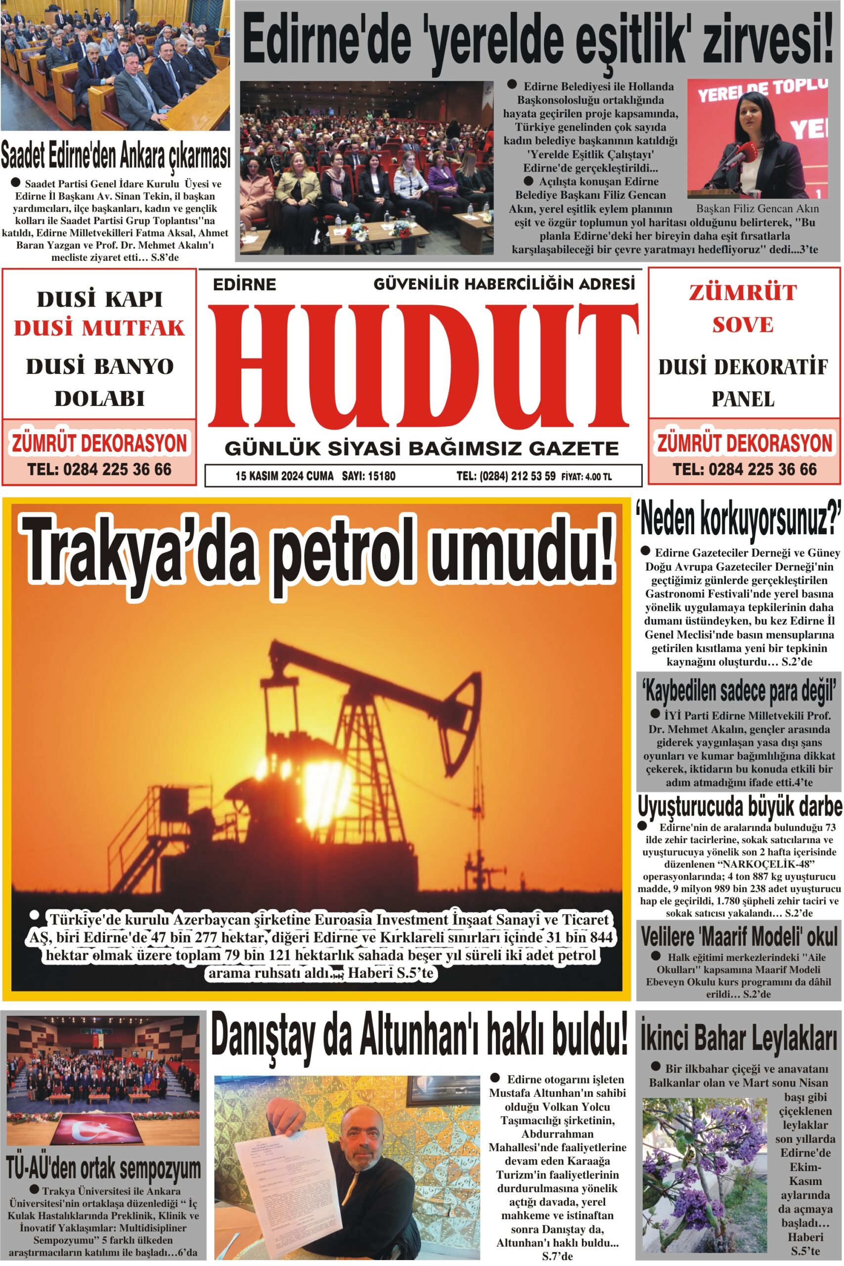 15 Kasım 2024 Cuma Hudut Gazetesi