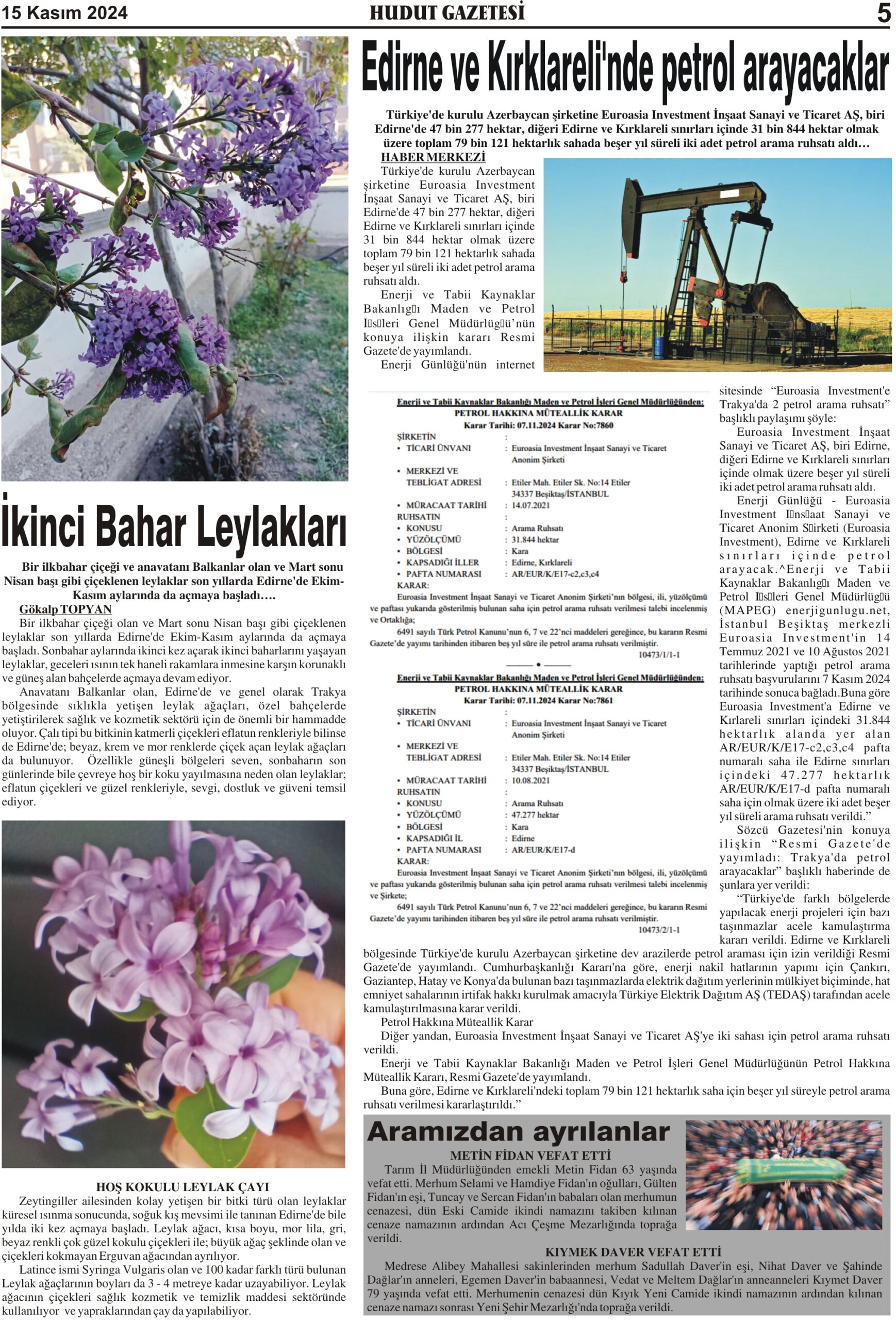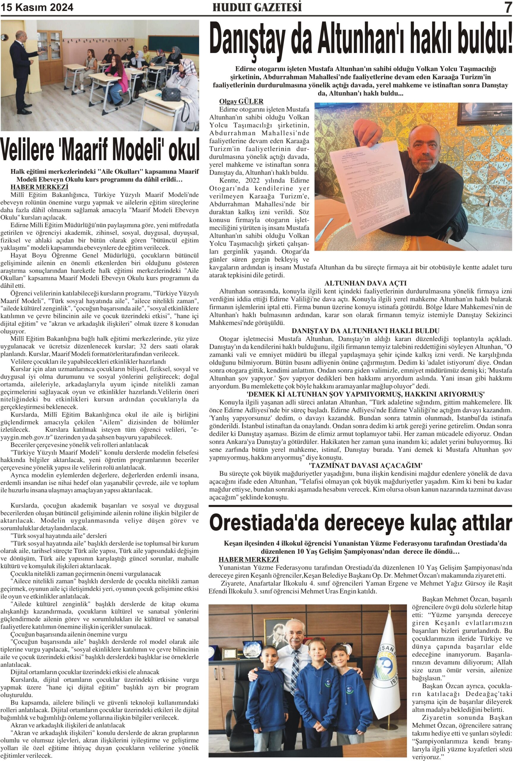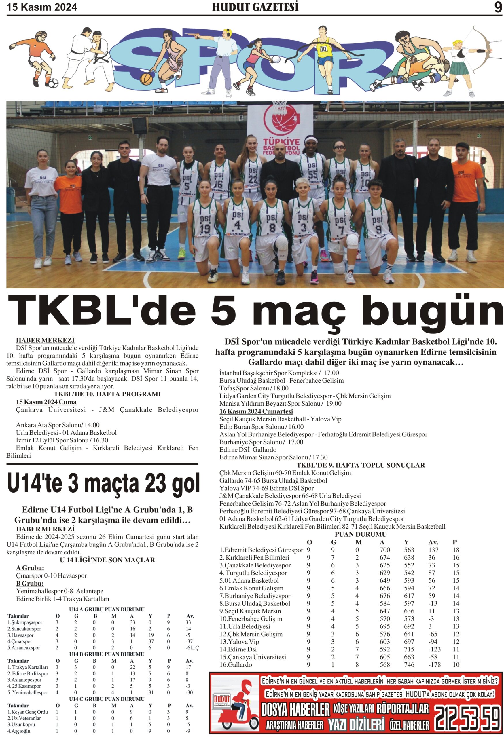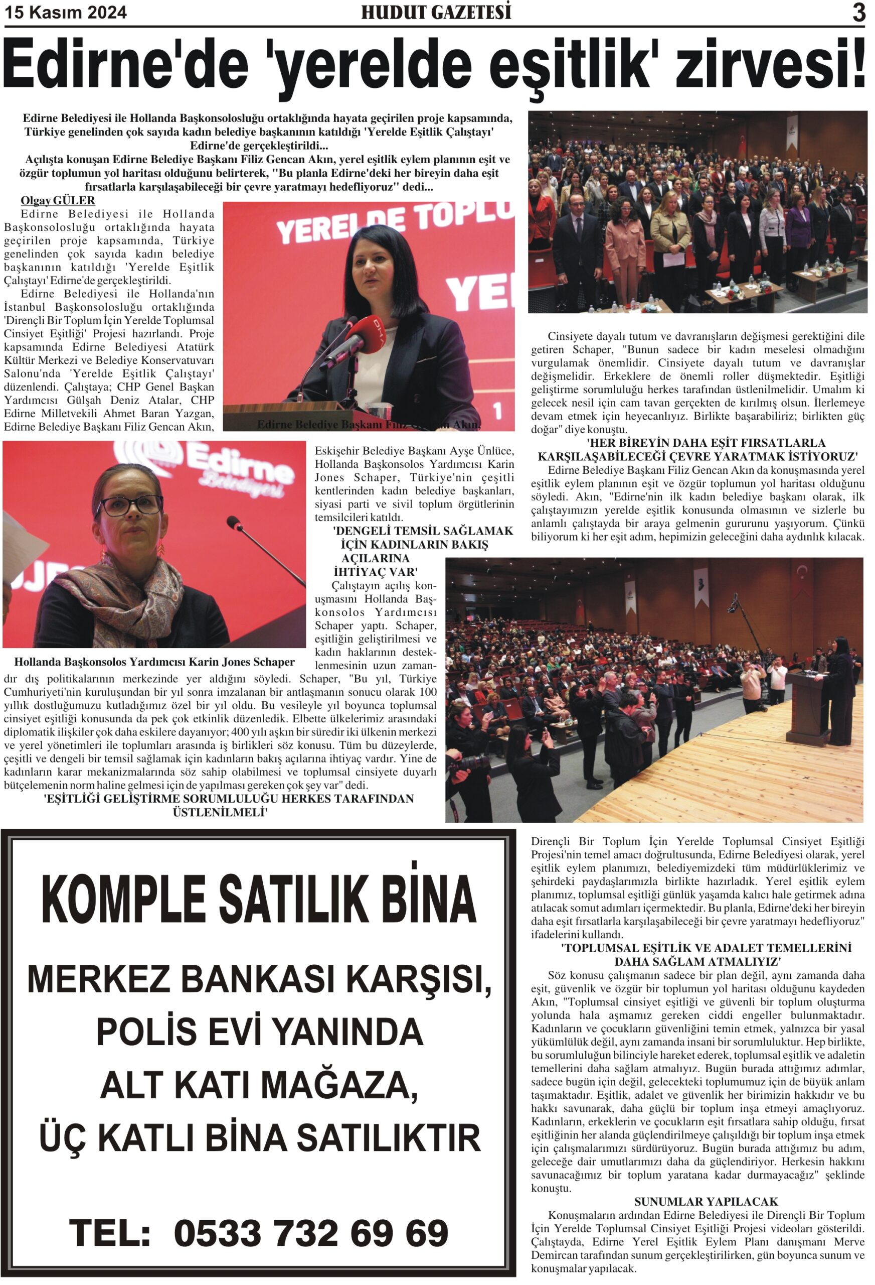 15 Kasım 2024 Cuma Hudut Gazetesi