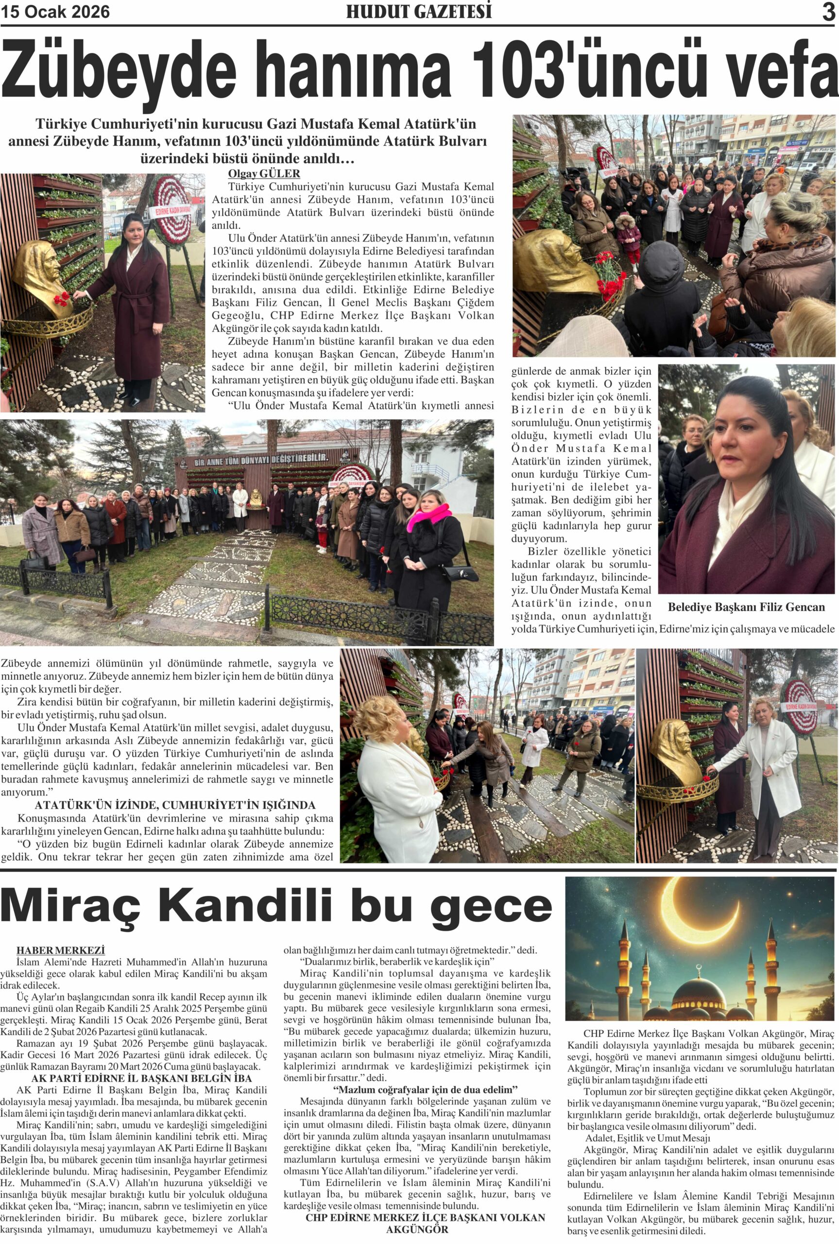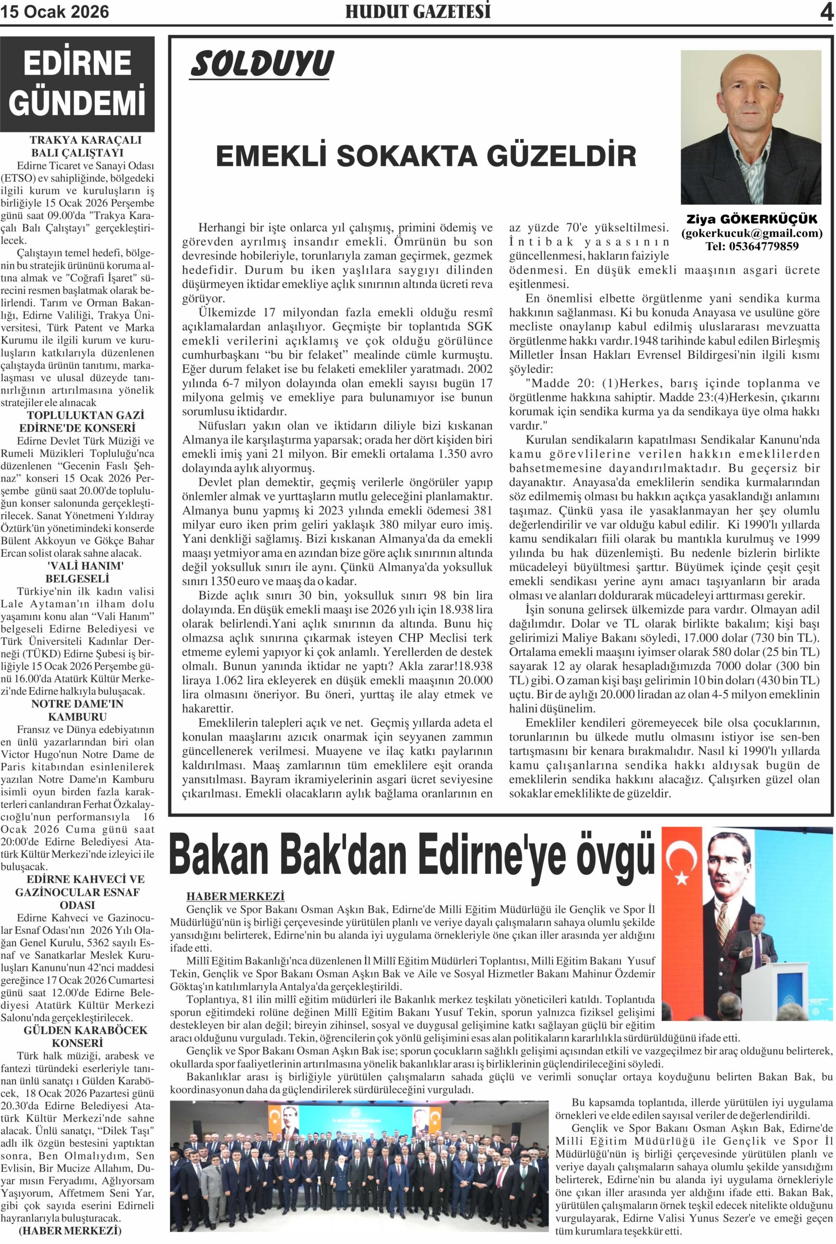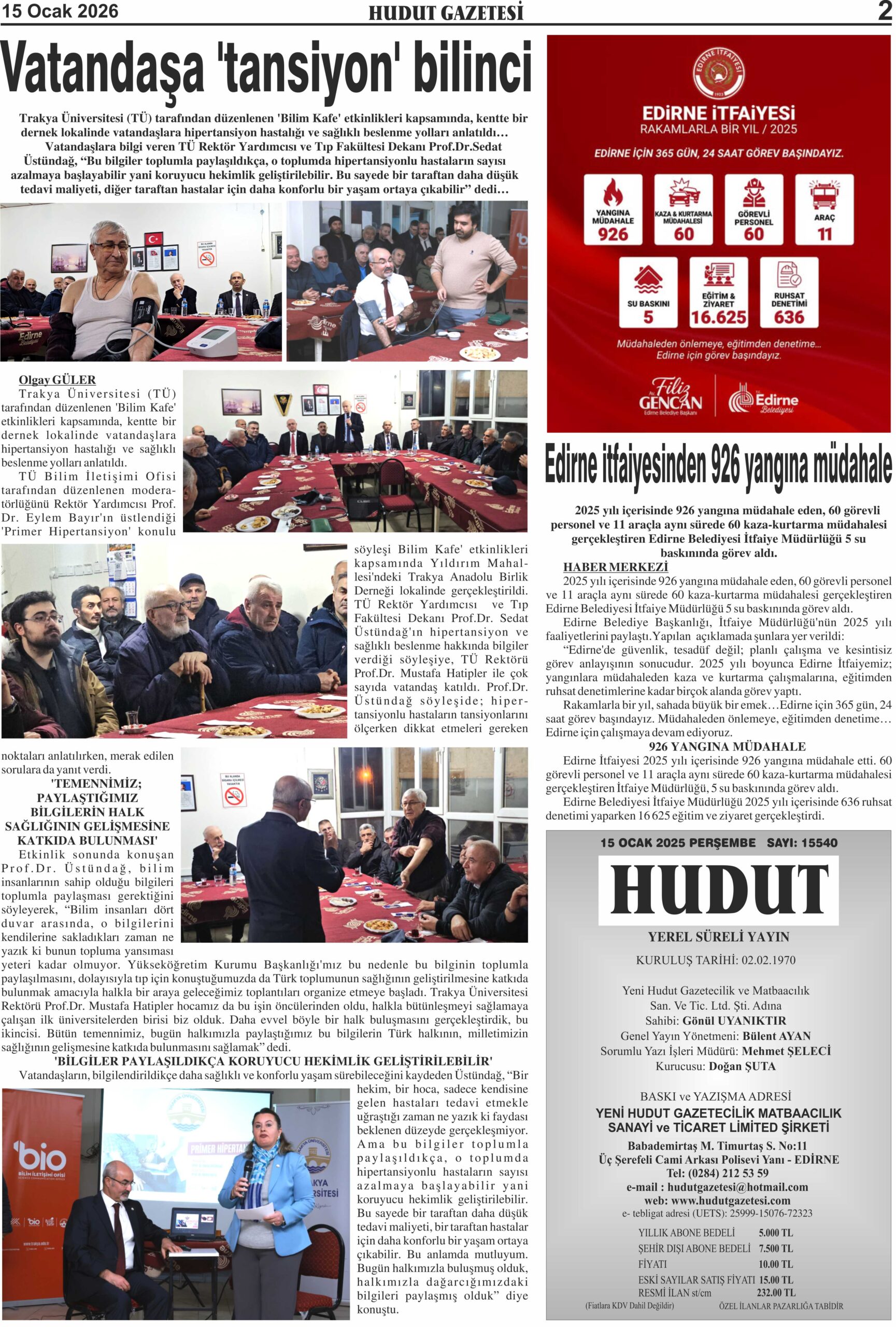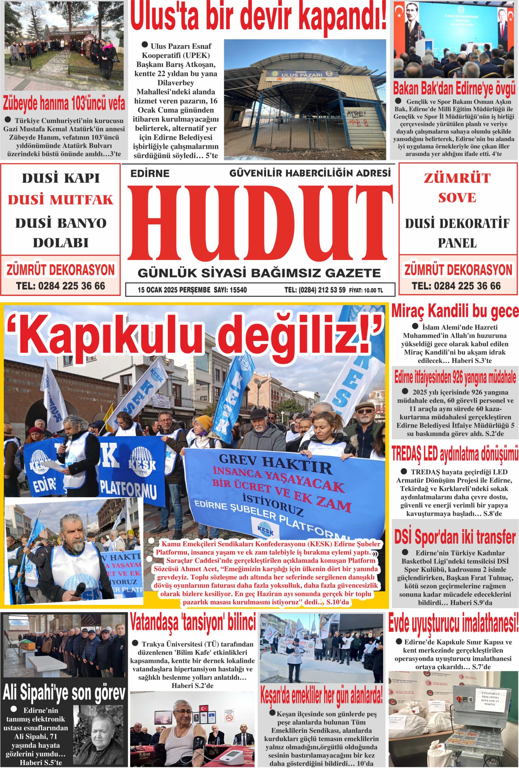 15 Ocak 2026 Perşembe Hudut Gazetesi