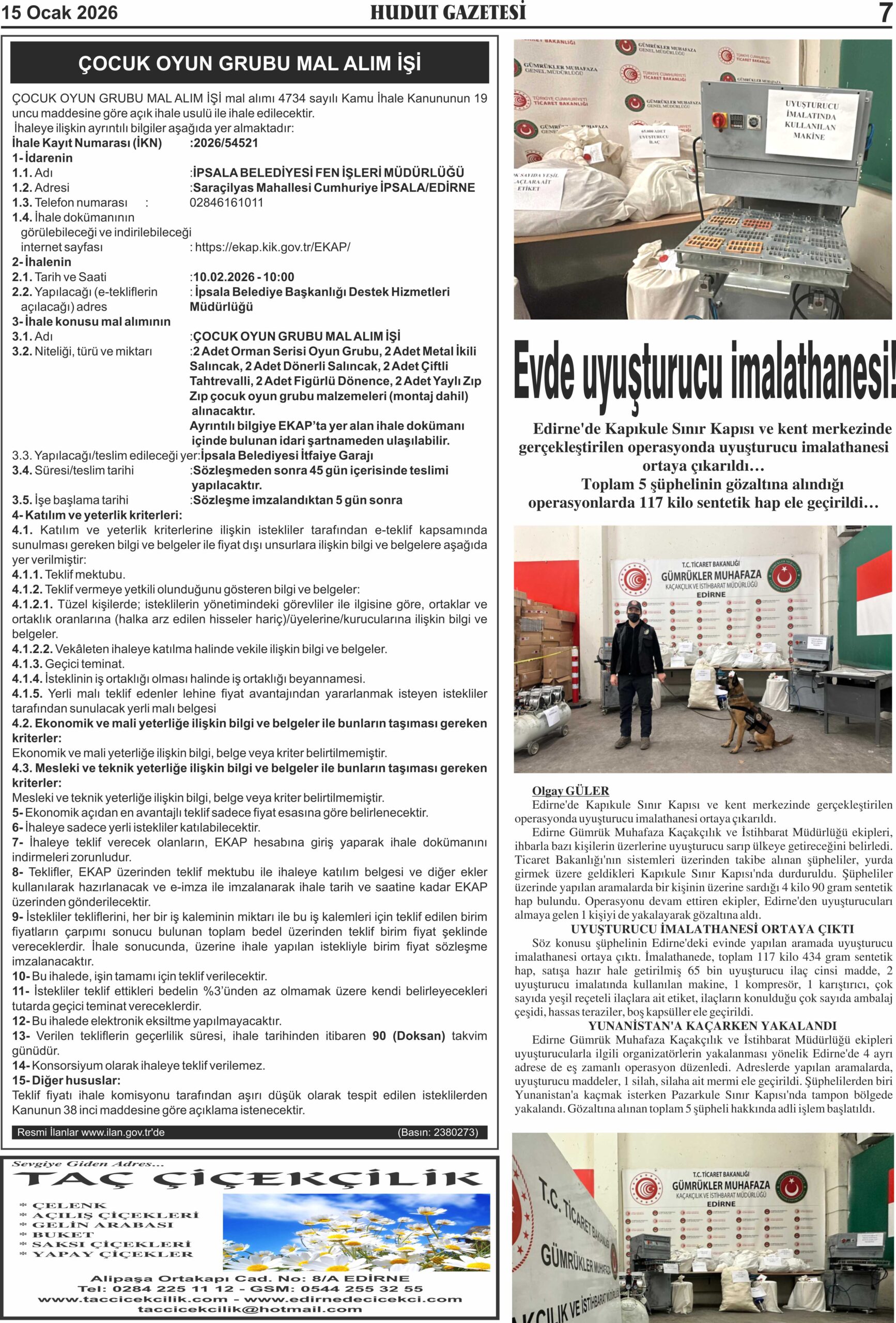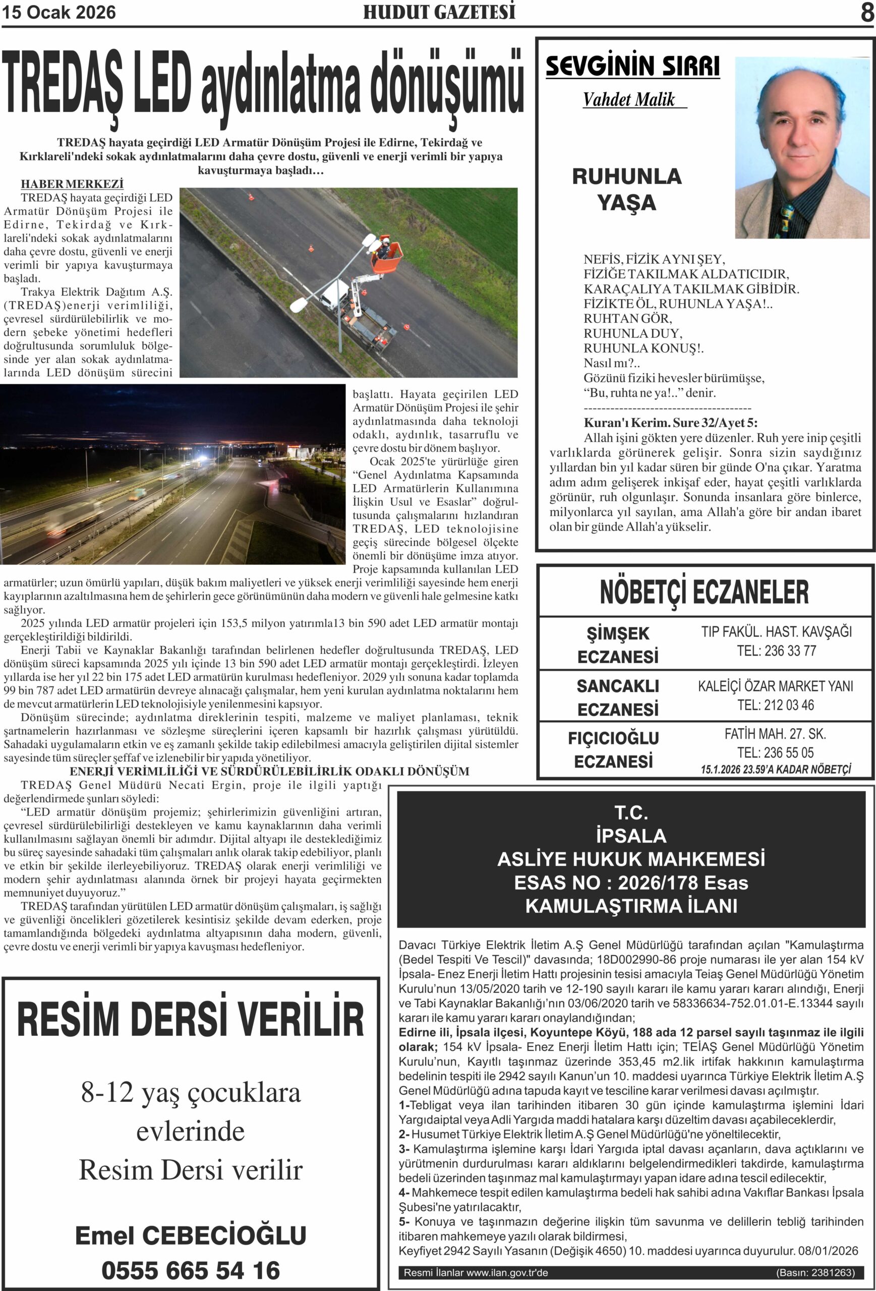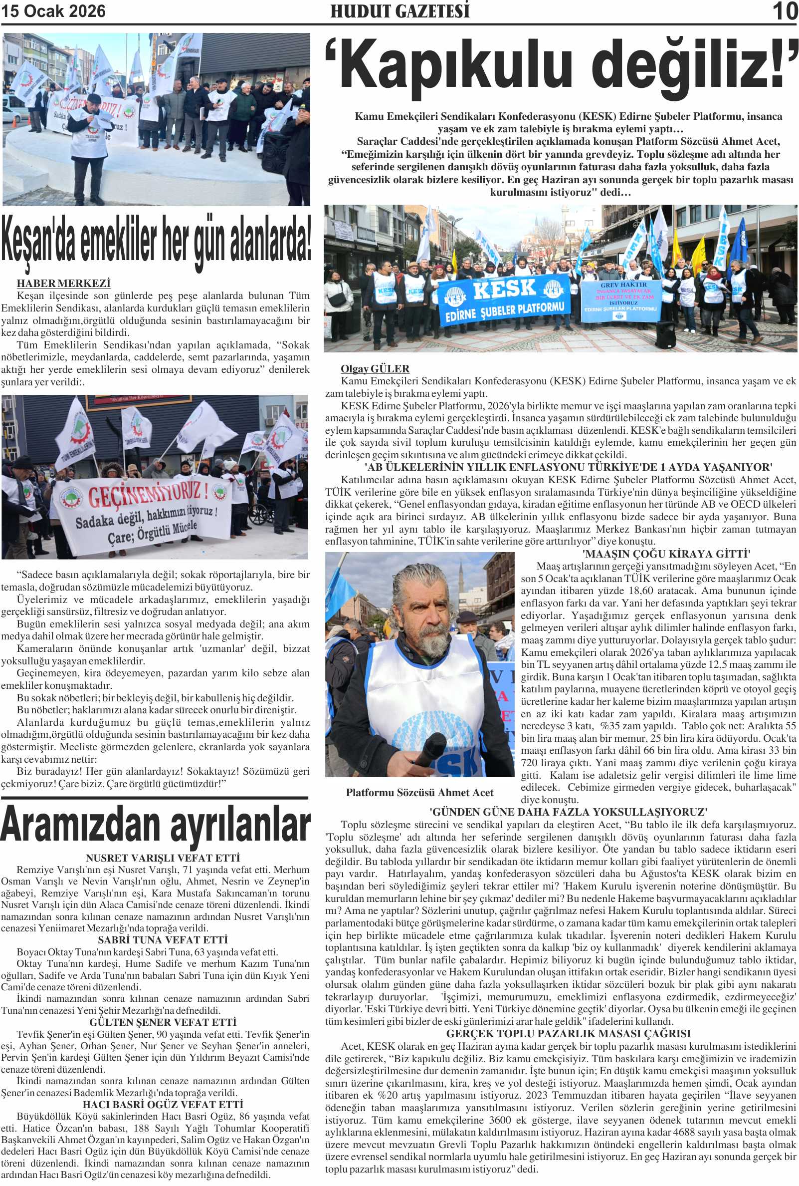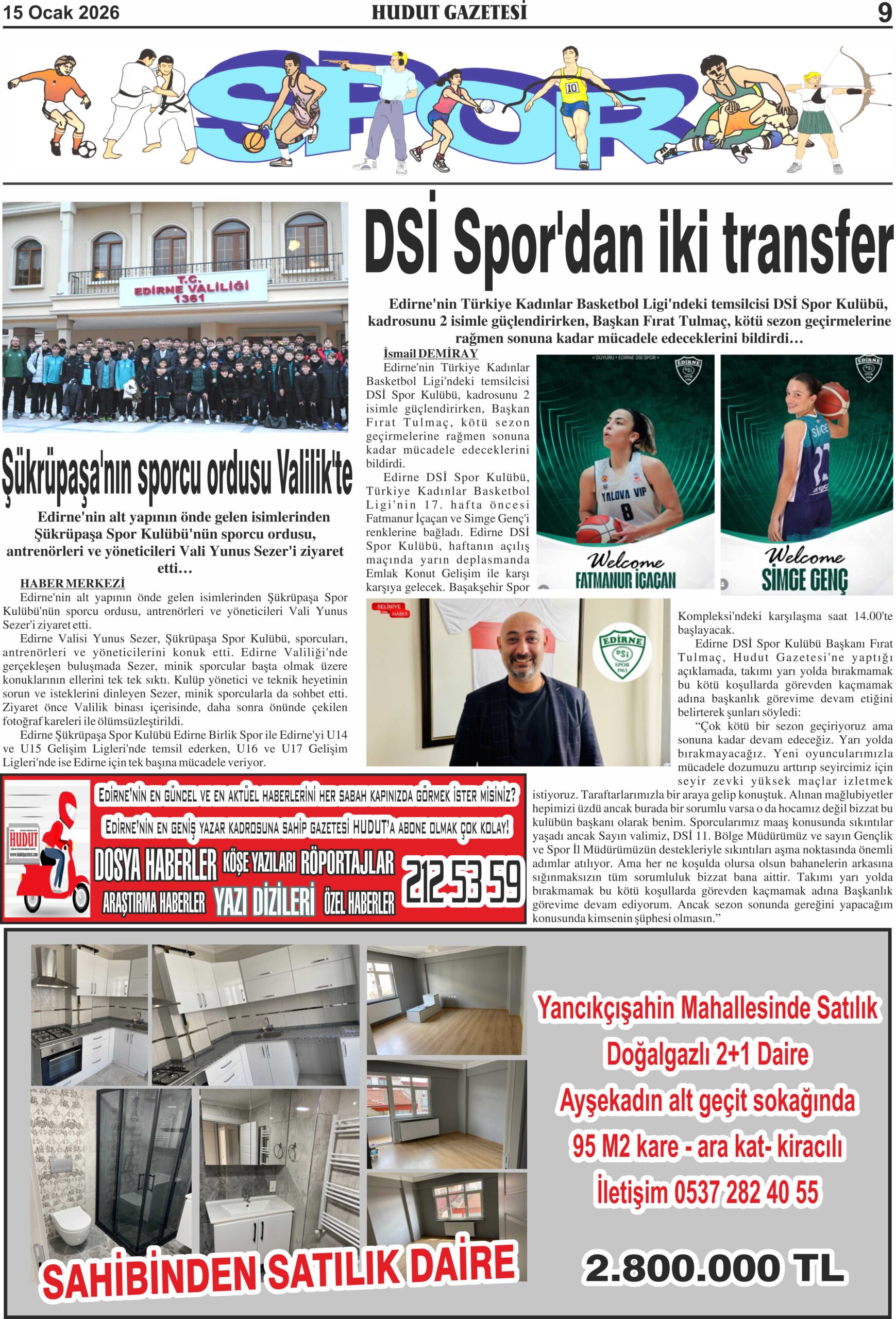 15 Ocak 2026 Perşembe Hudut Gazetesi
