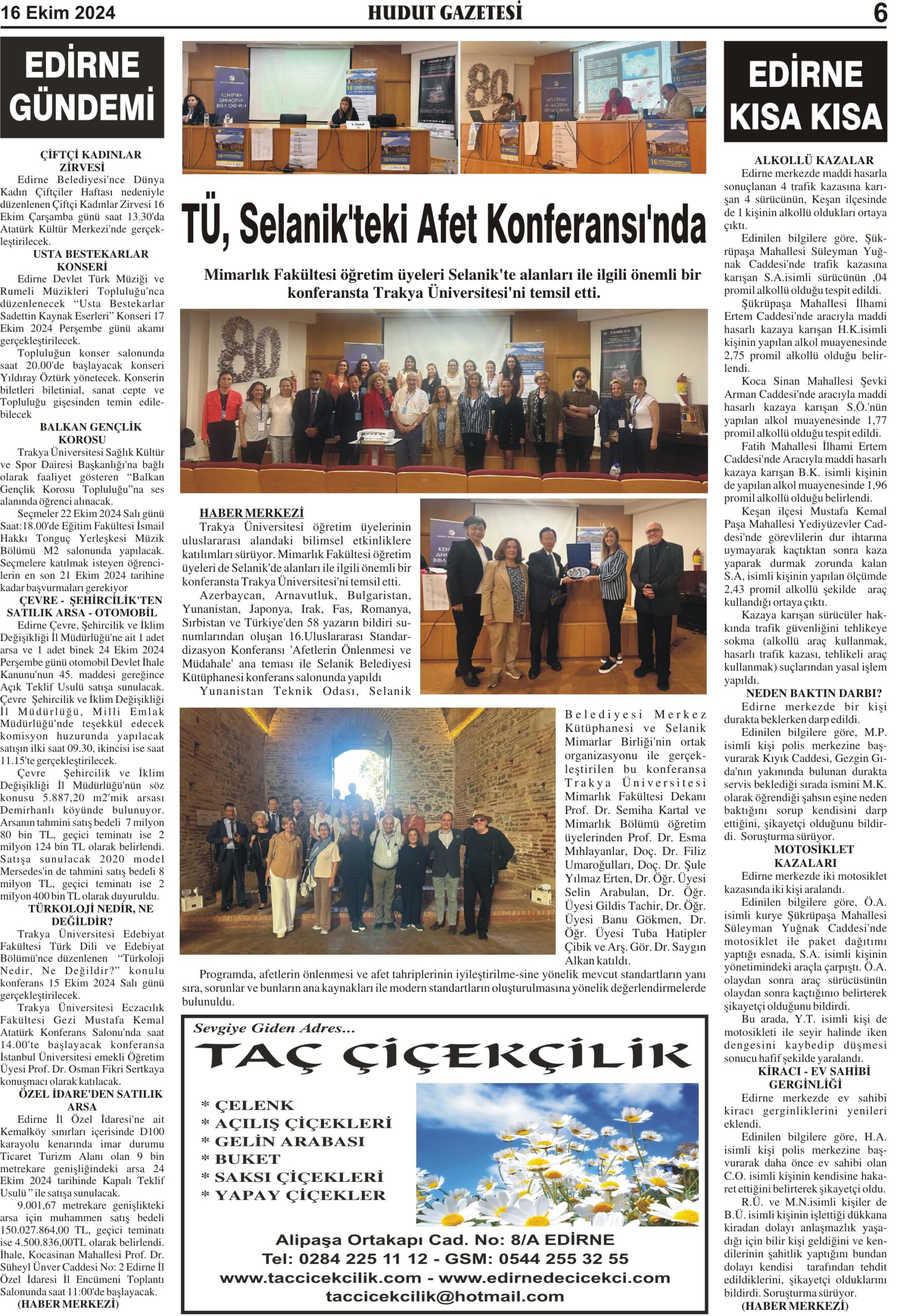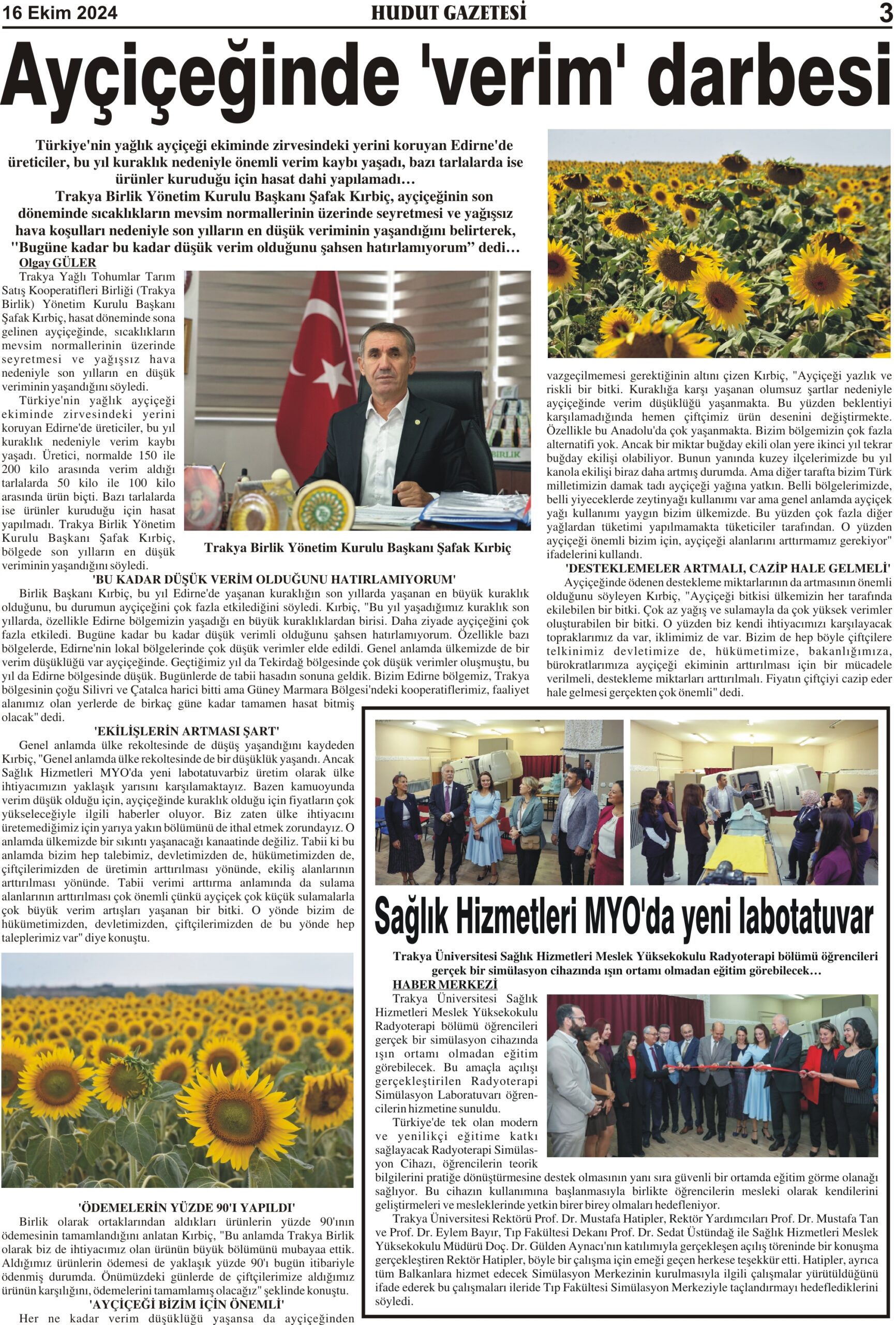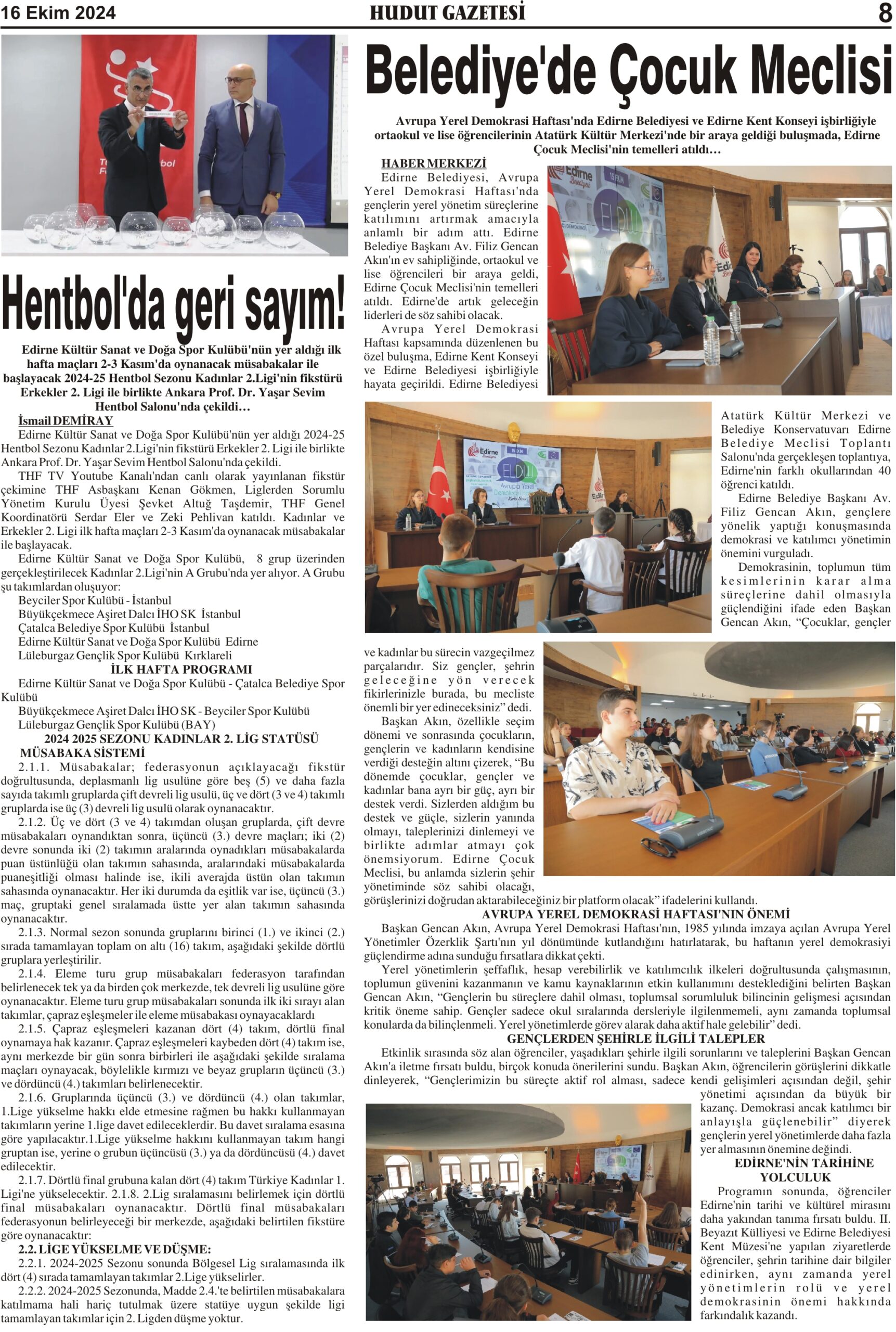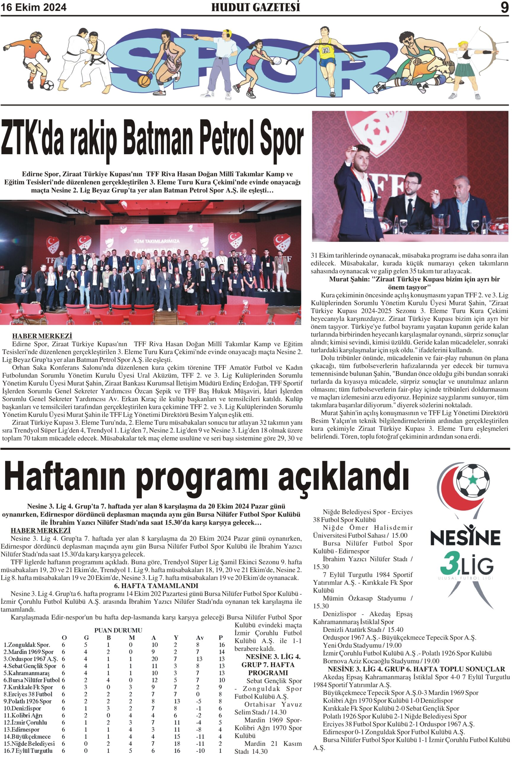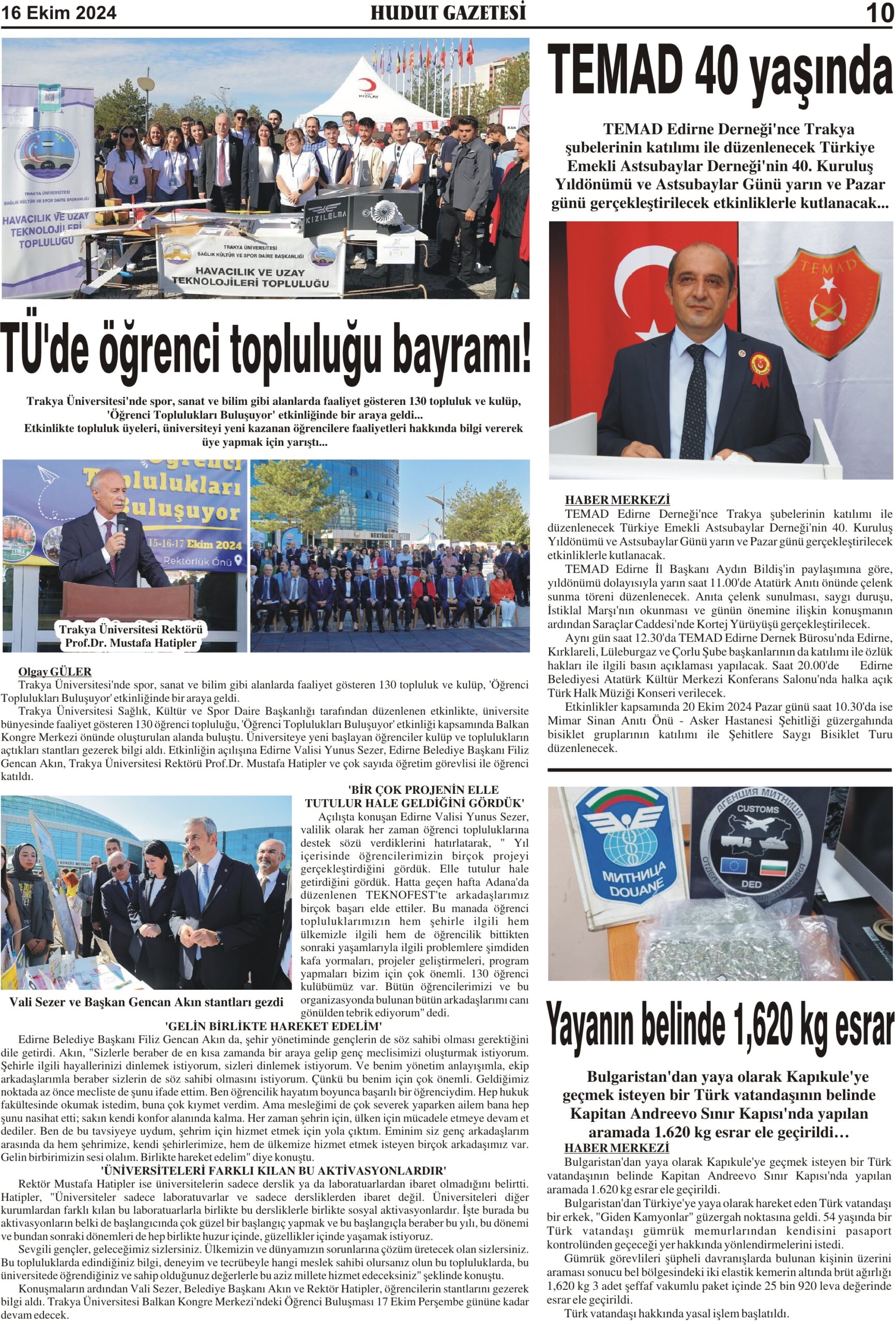 16 Ekim 2024 Çarşamba Hudut Gazetesi