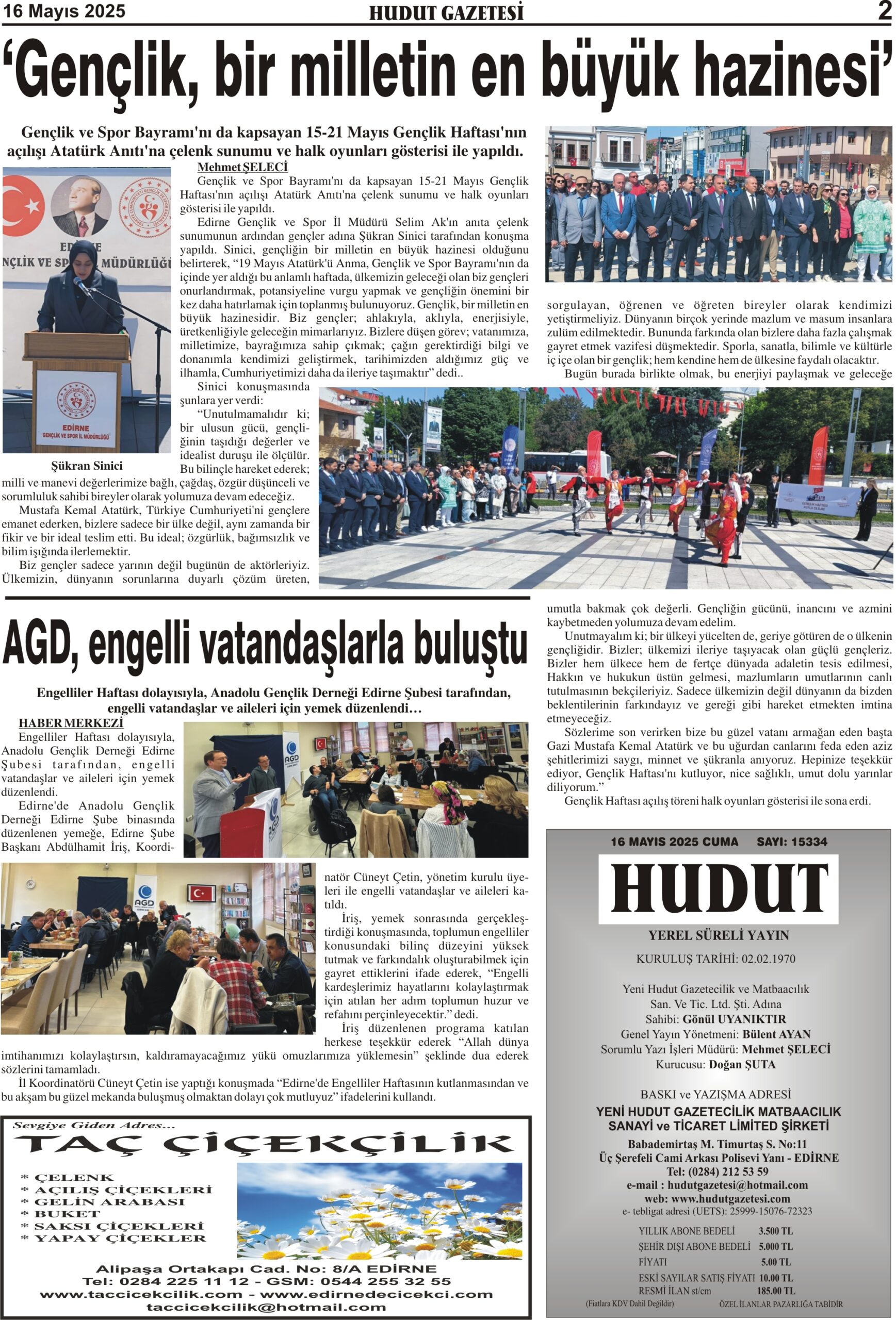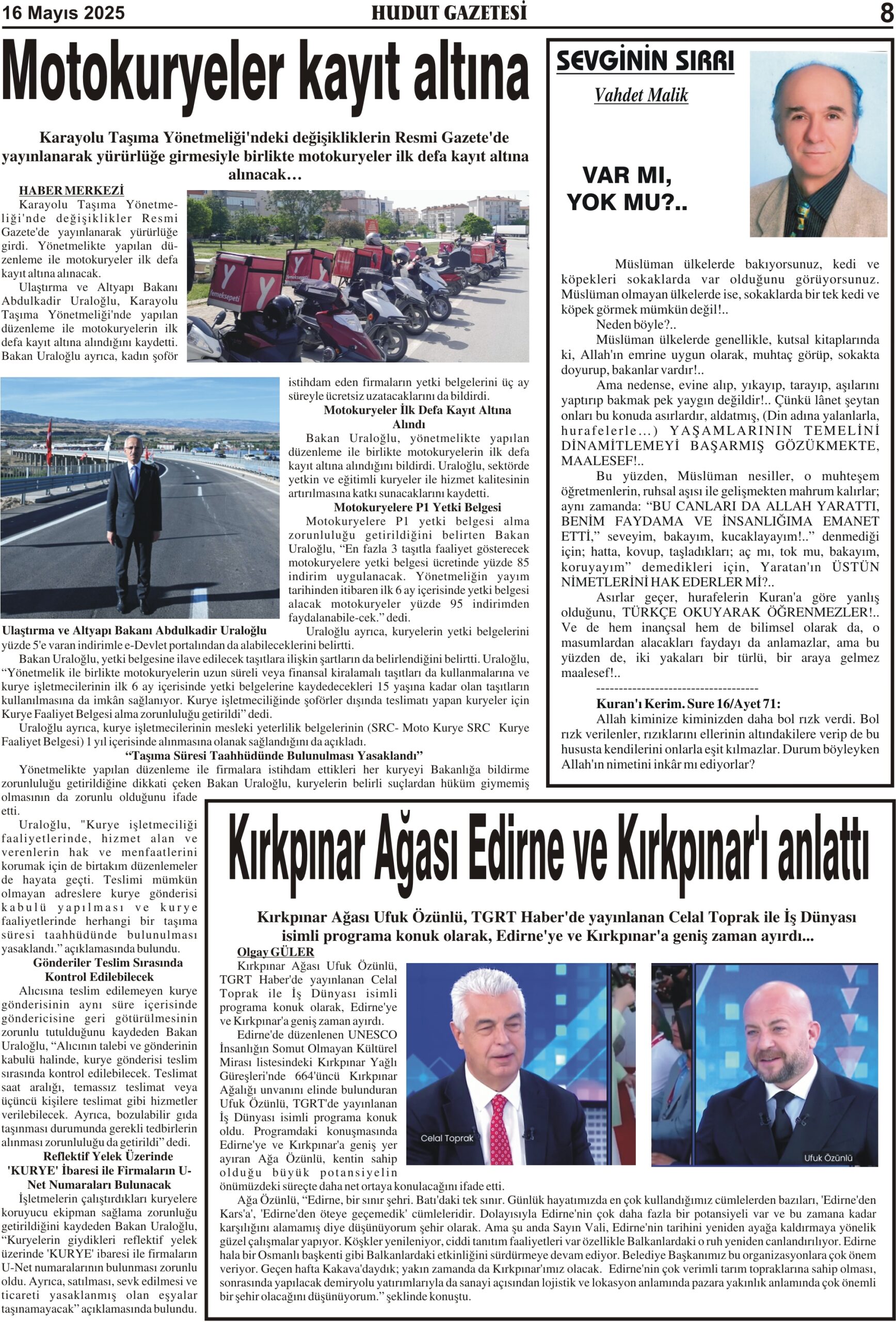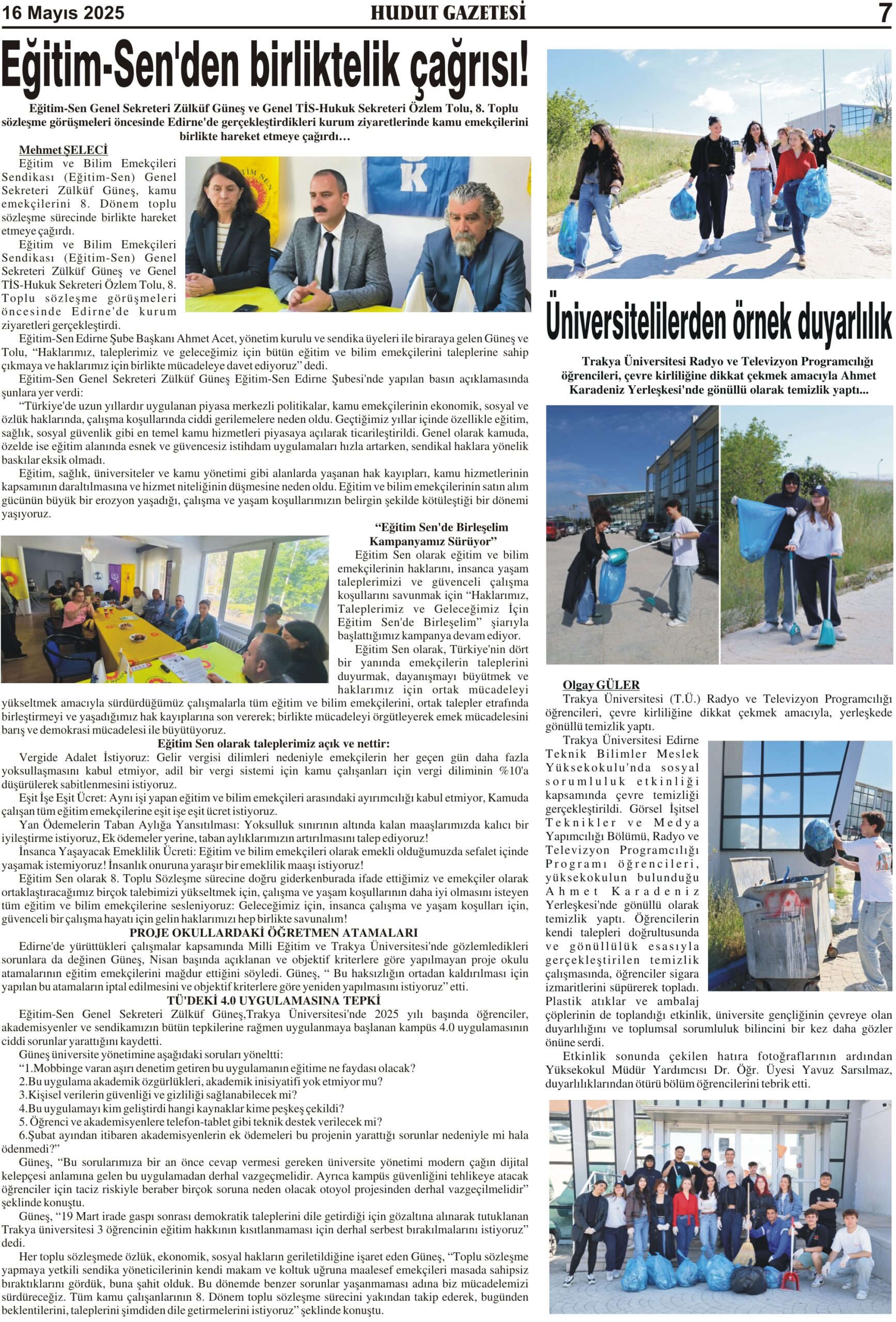 16 Mayıs 2025 Cuma Hudut Gazetesi