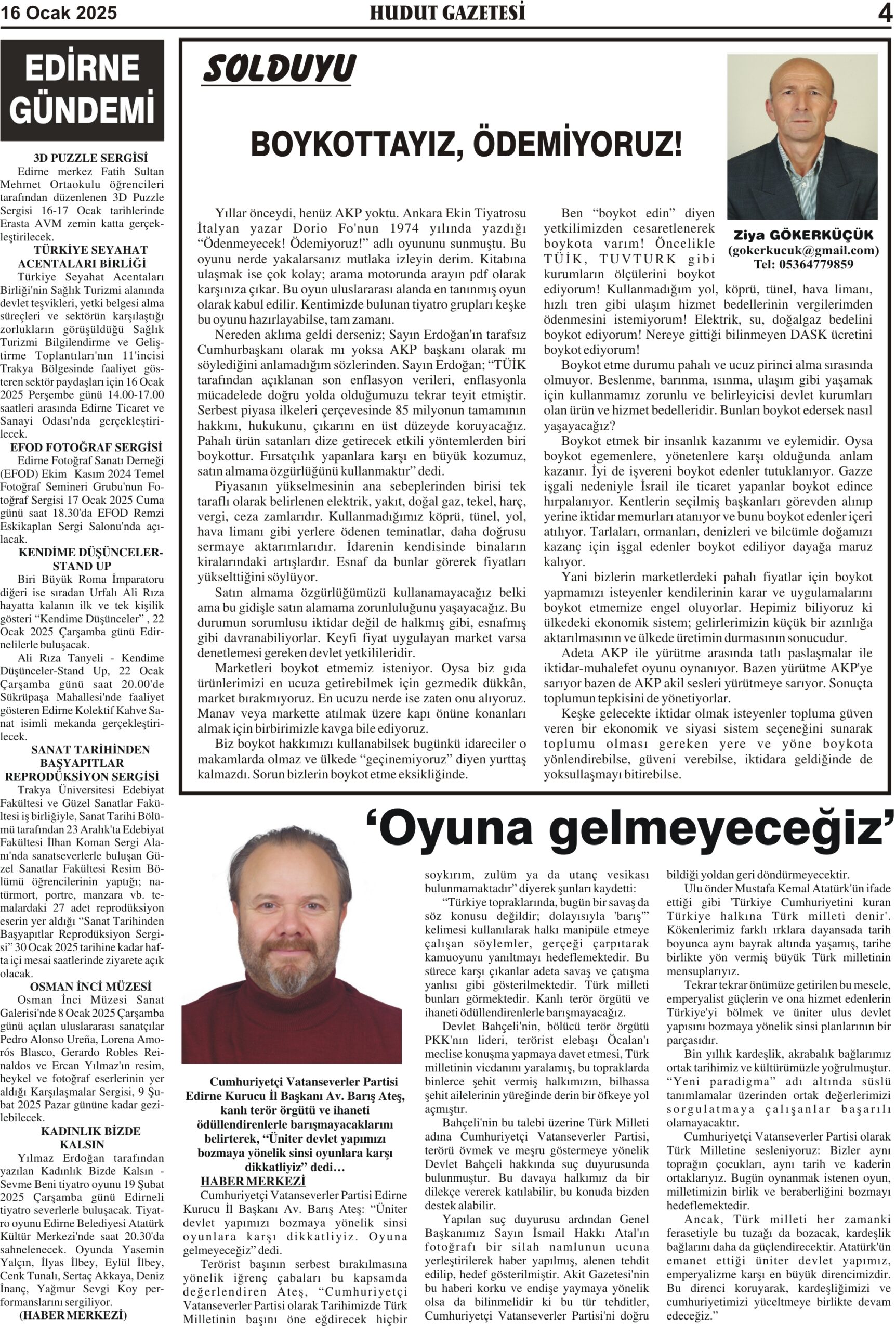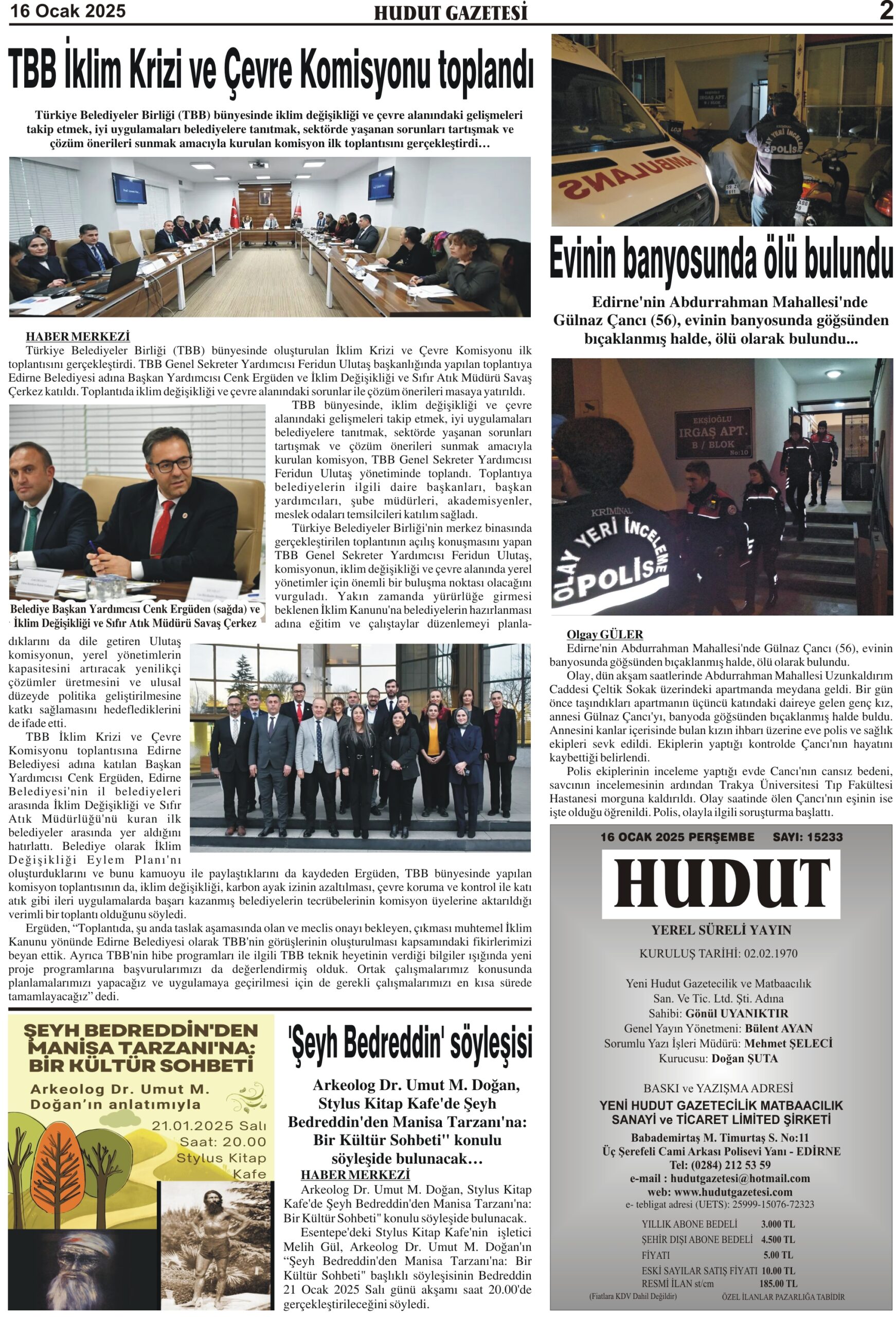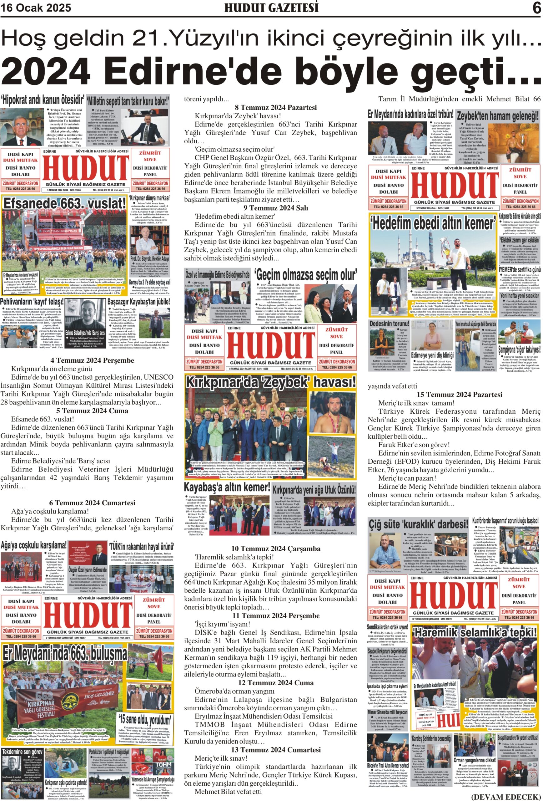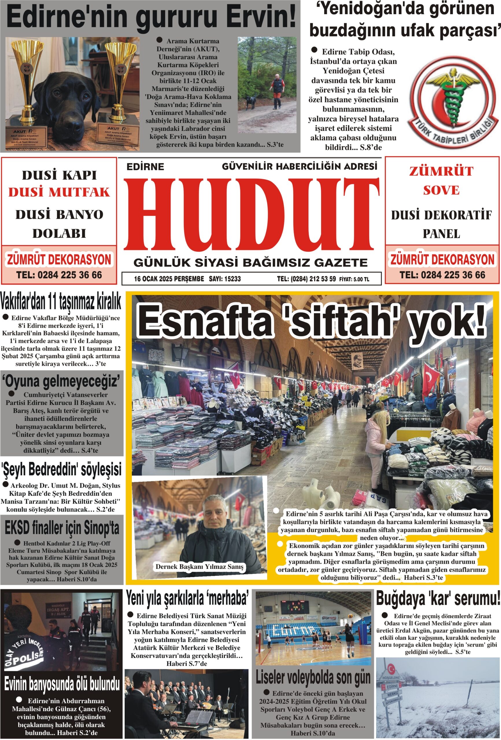 16 Ocak 2025 Perşembe Hudut Gazetesi