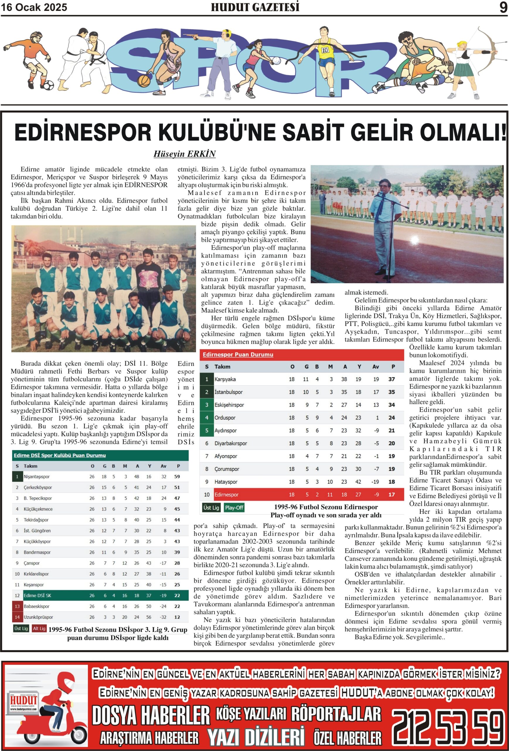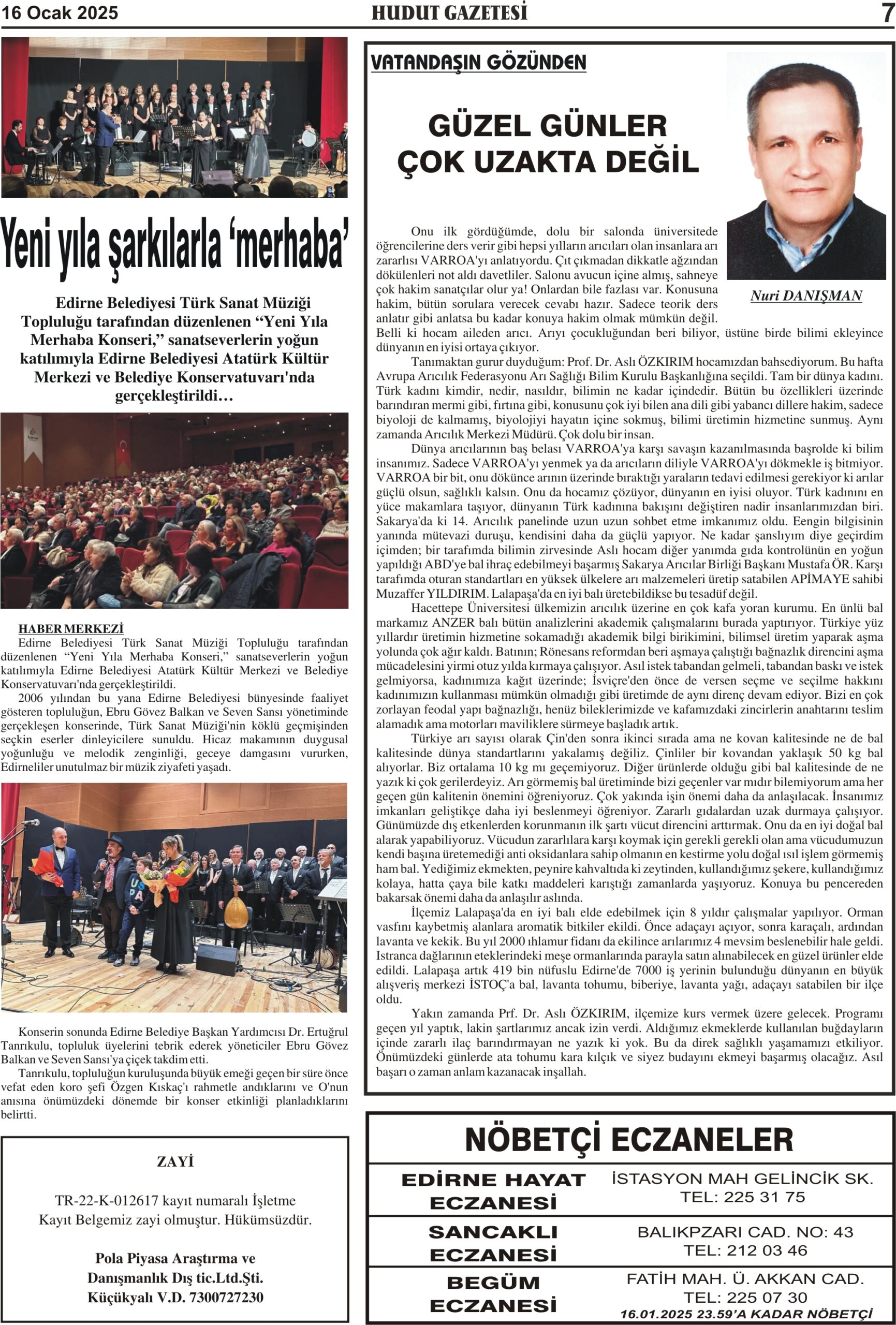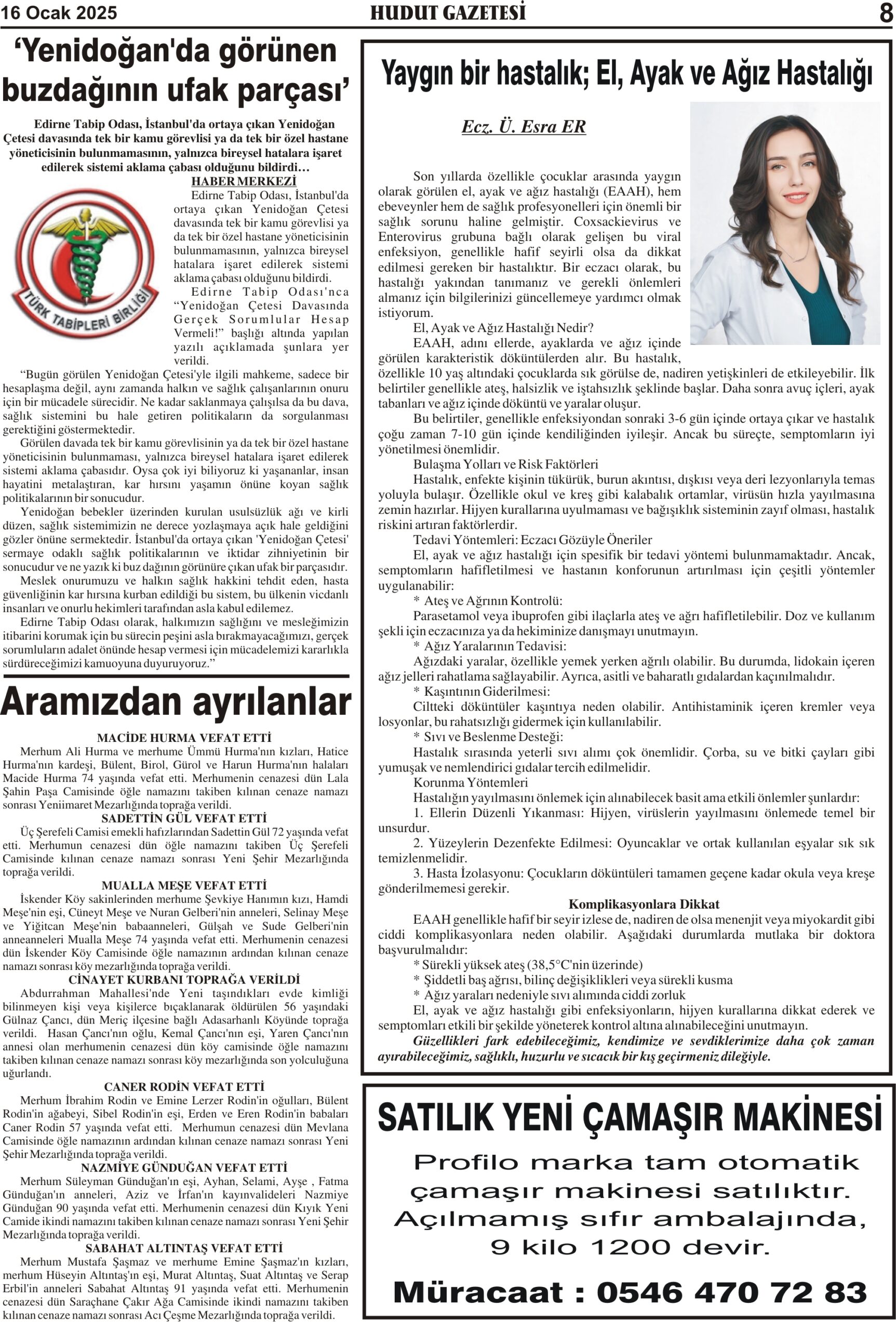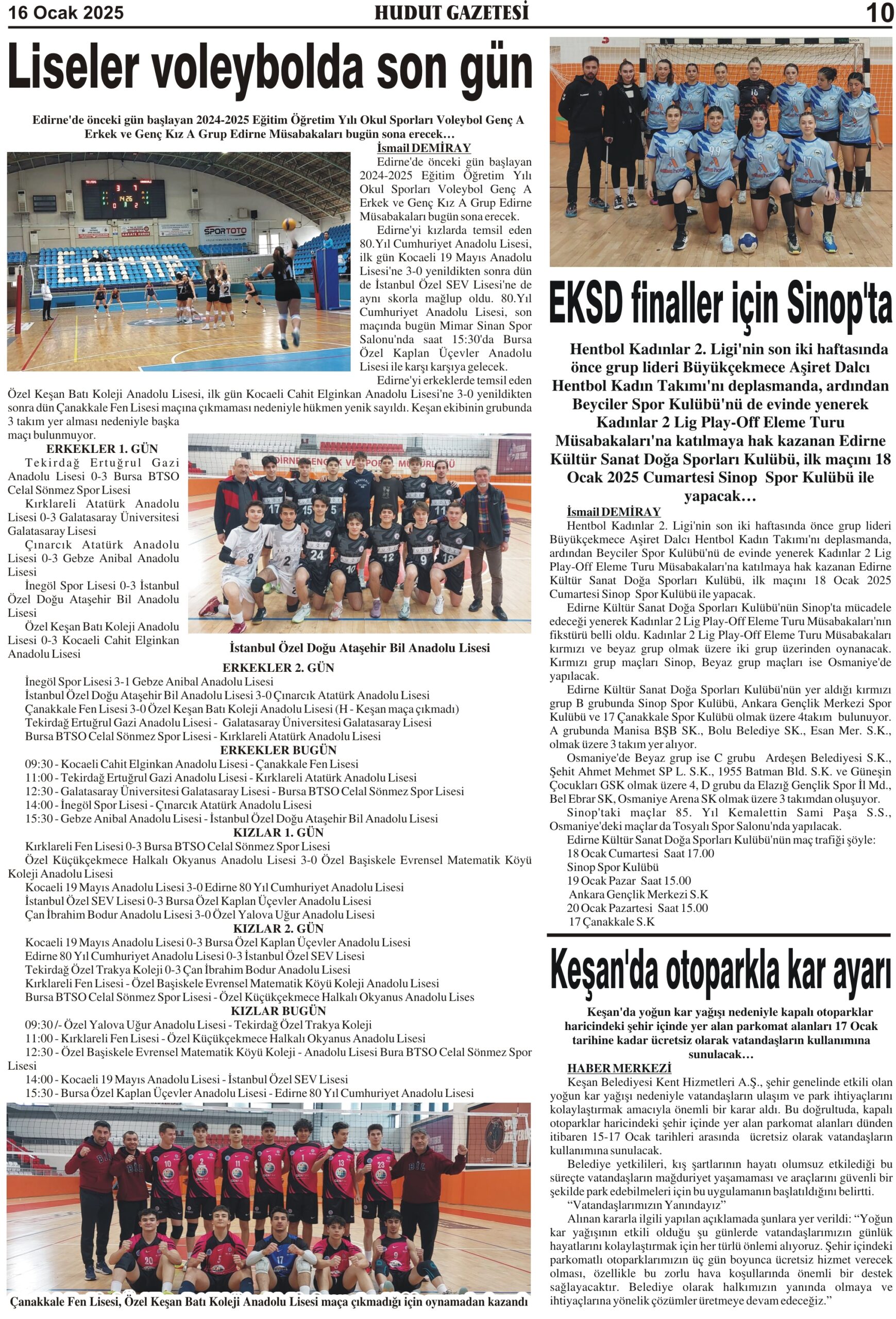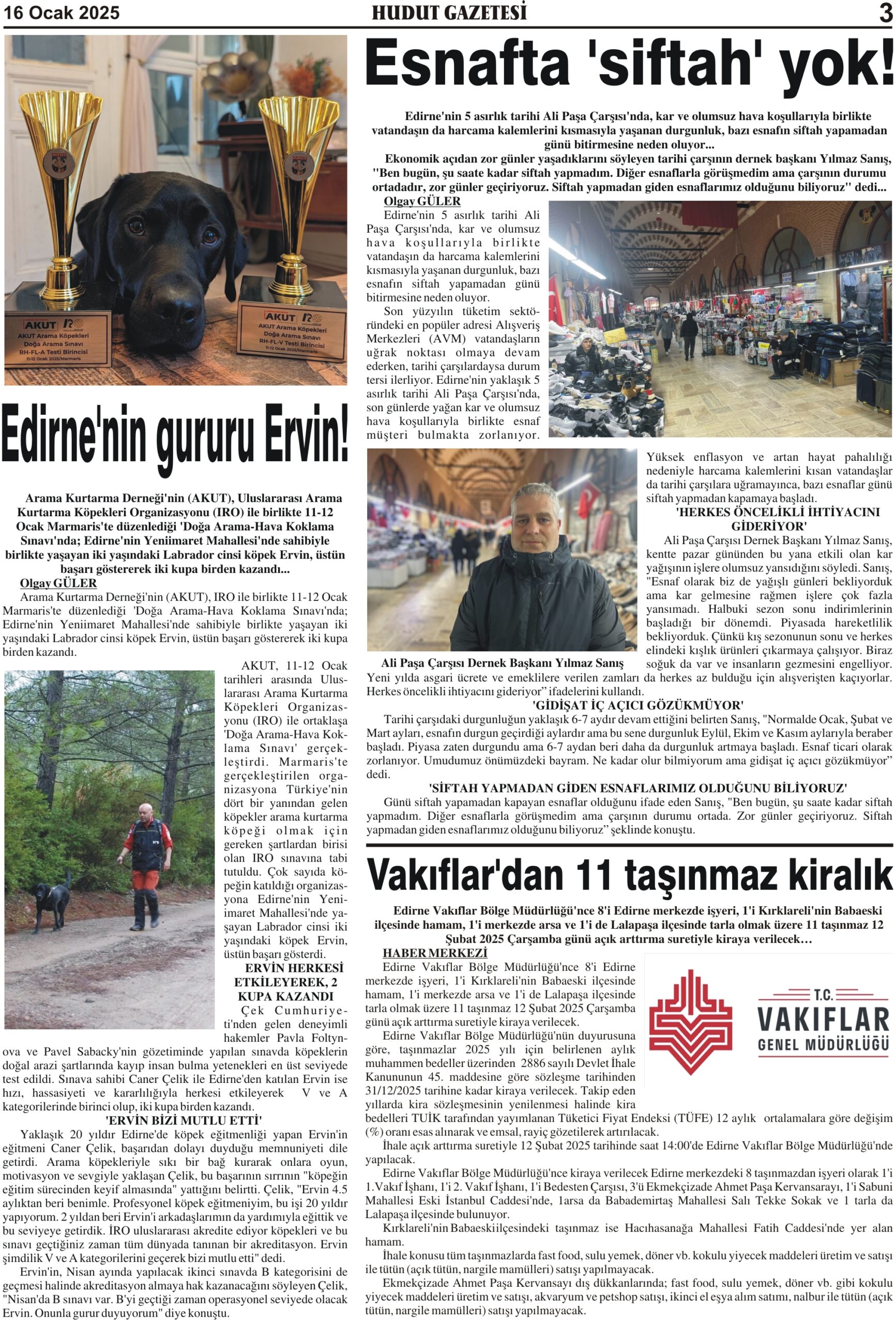 16 Ocak 2025 Perşembe Hudut Gazetesi