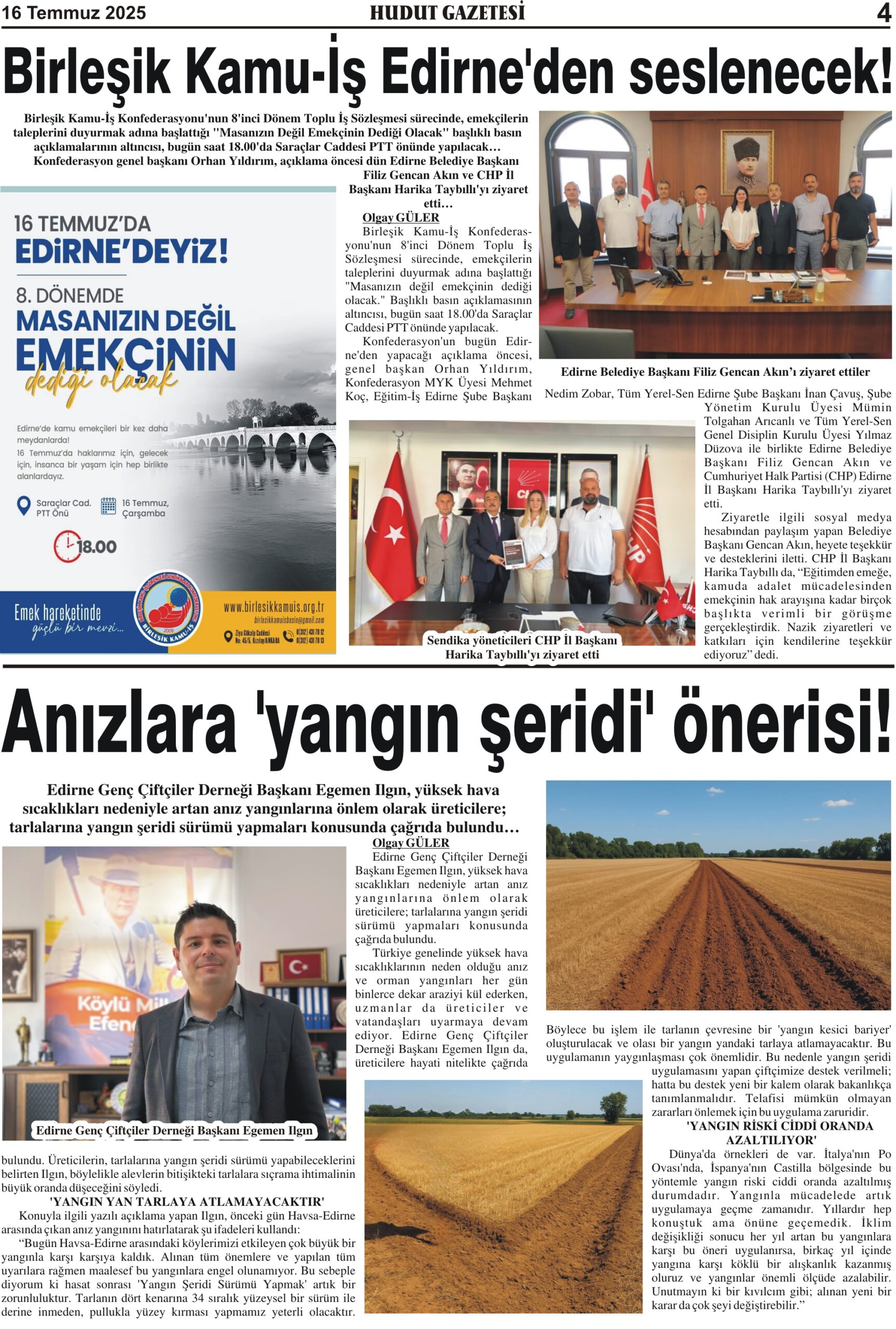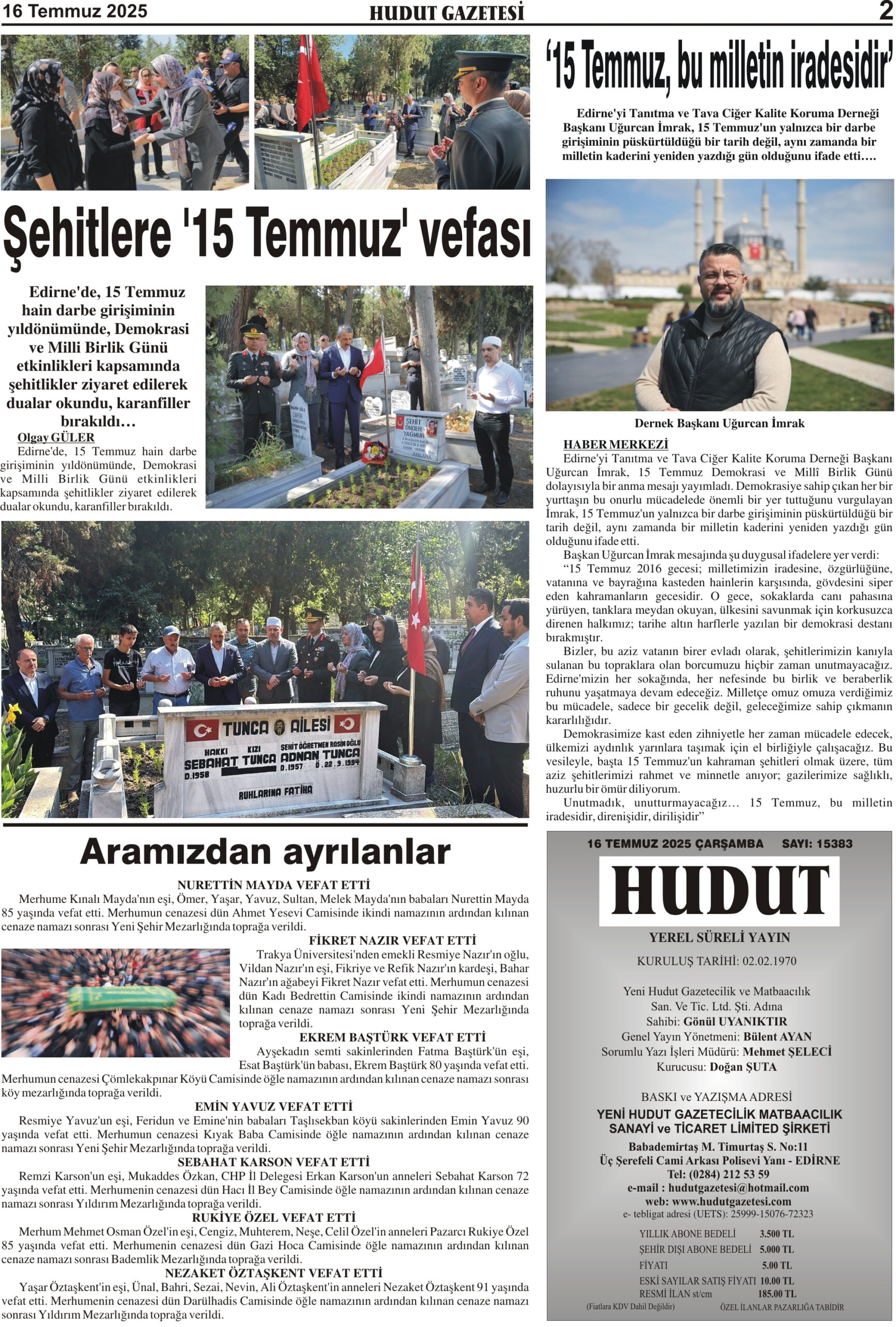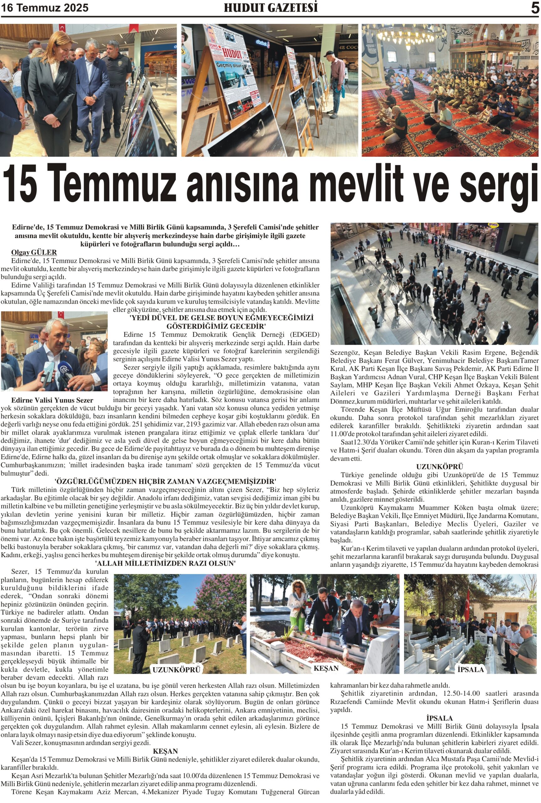 16 Temmuz 2025 Çarşamba Hudut Gazetesi