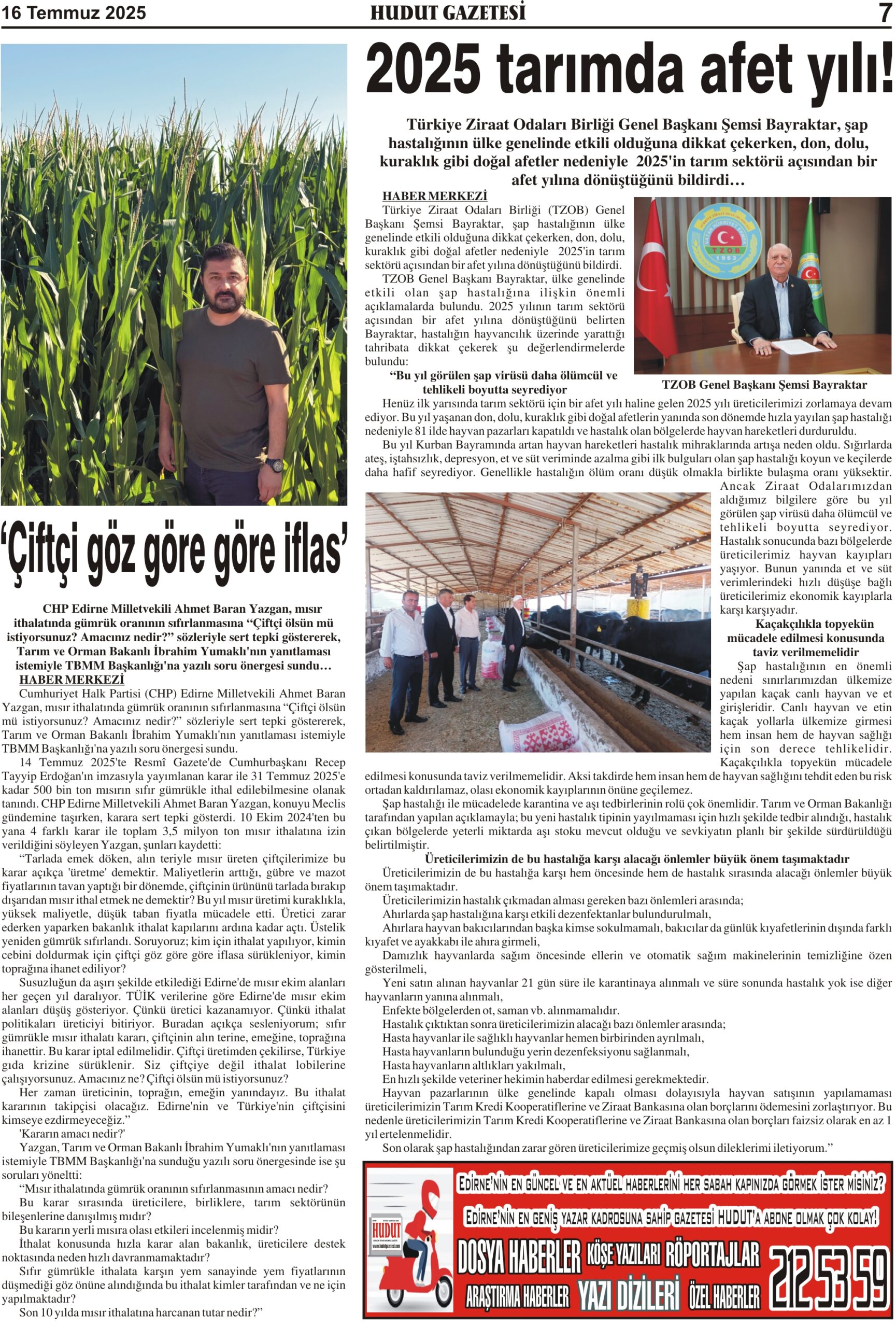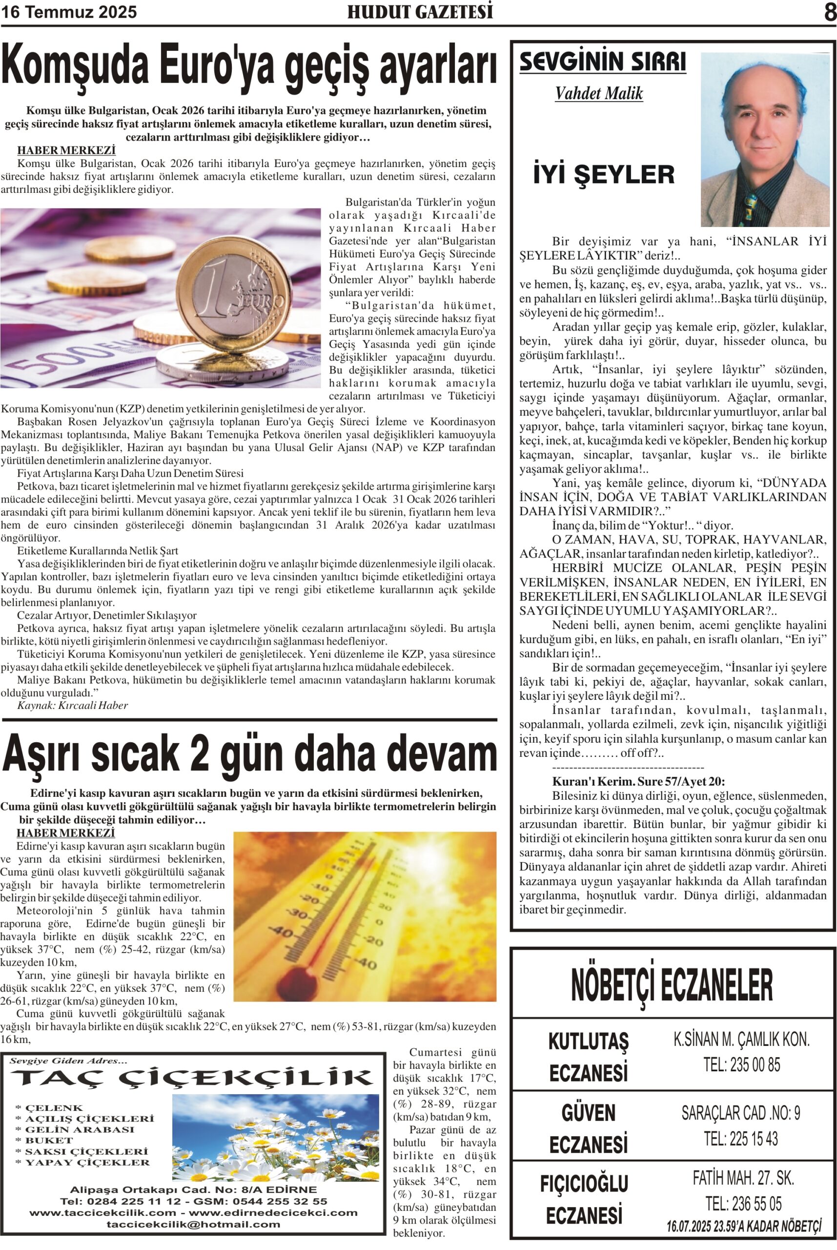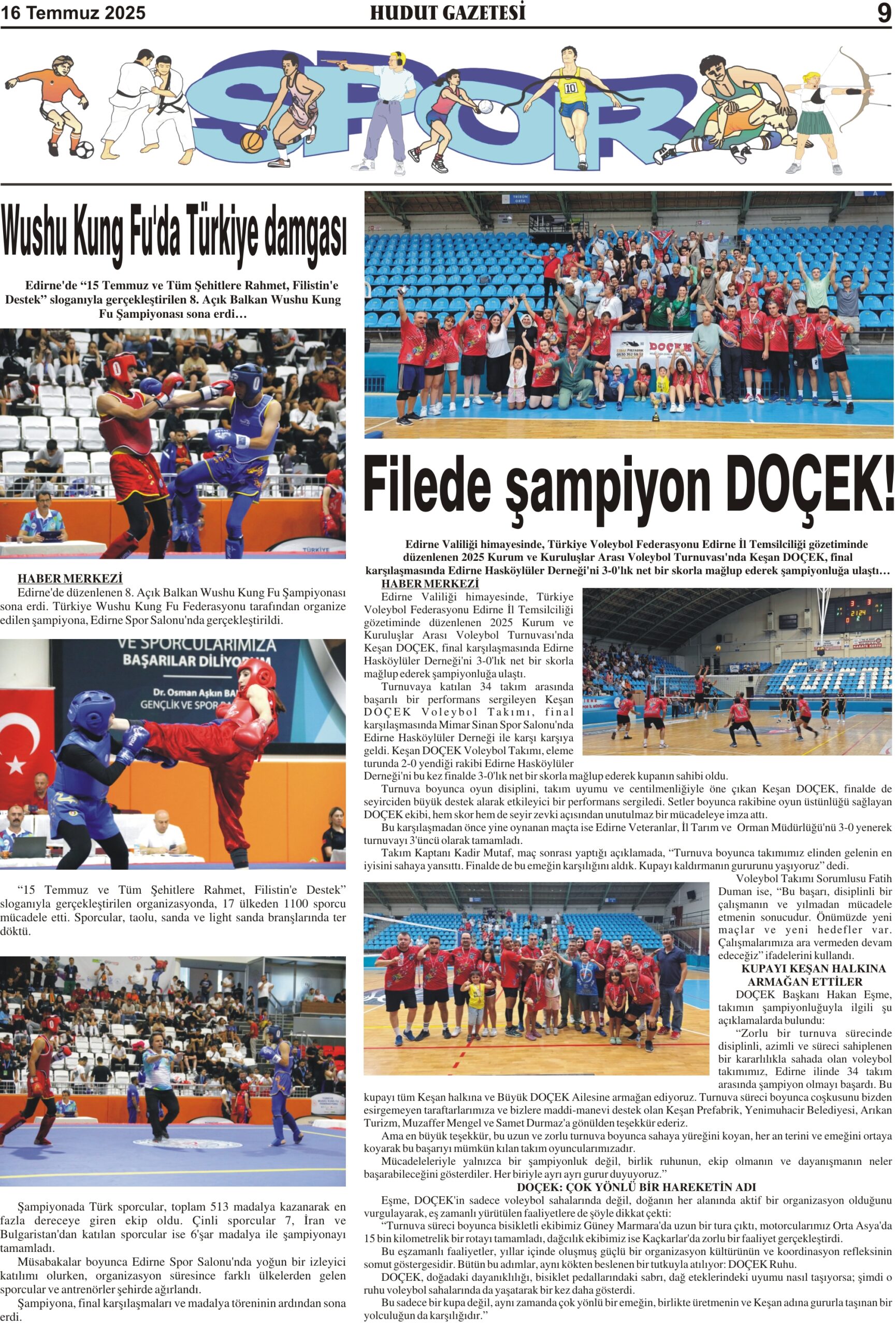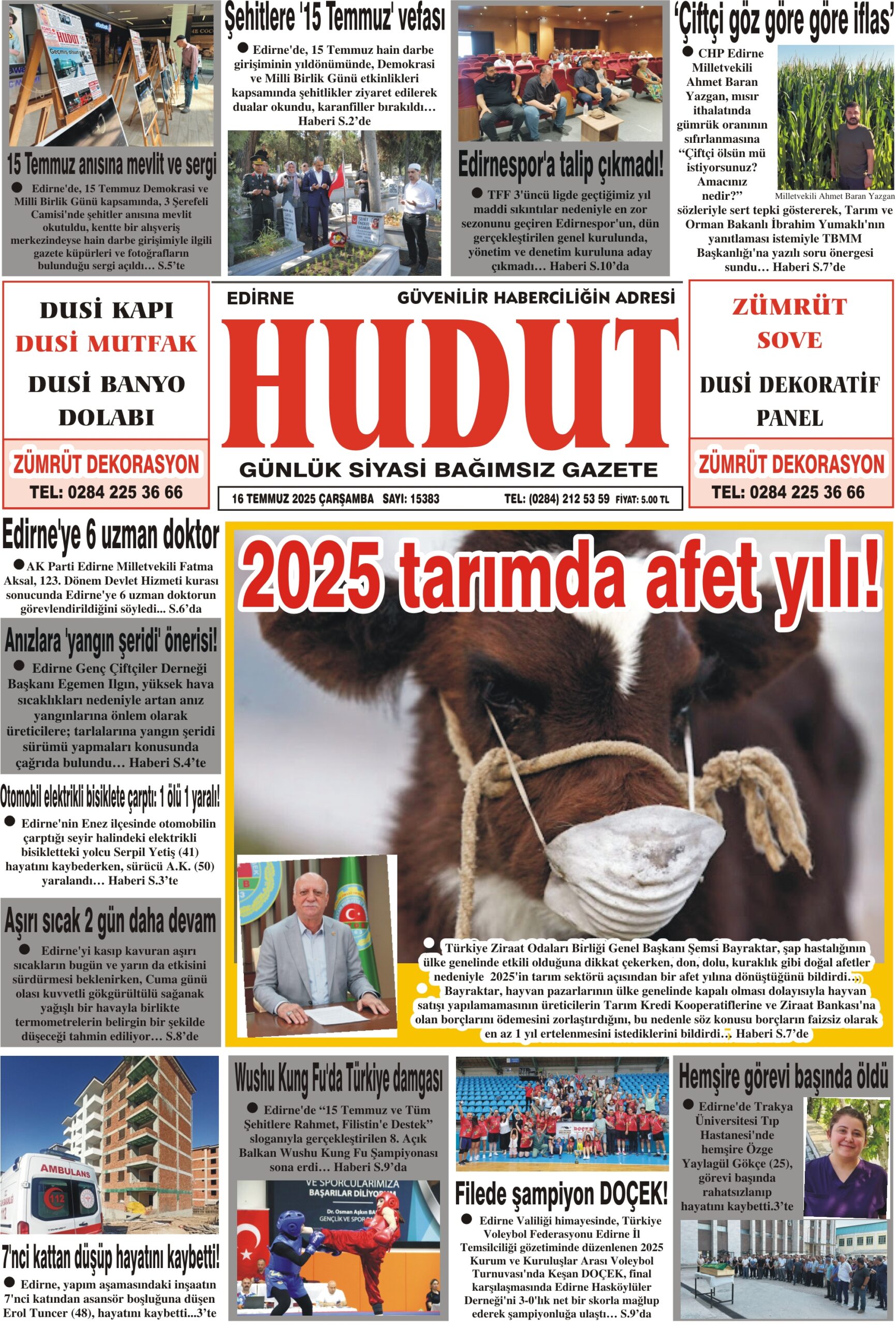 16 Temmuz 2025 Çarşamba Hudut Gazetesi