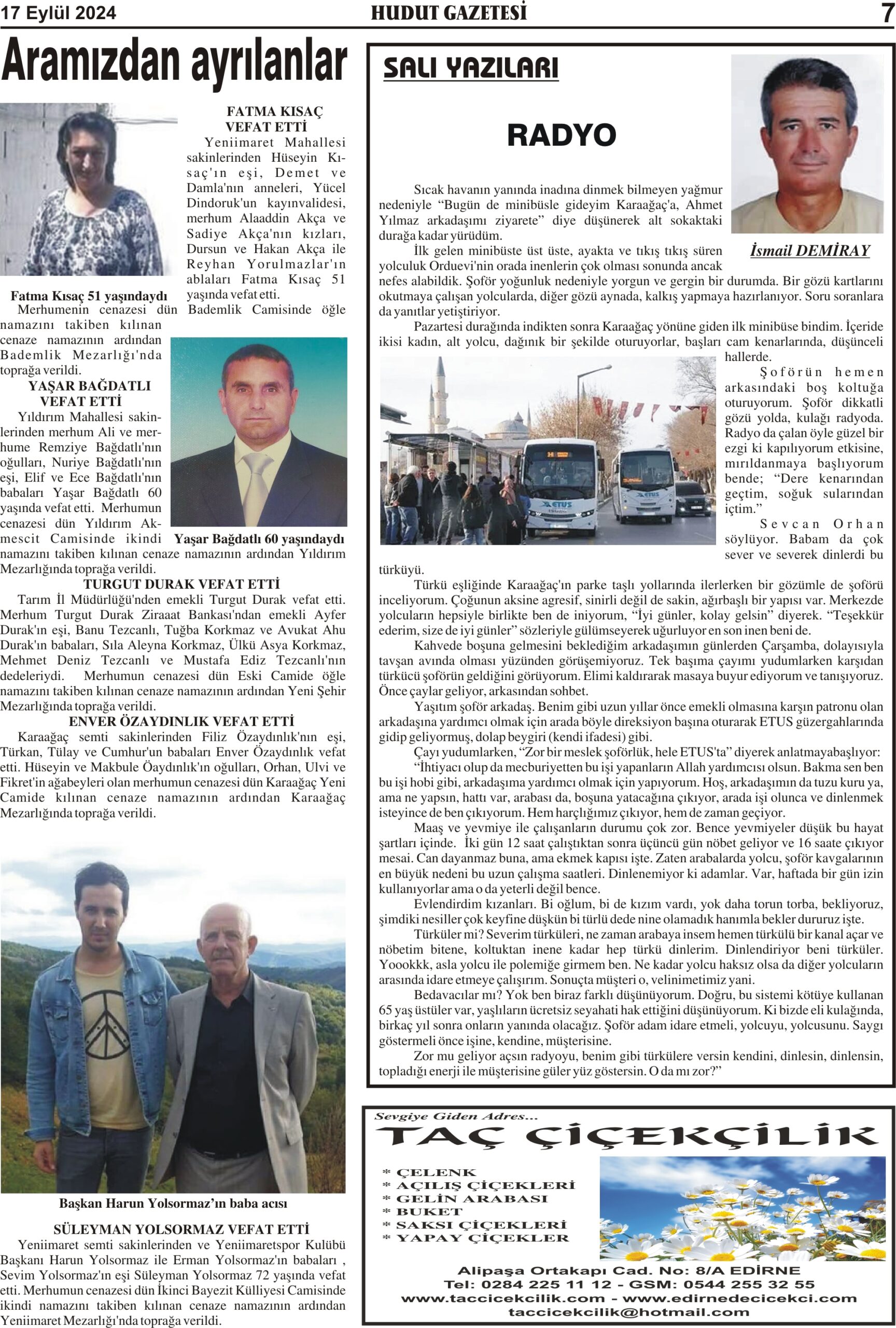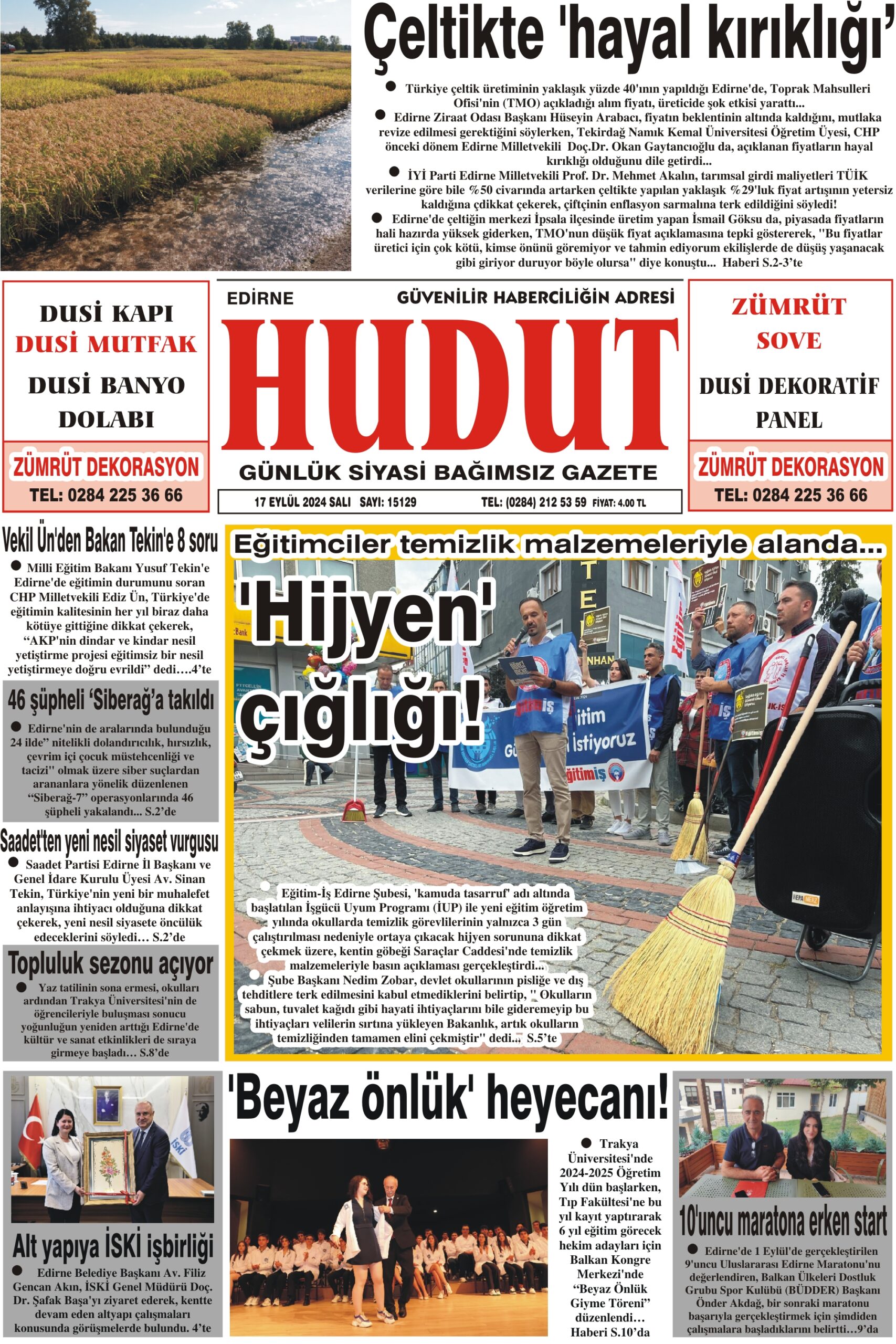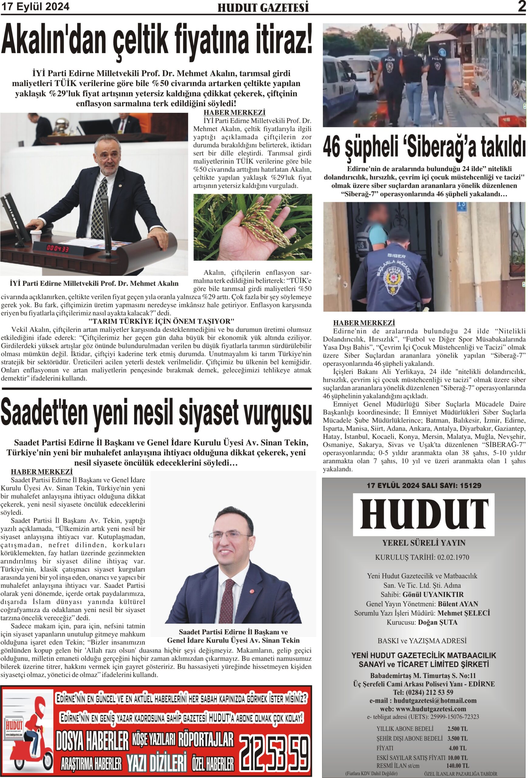 17 Eylül 2024 Salı Hudut Gazetesi