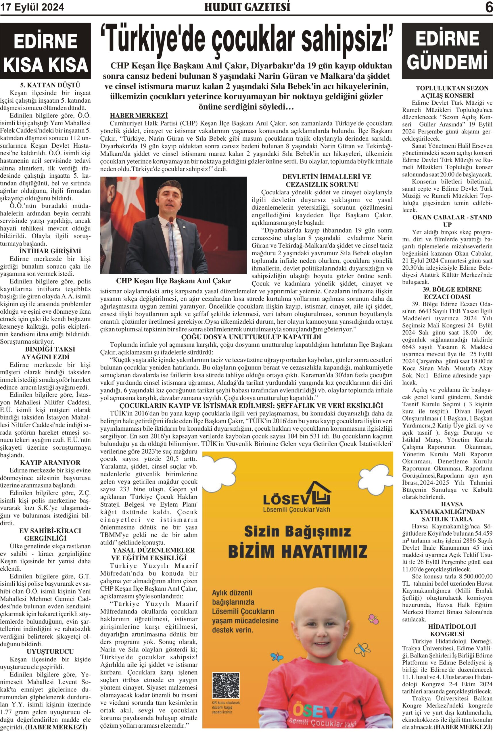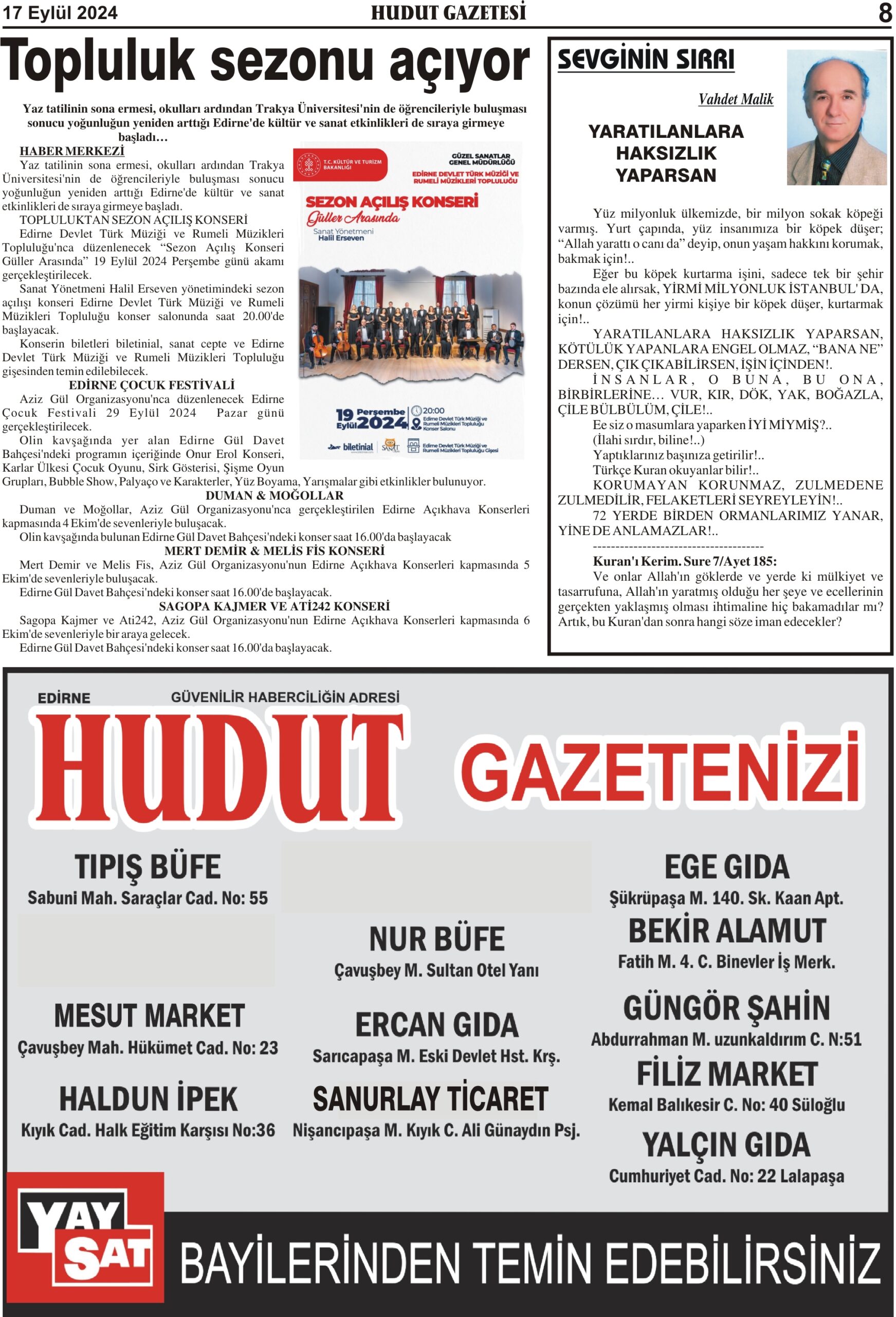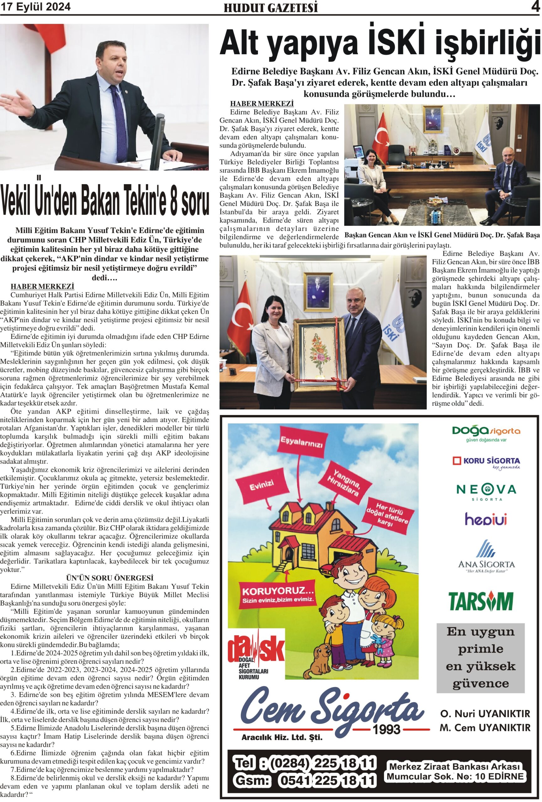 17 Eylül 2024 Salı Hudut Gazetesi