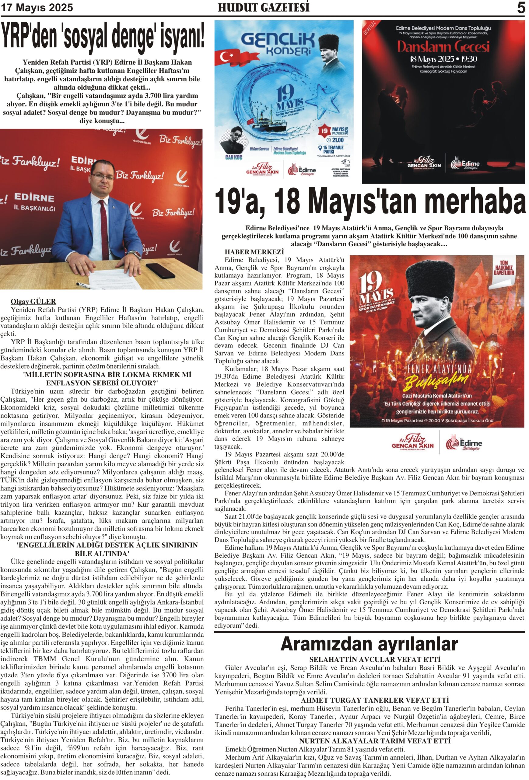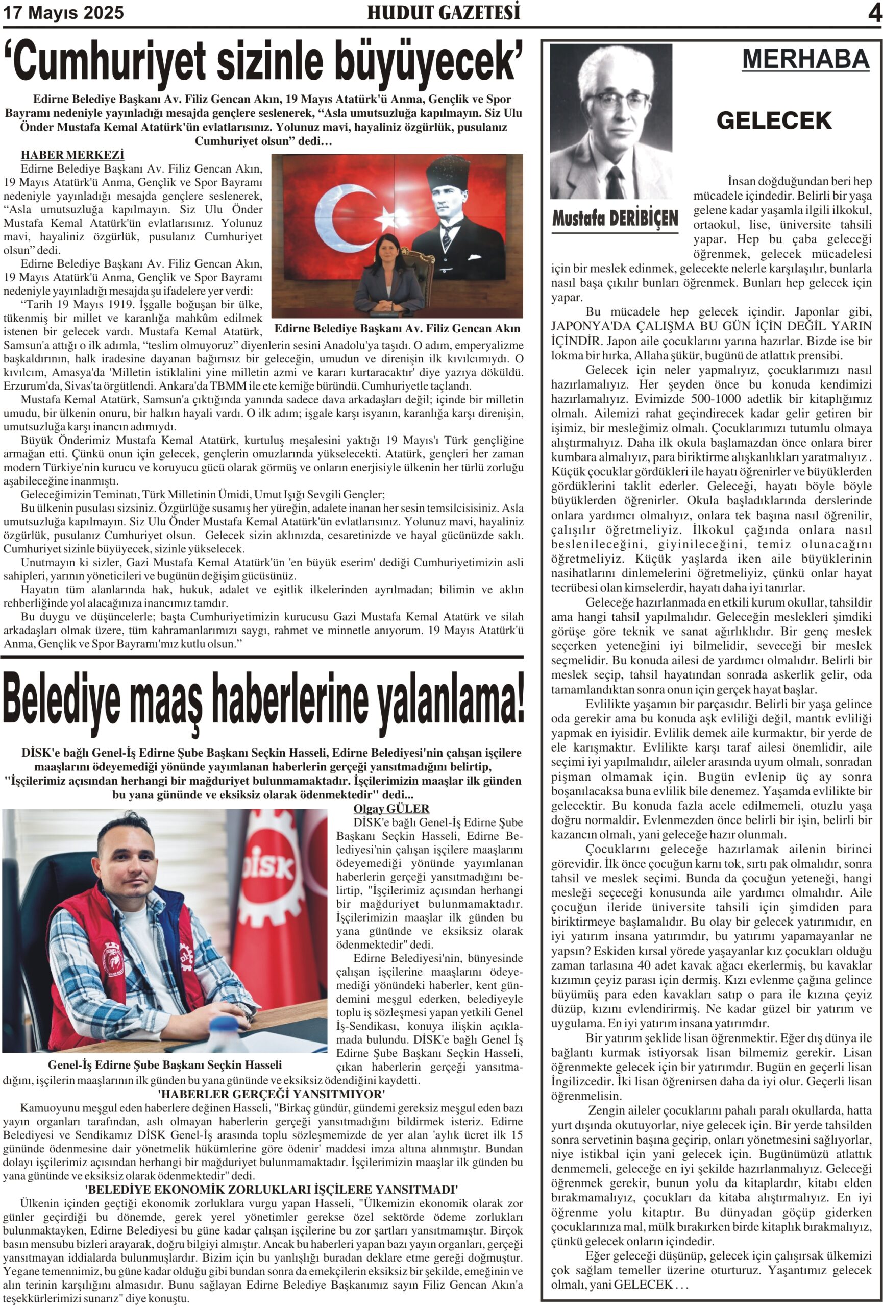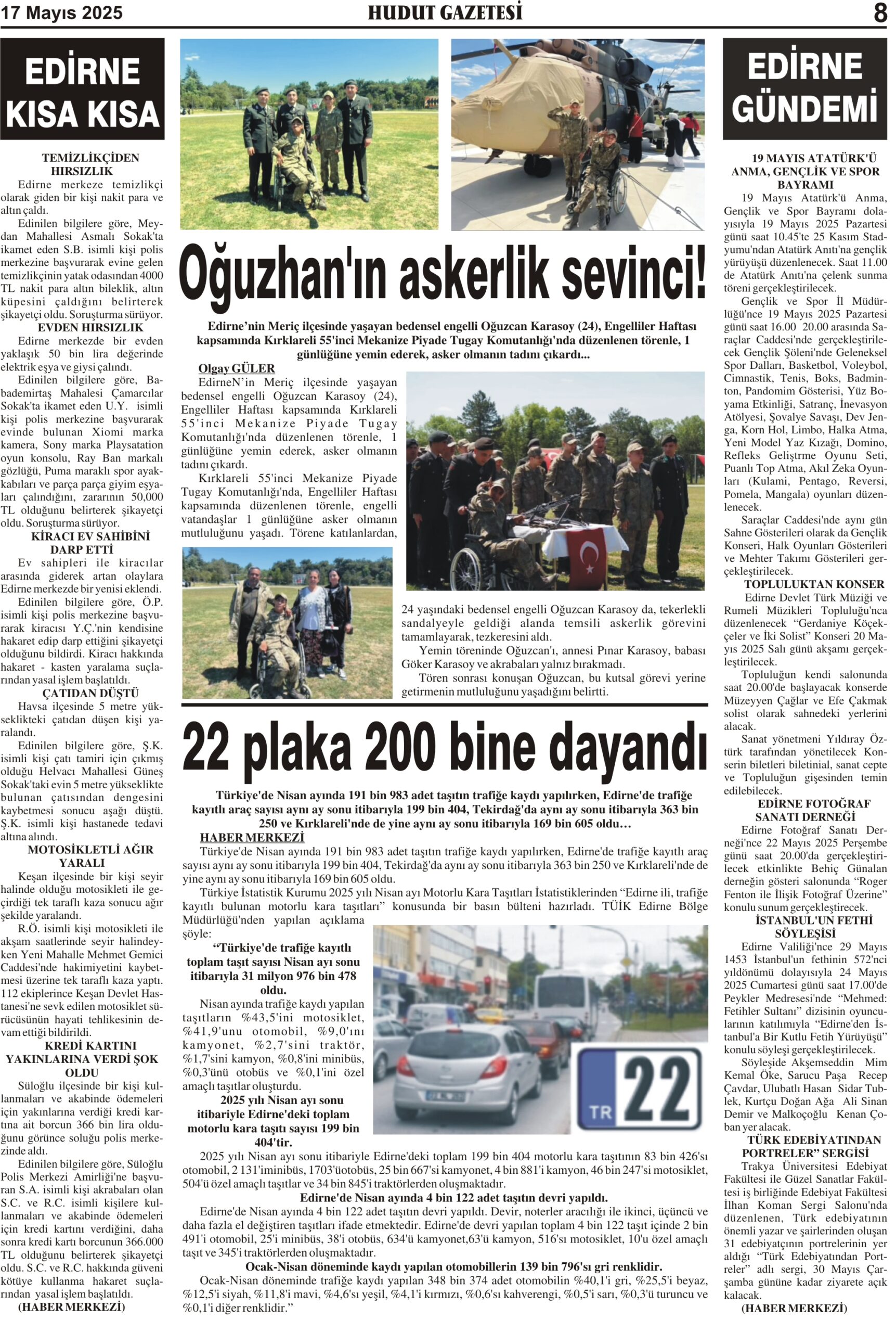 17 Mayıs 2025 Cumartesi Hudut Gazetesi