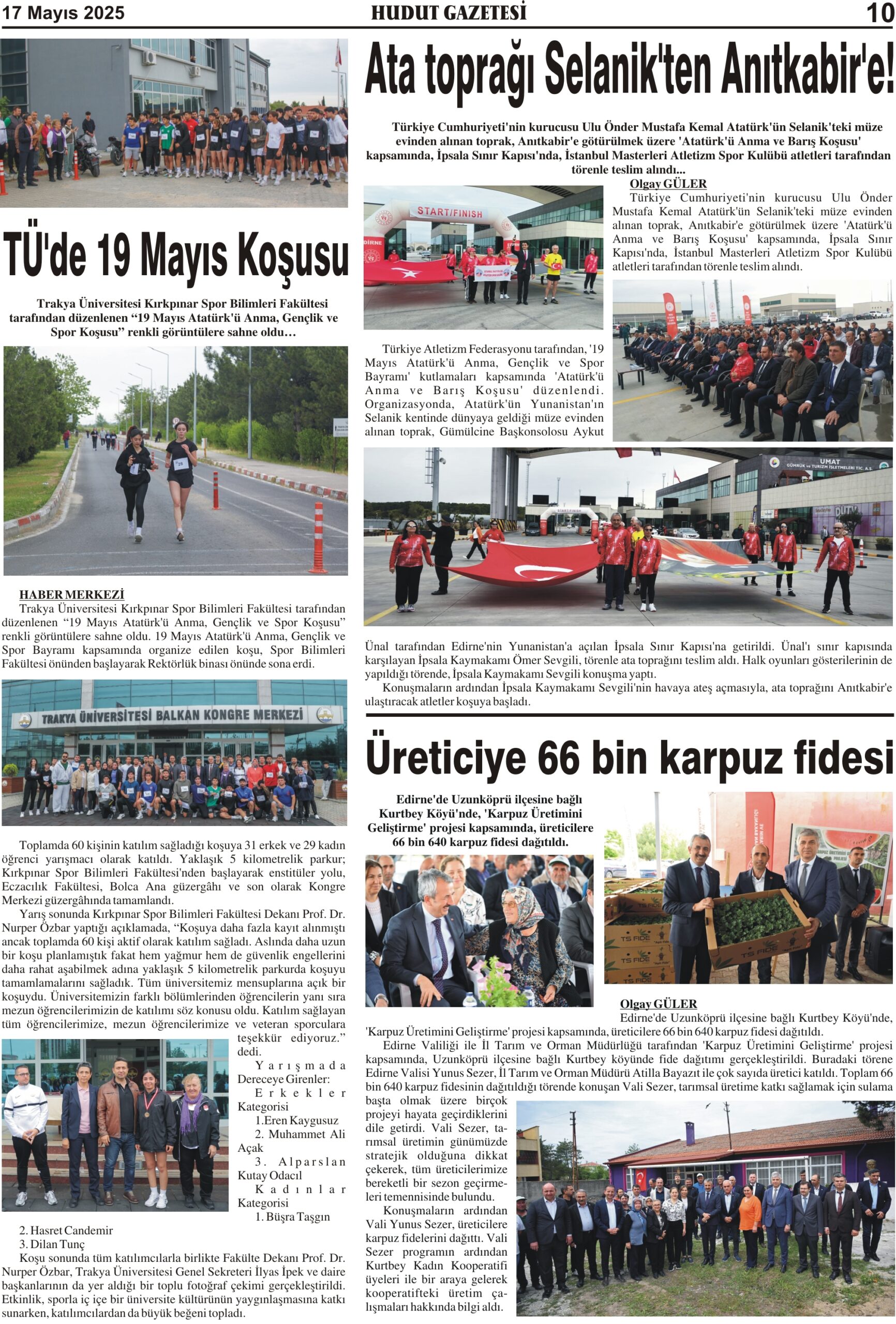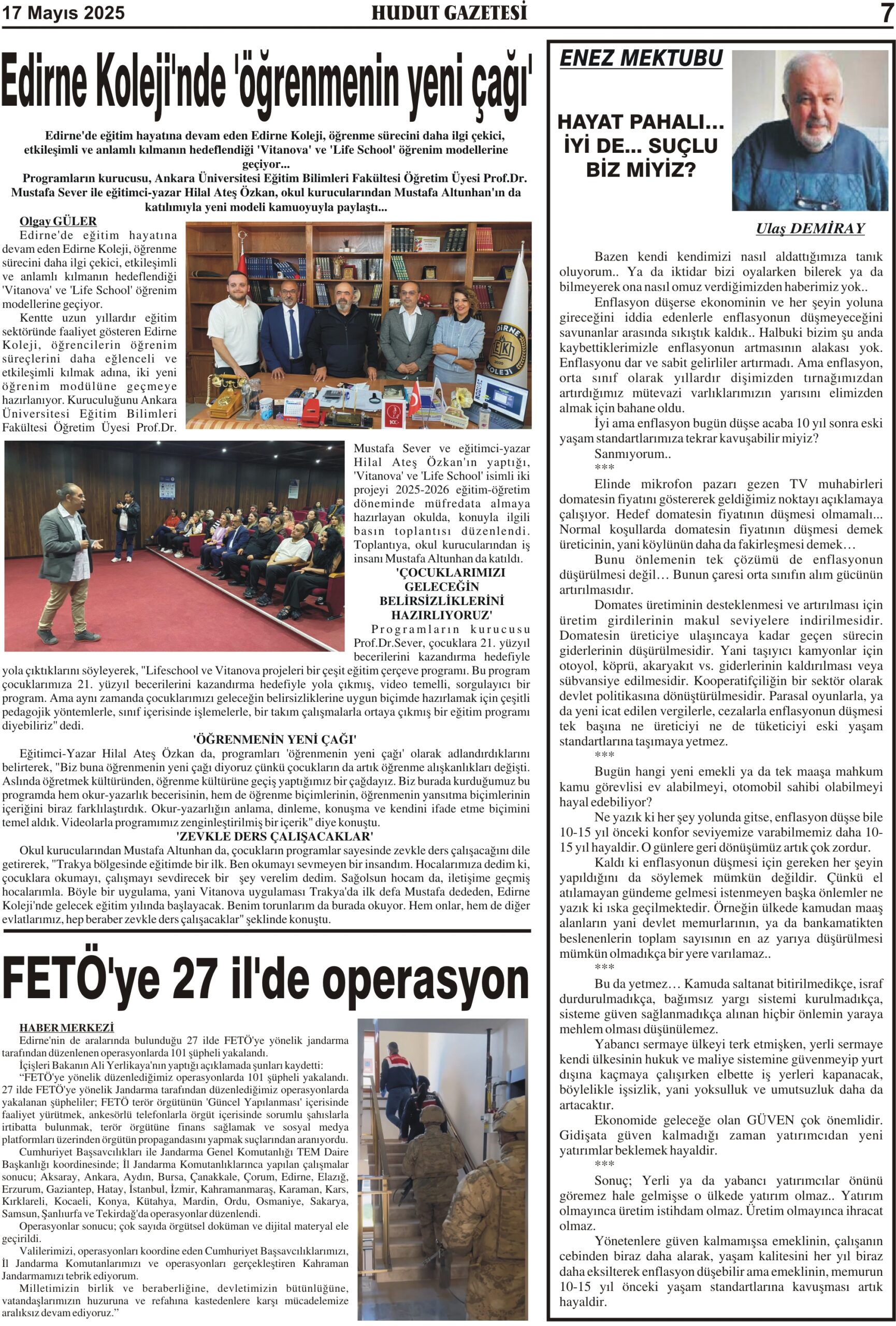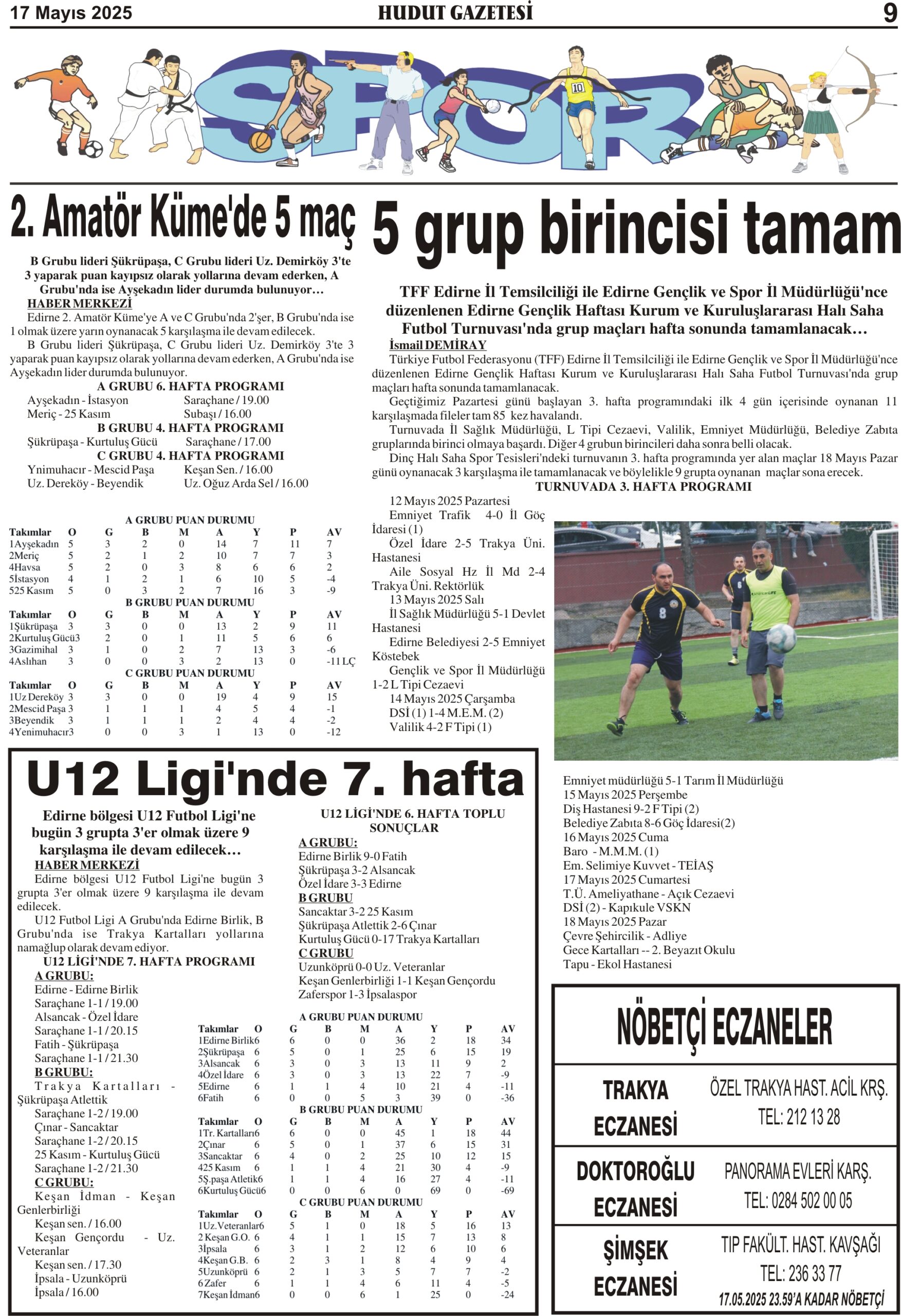 17 Mayıs 2025 Cumartesi Hudut Gazetesi