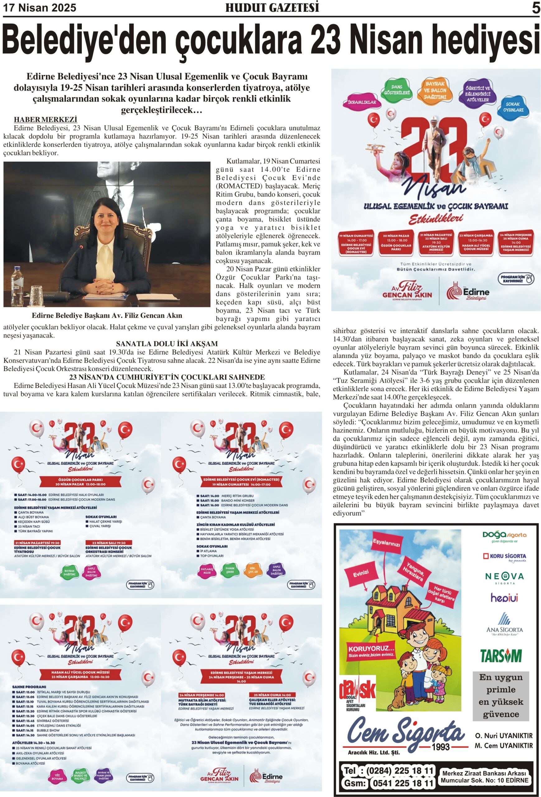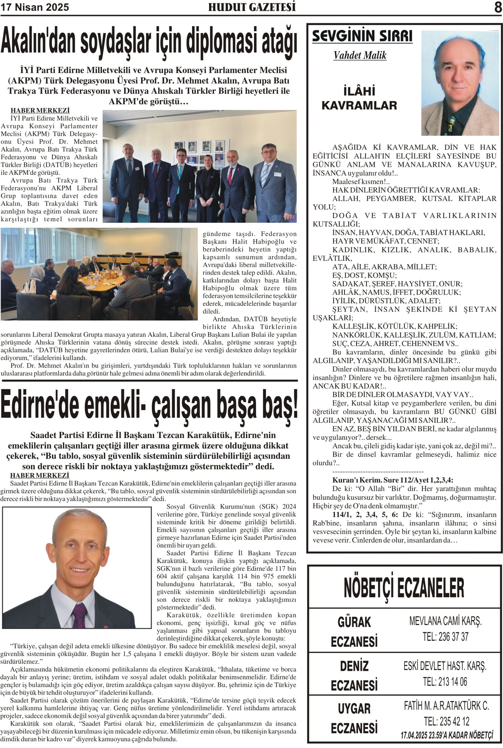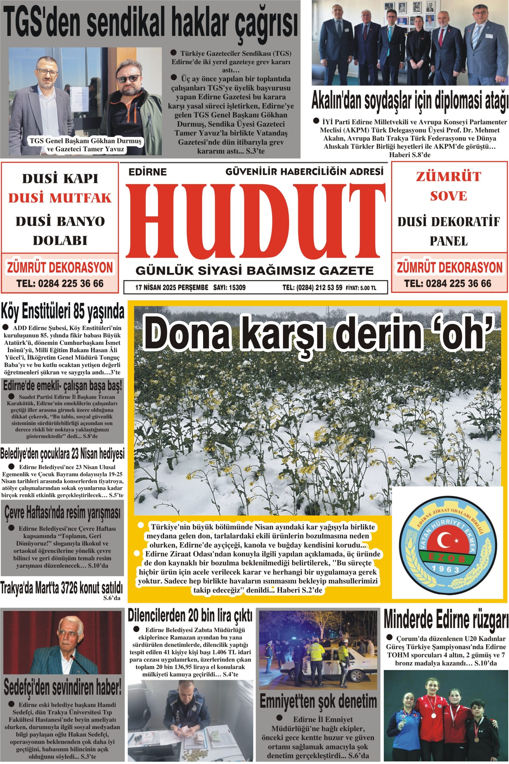 17 Nisan 2025 Perşembe Hudut Gazetesi
