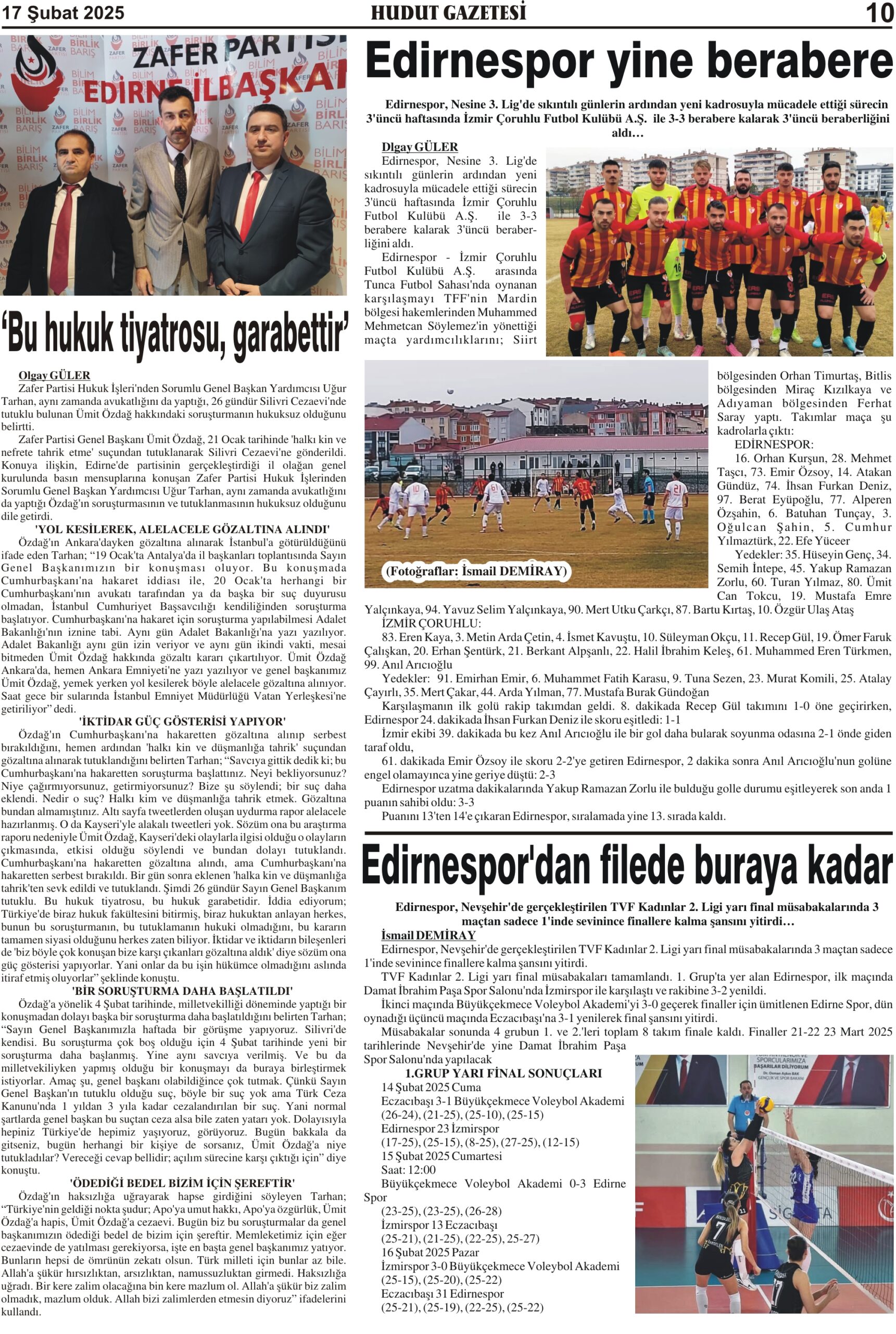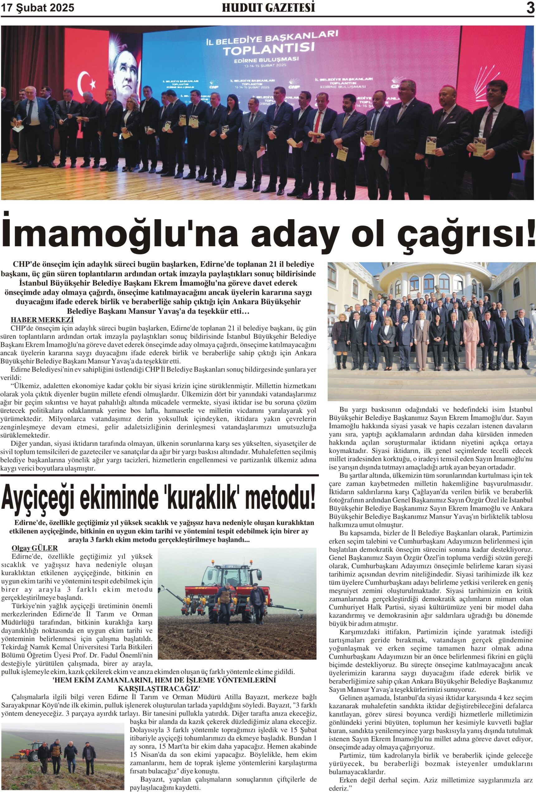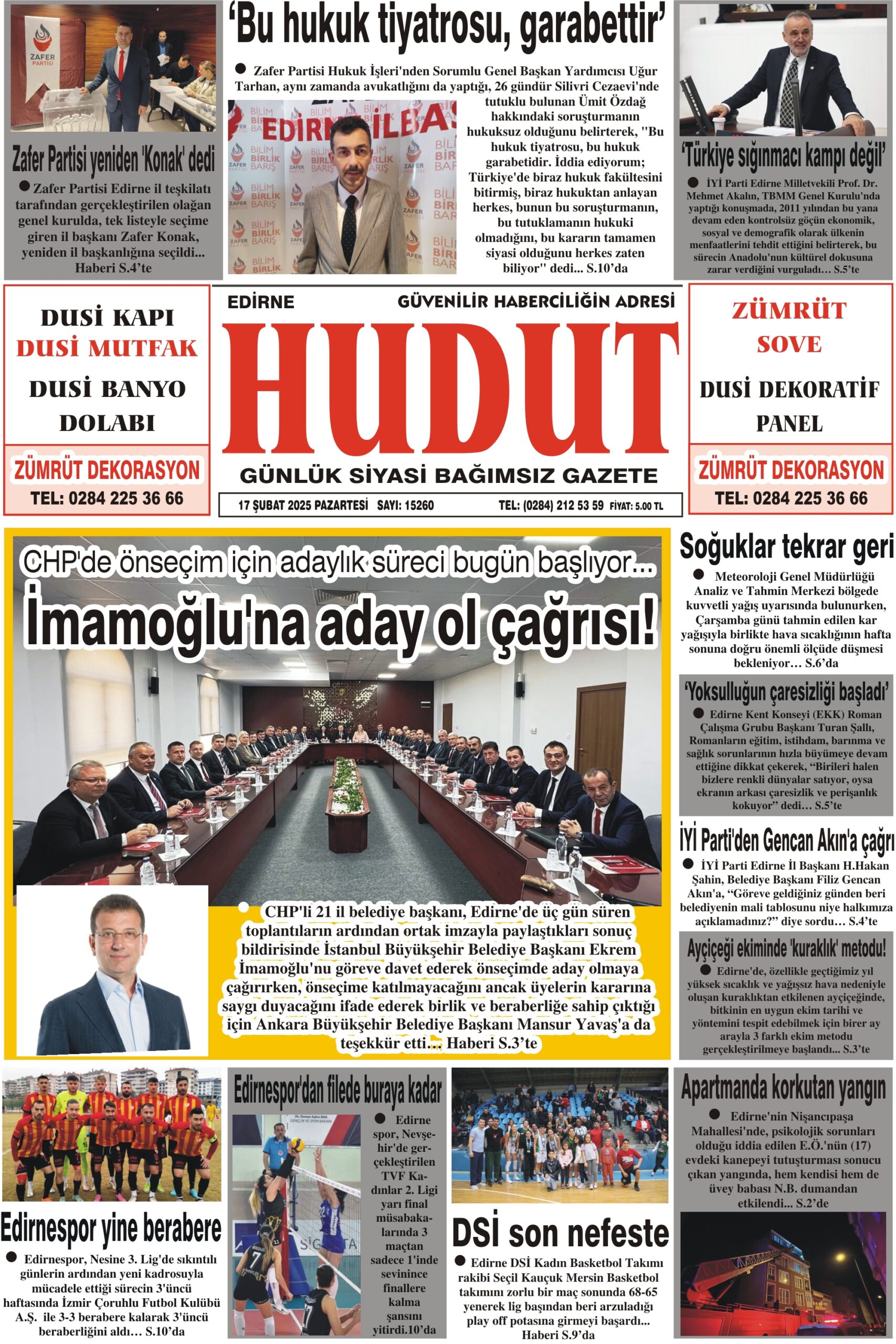 17 Şubat 2025 Pazartesi Hudut Gazetesi