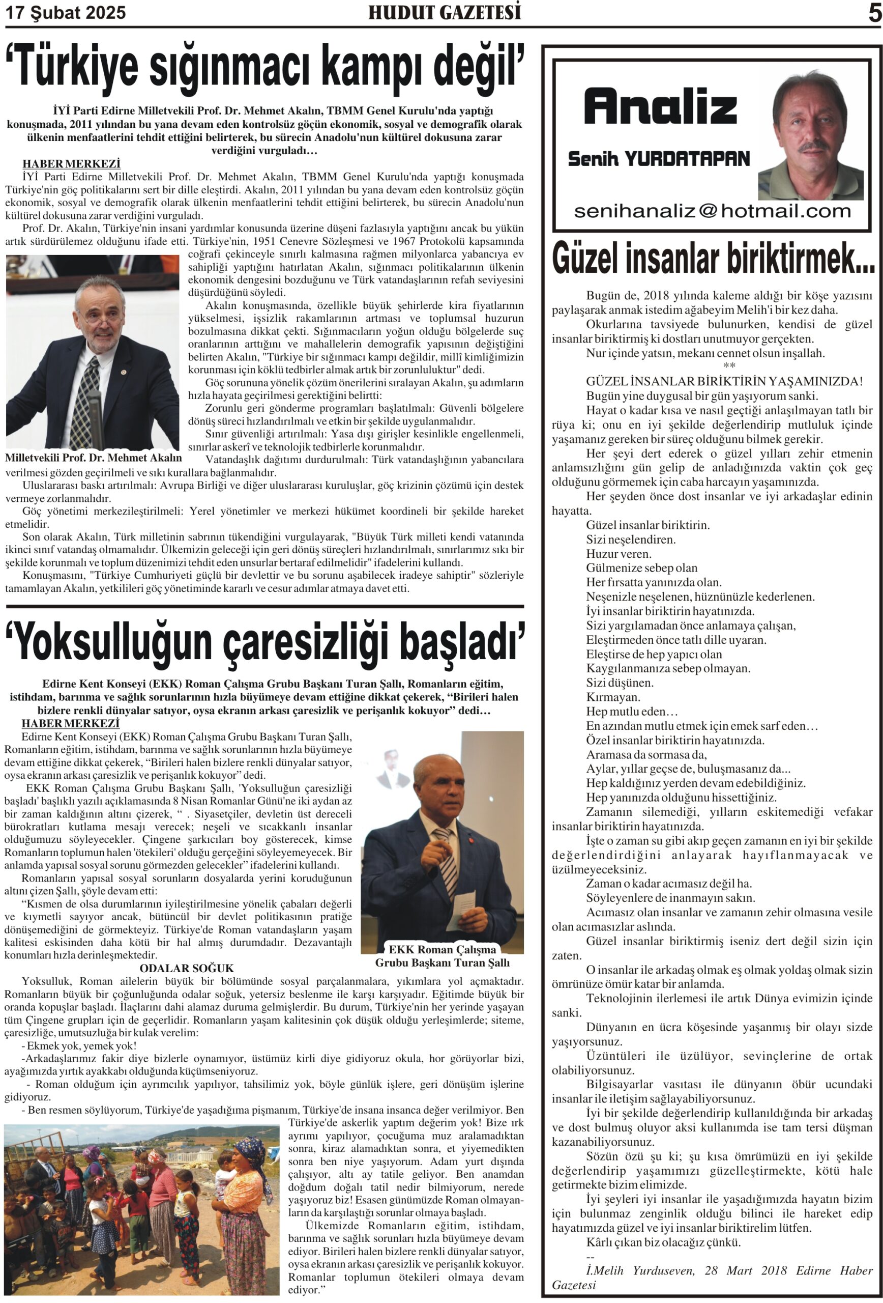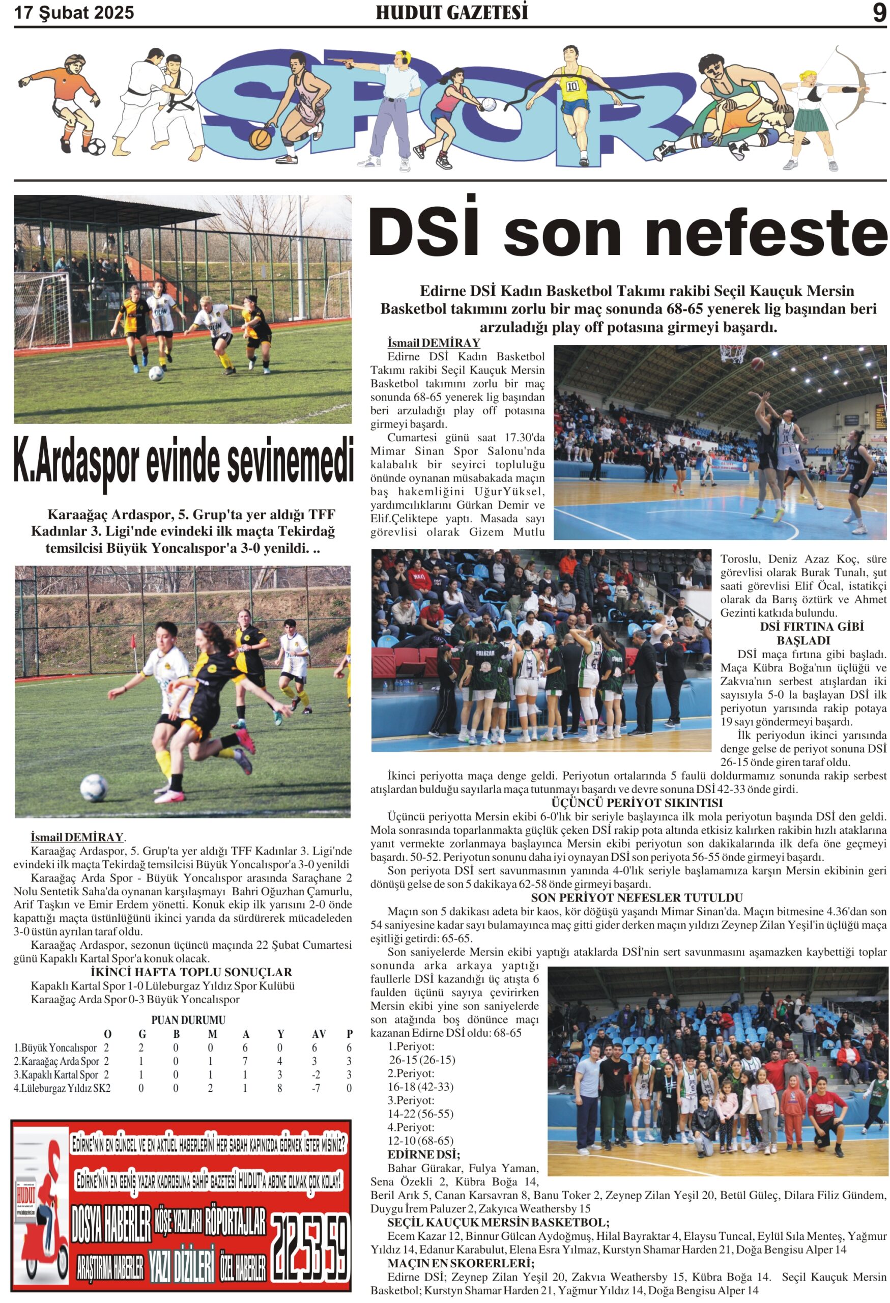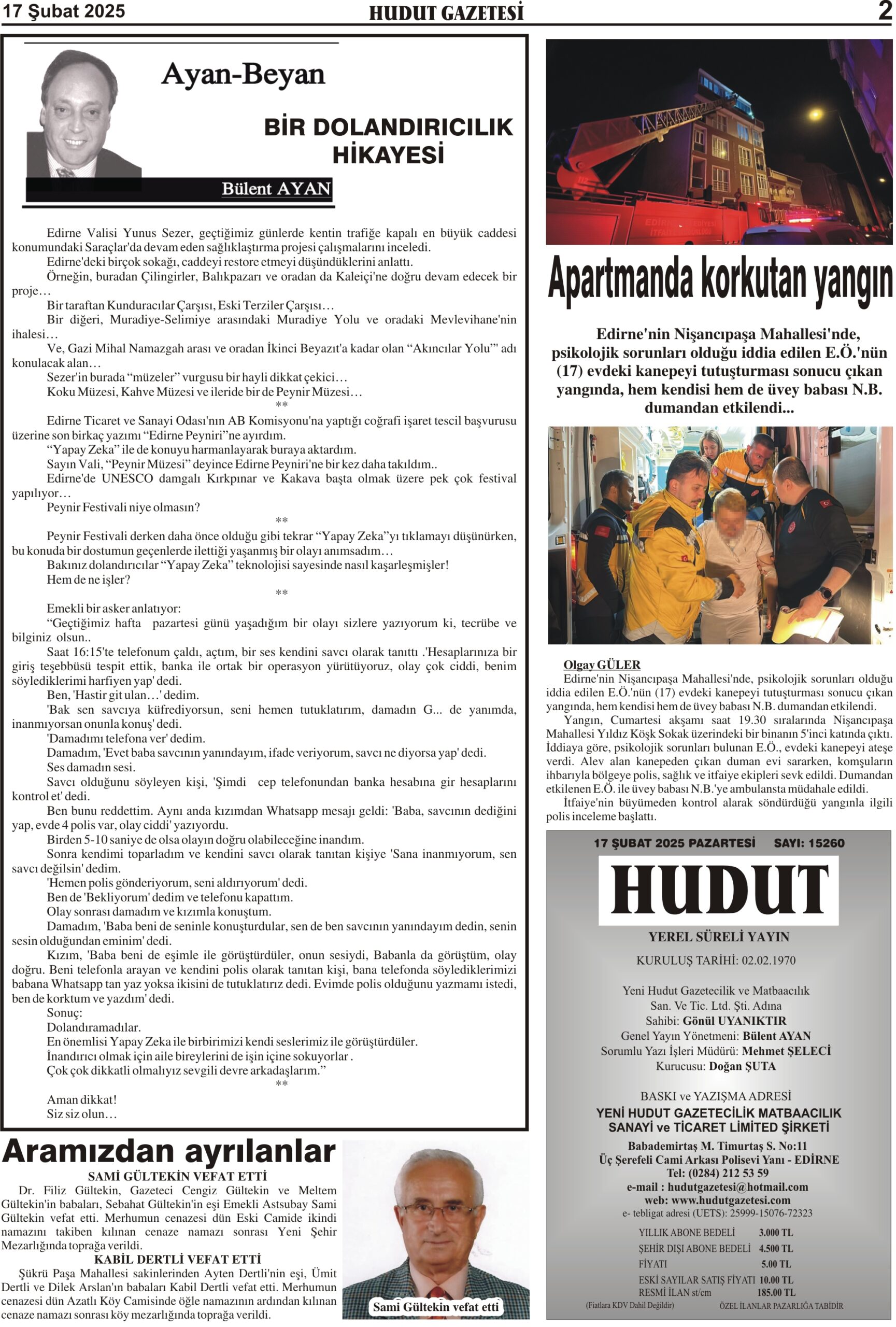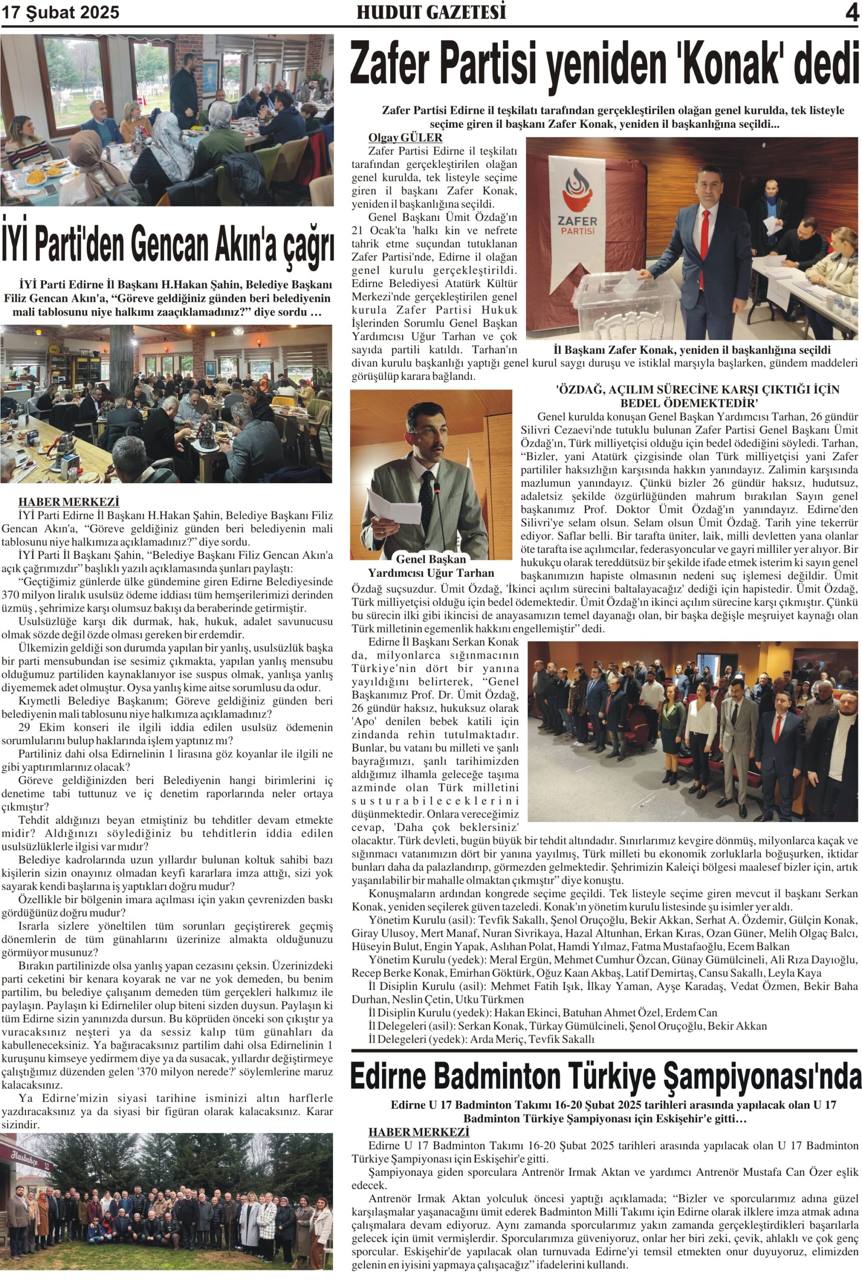 17 Şubat 2025 Pazartesi Hudut Gazetesi