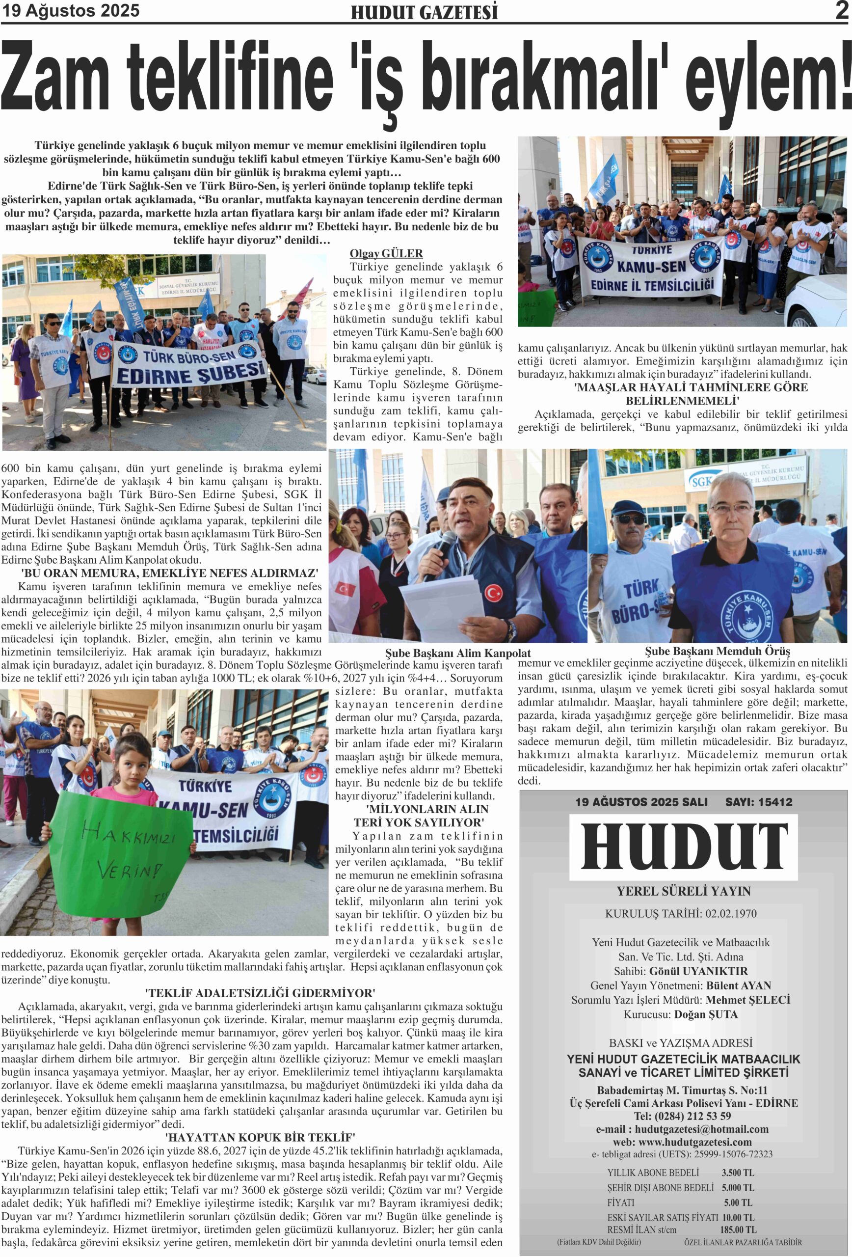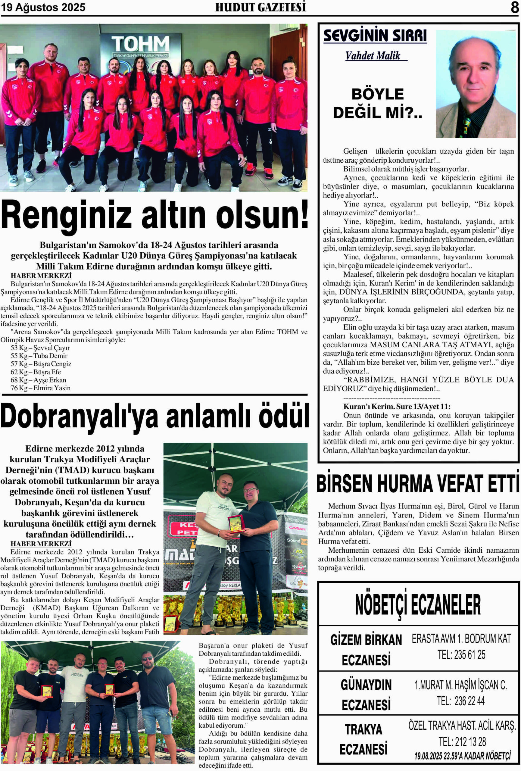 19 Ağustos 2025 Salı Hudut Gazetesi