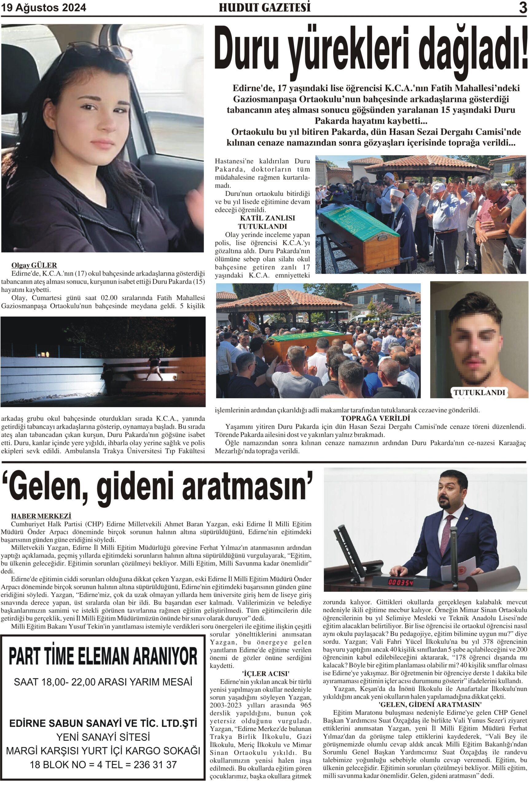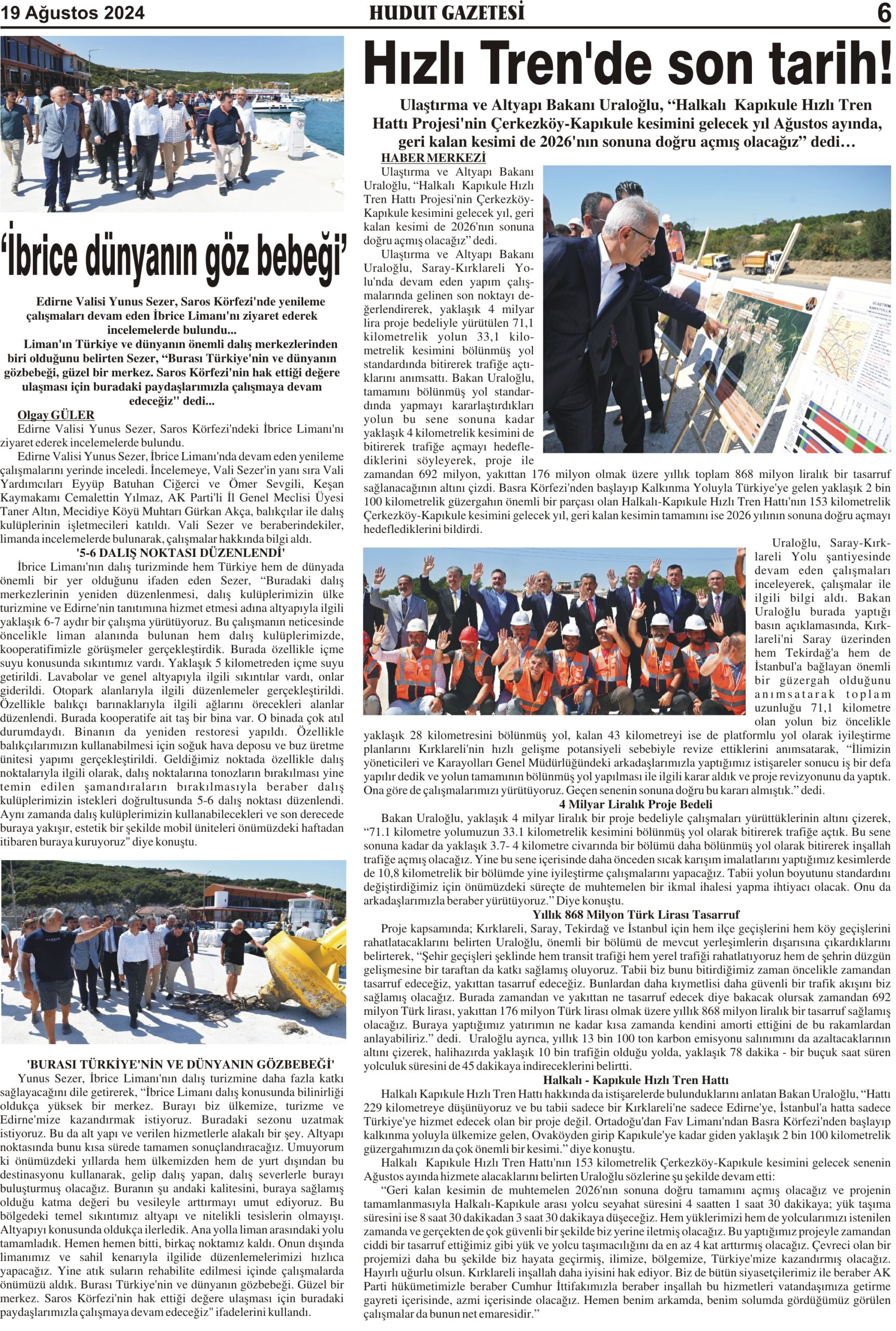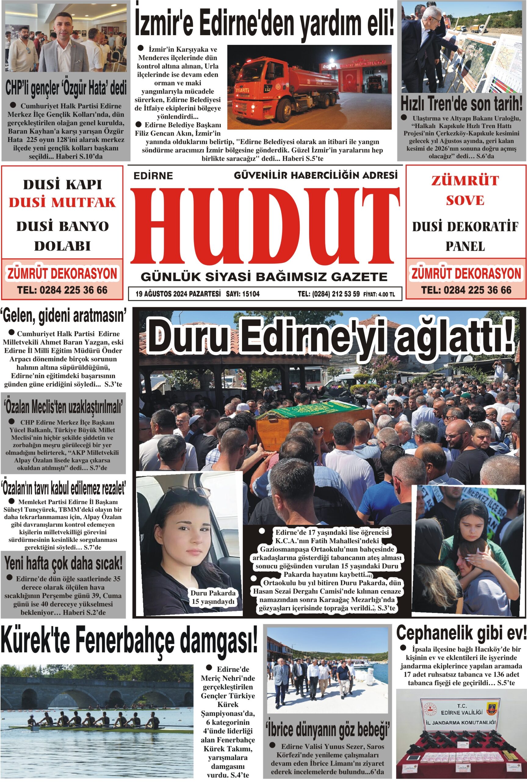 19 Ağustos 2024 Pazartesi Hudut Gazetesi