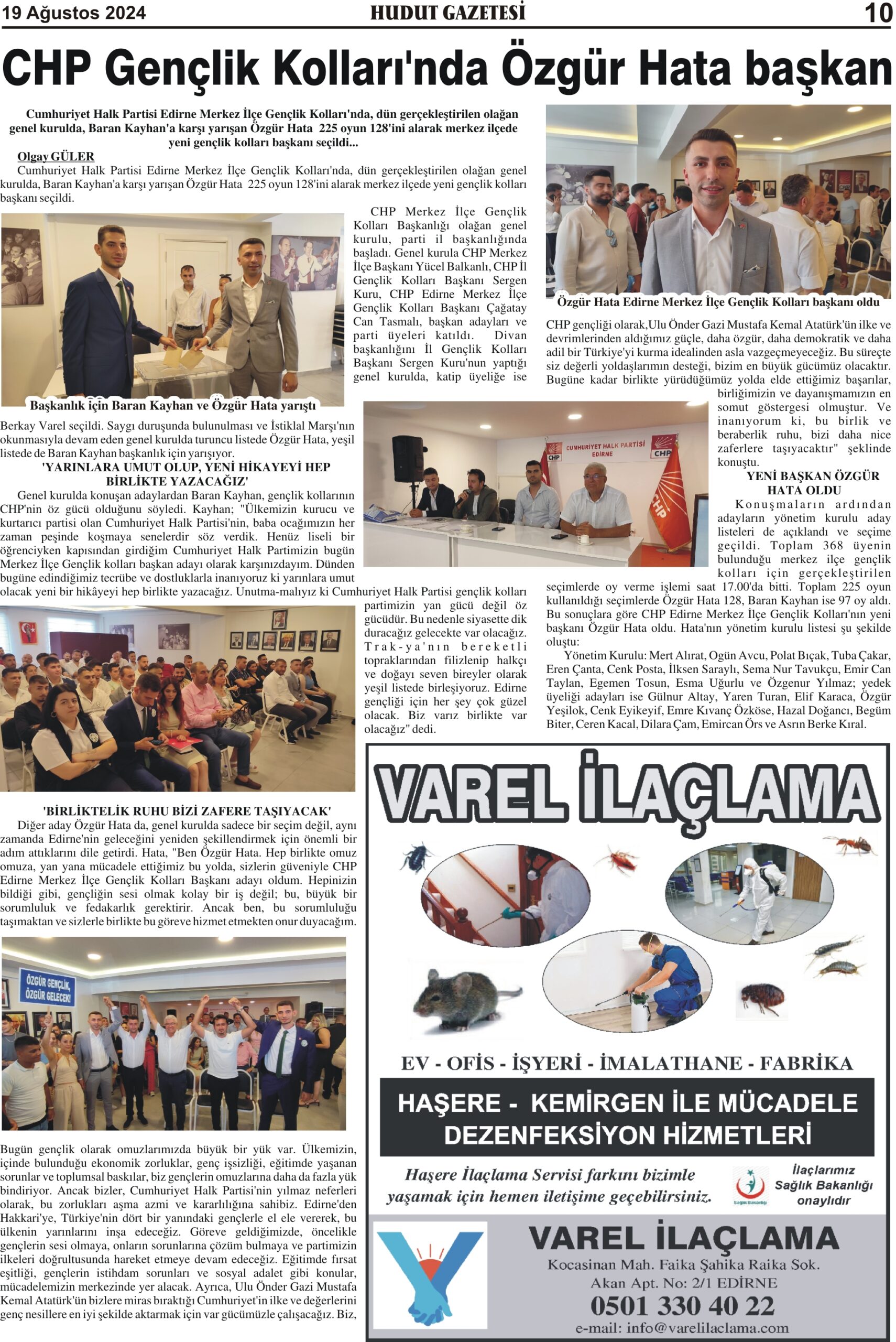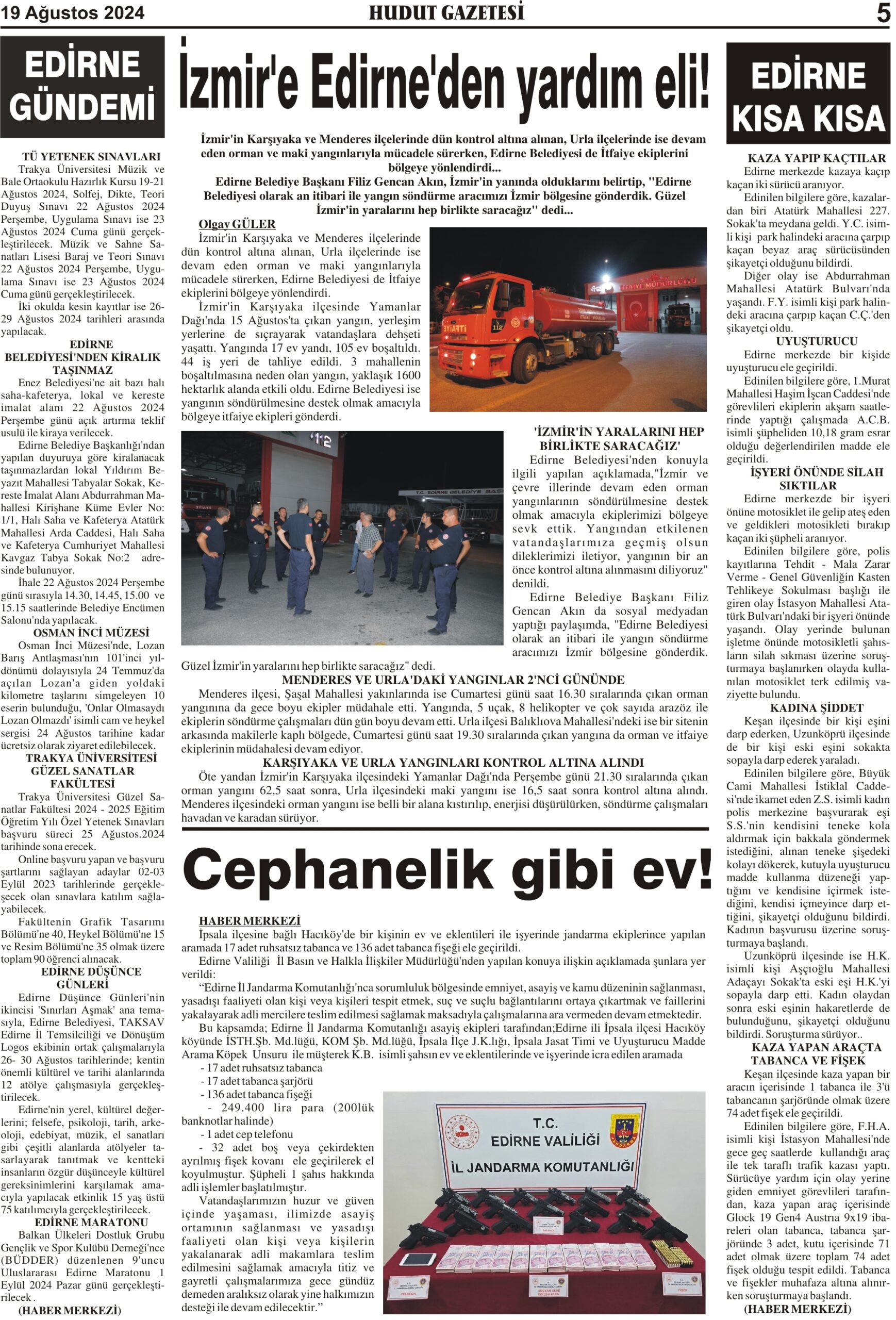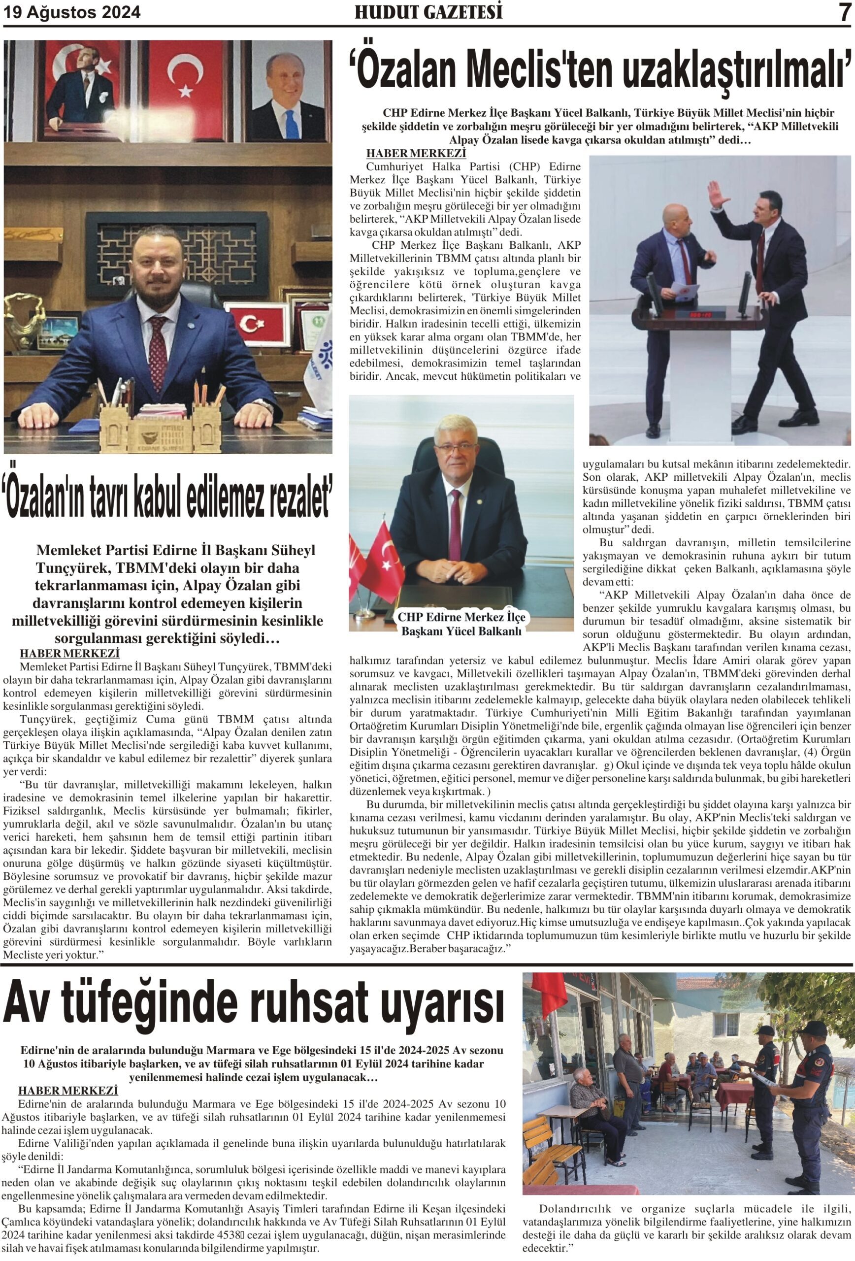 19 Ağustos 2024 Pazartesi Hudut Gazetesi