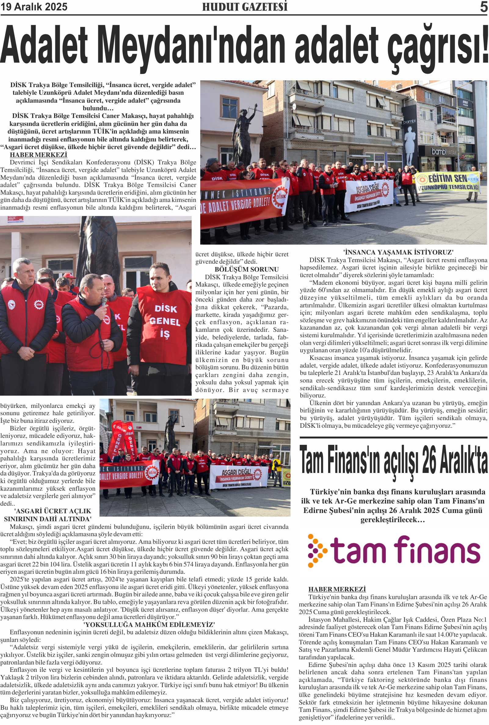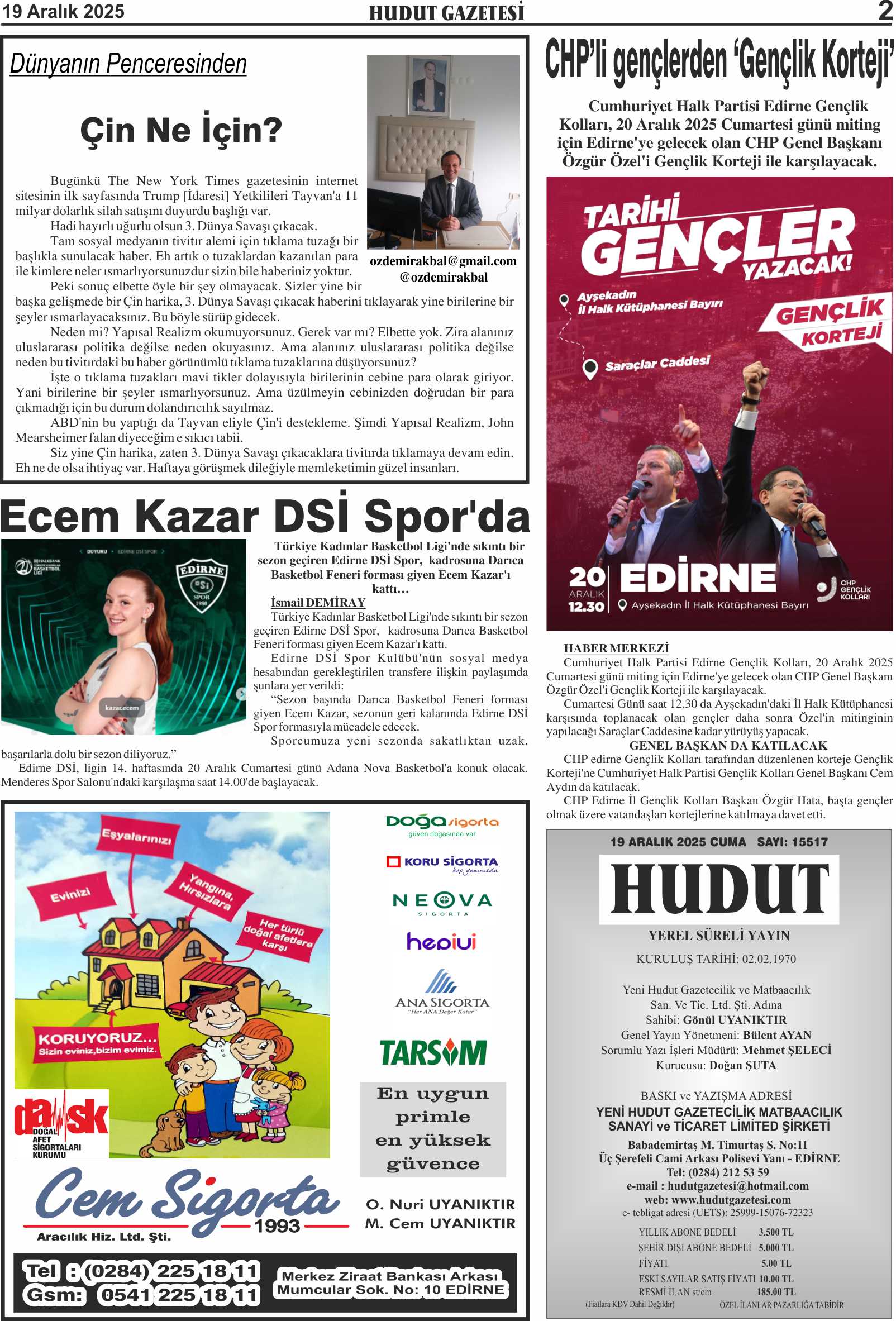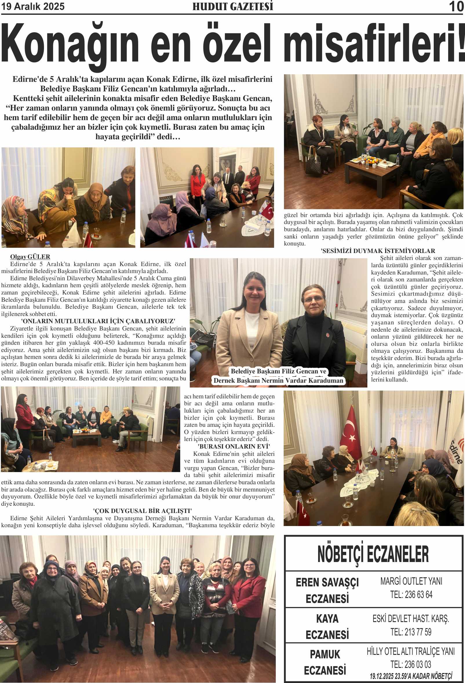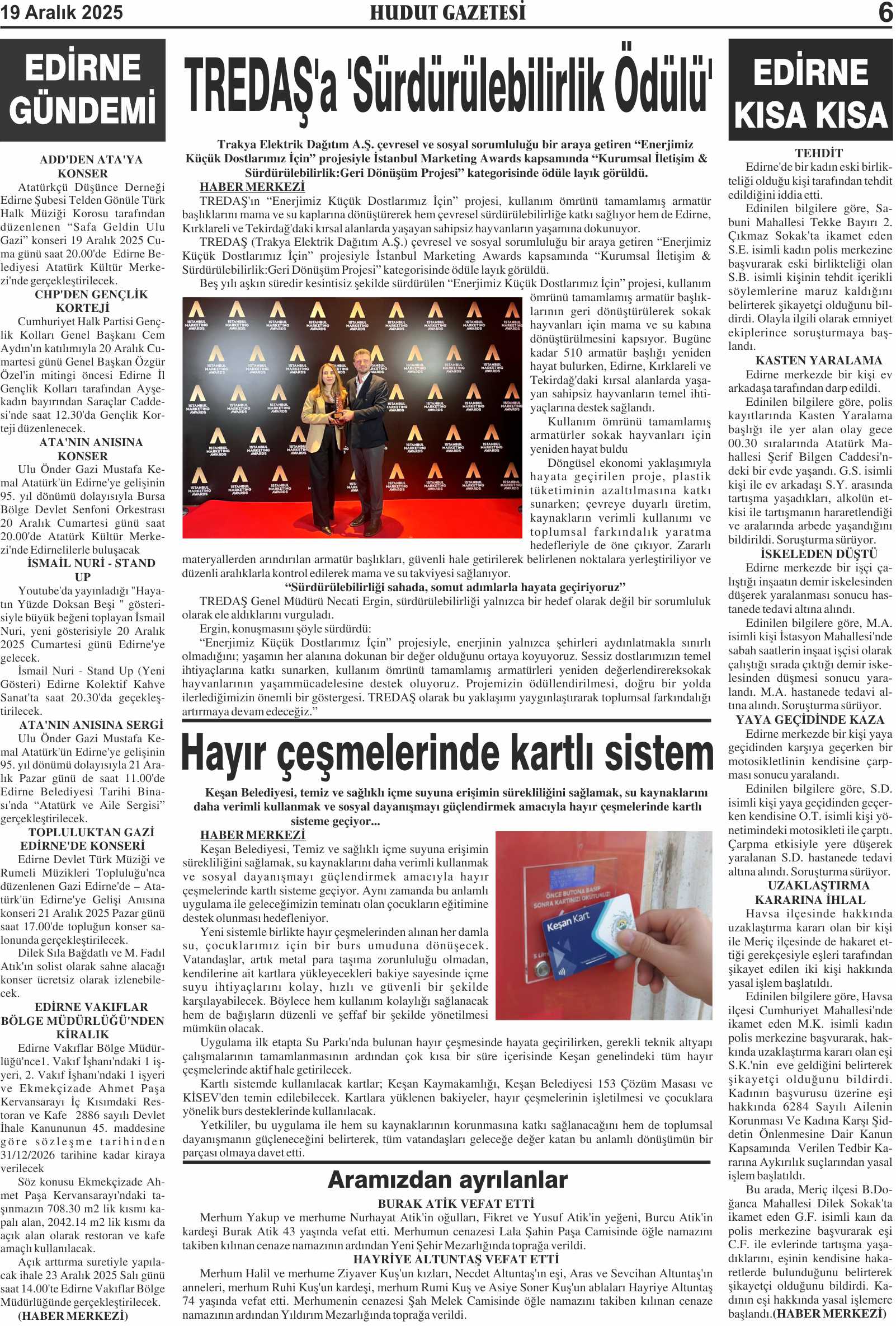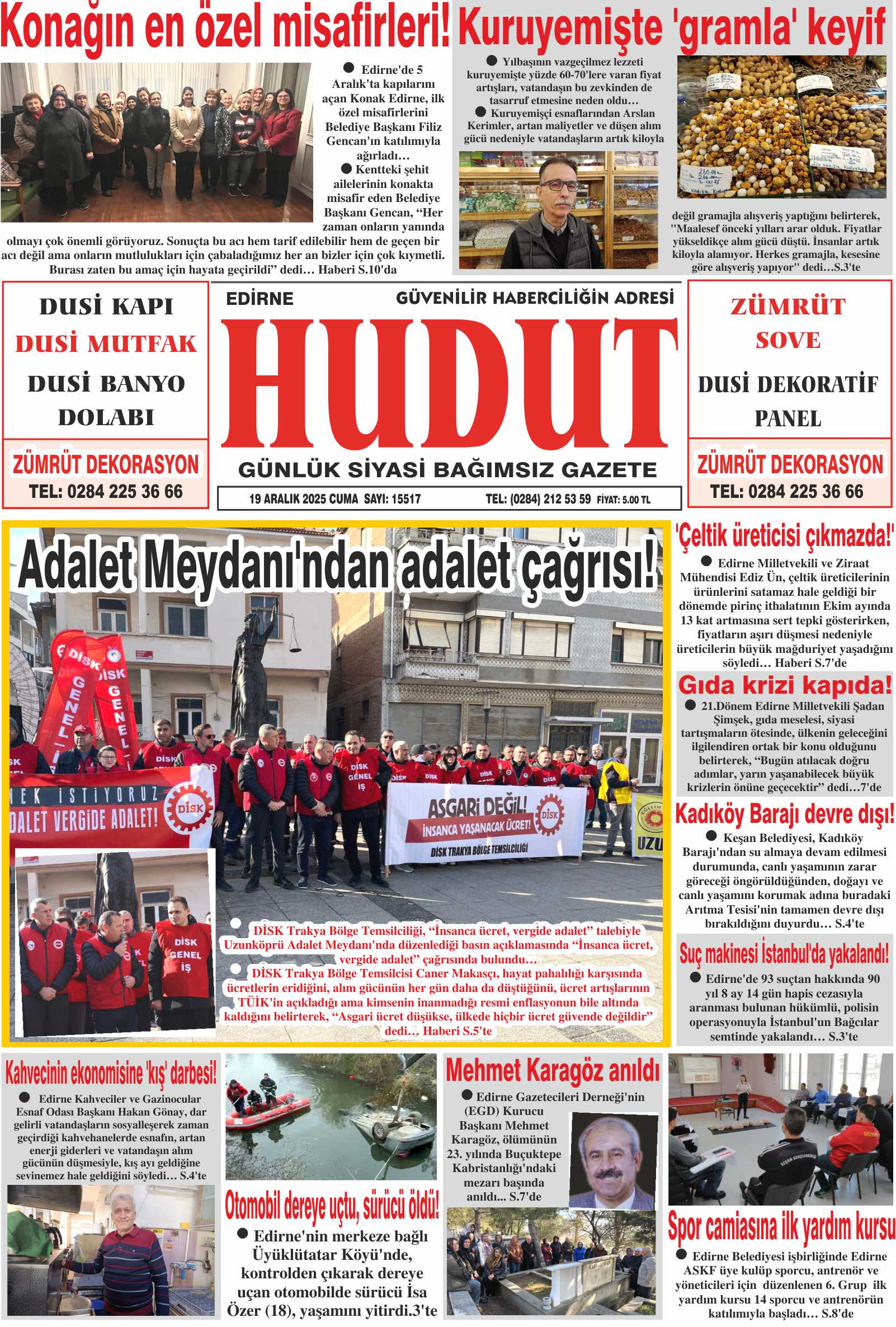 19 Aralık 2025 Cuma Hudut Gazetesi