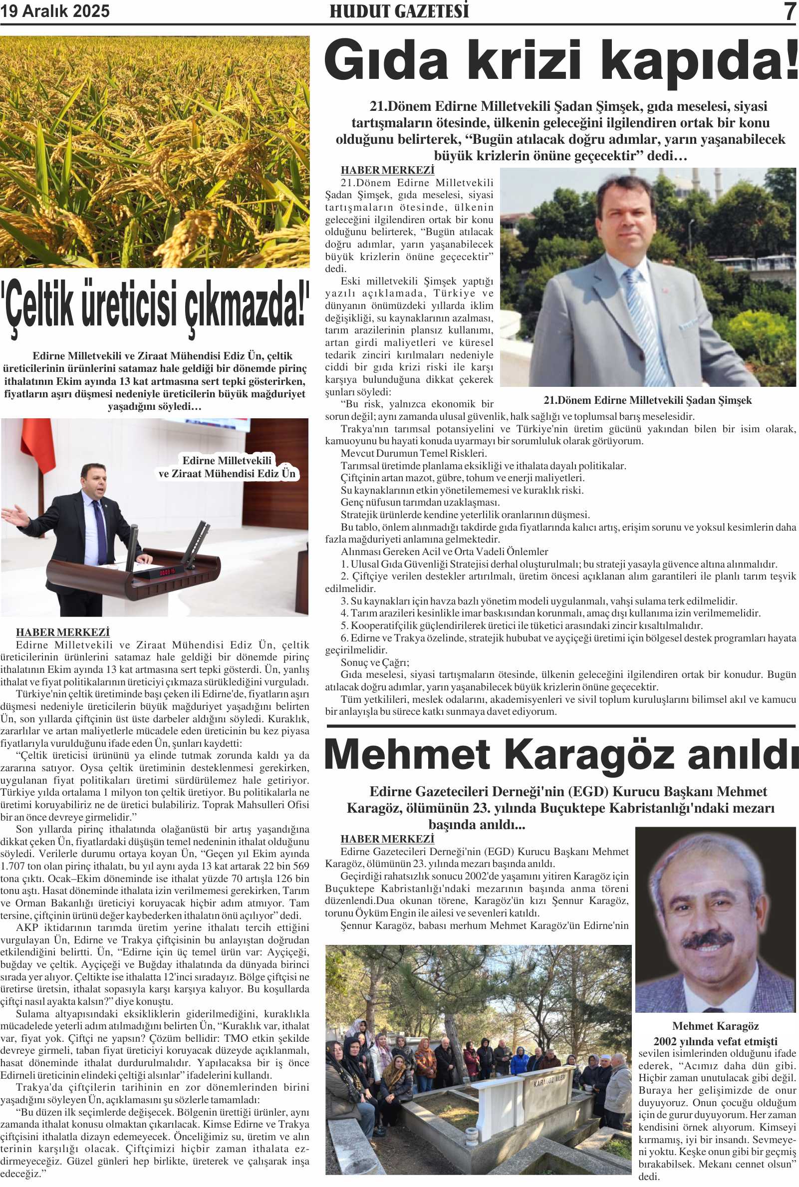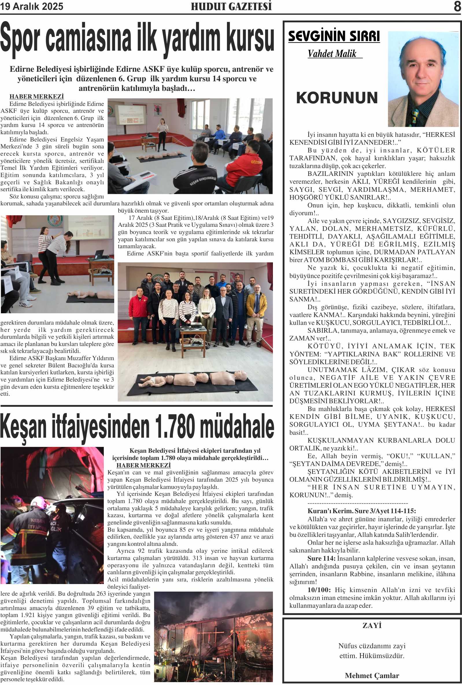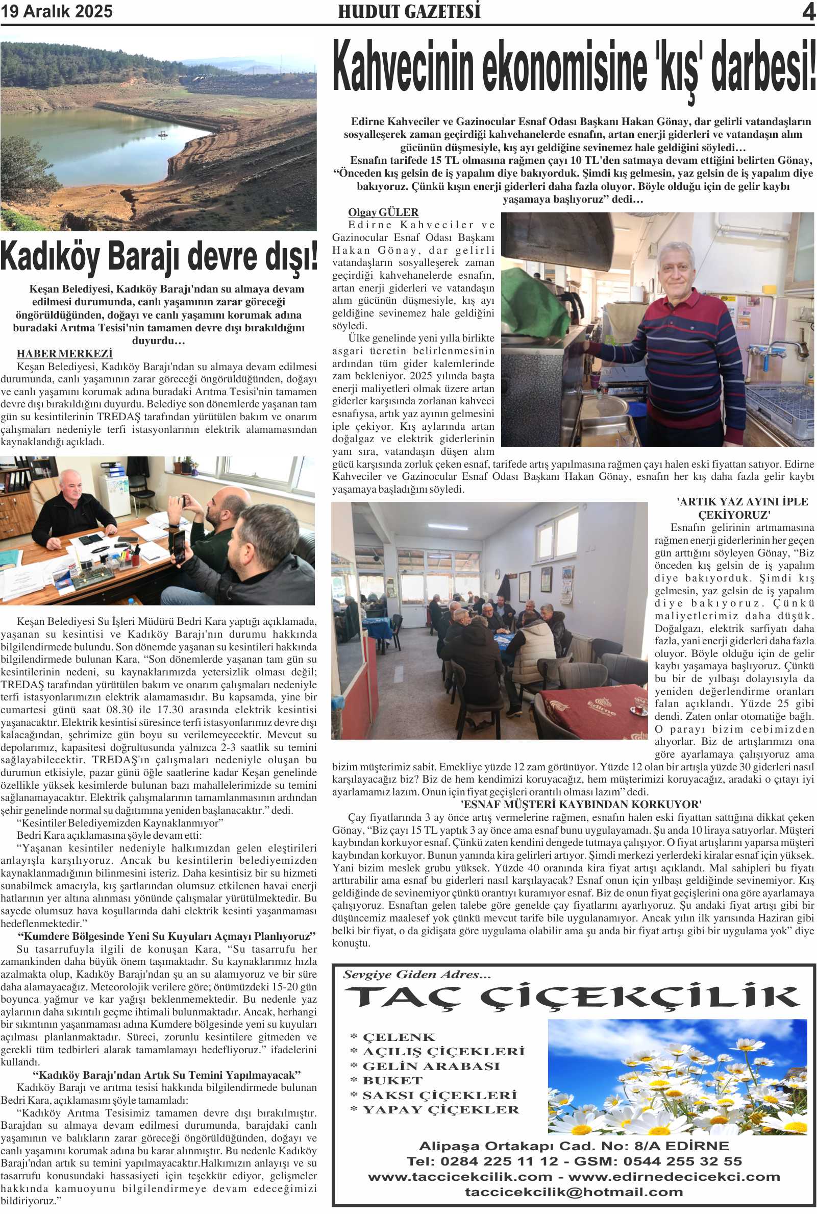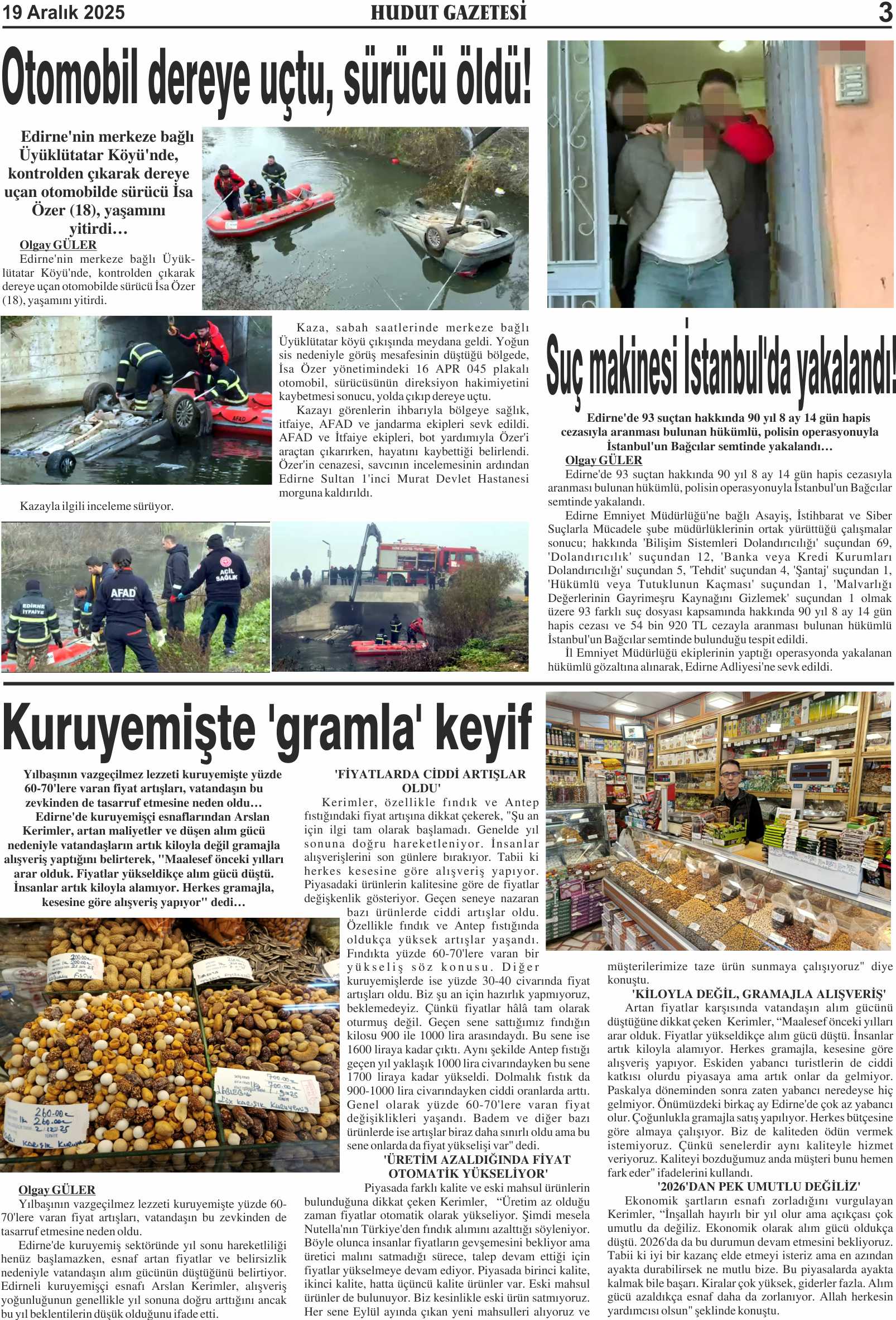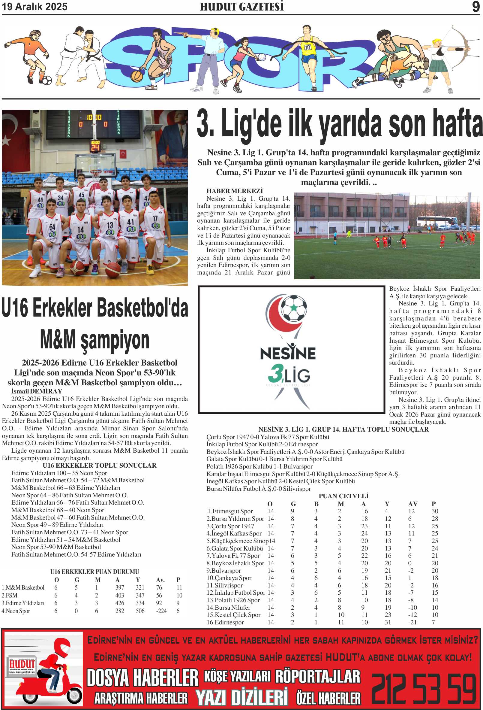 19 Aralık 2025 Cuma Hudut Gazetesi