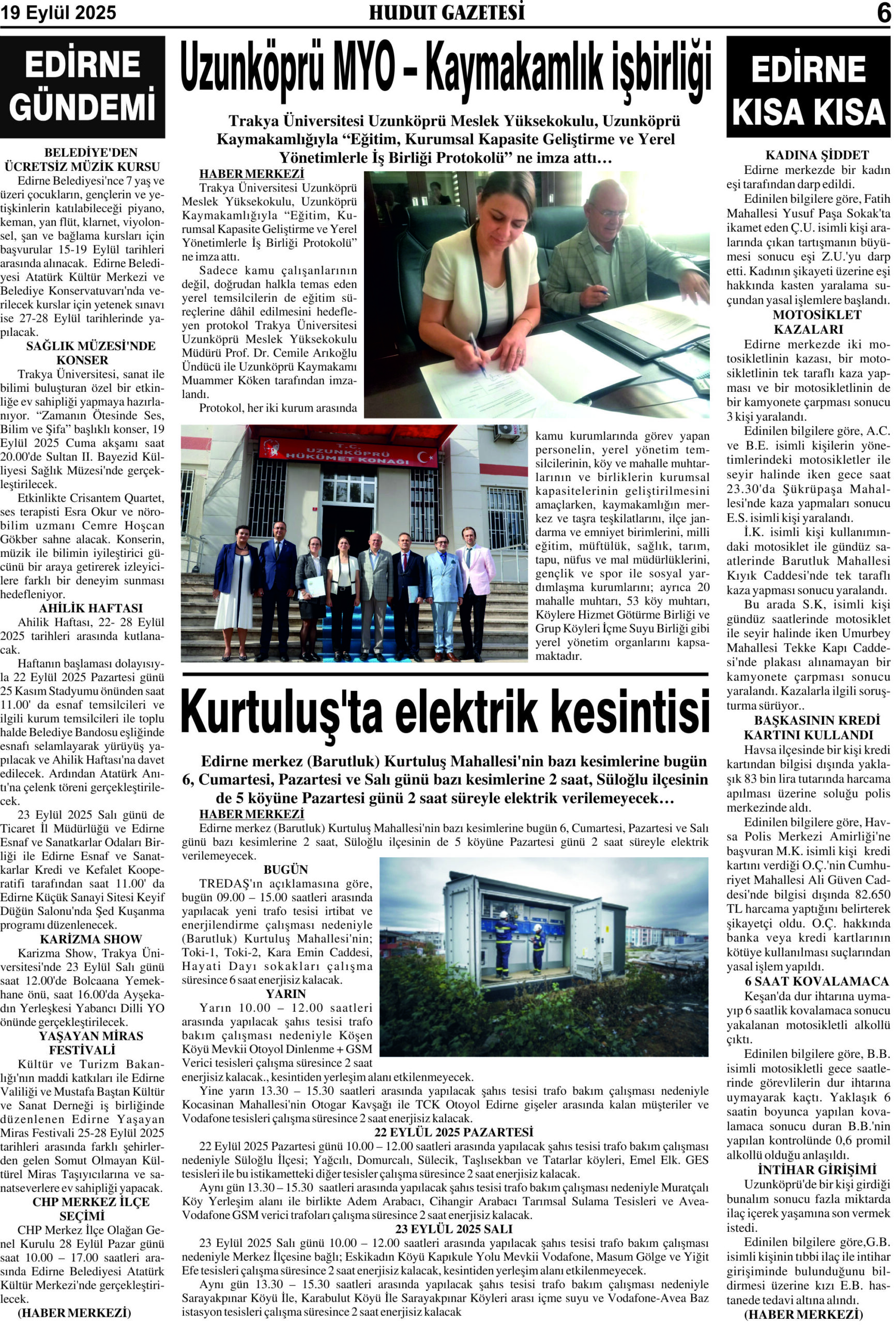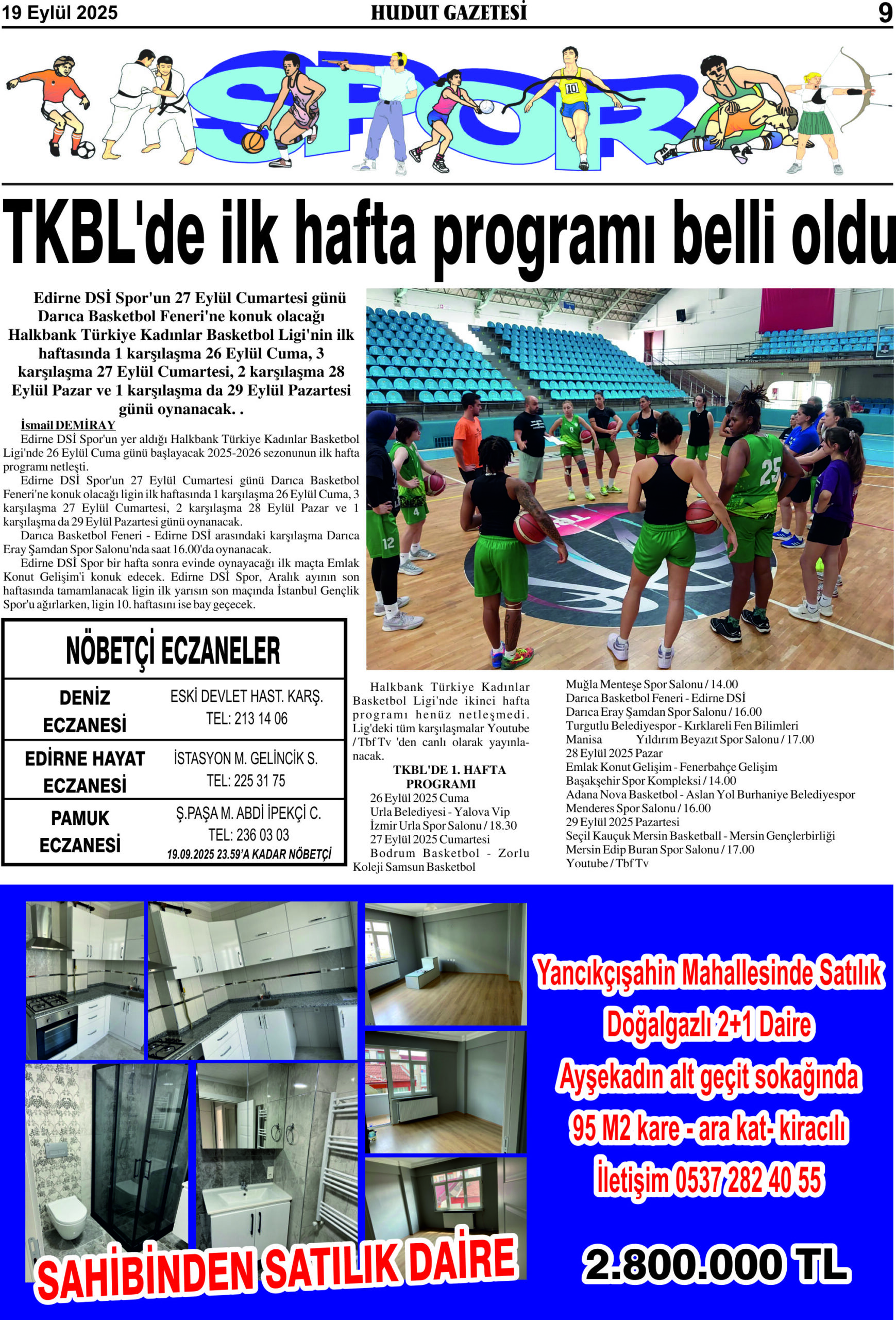 19 Eylül 2025 Cuma Hudut Gazetesi