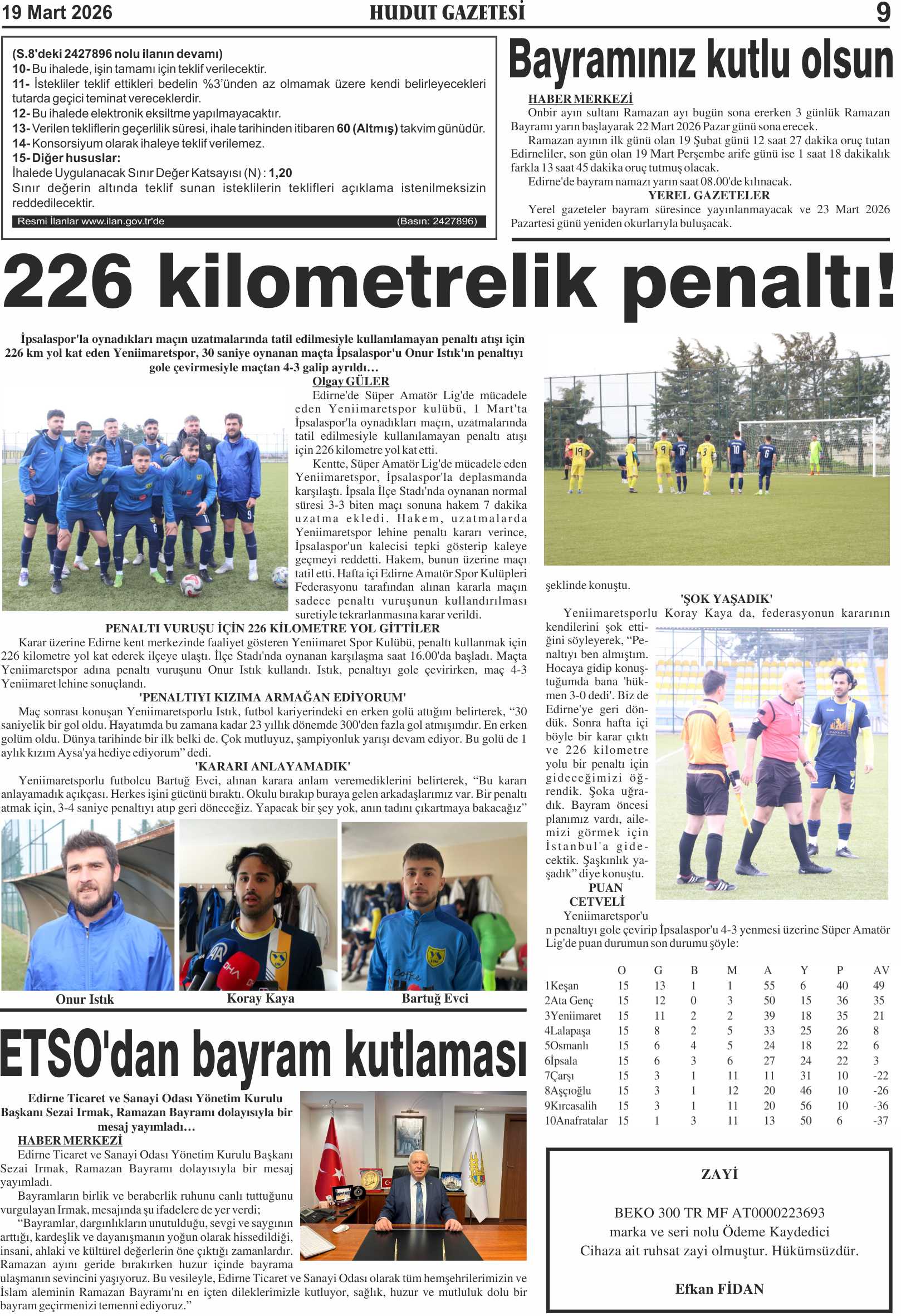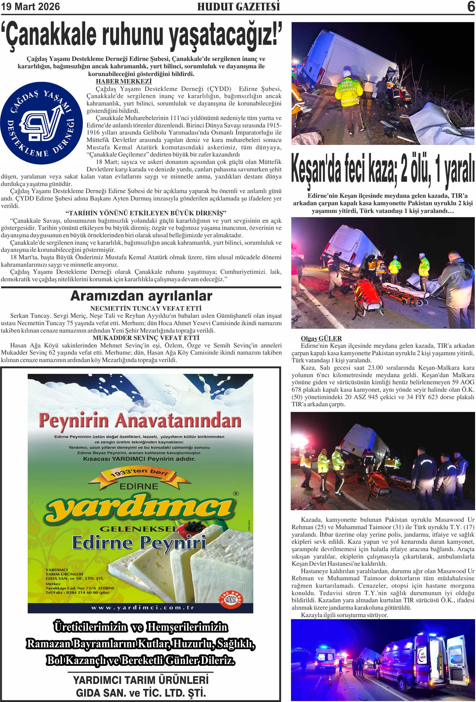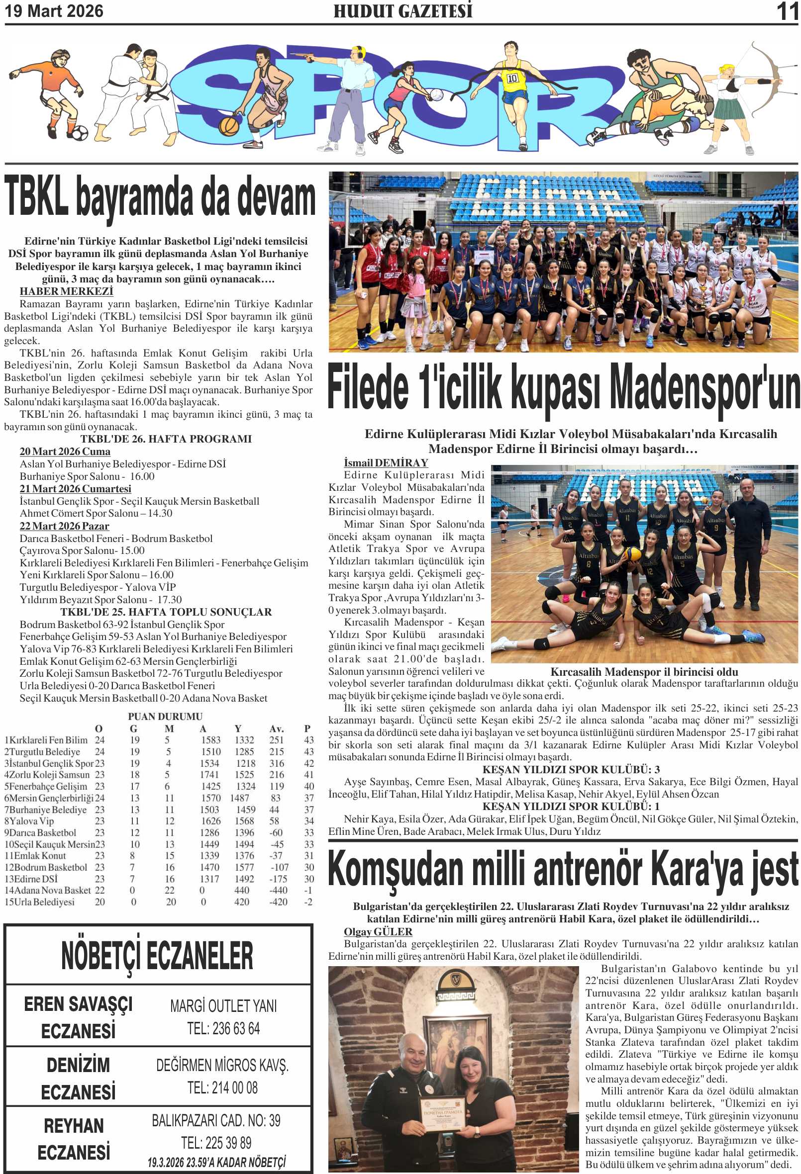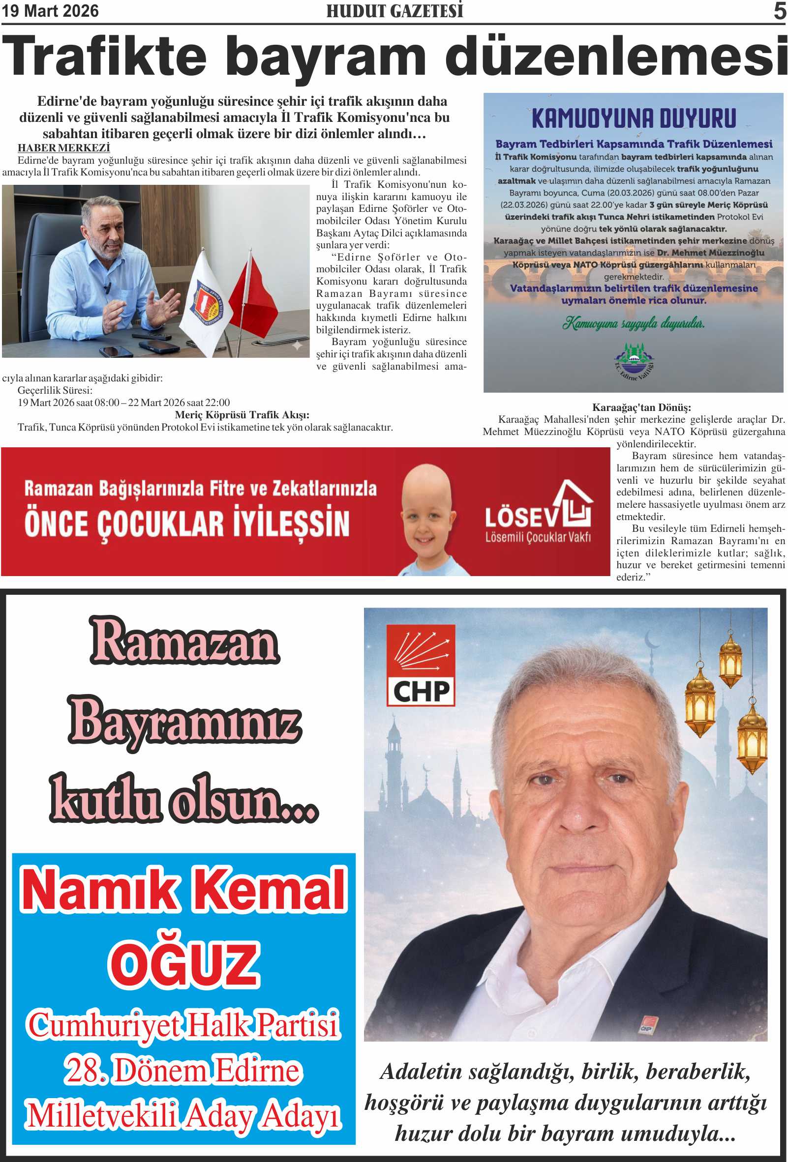 19 Mart 2026 Perşembe Hudut Gazetesi
