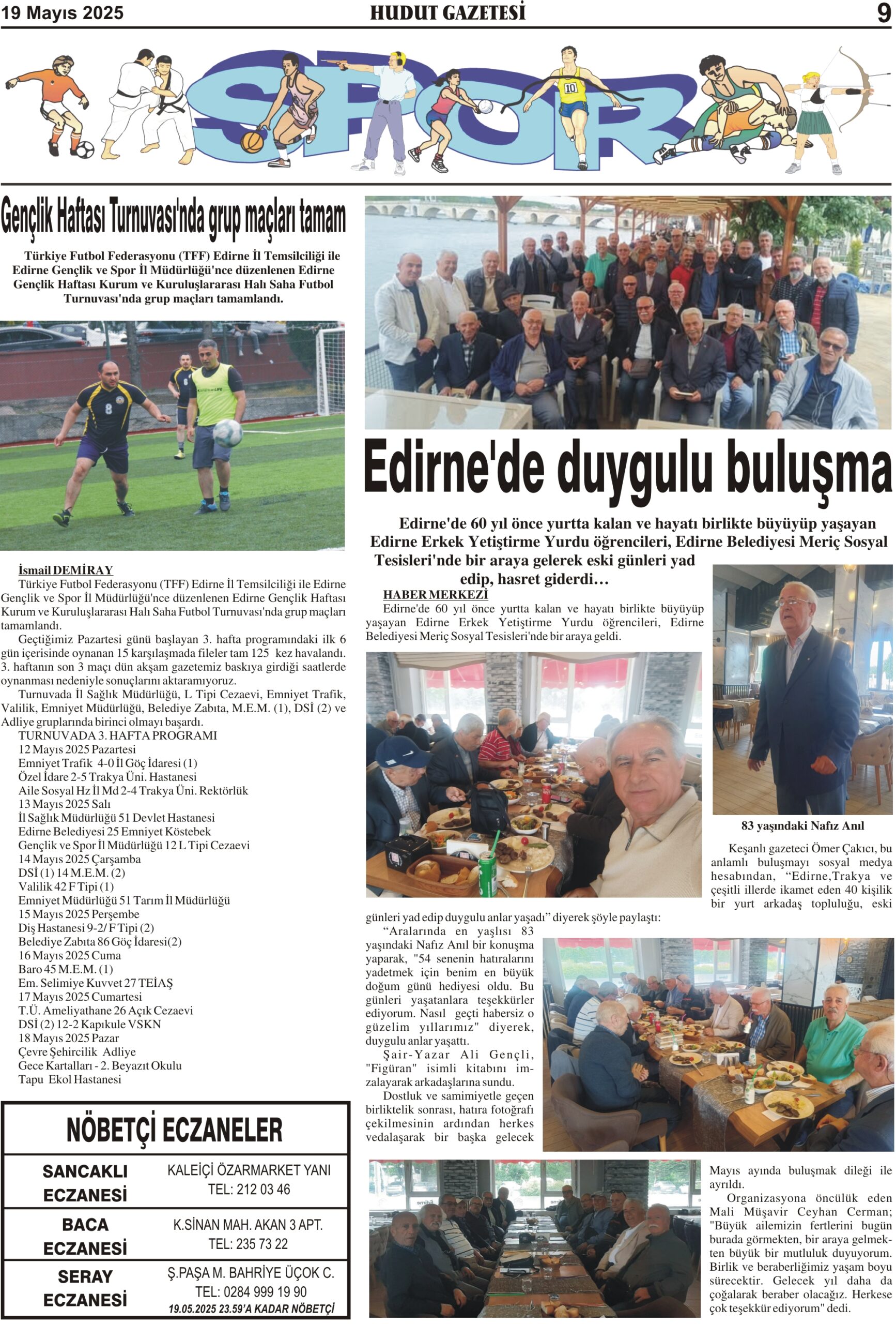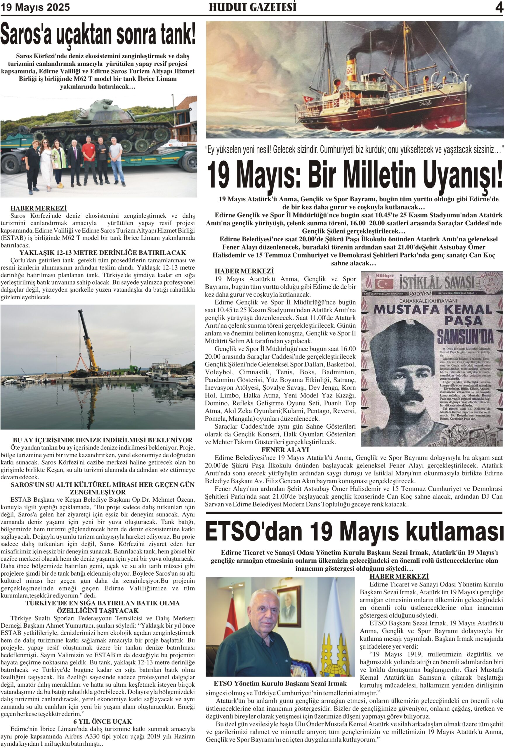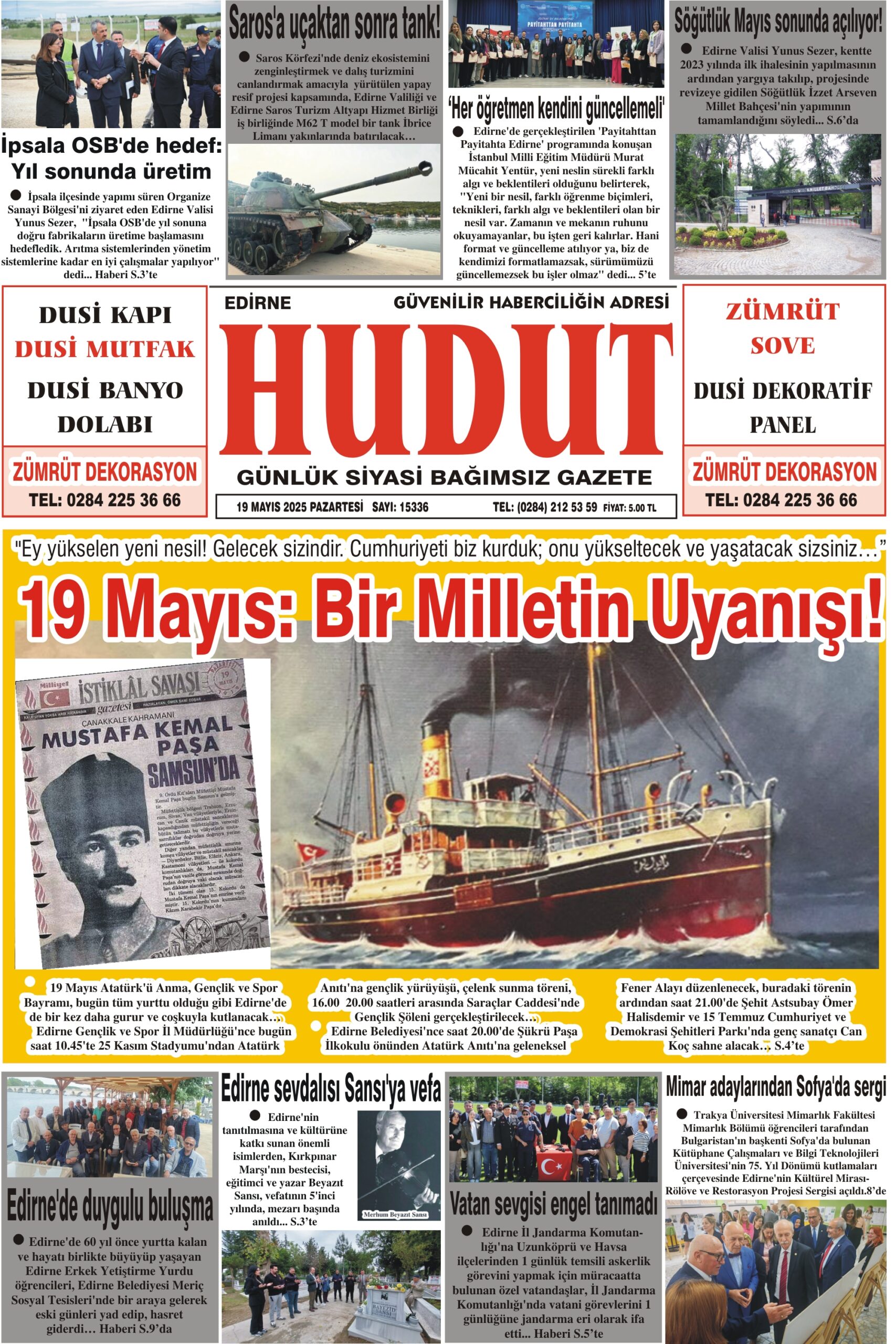 19 Mayıs 2025 Pazartesi Hudut Gazetesi