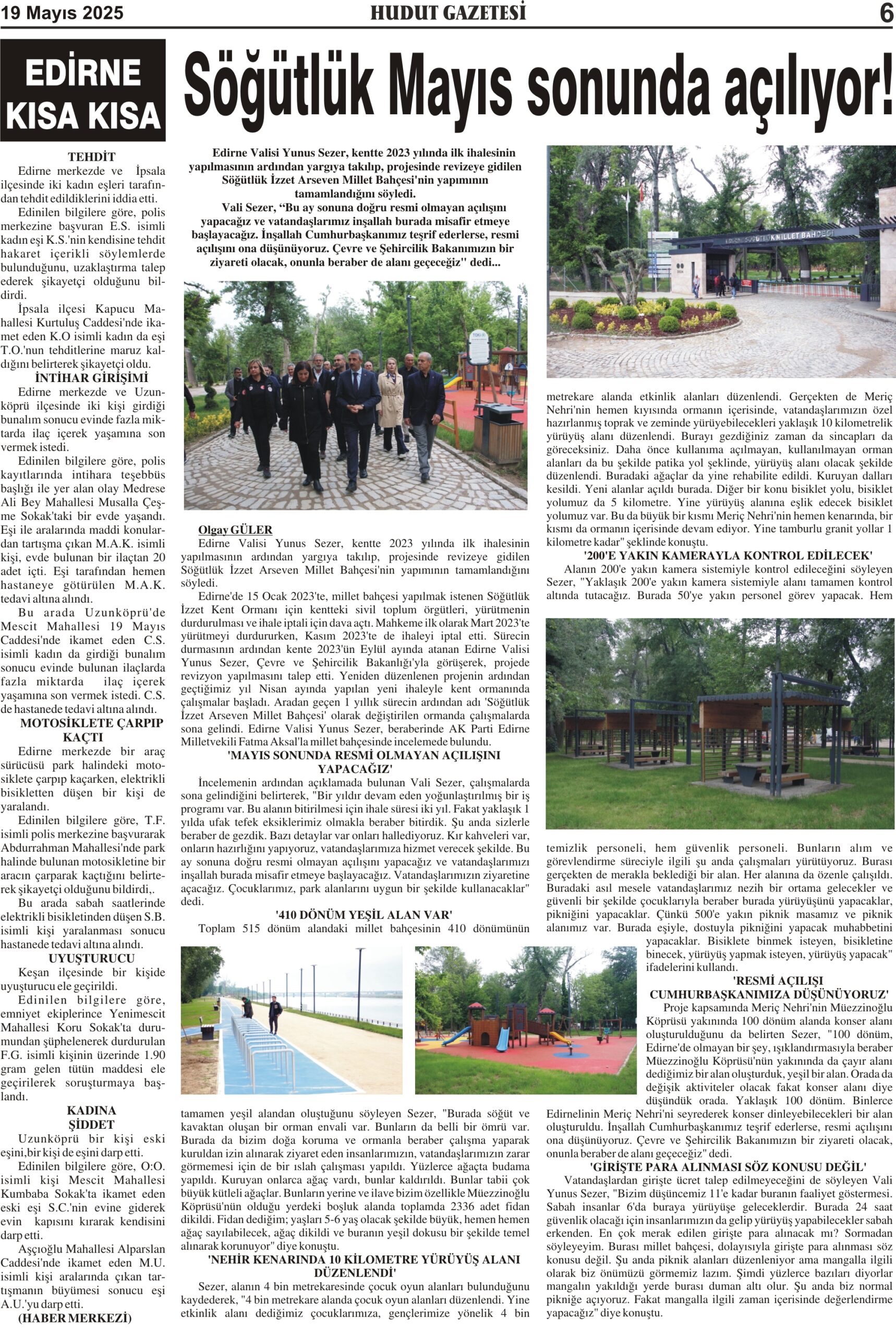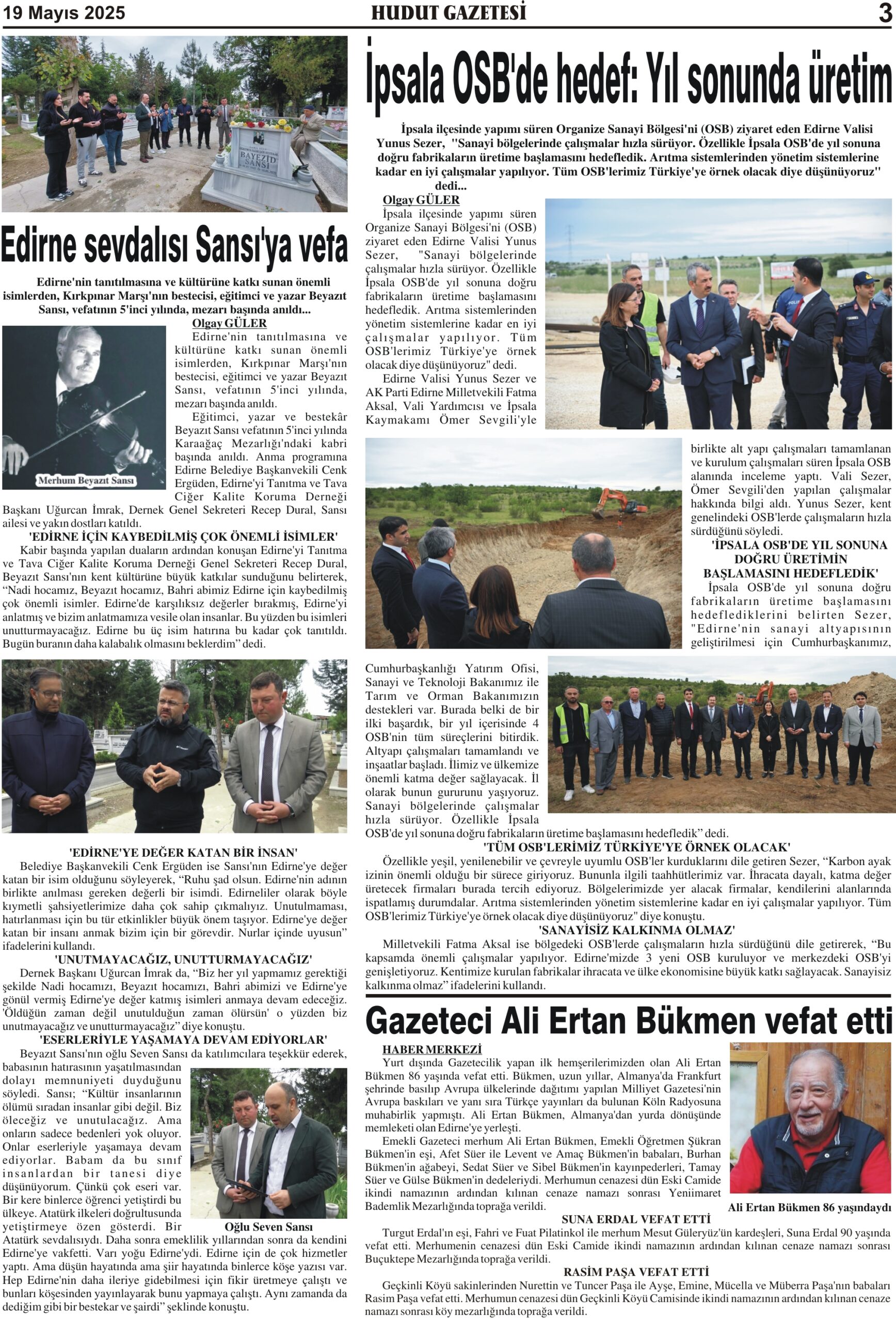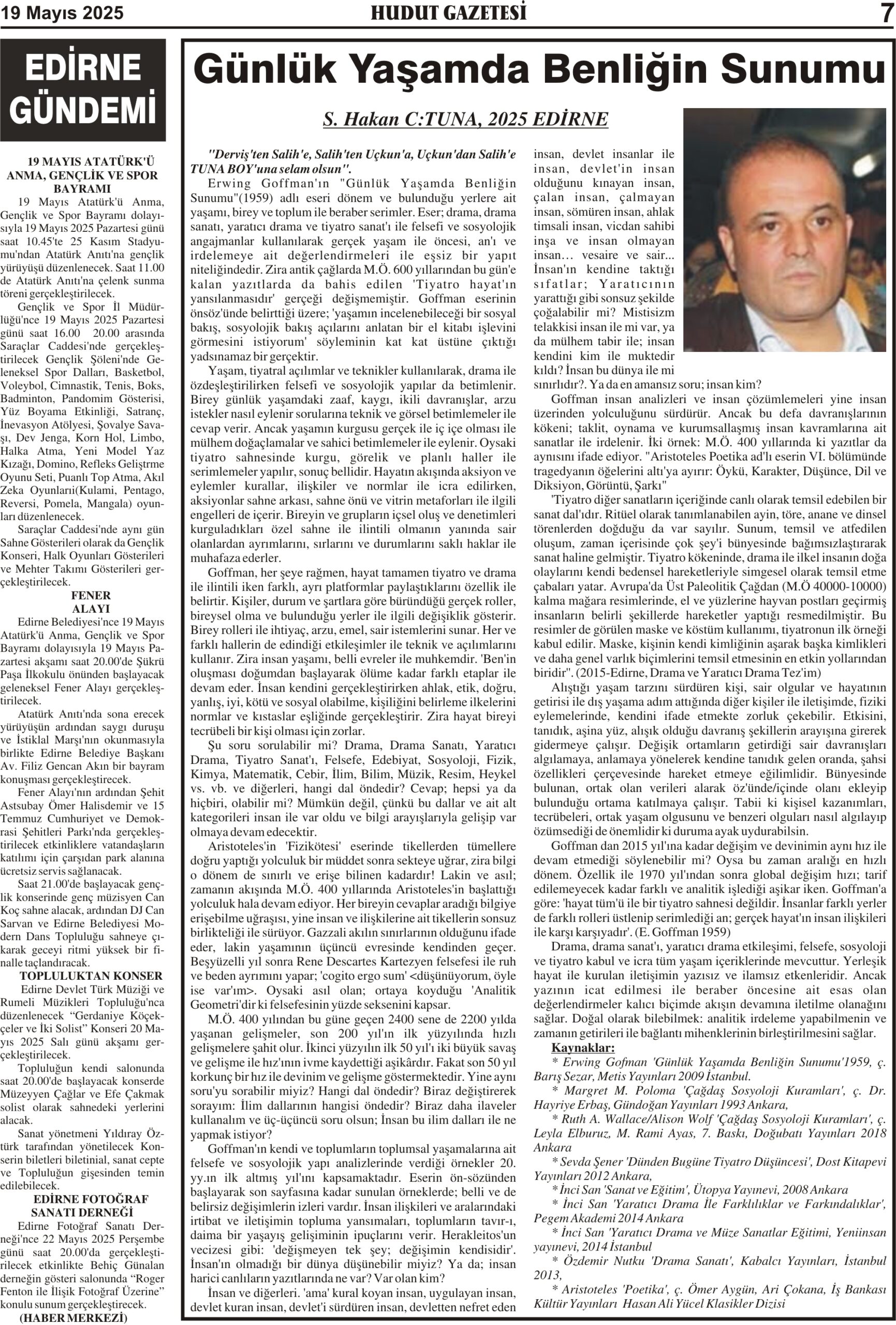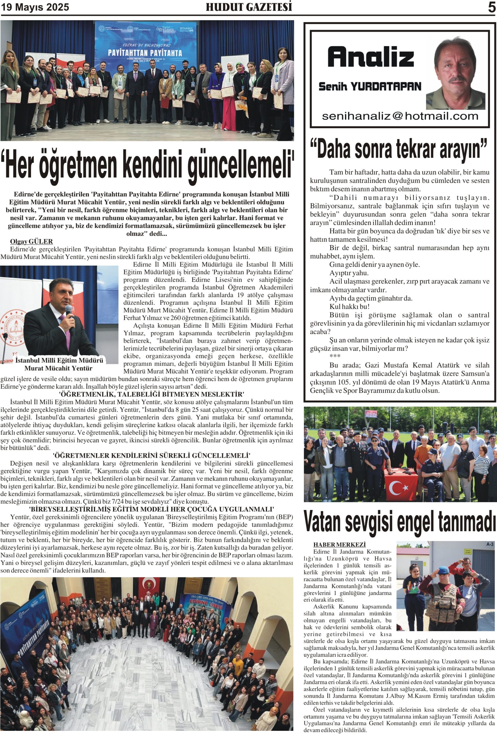 19 Mayıs 2025 Pazartesi Hudut Gazetesi