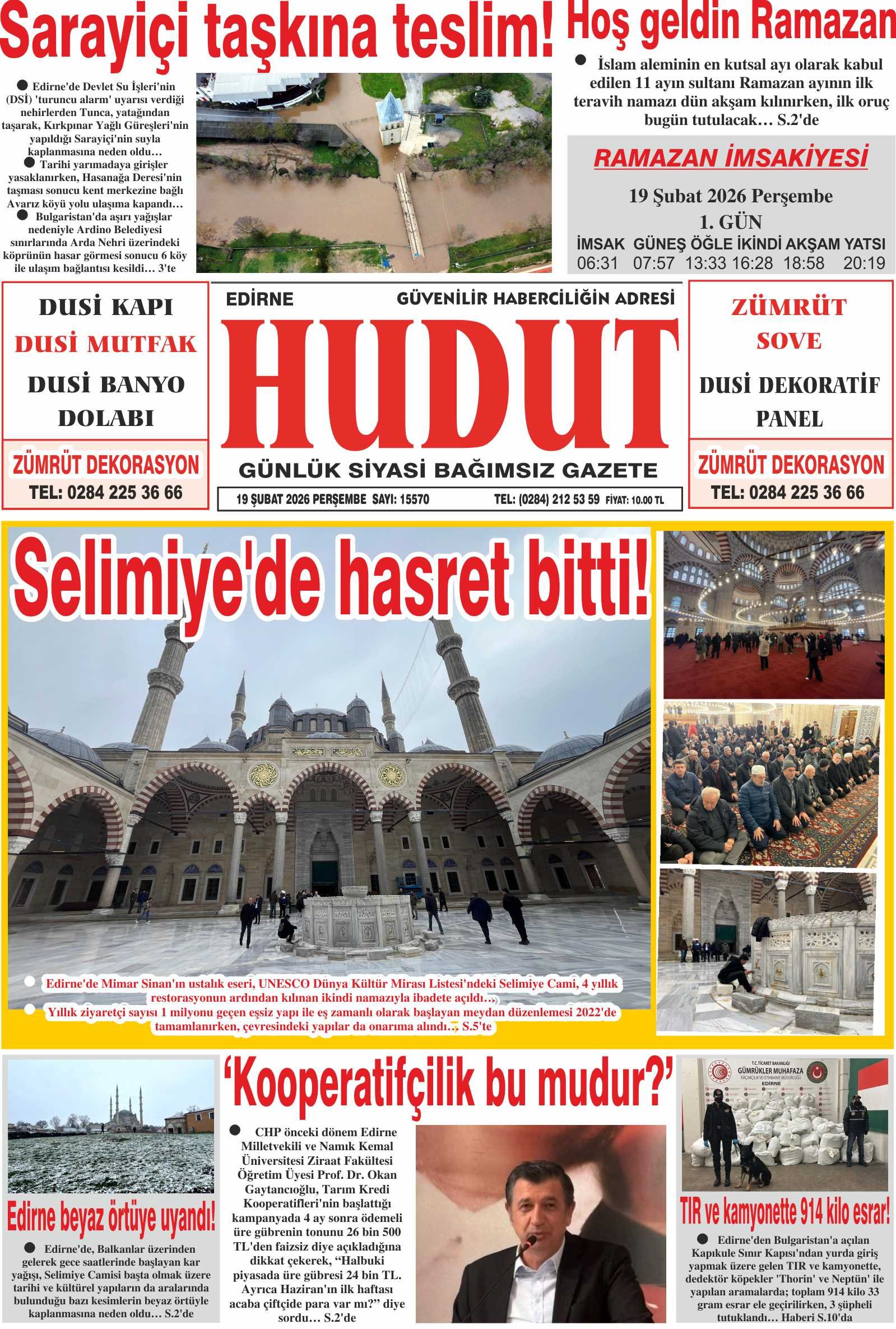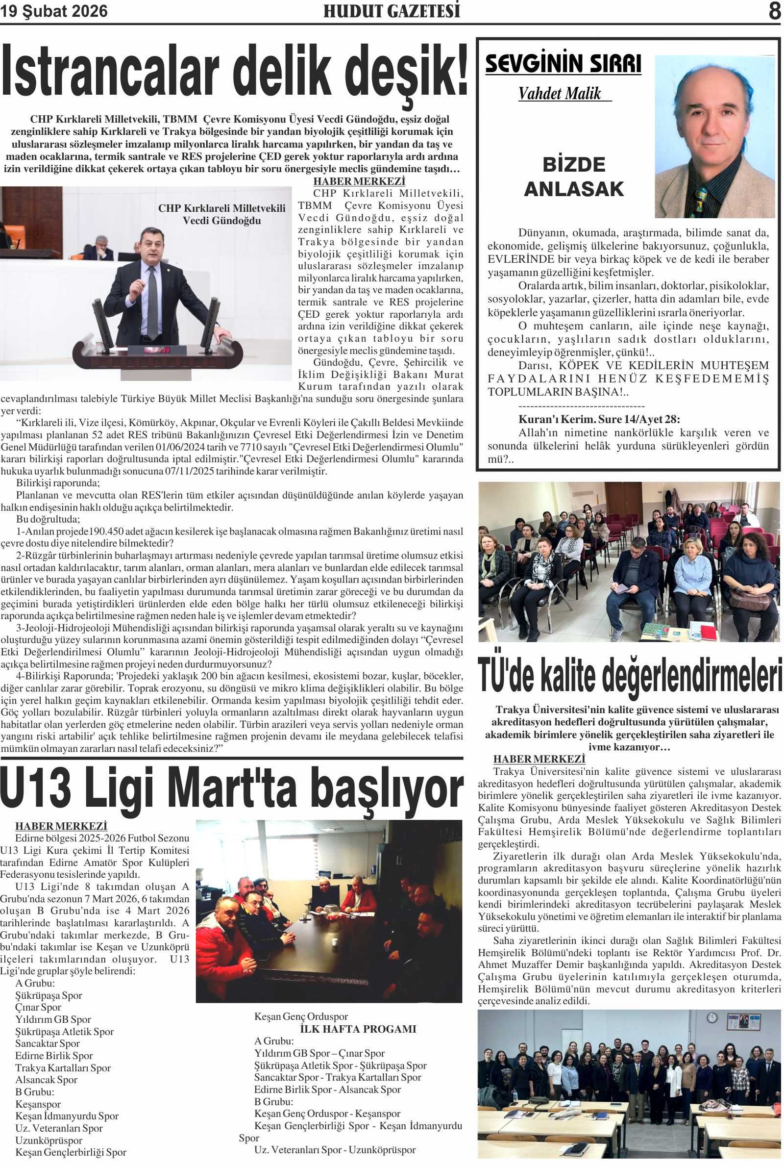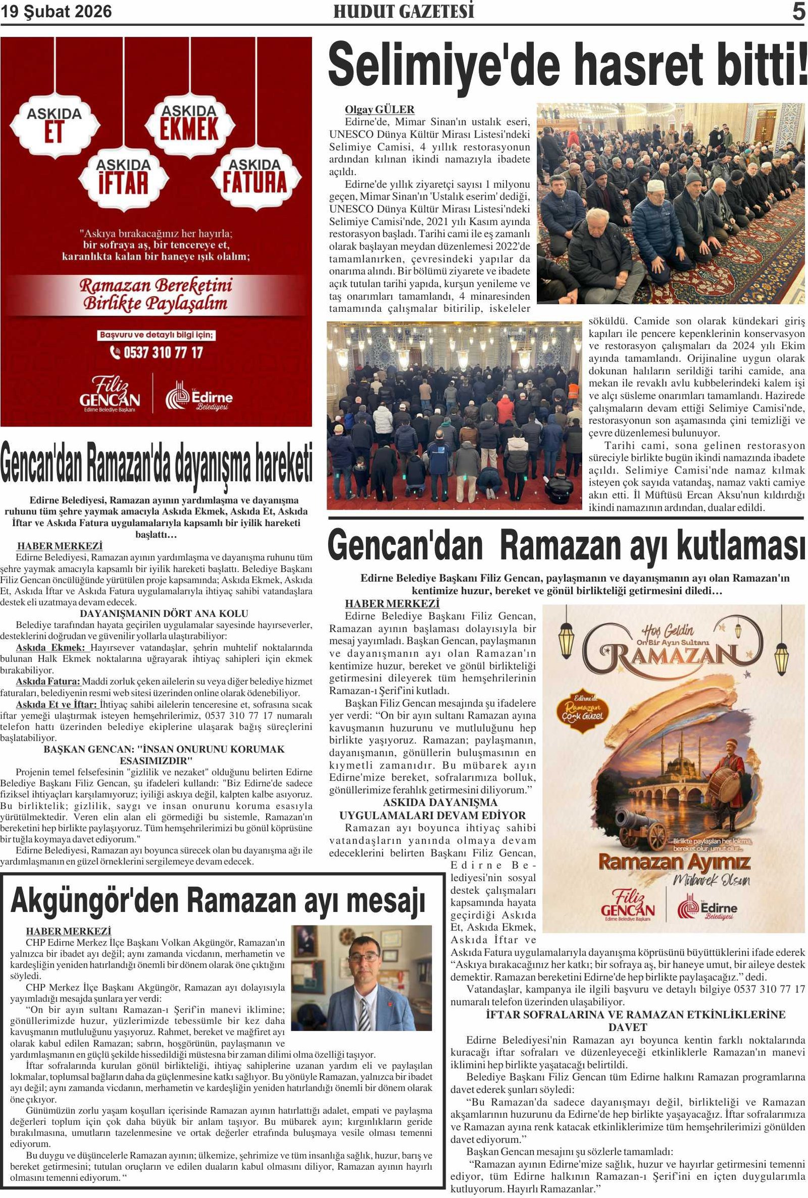 19 Şubat 2026 Perşembe Hudut Gazetesi