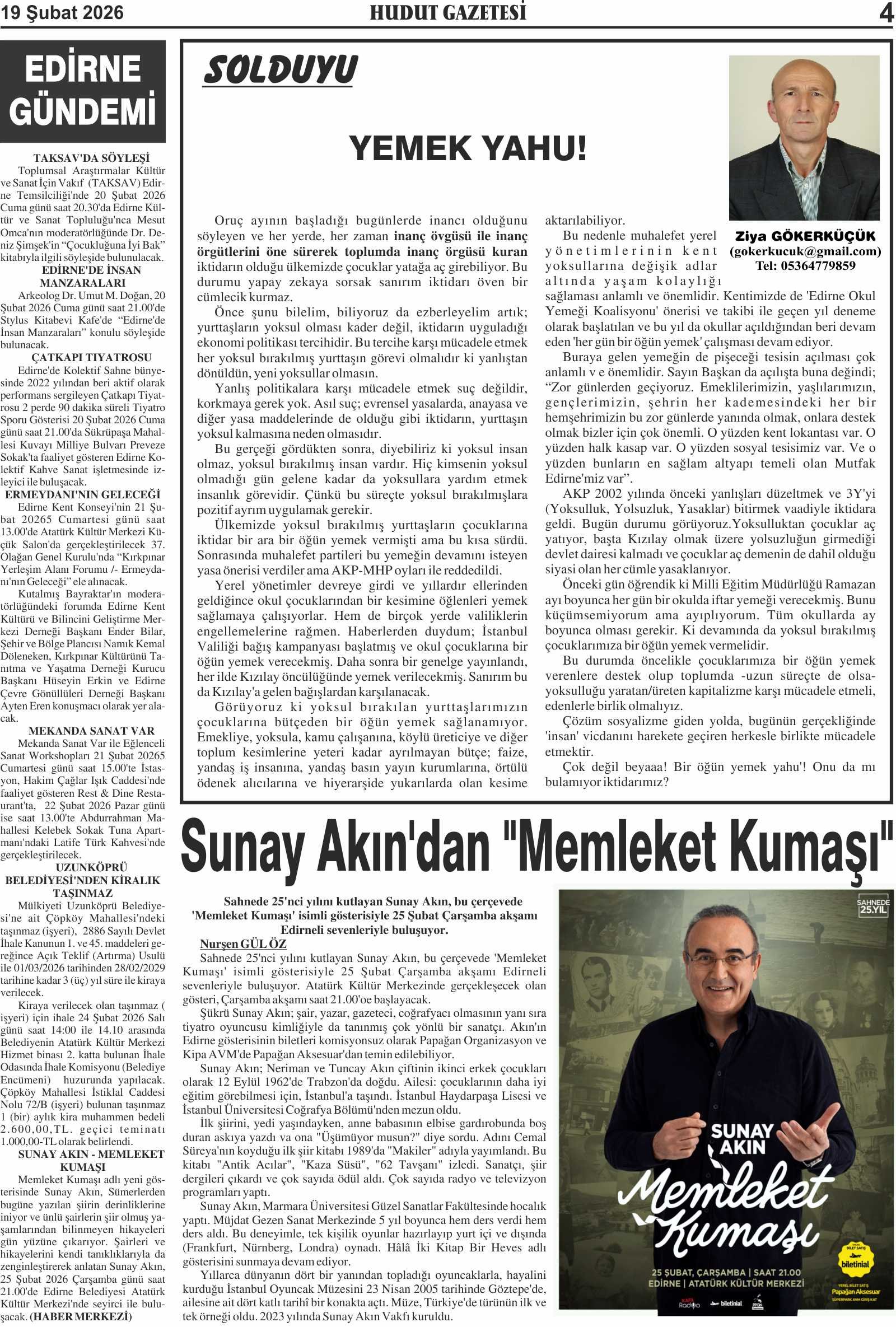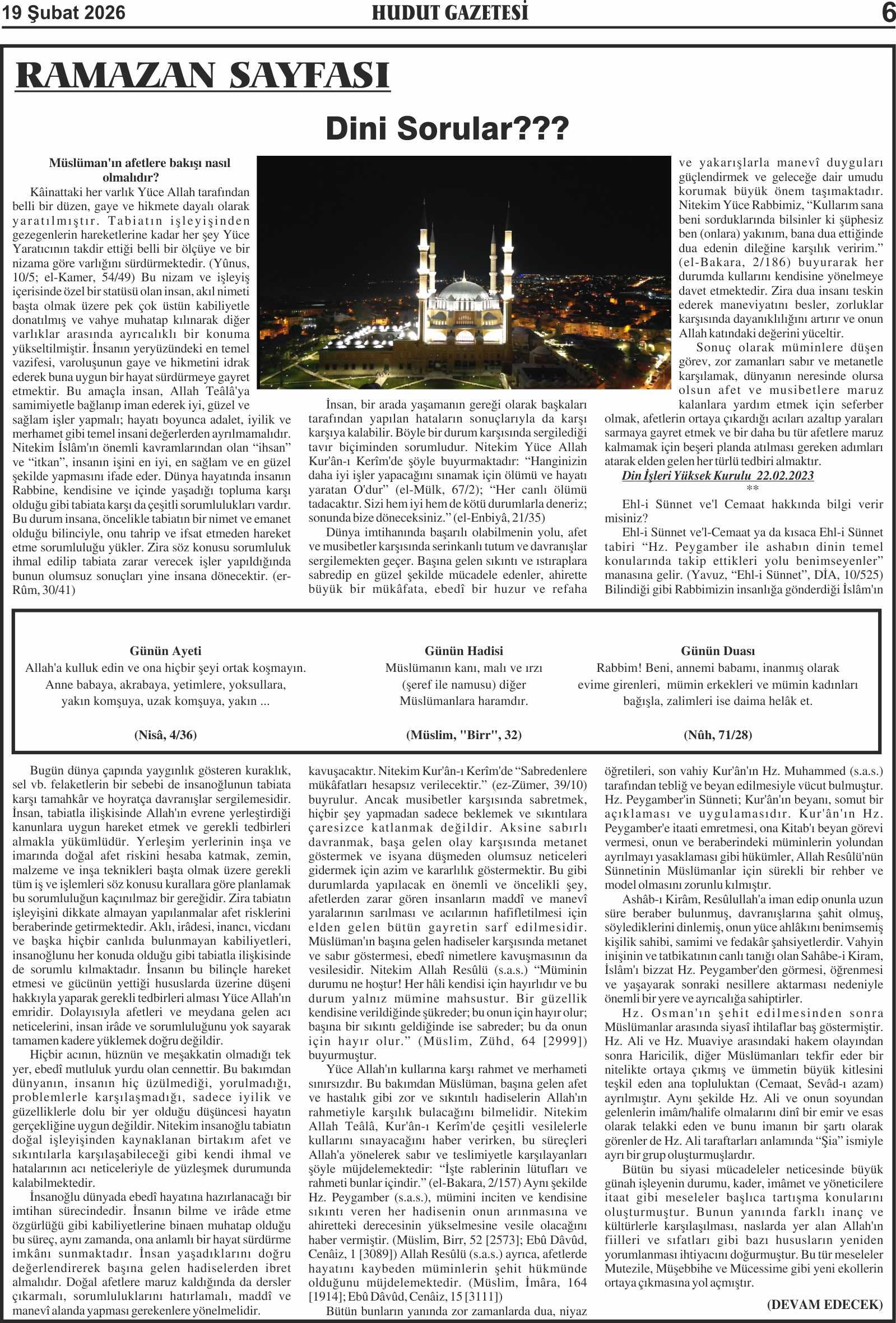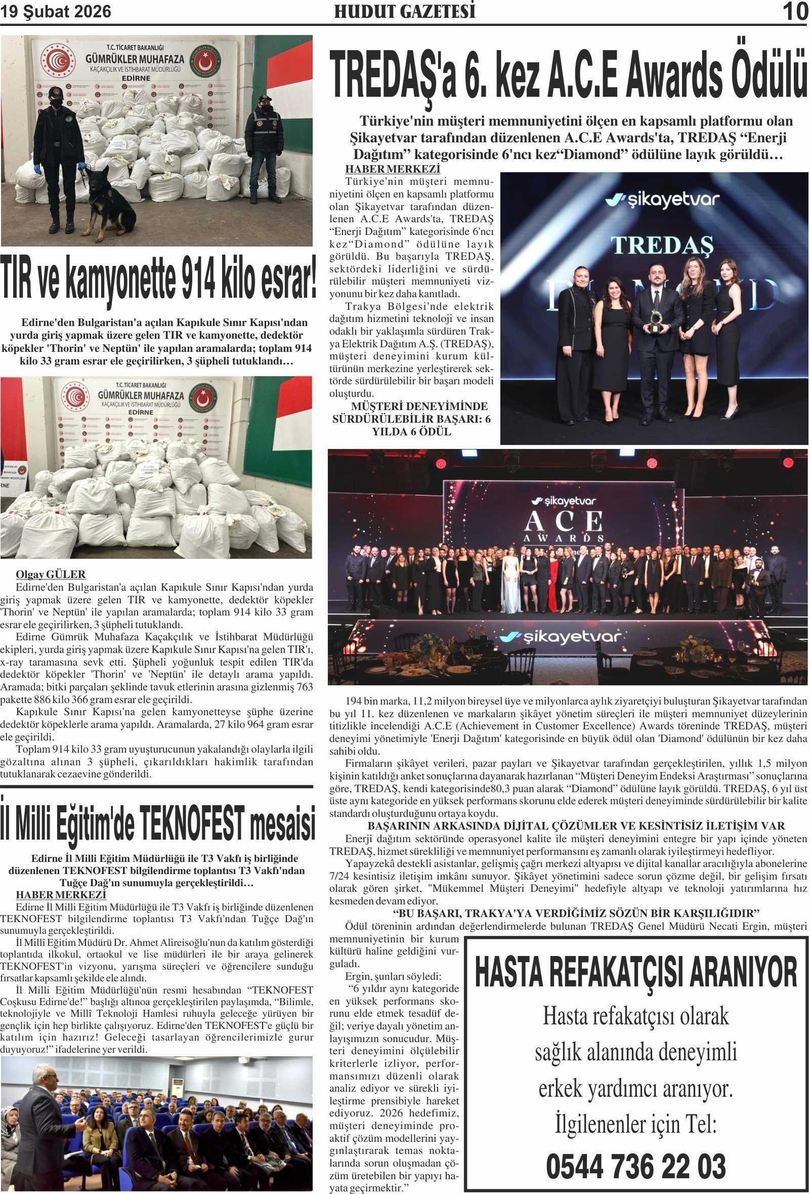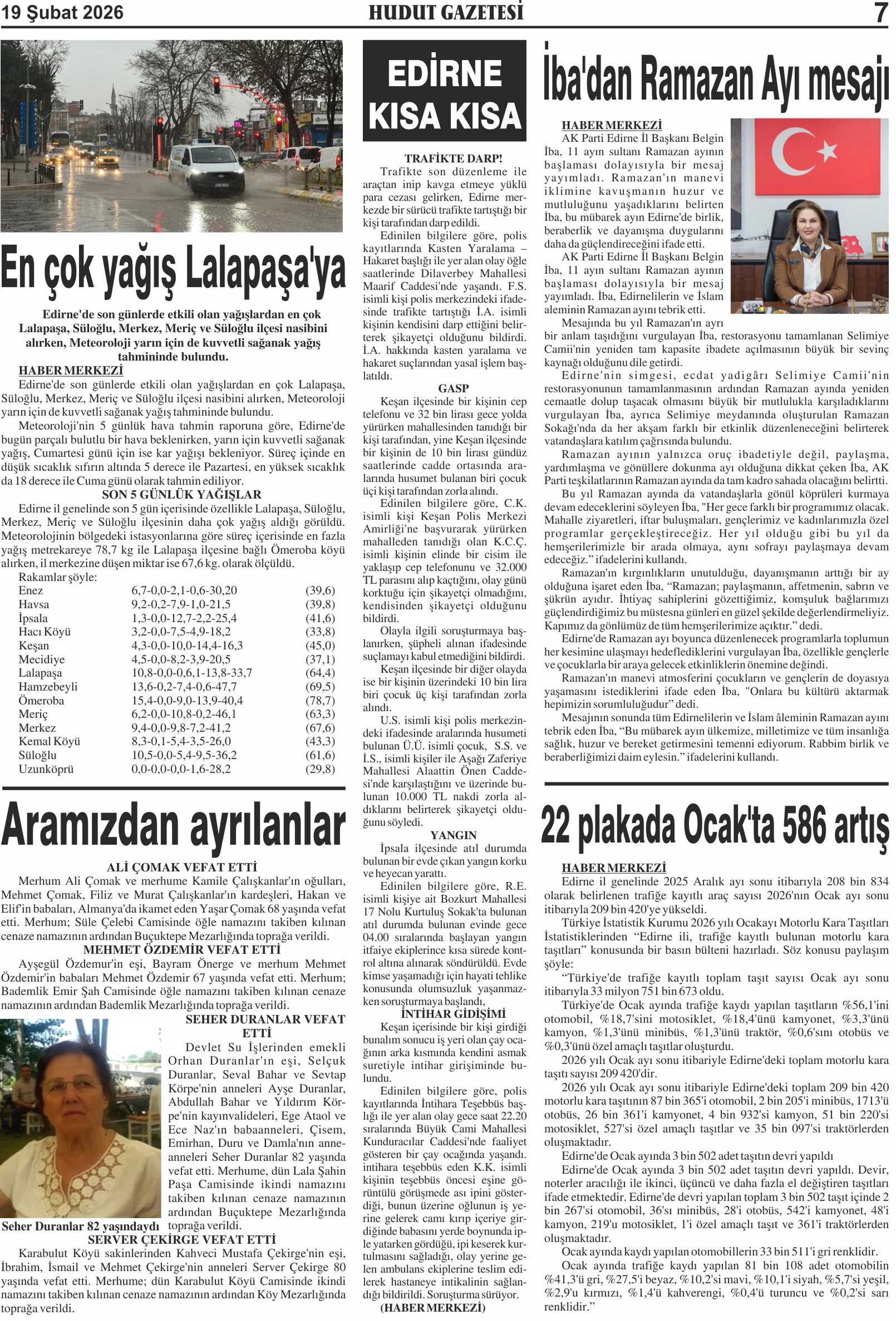 19 Şubat 2026 Perşembe Hudut Gazetesi