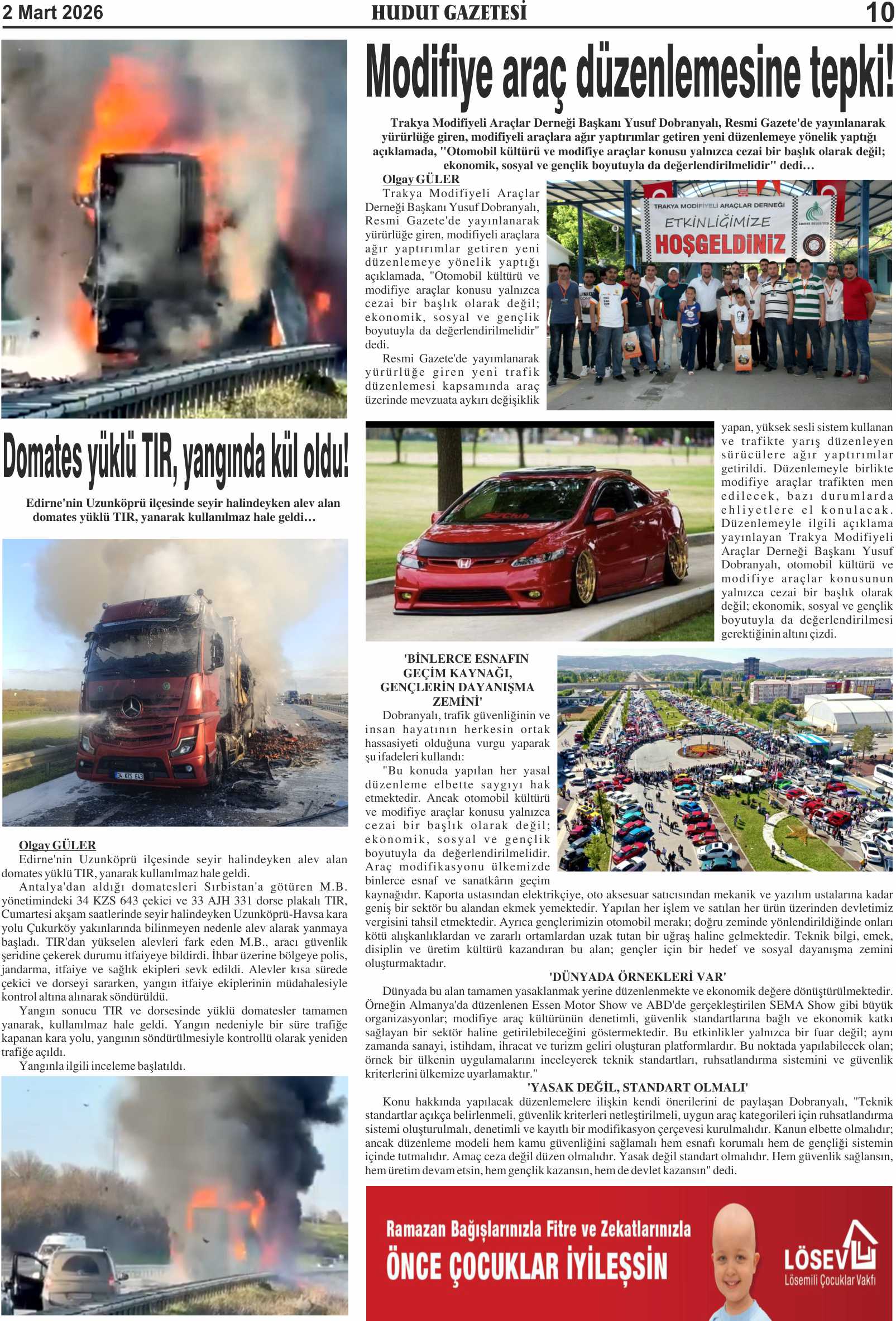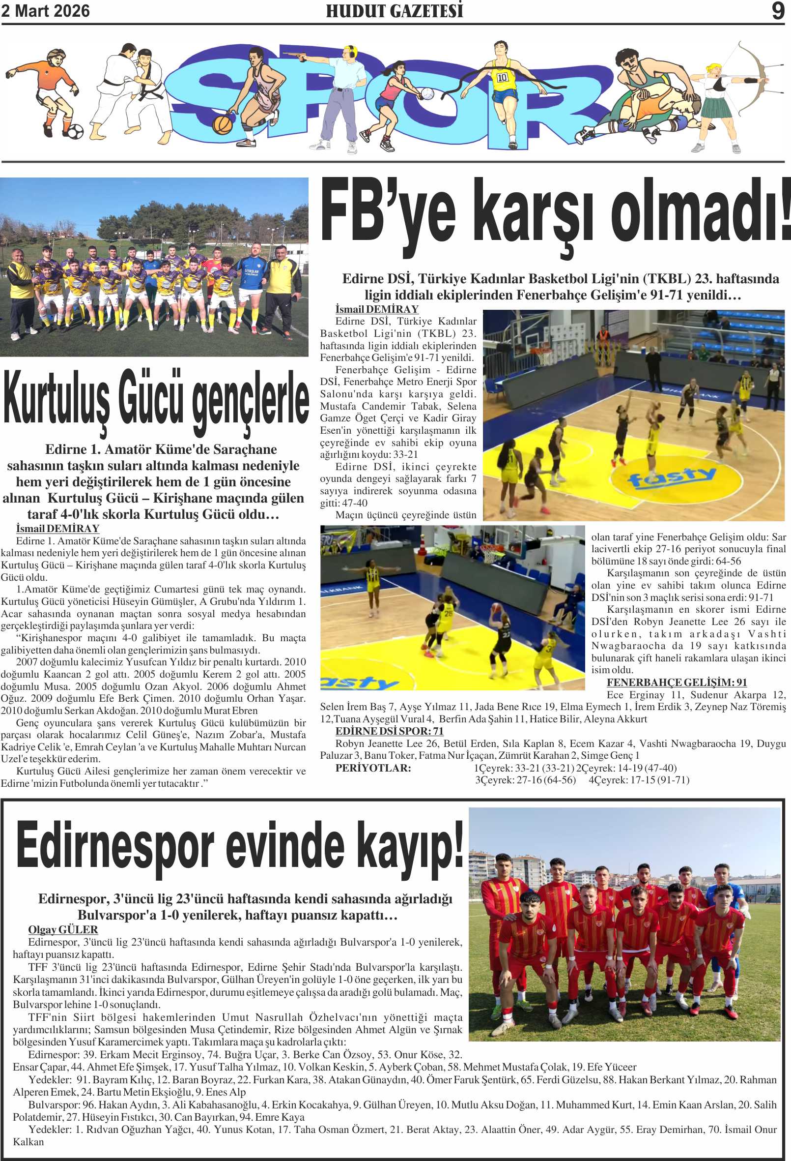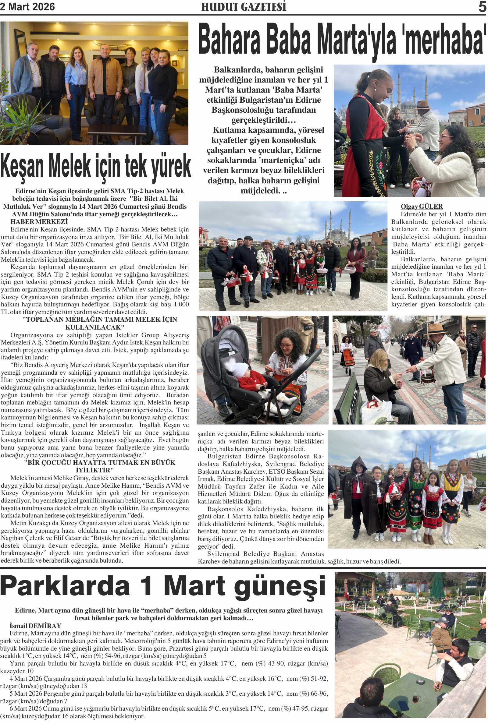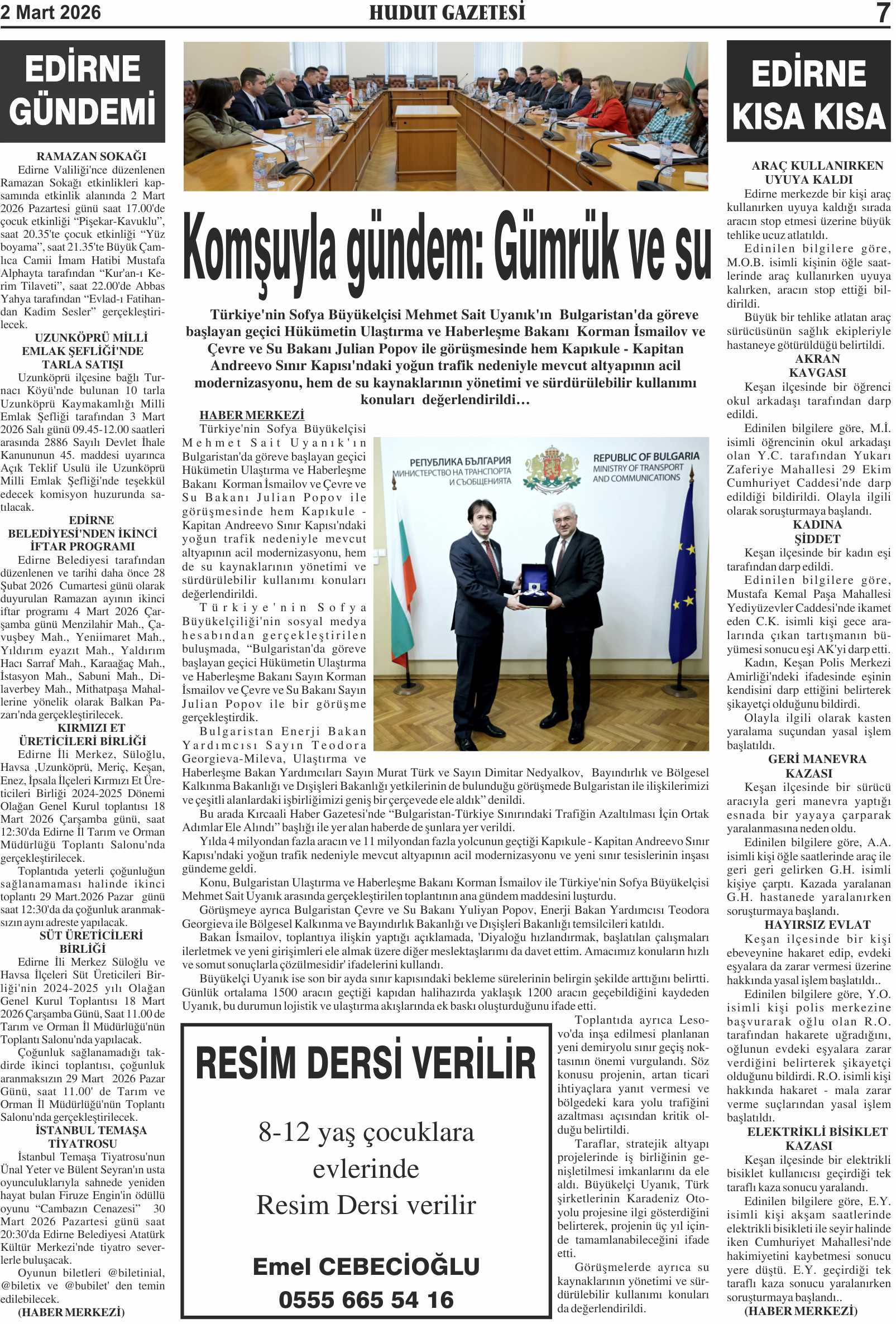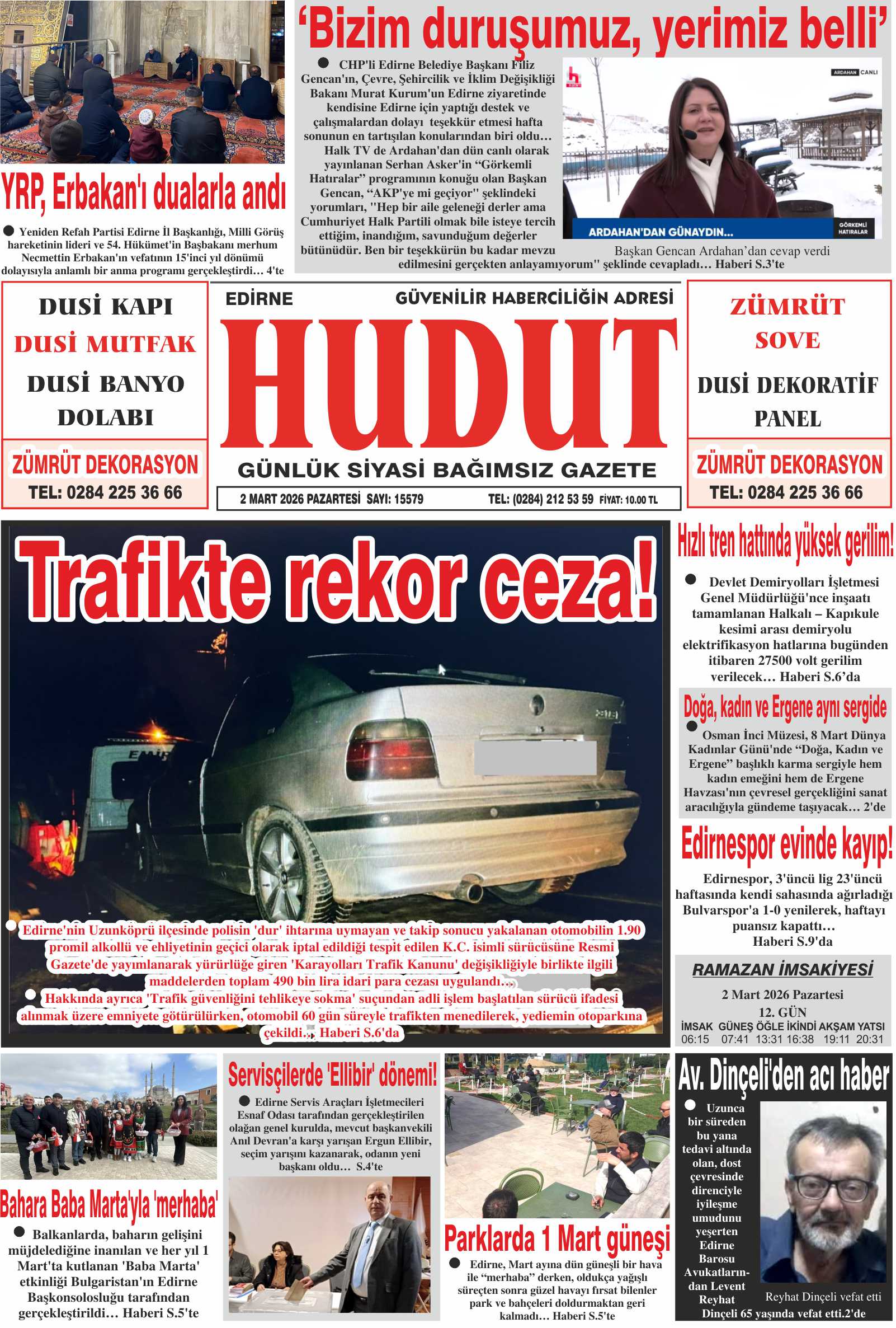 2 Mart 2026 Pazartesi Hudut Gazetesi