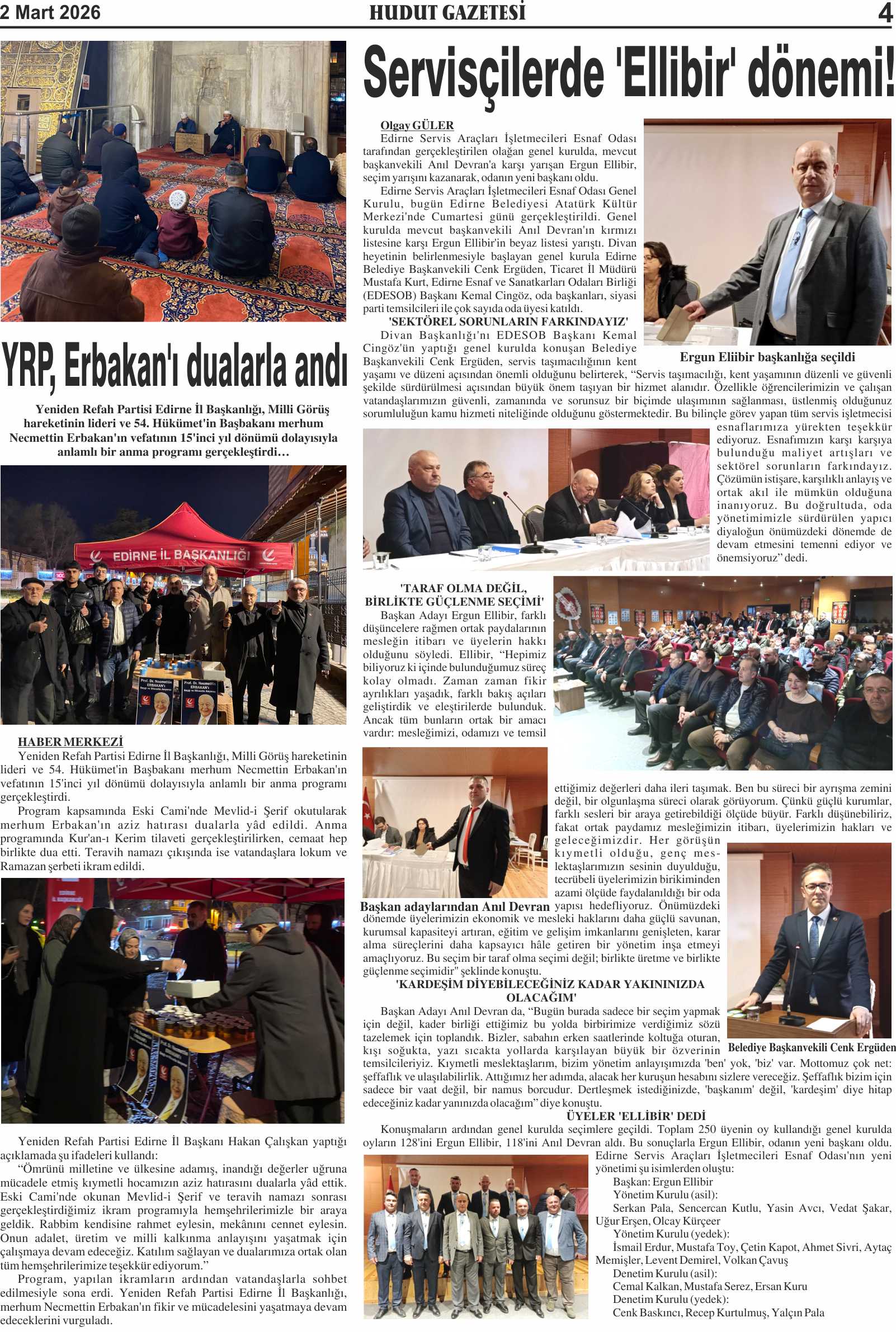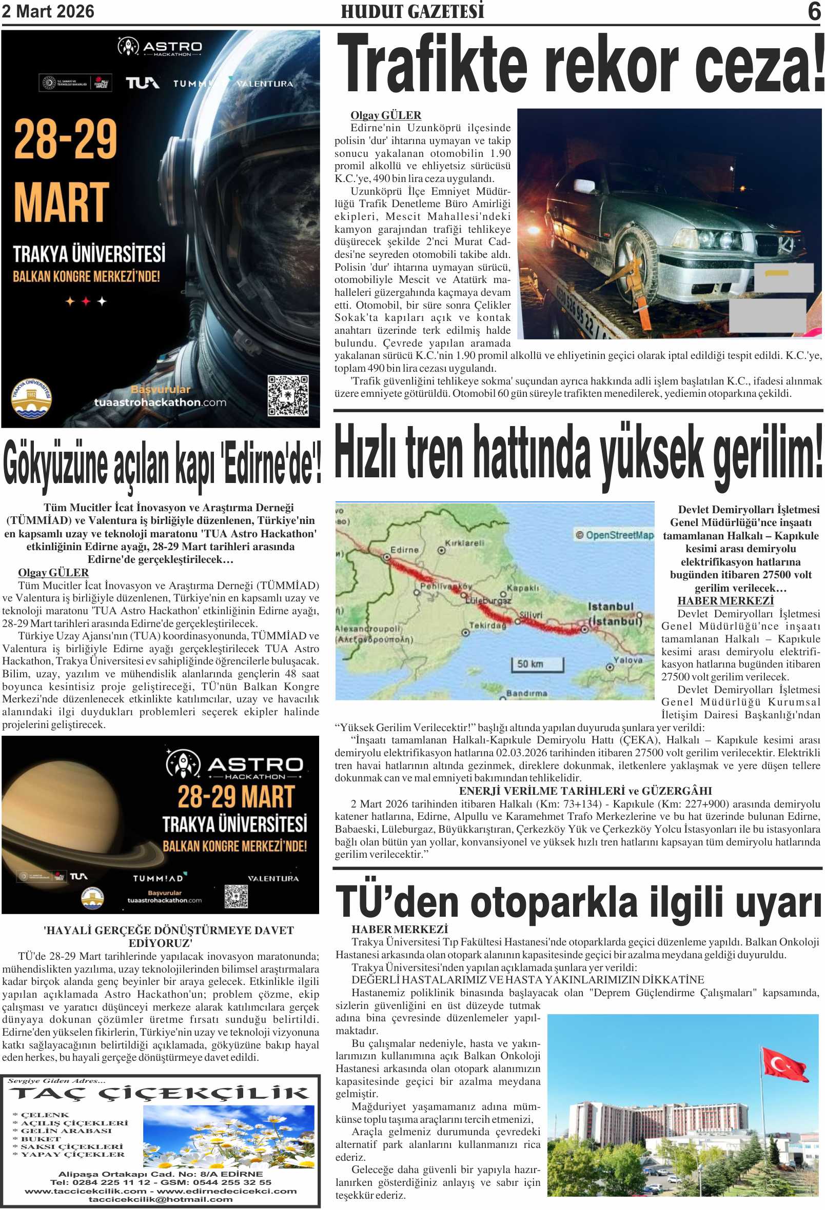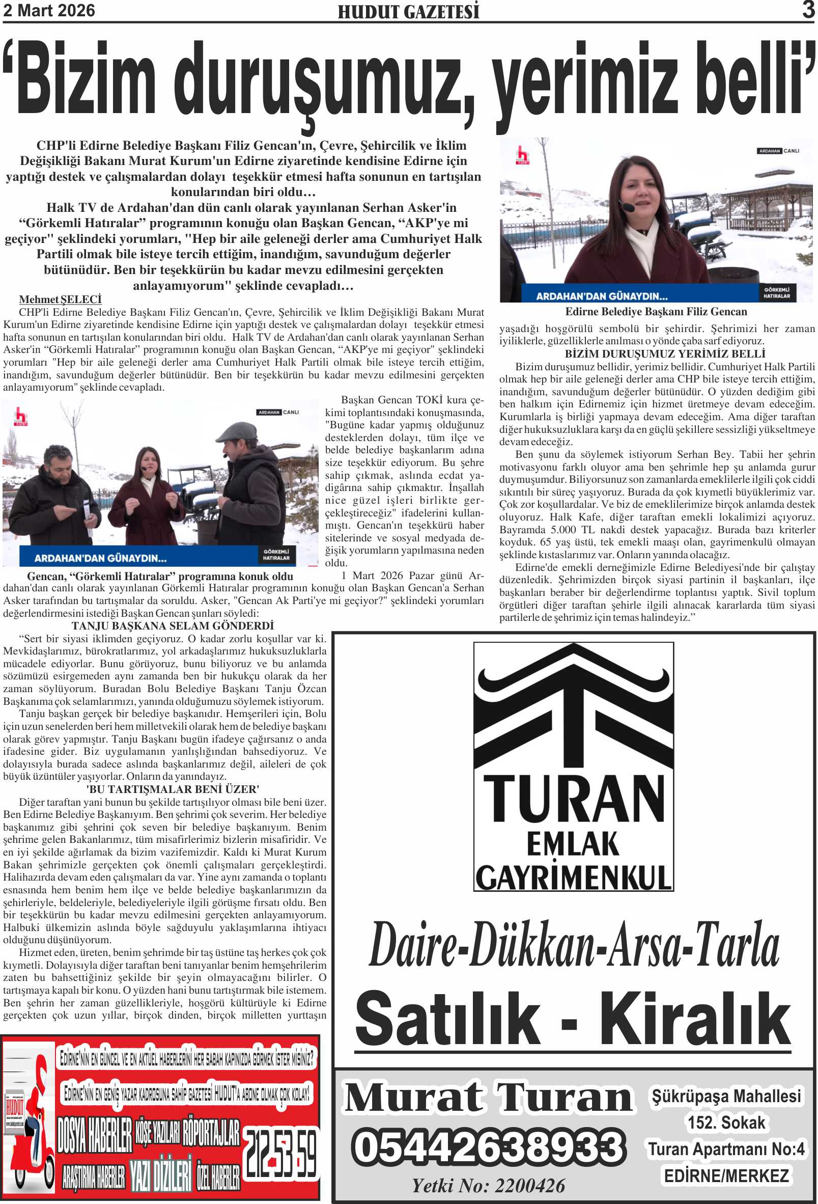 26 Şubat 2026 Perşembe Hudut Gazetesi