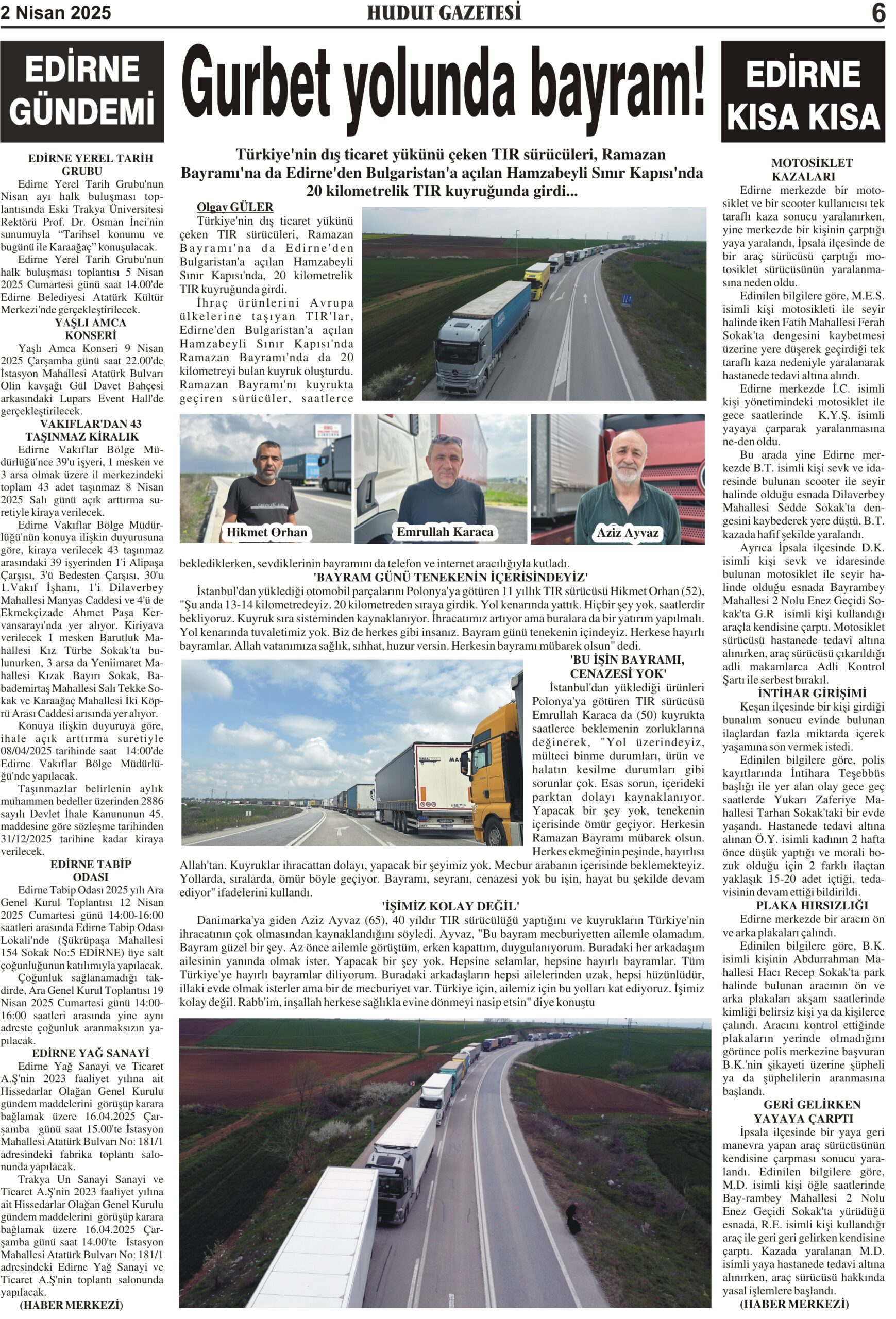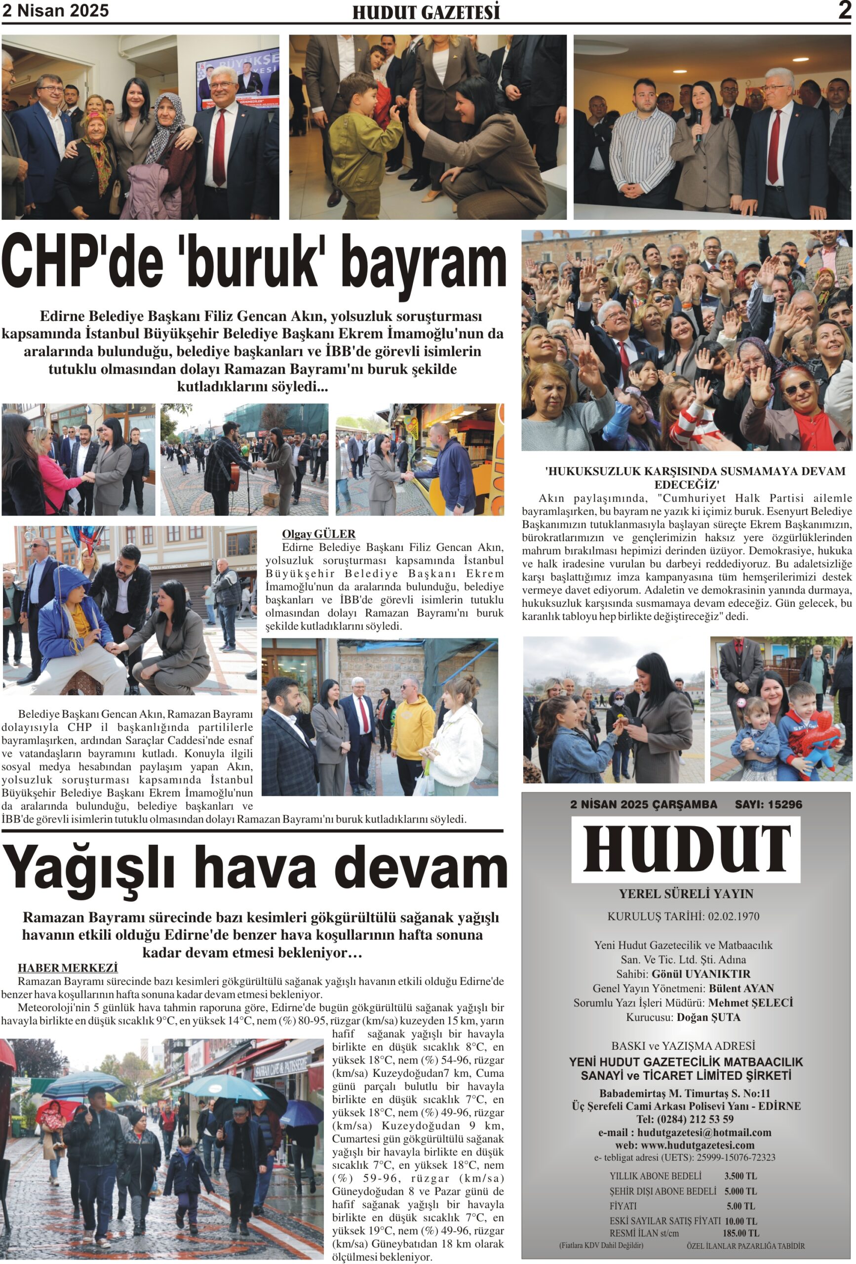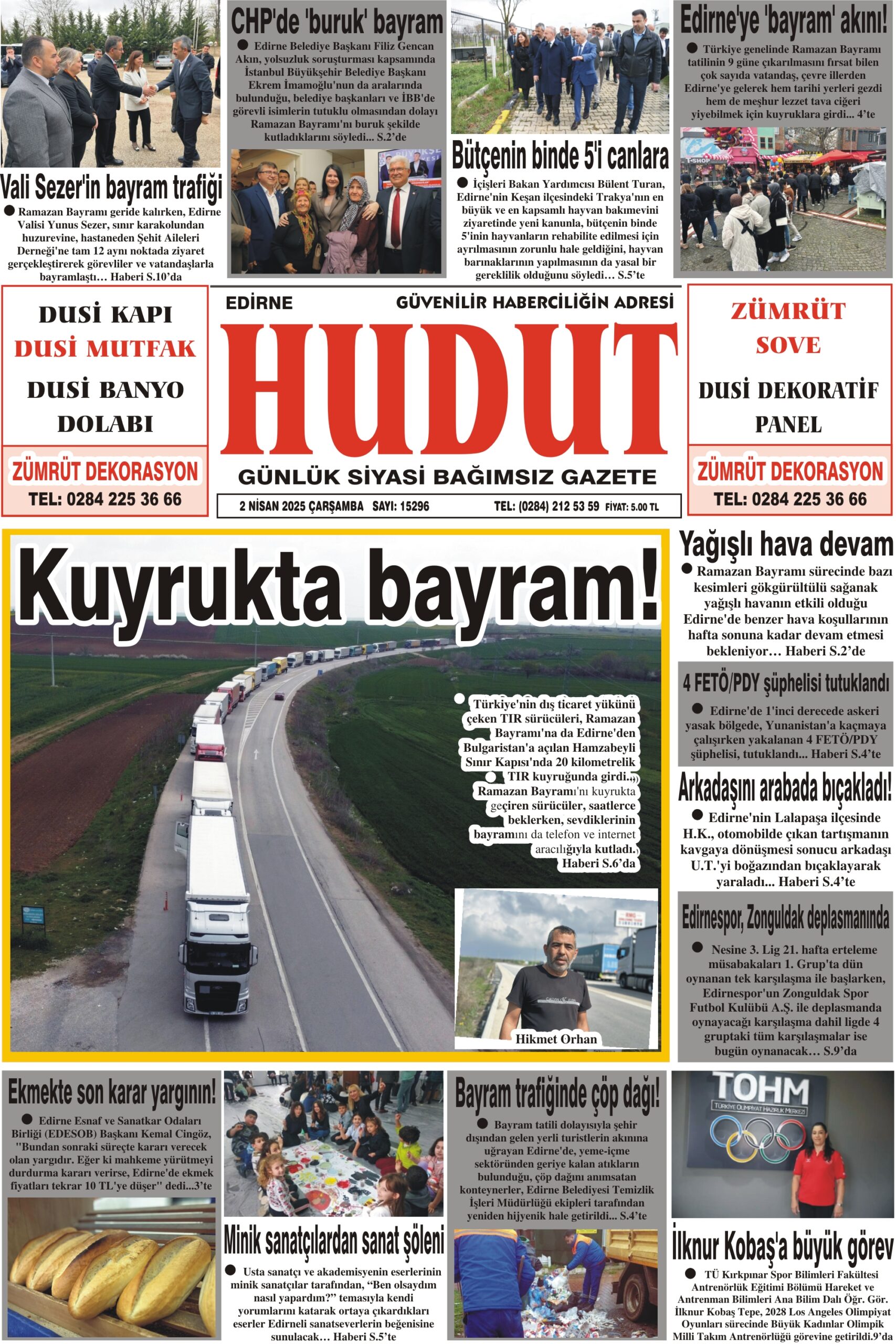 2 Nisan 2025 Çarşamba Hudut Gazetesi