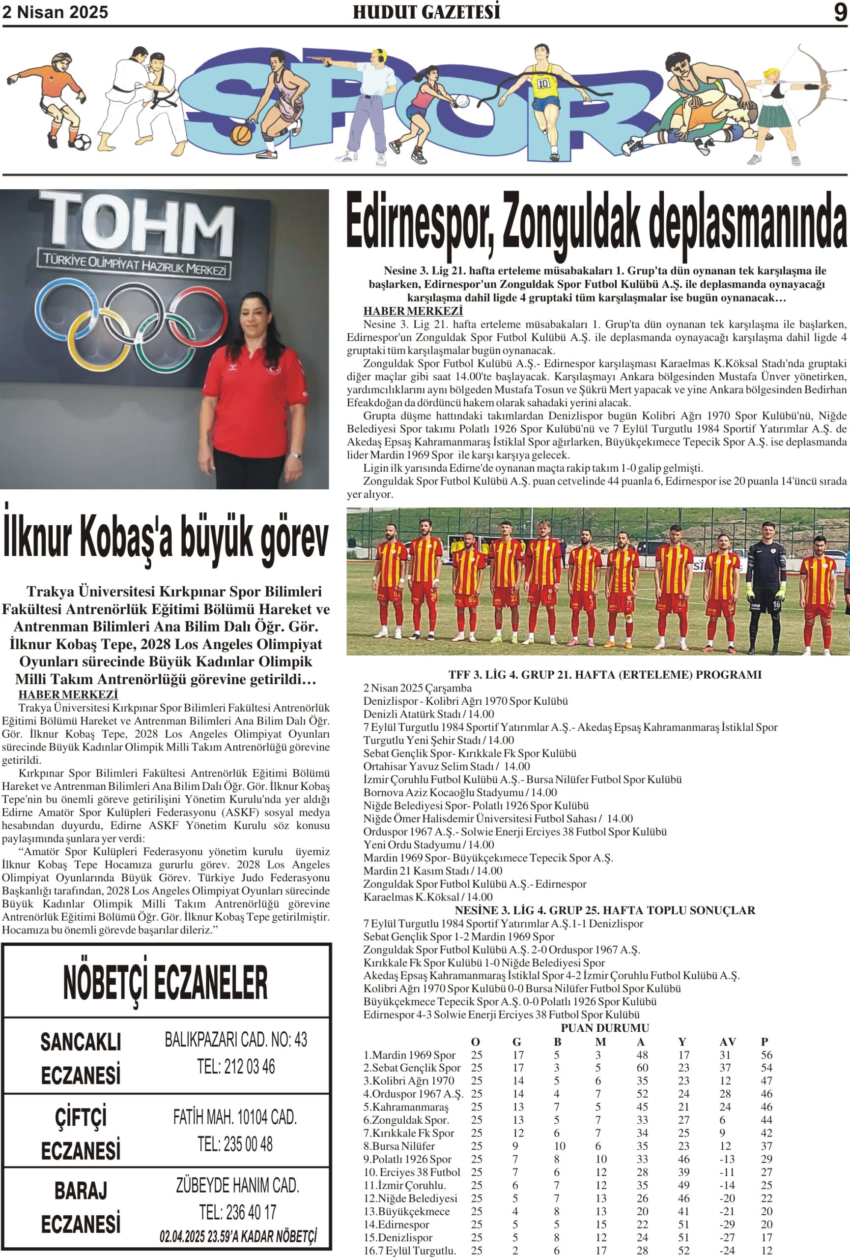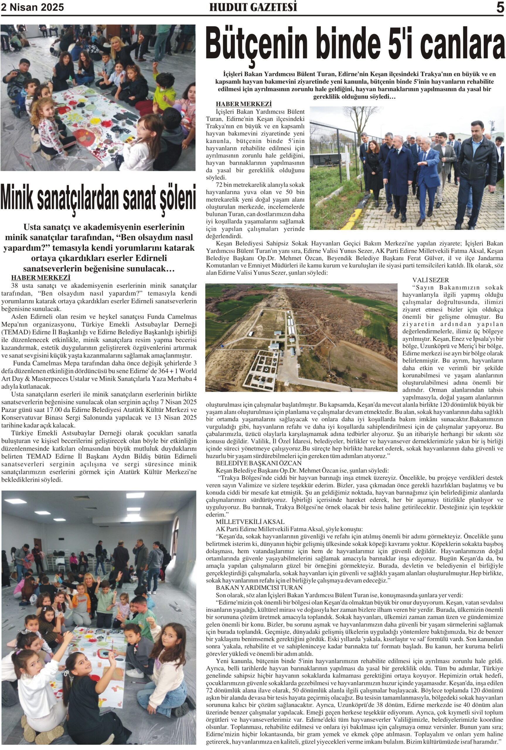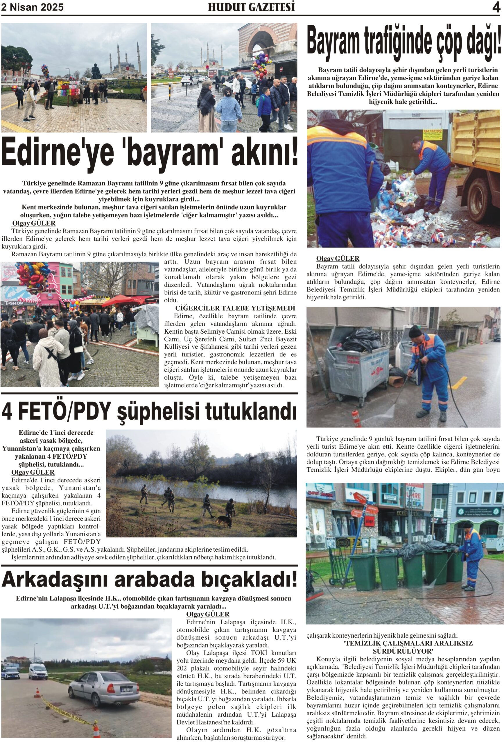 2 Nisan 2025 Çarşamba Hudut Gazetesi