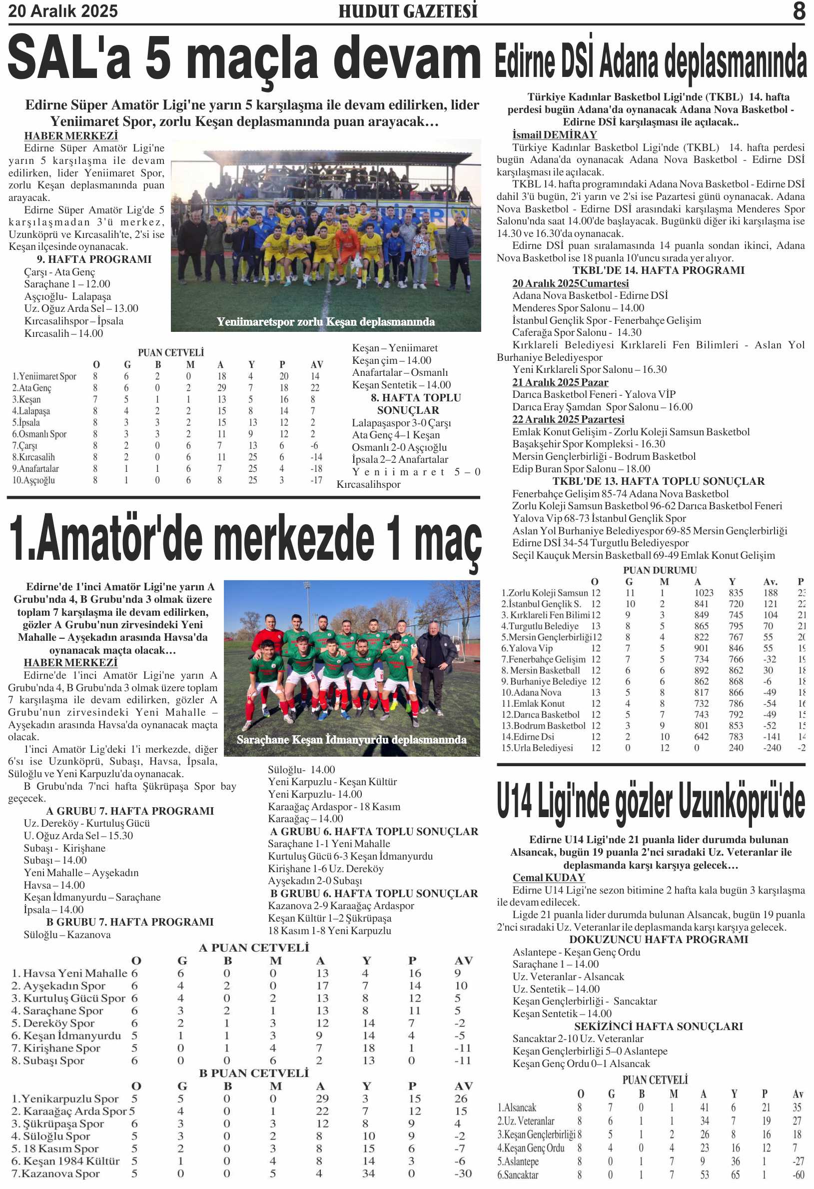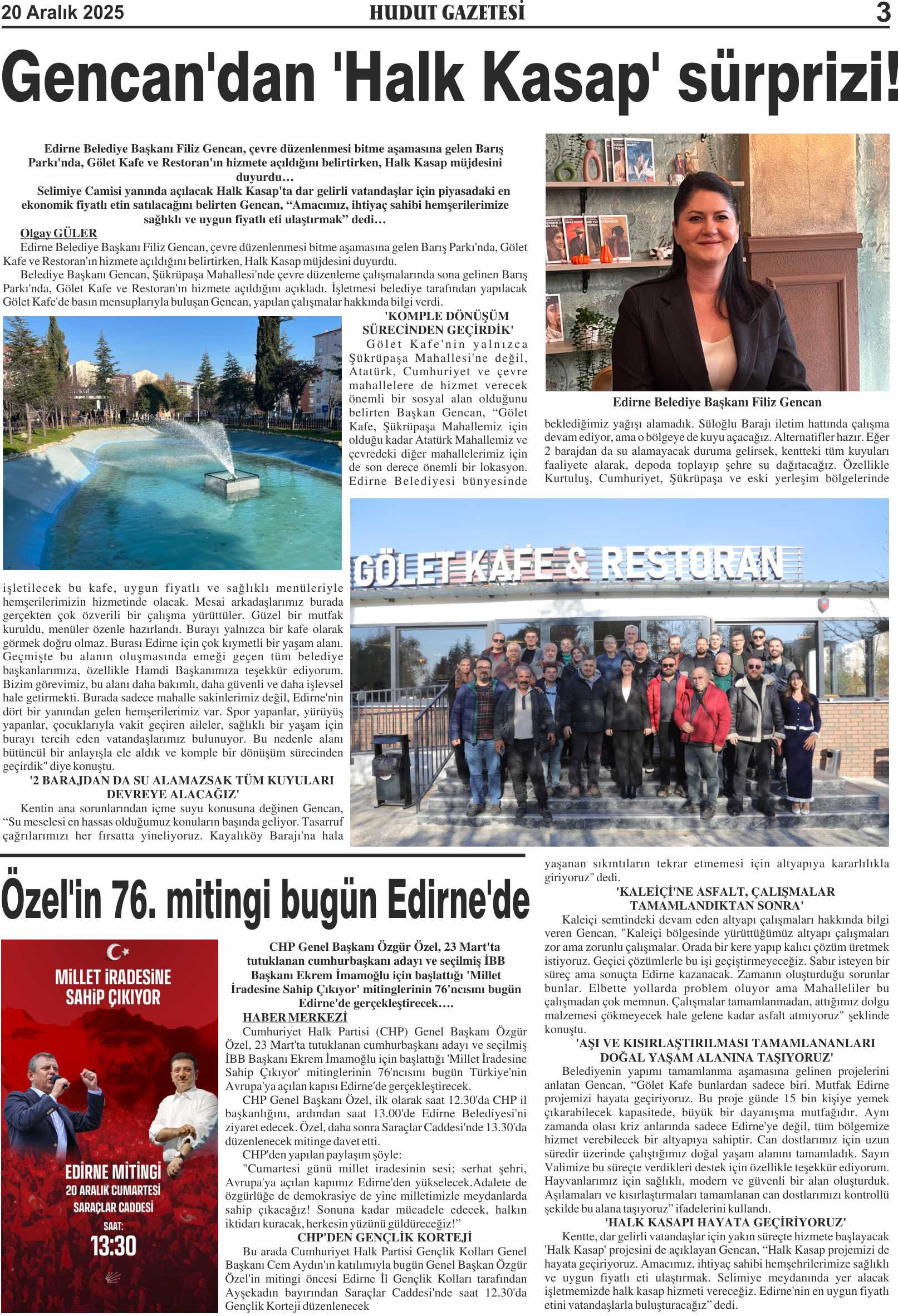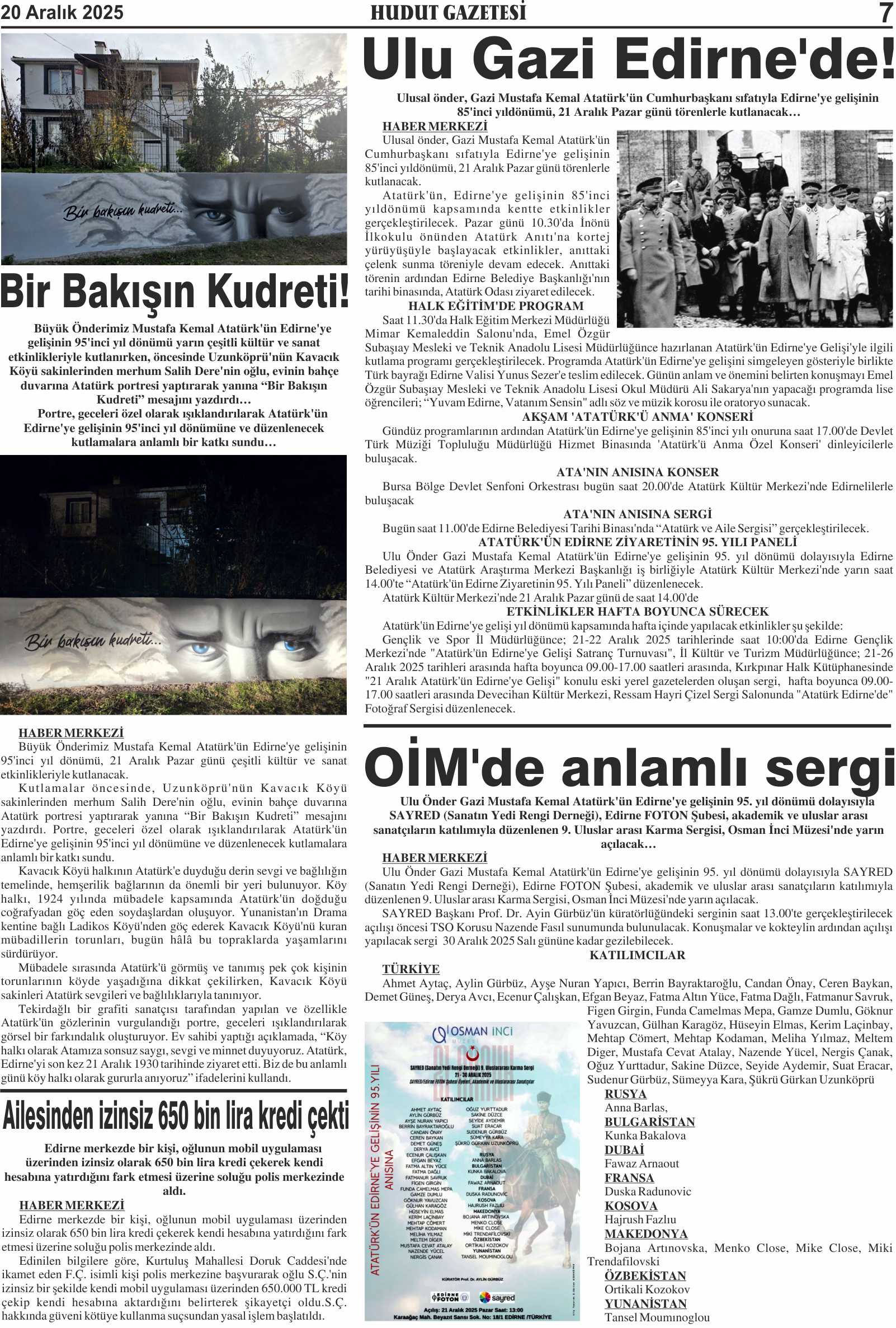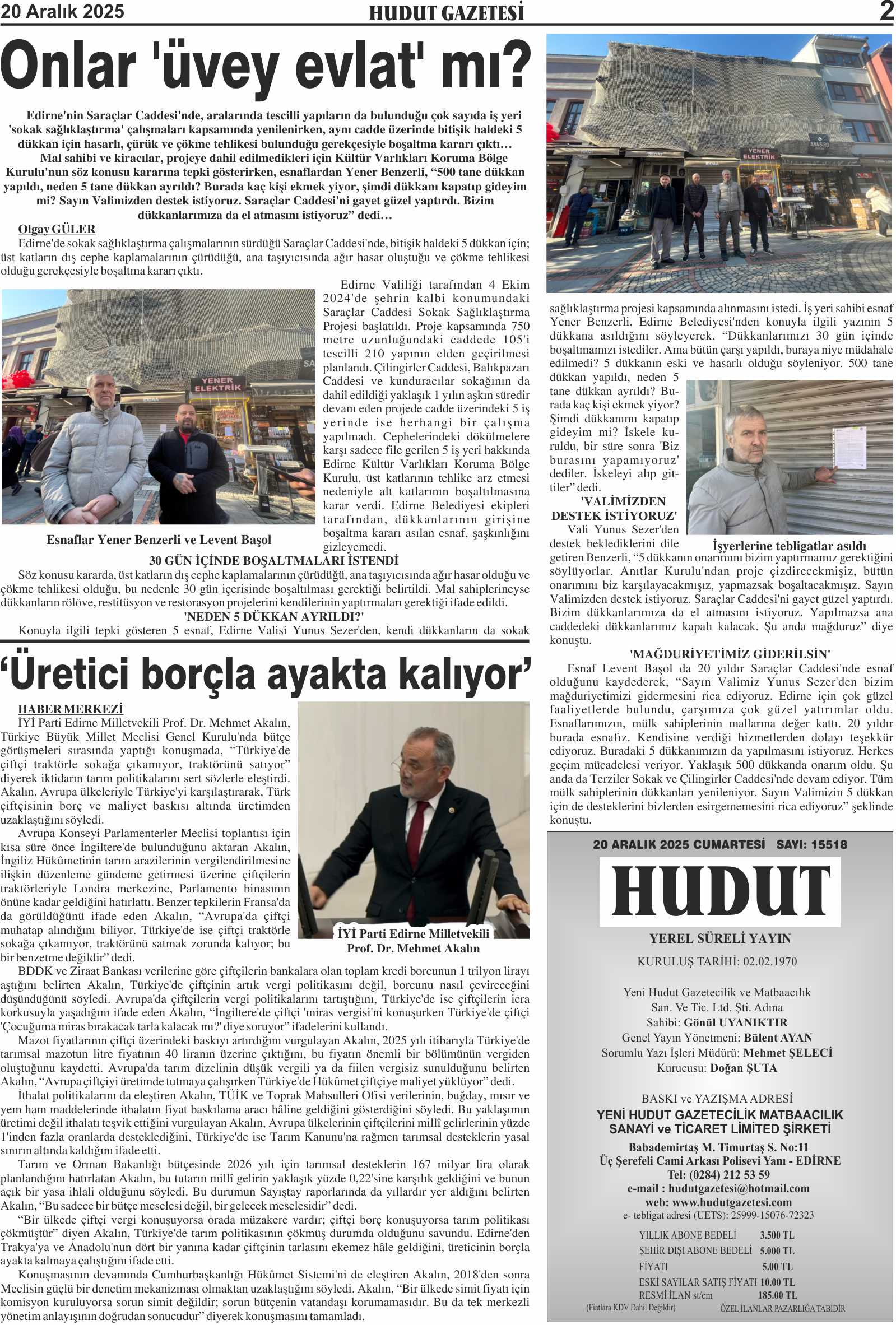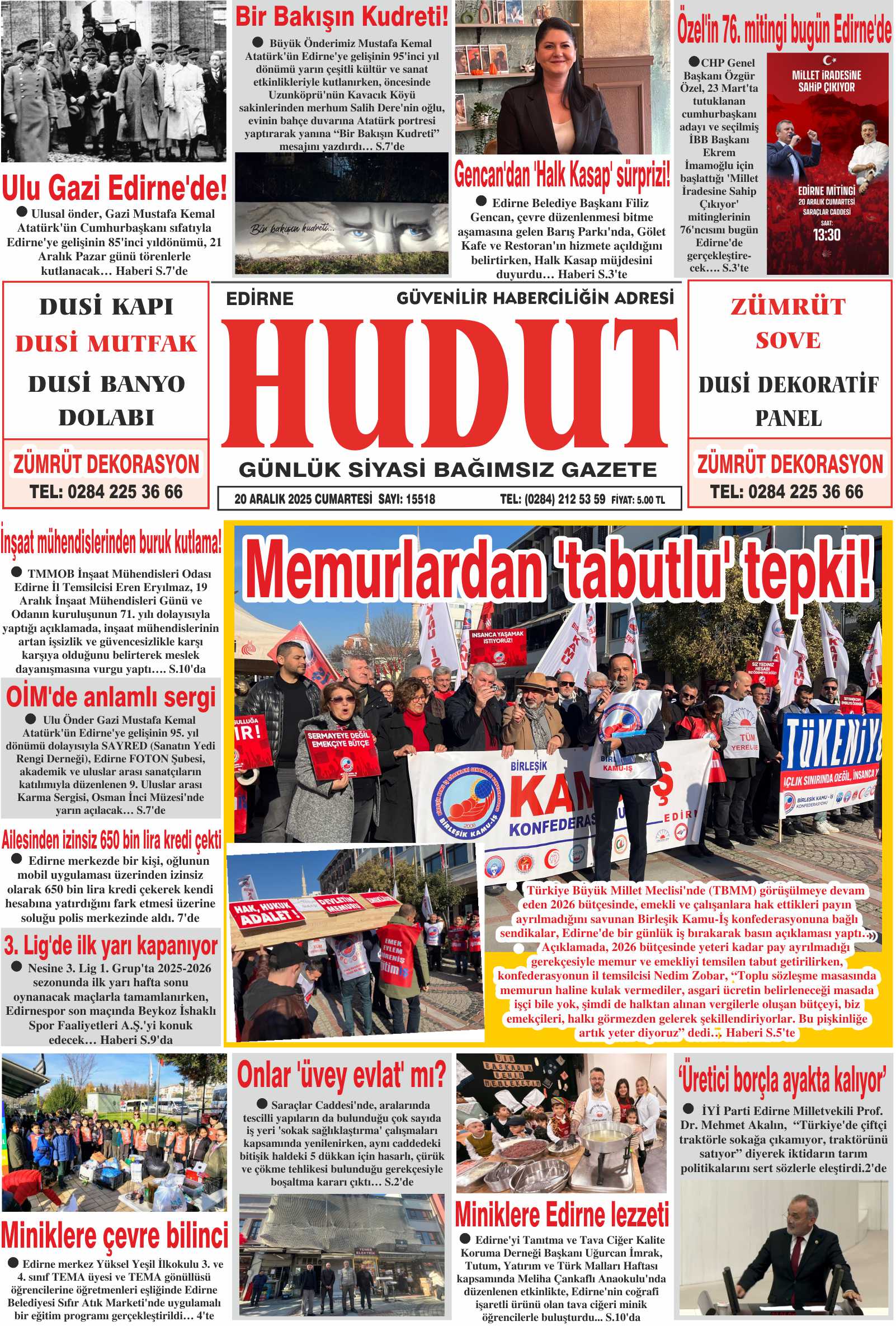 20 Aralık 2025 Cumartesi Hudut Gazetesi