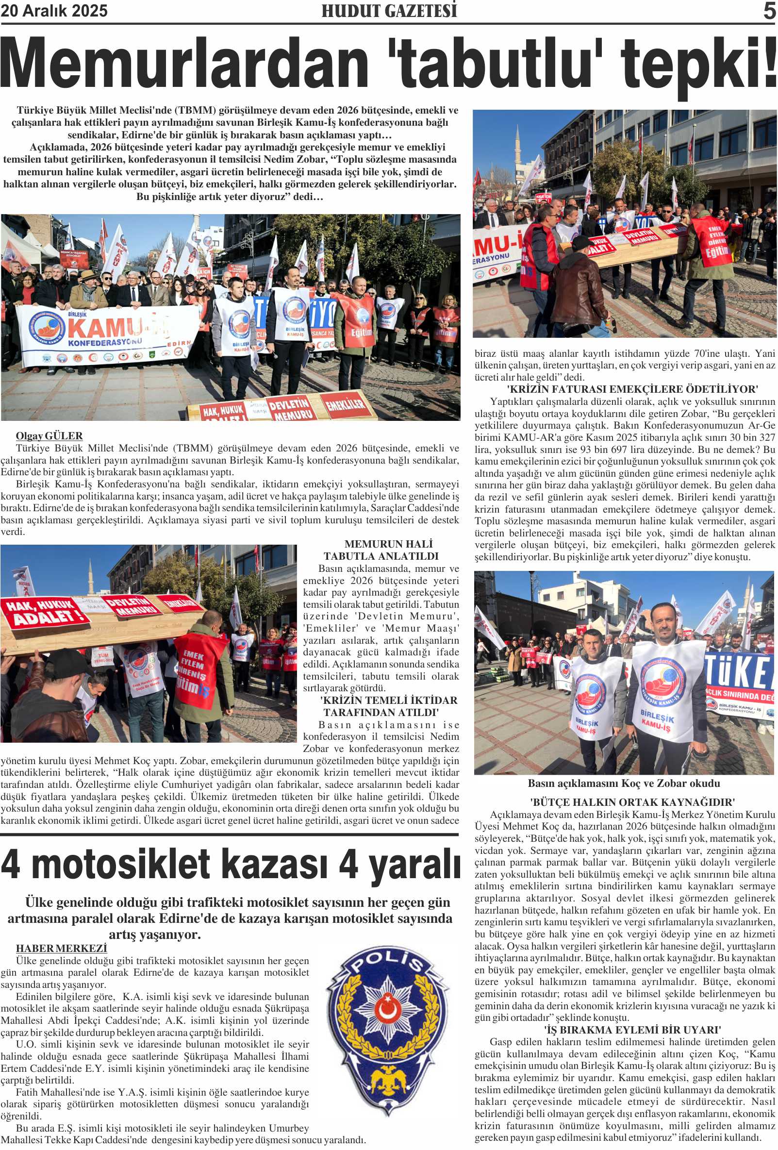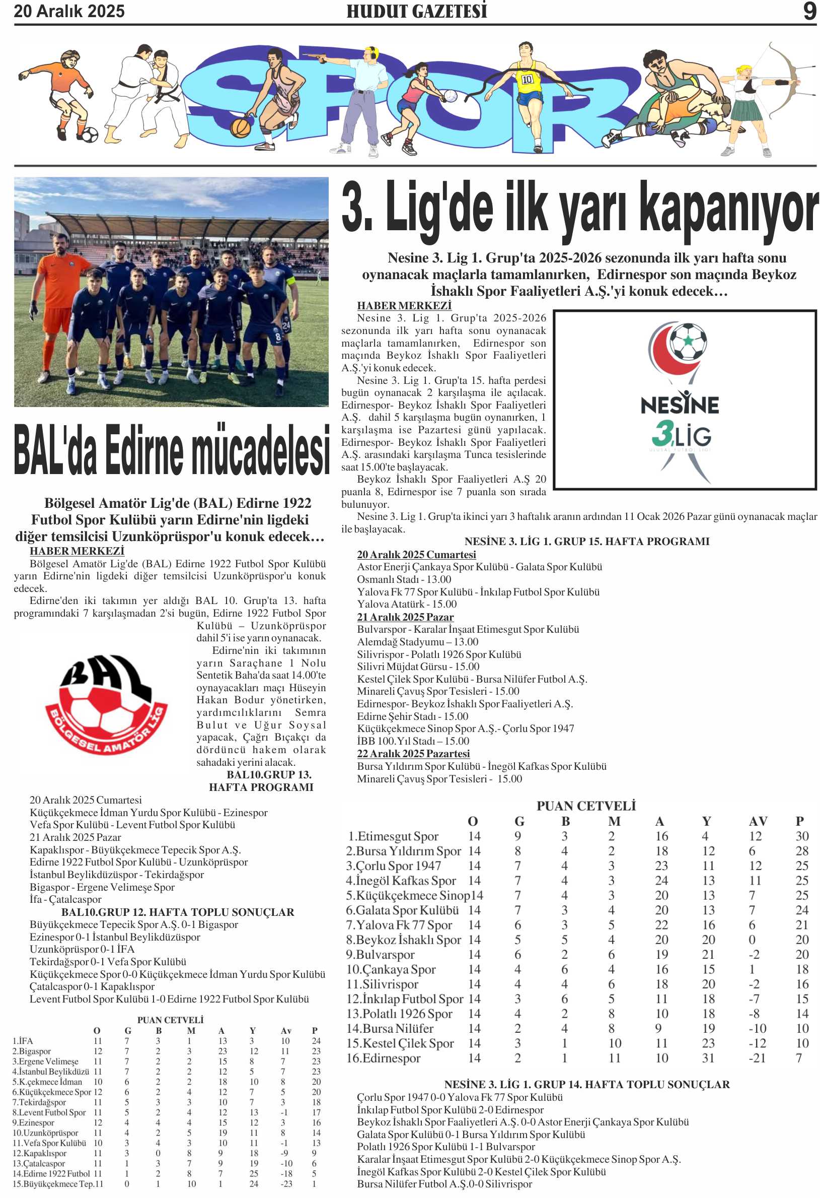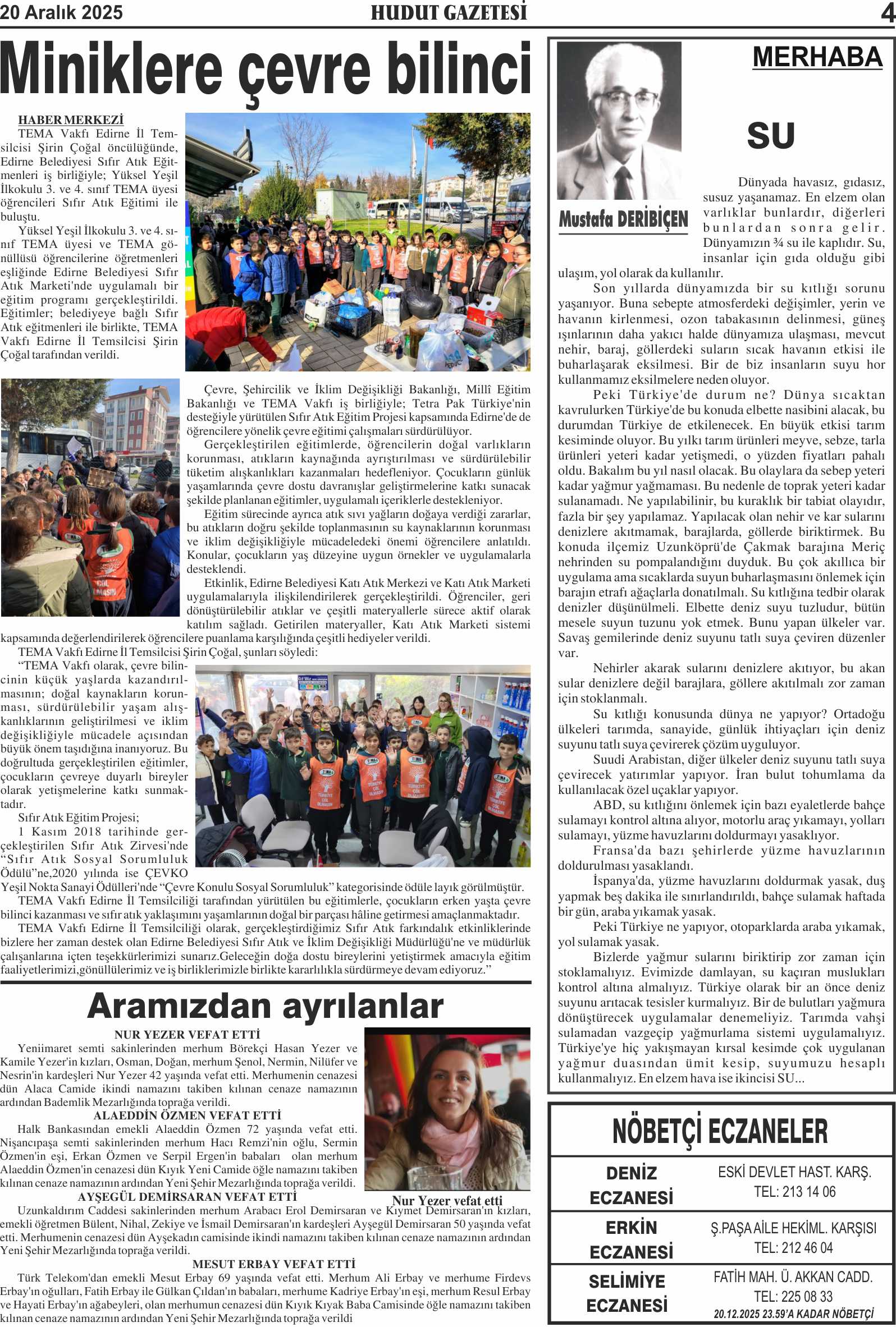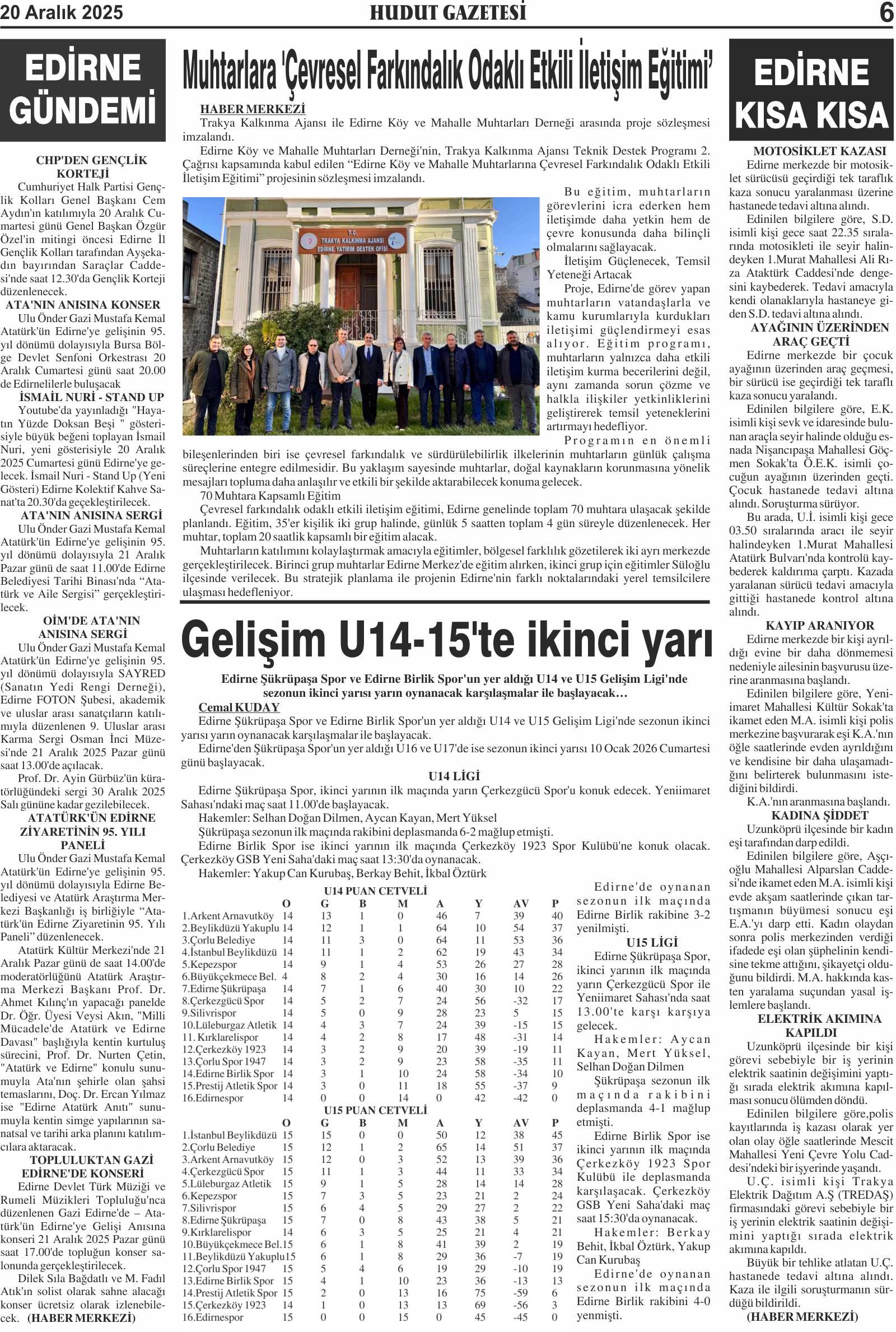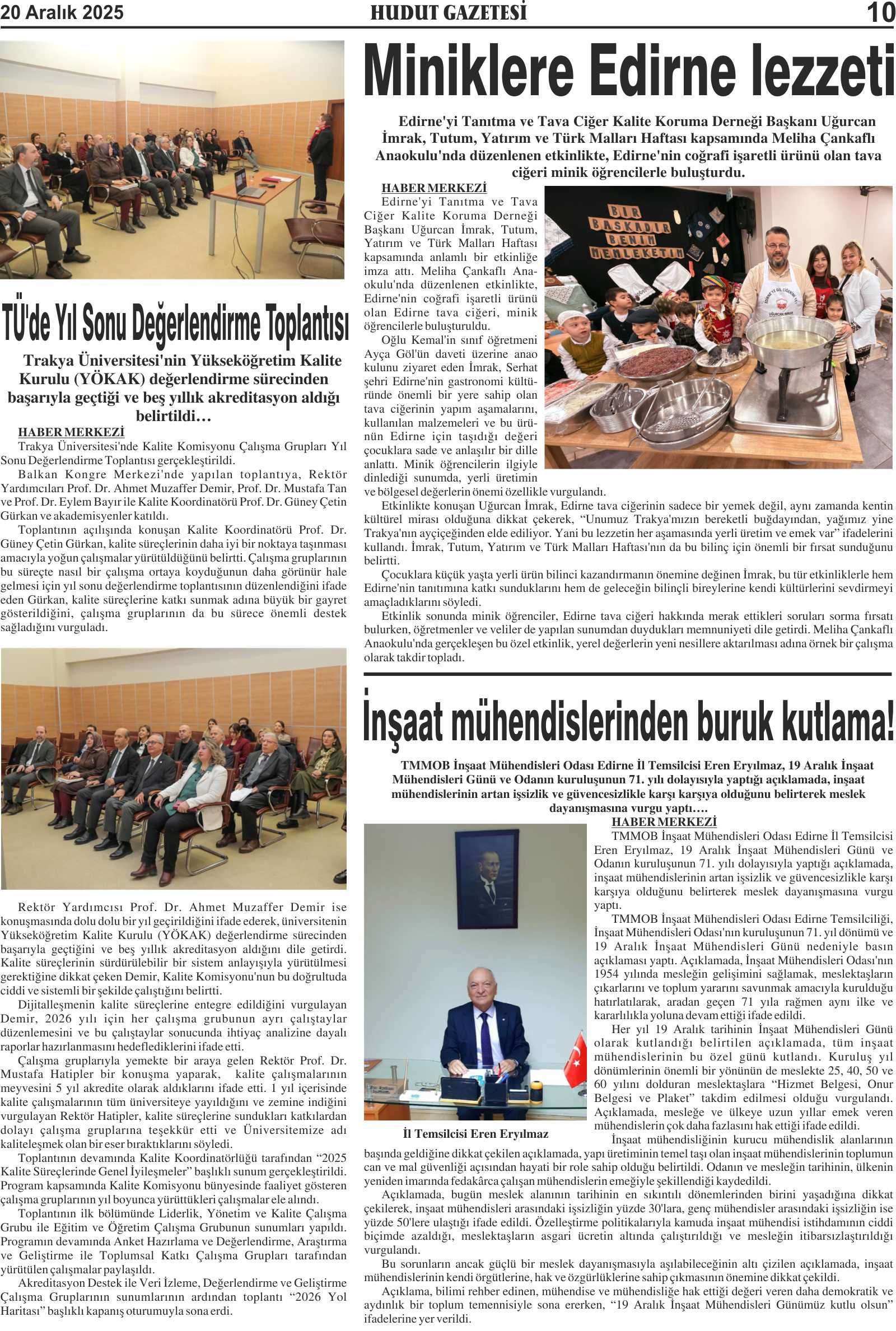 20 Aralık 2025 Cumartesi Hudut Gazetesi