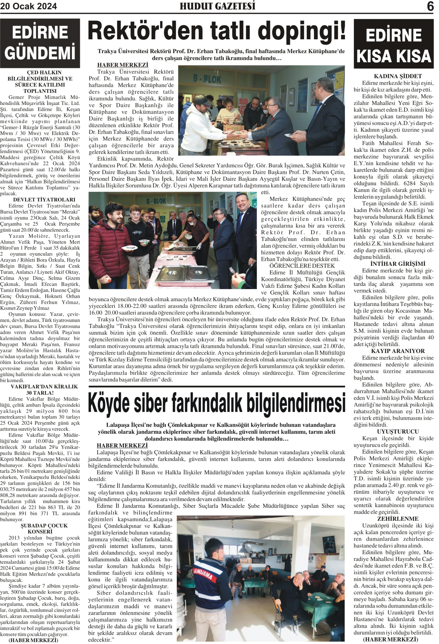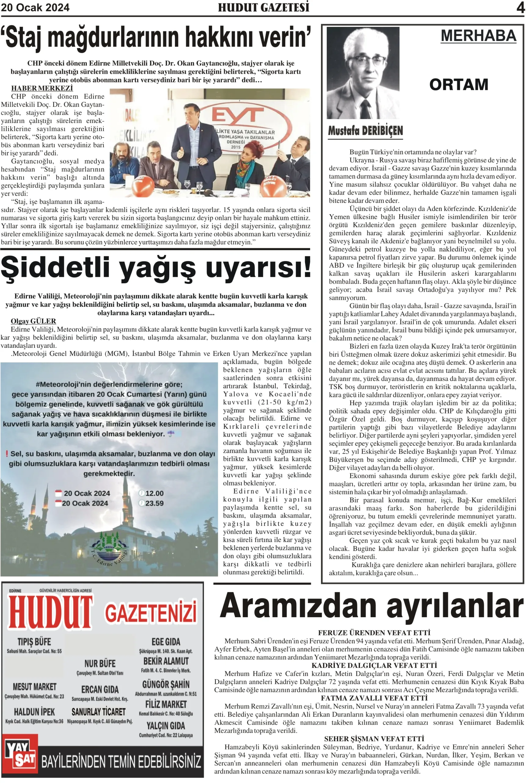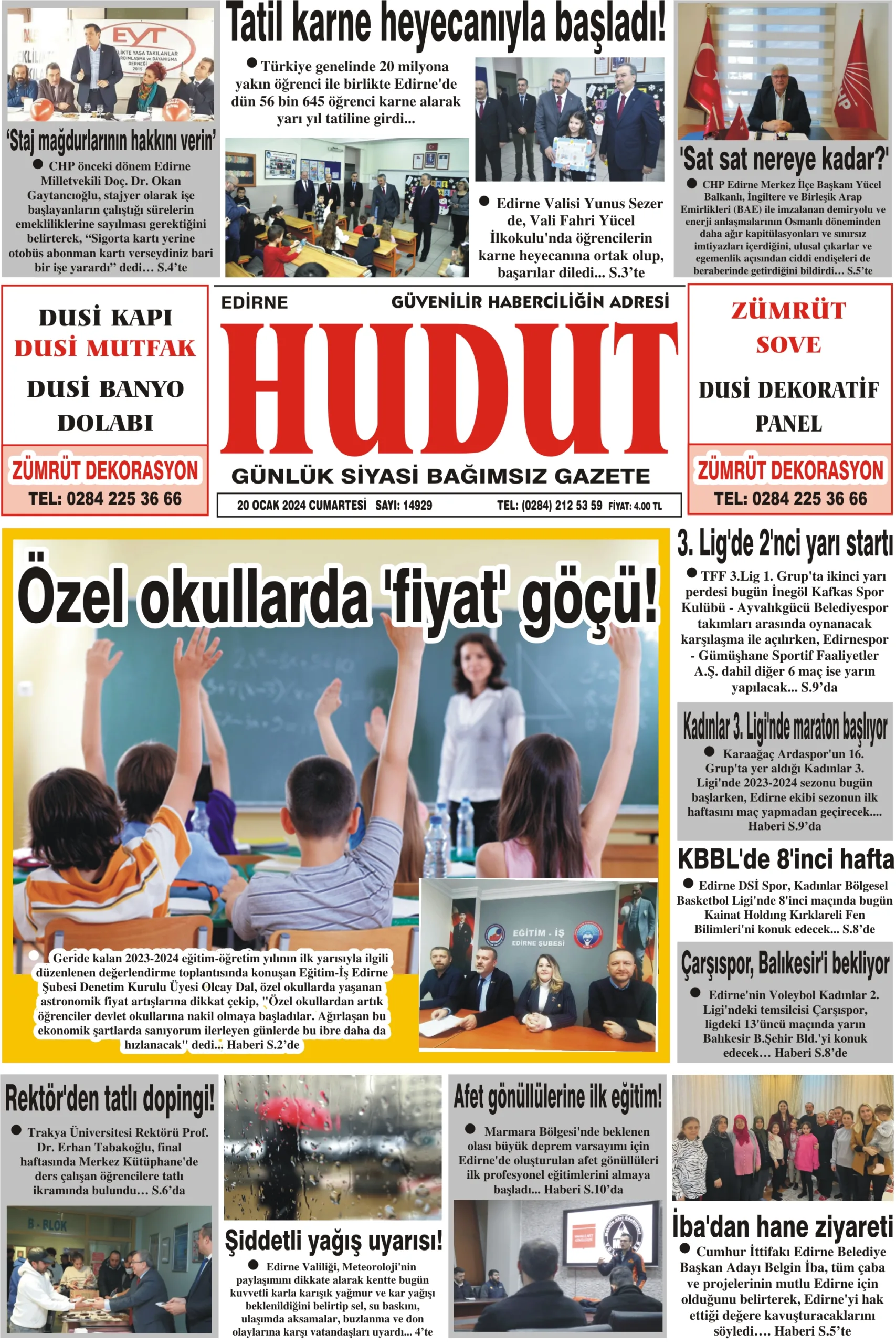 20 Ocak 2024 Cumartesi Hudut Gazetesi