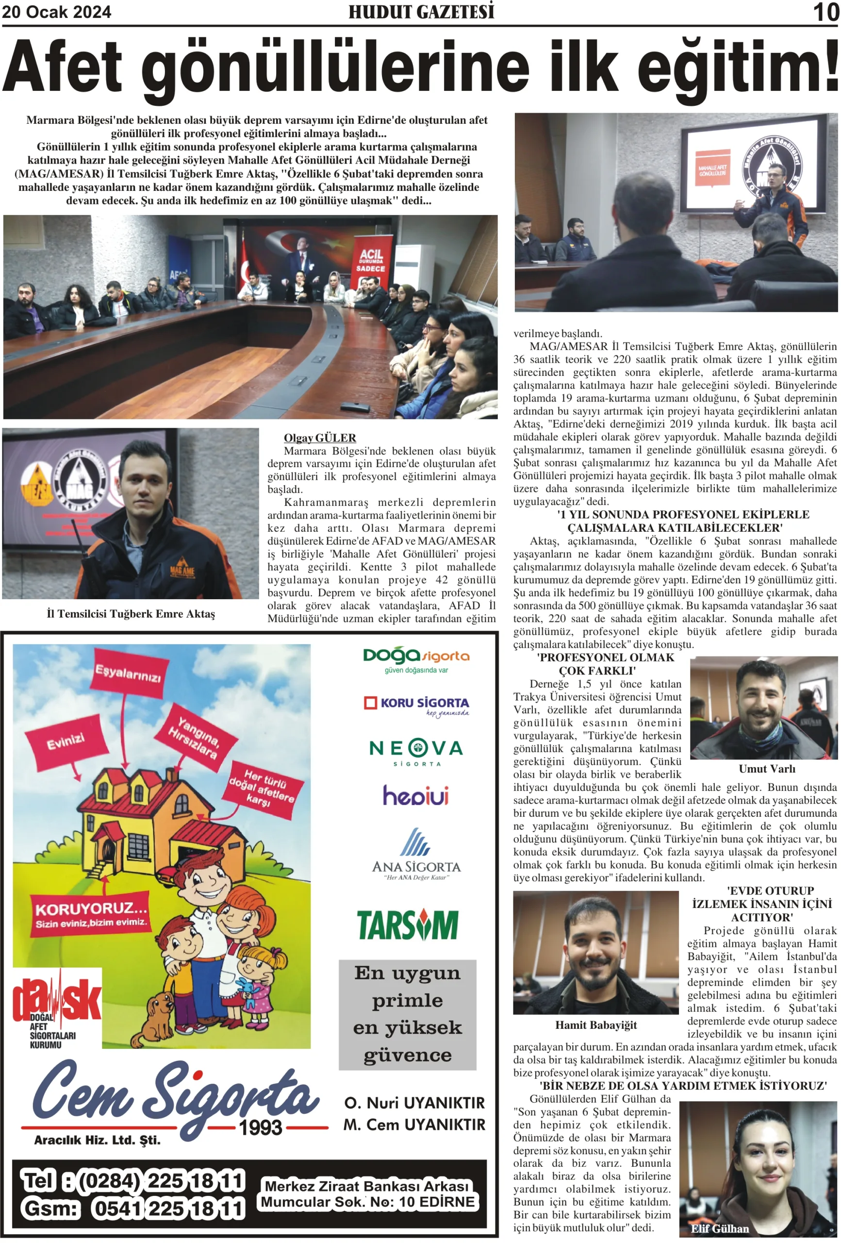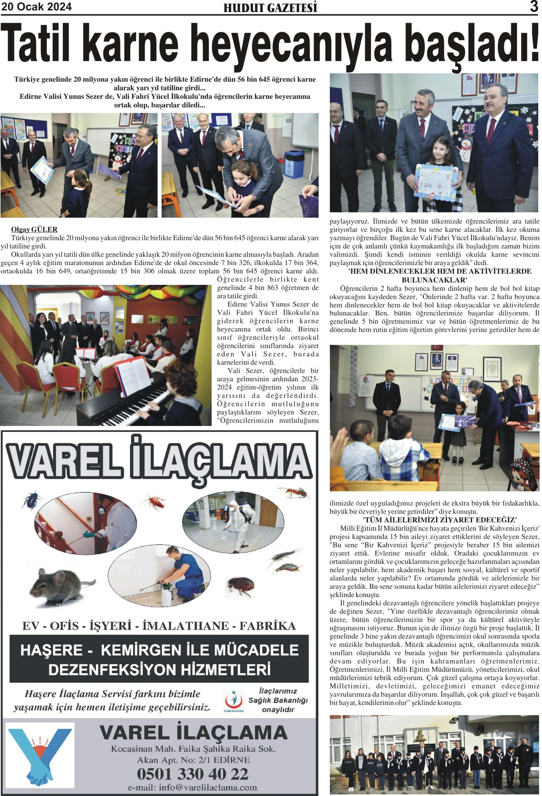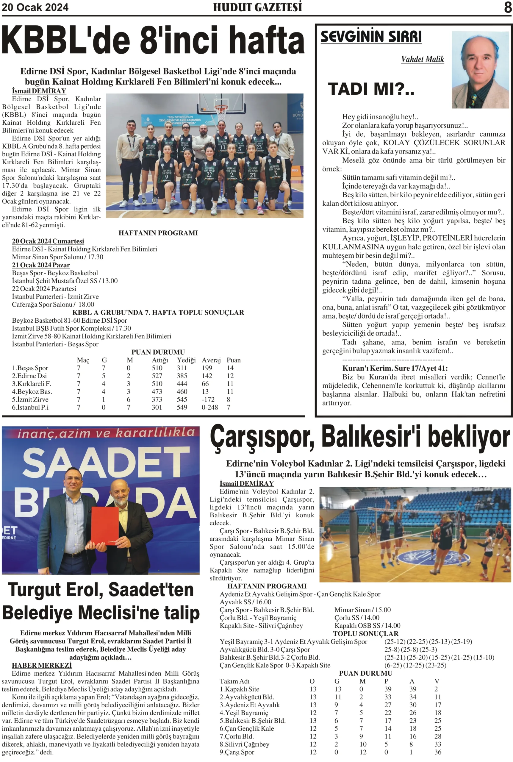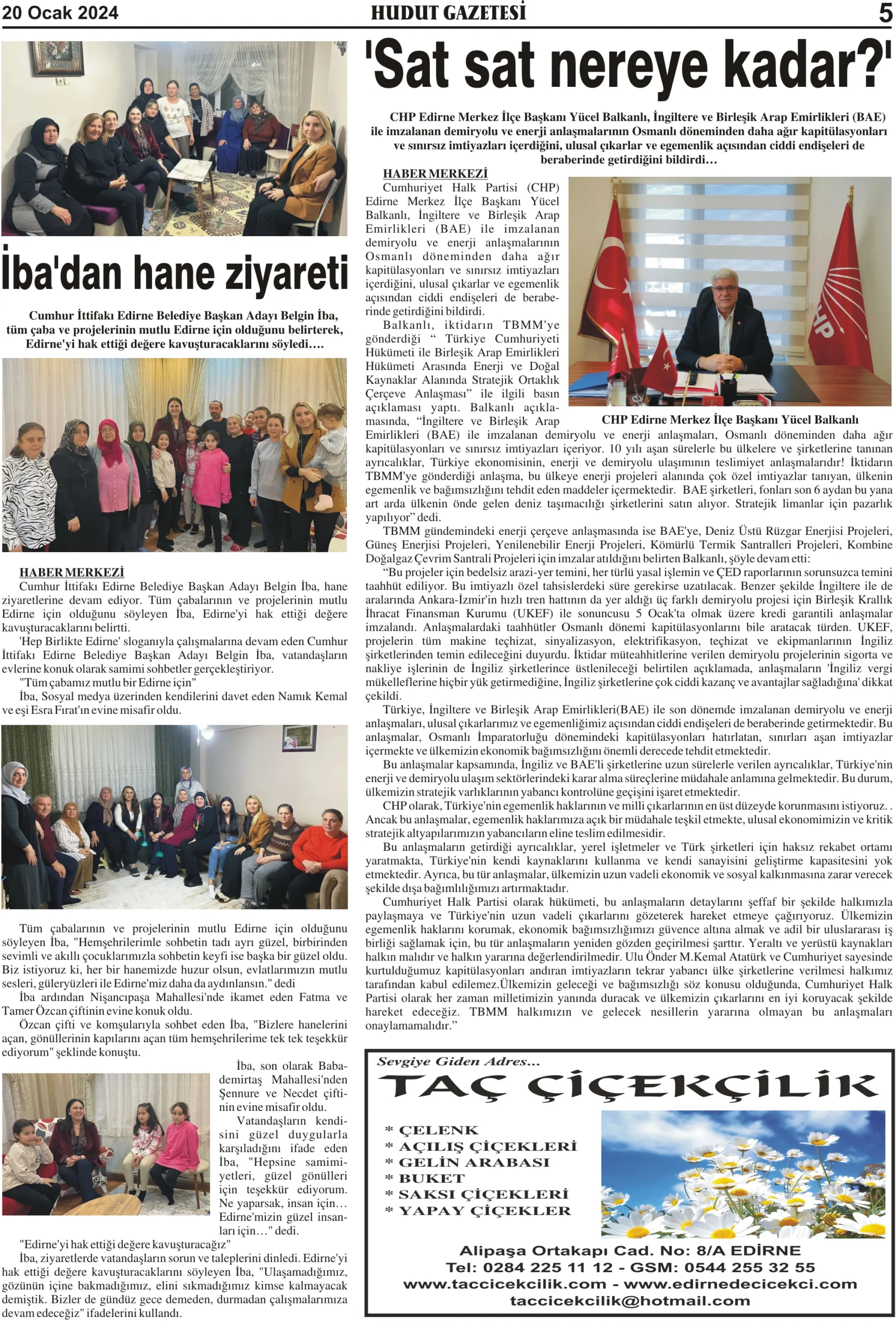 20 Ocak 2024 Cumartesi Hudut Gazetesi