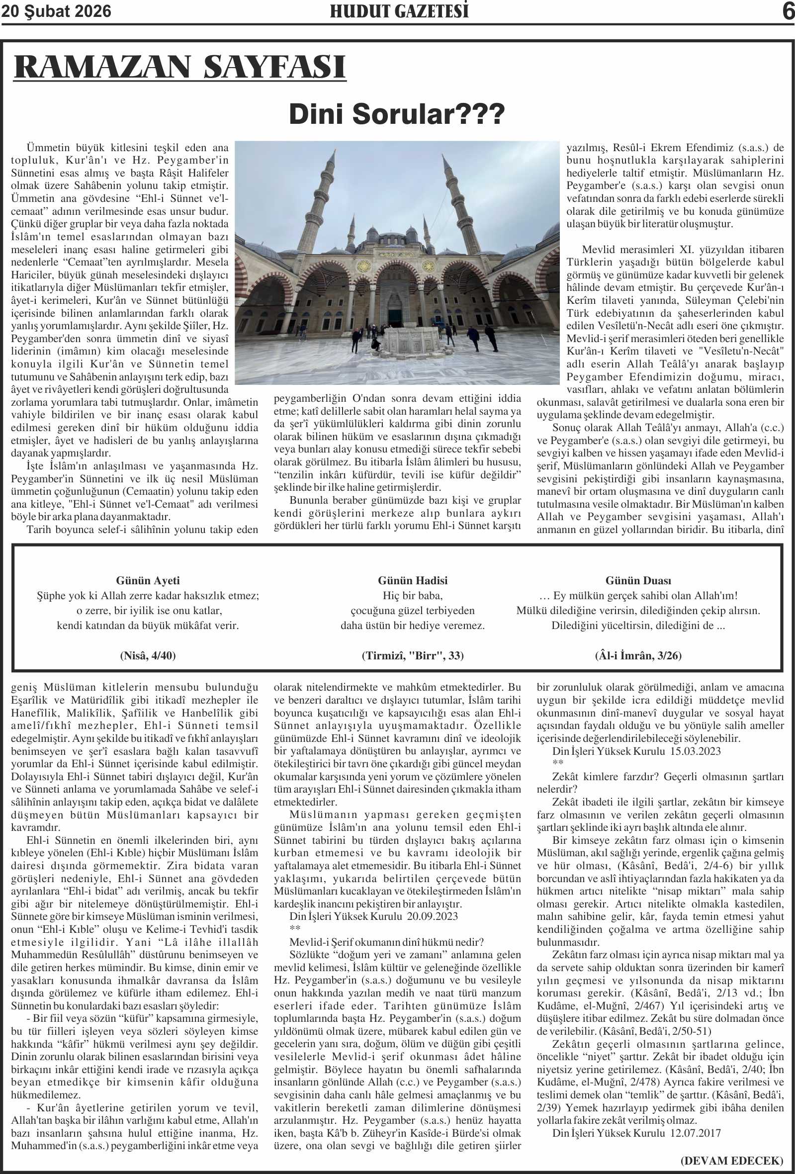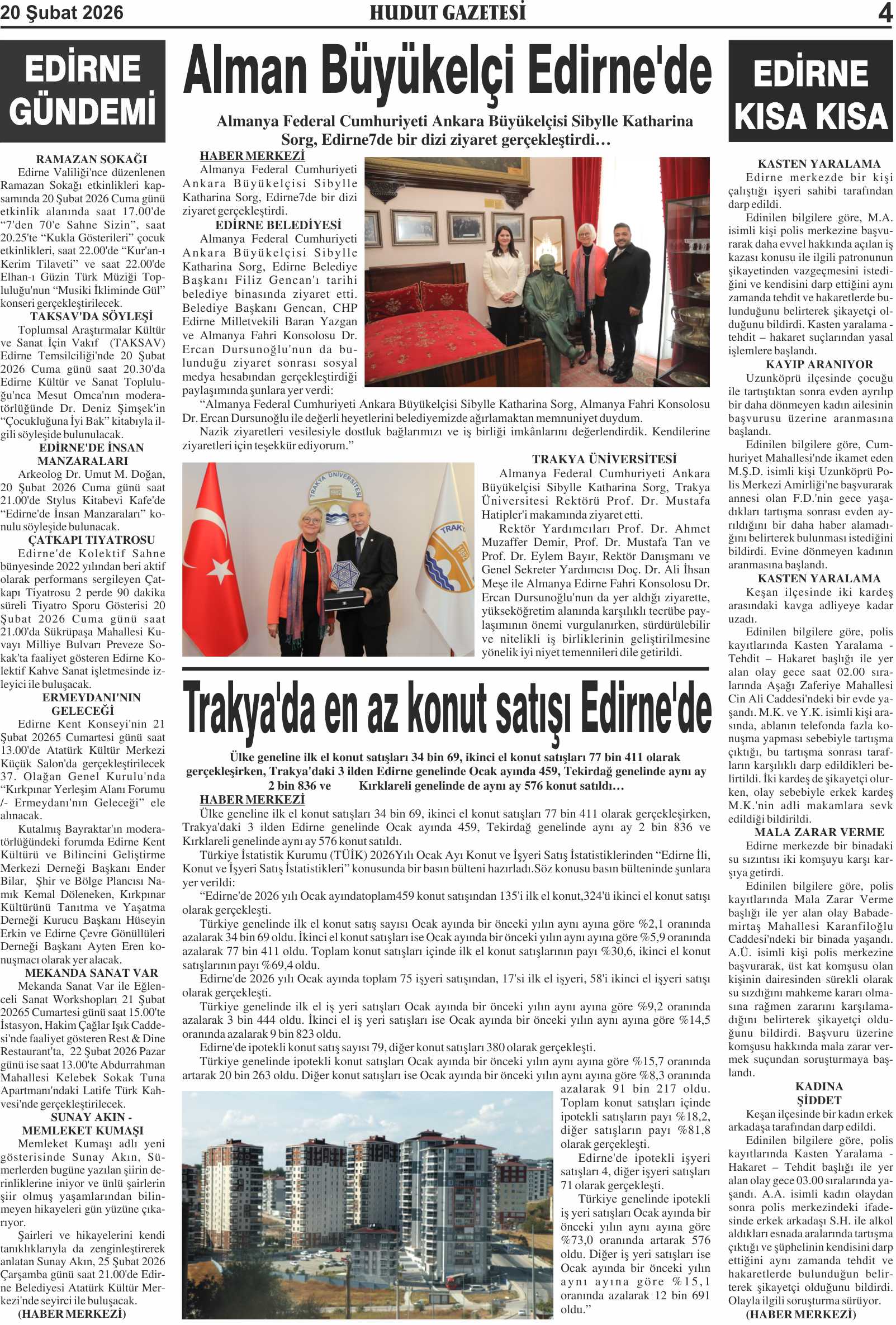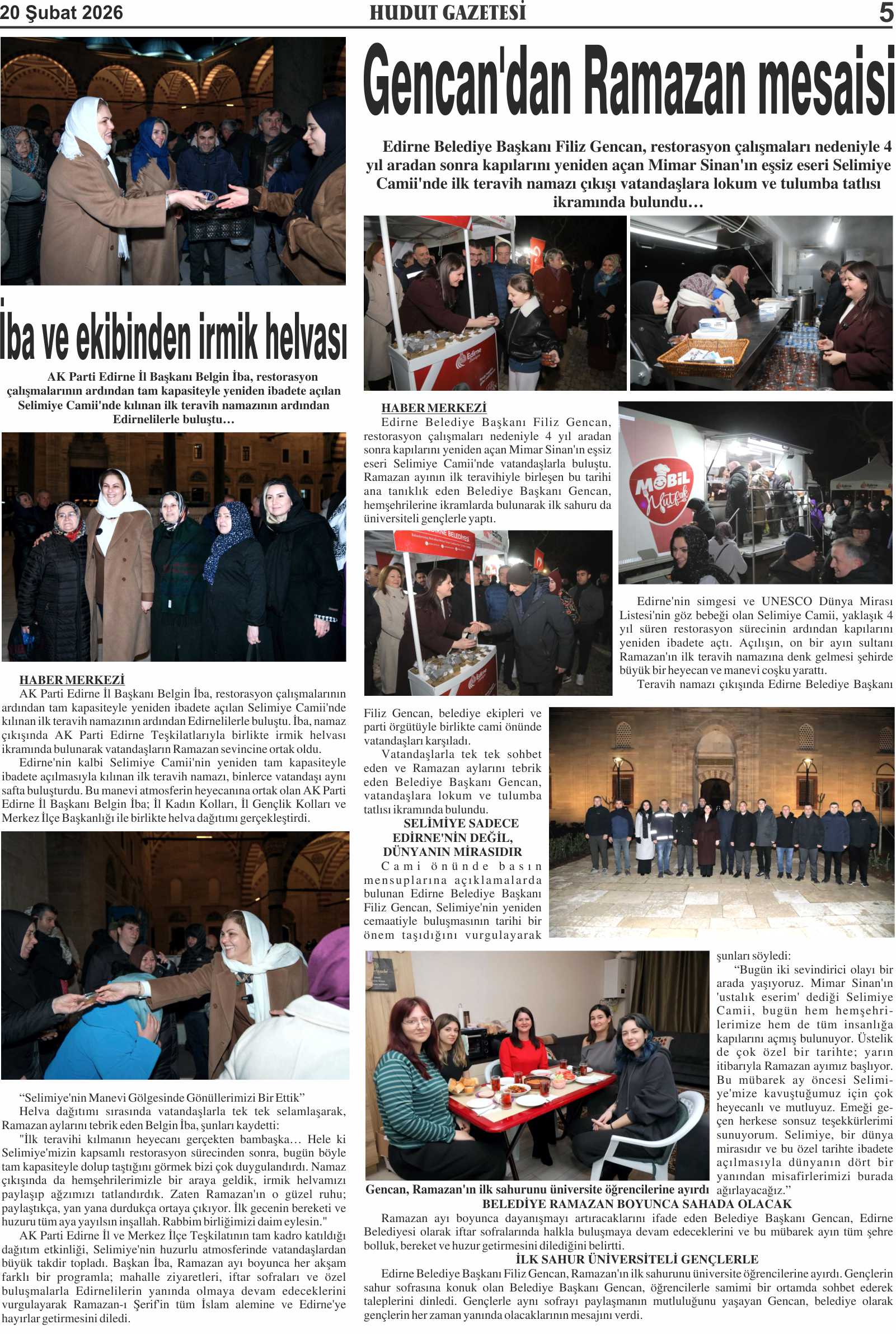 20 Şubat 2026 Cuma Hudut Gazetesi