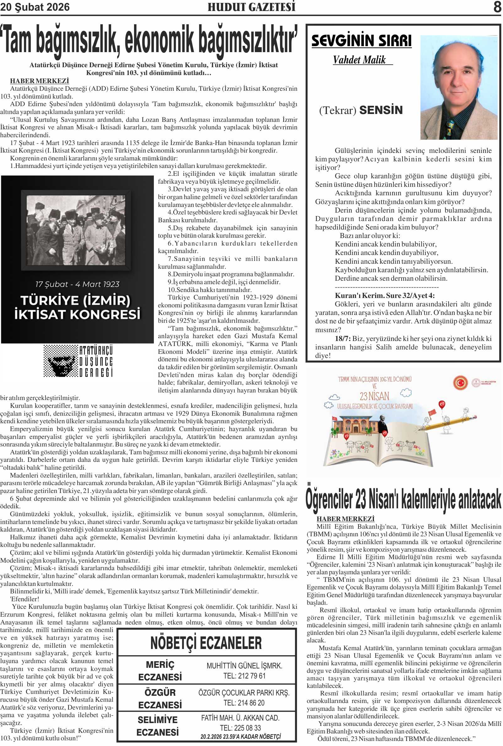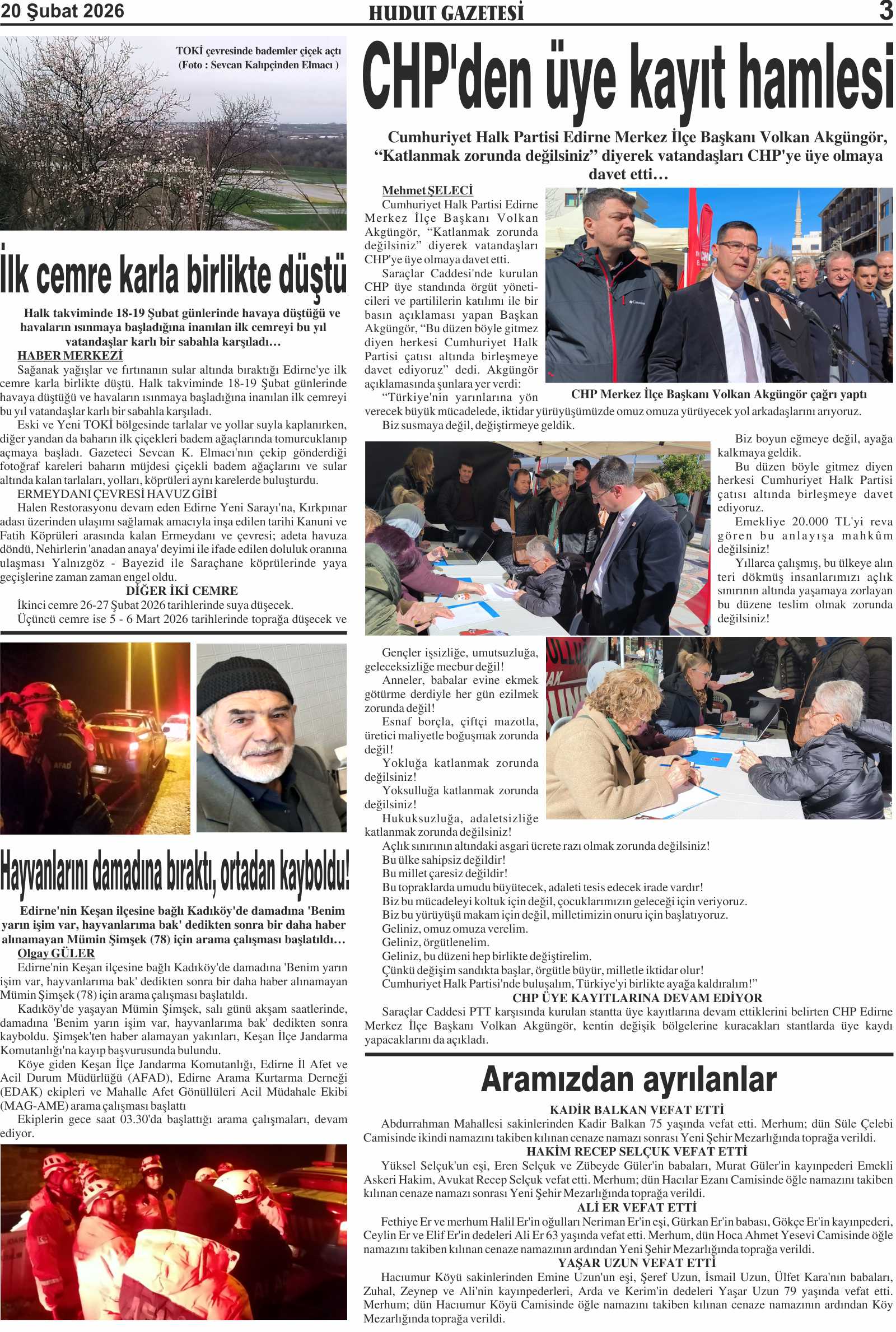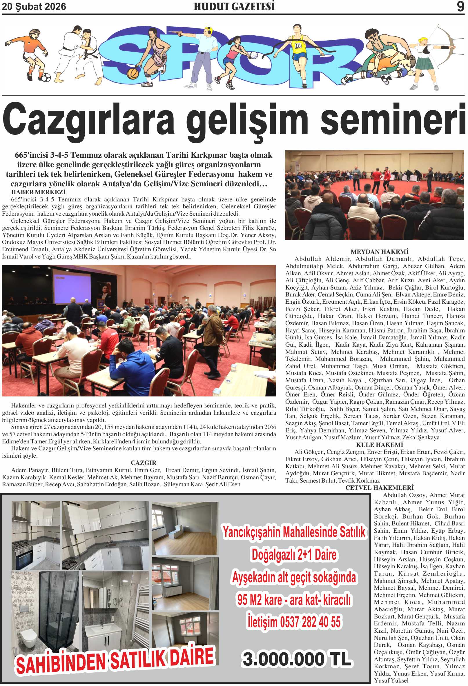 20 Şubat 2026 Cuma Hudut Gazetesi