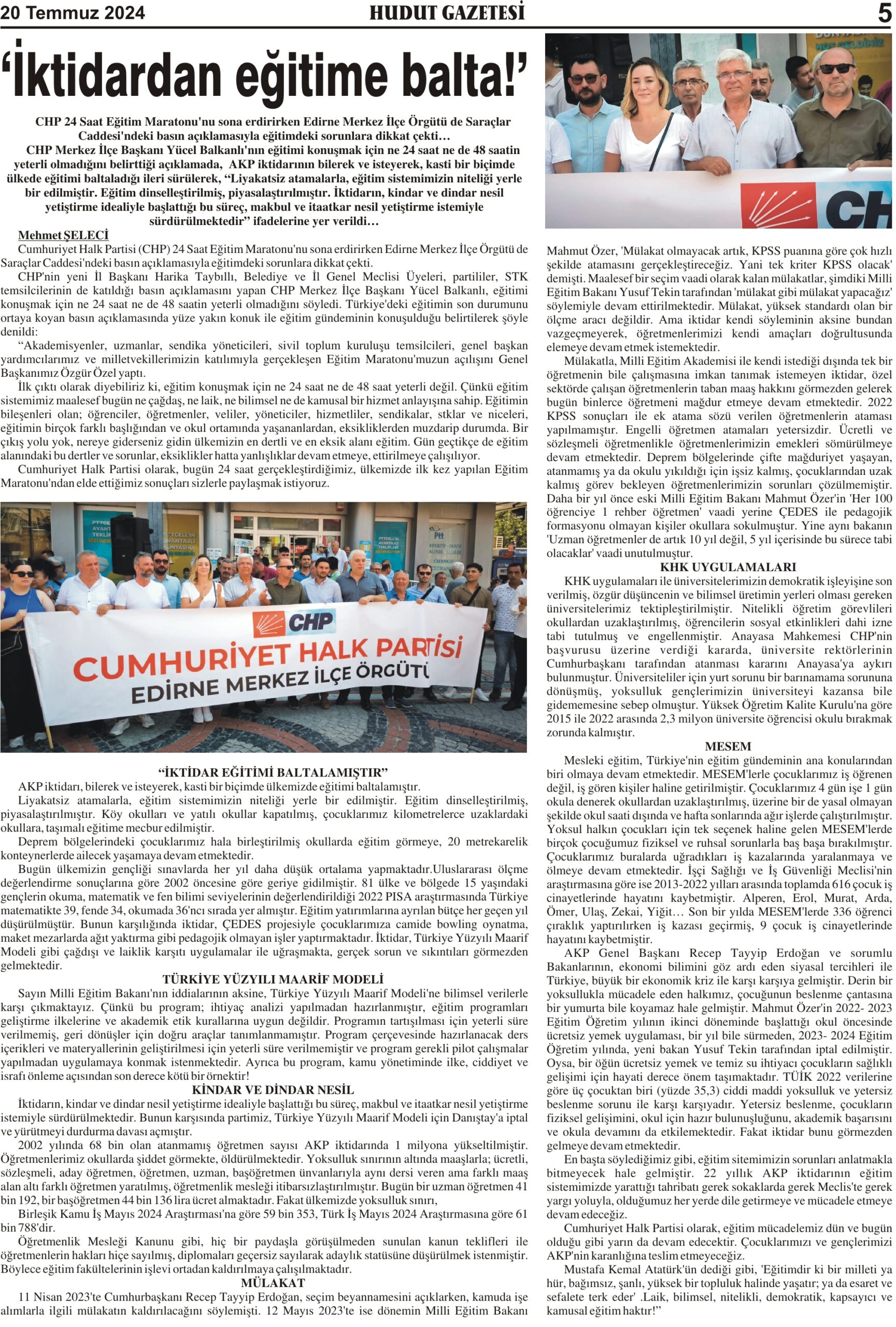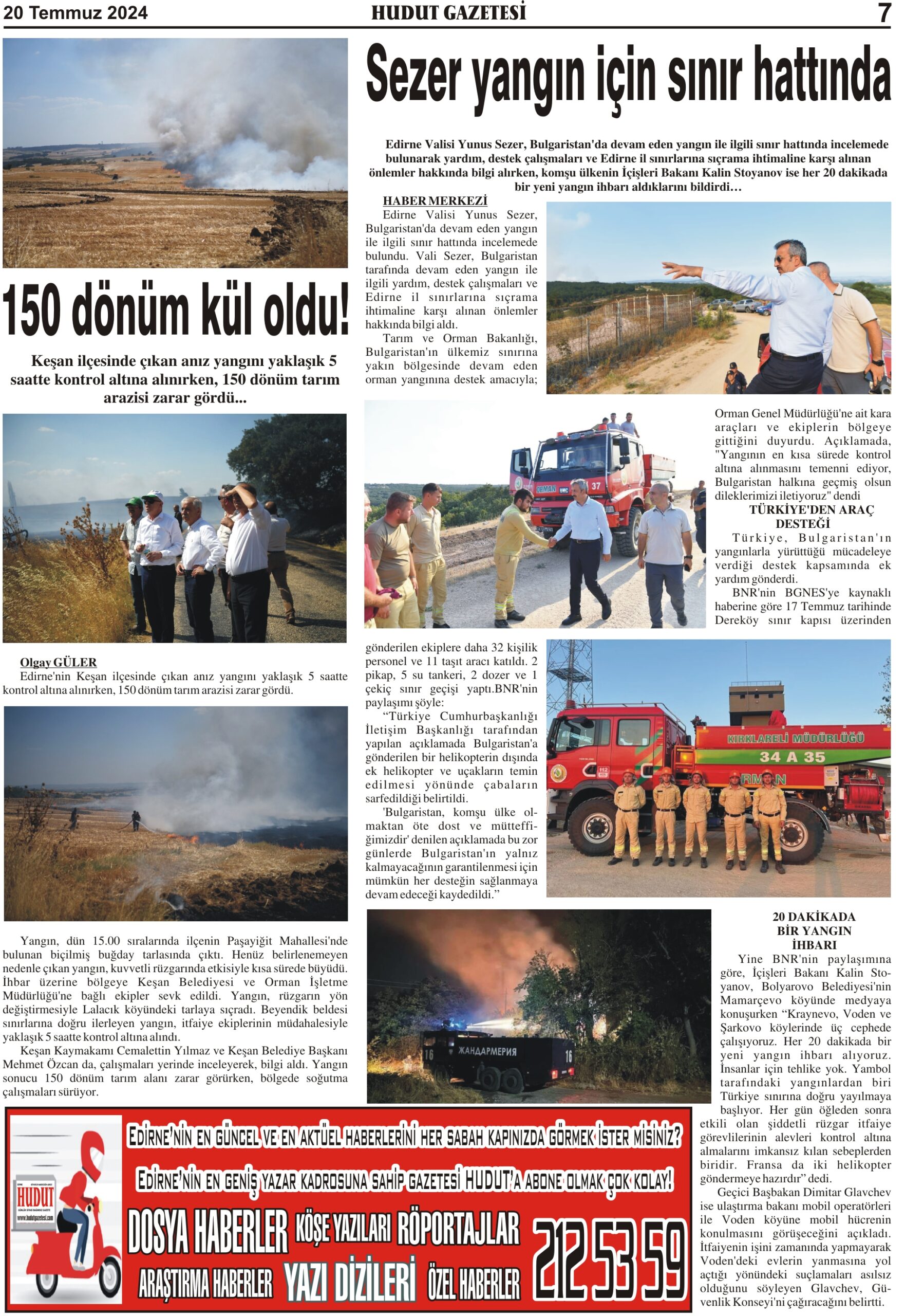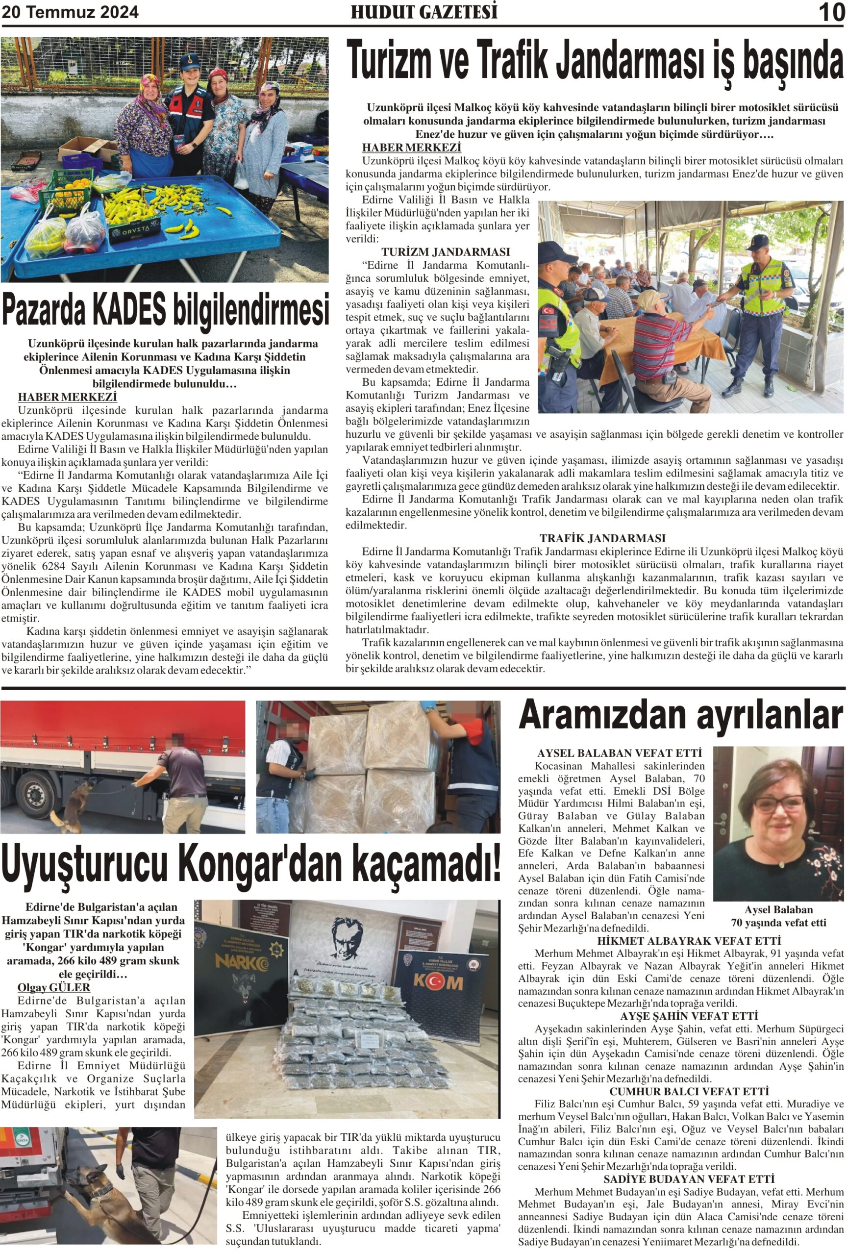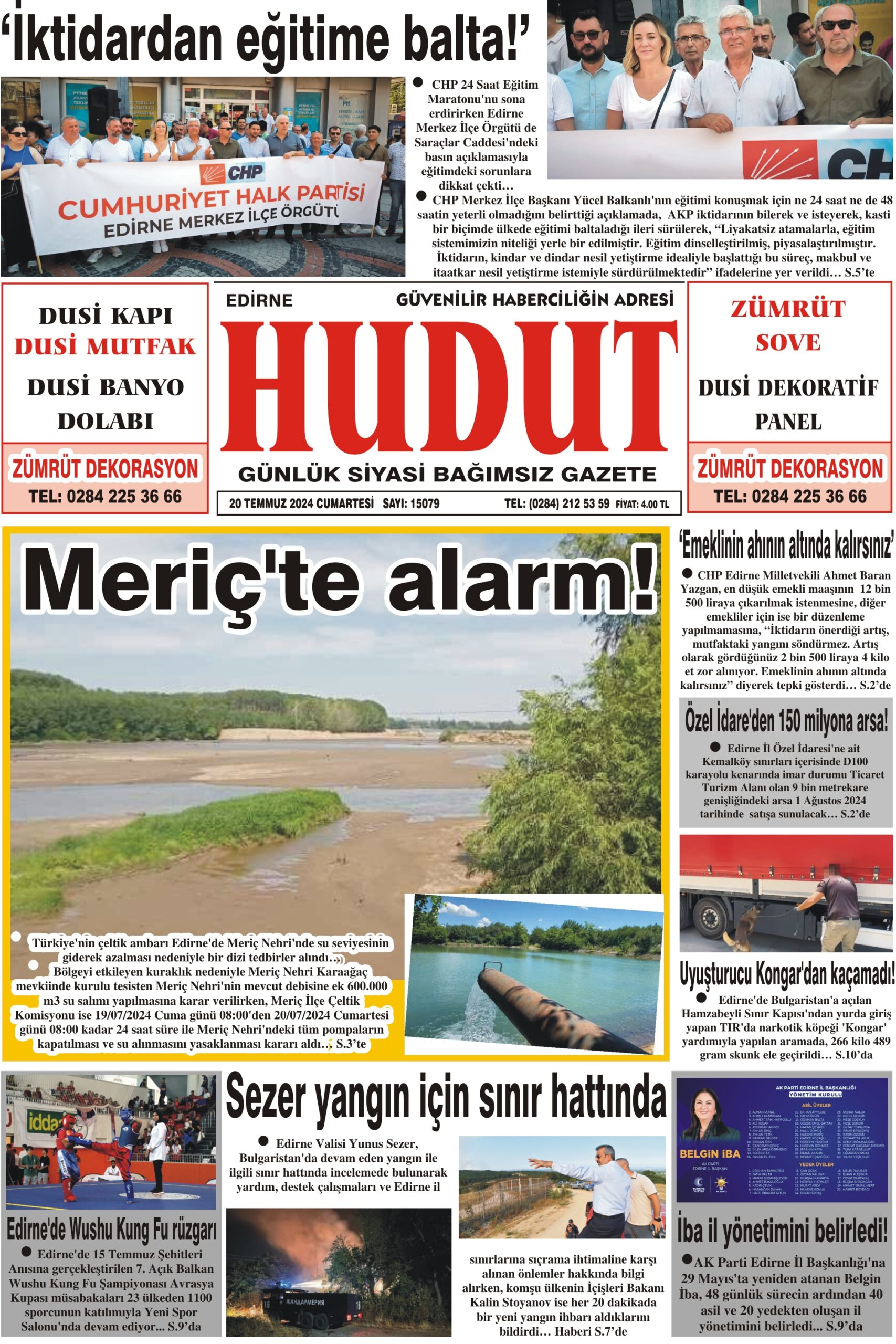 20 Temmuz 2024 Cumartesi Hudut Gazetesi